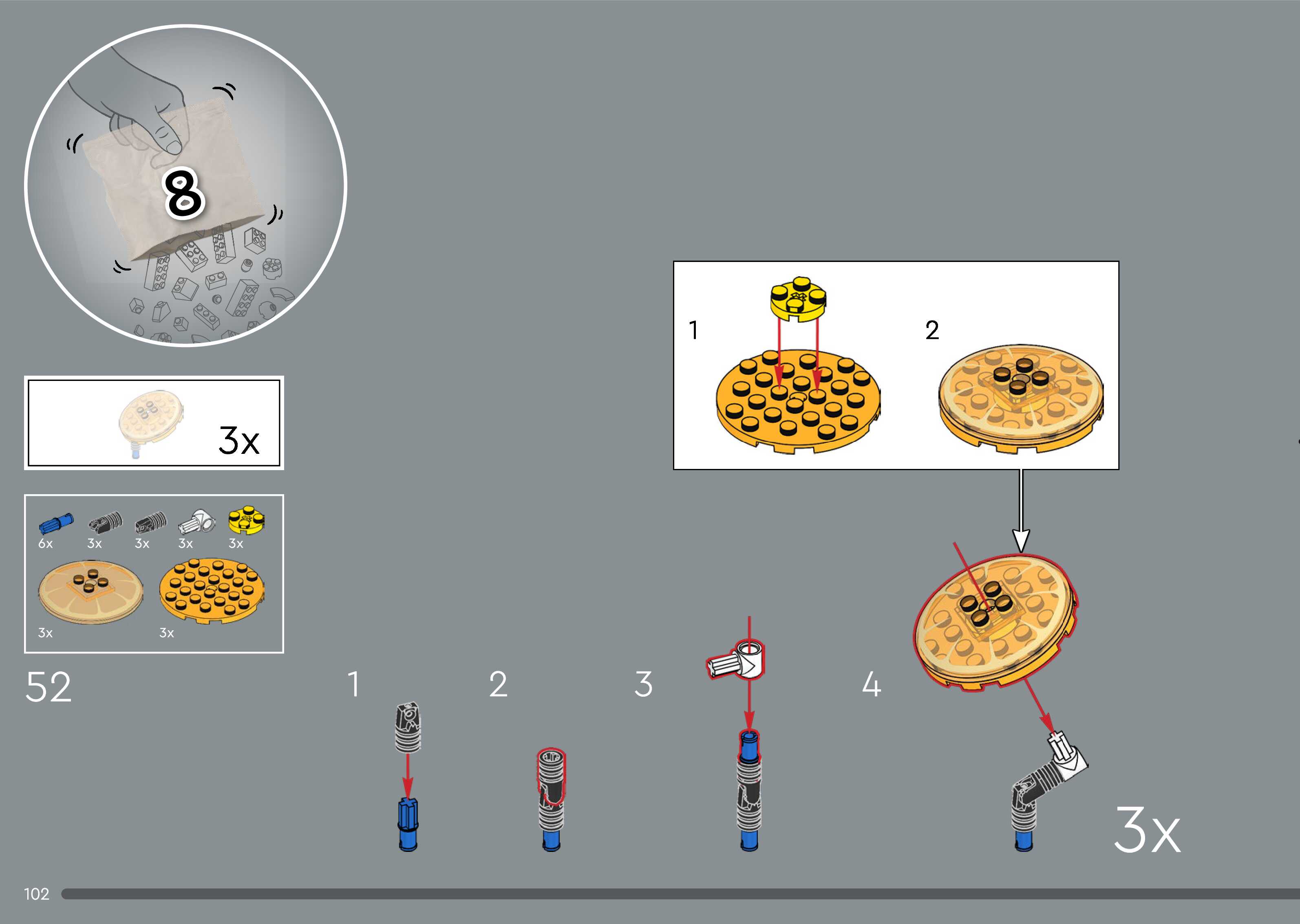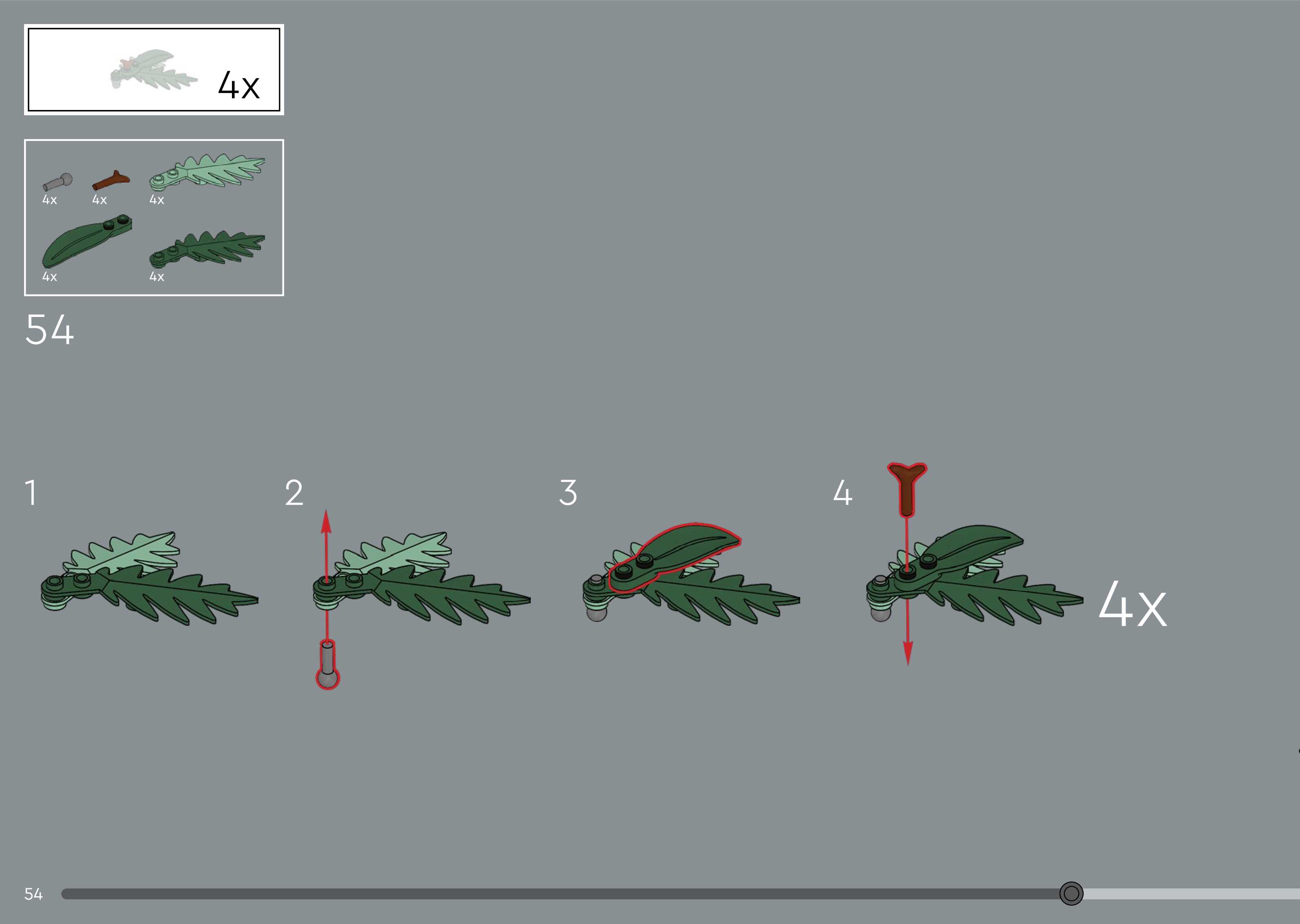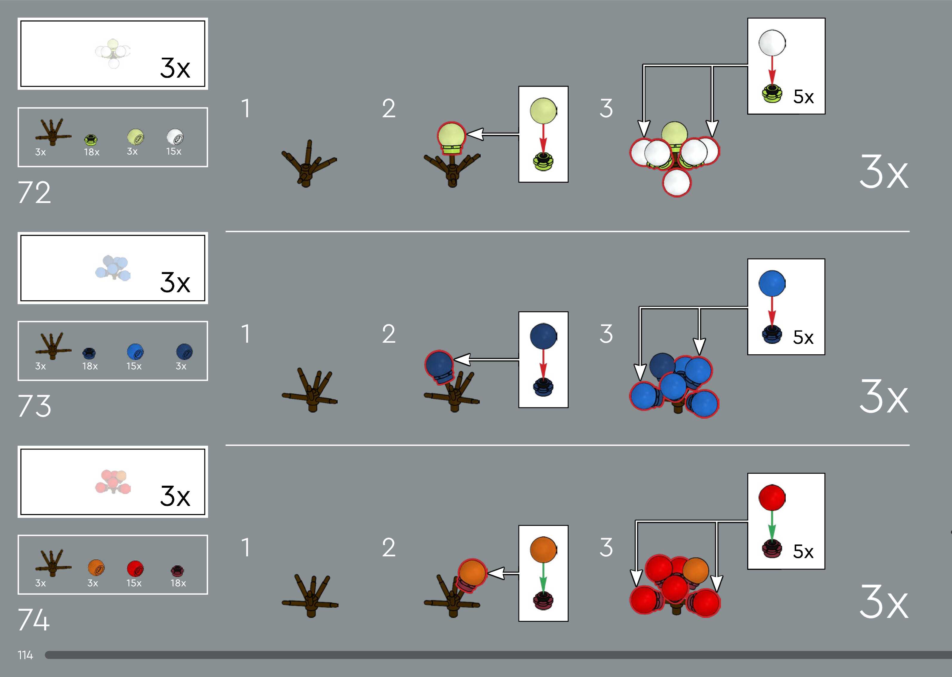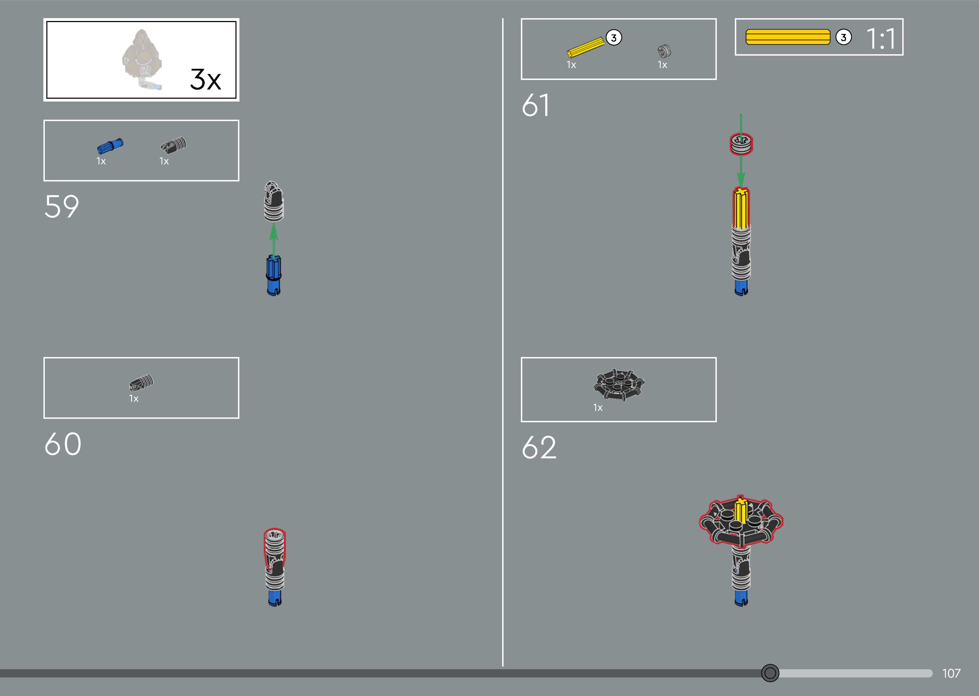 The assembly guide is prepared in a very understandable way for children and adult LEGO enthusiasts. A total of 120 picture galleries are shown, explaining the step-by-step construction stages for 1 different structures.