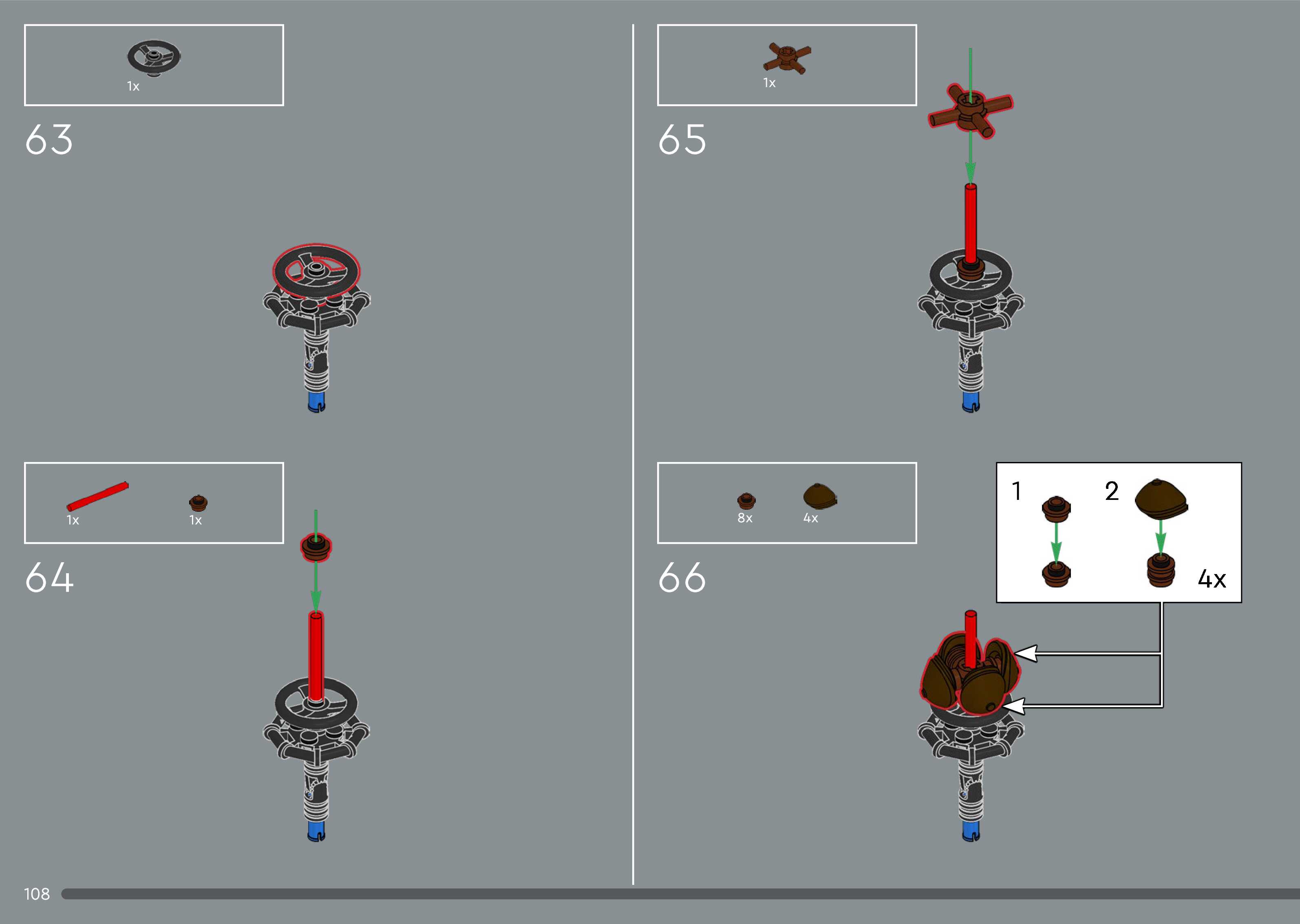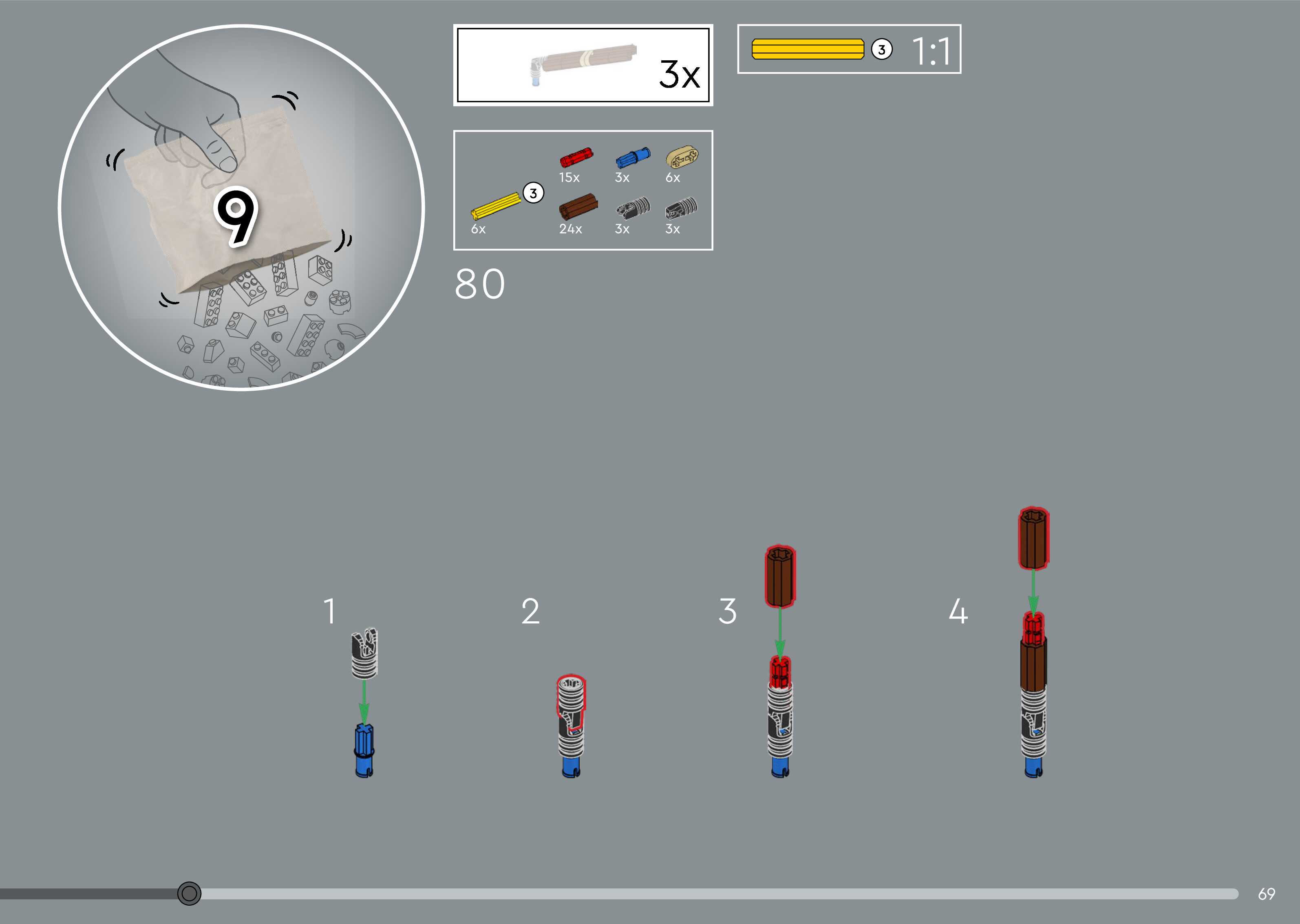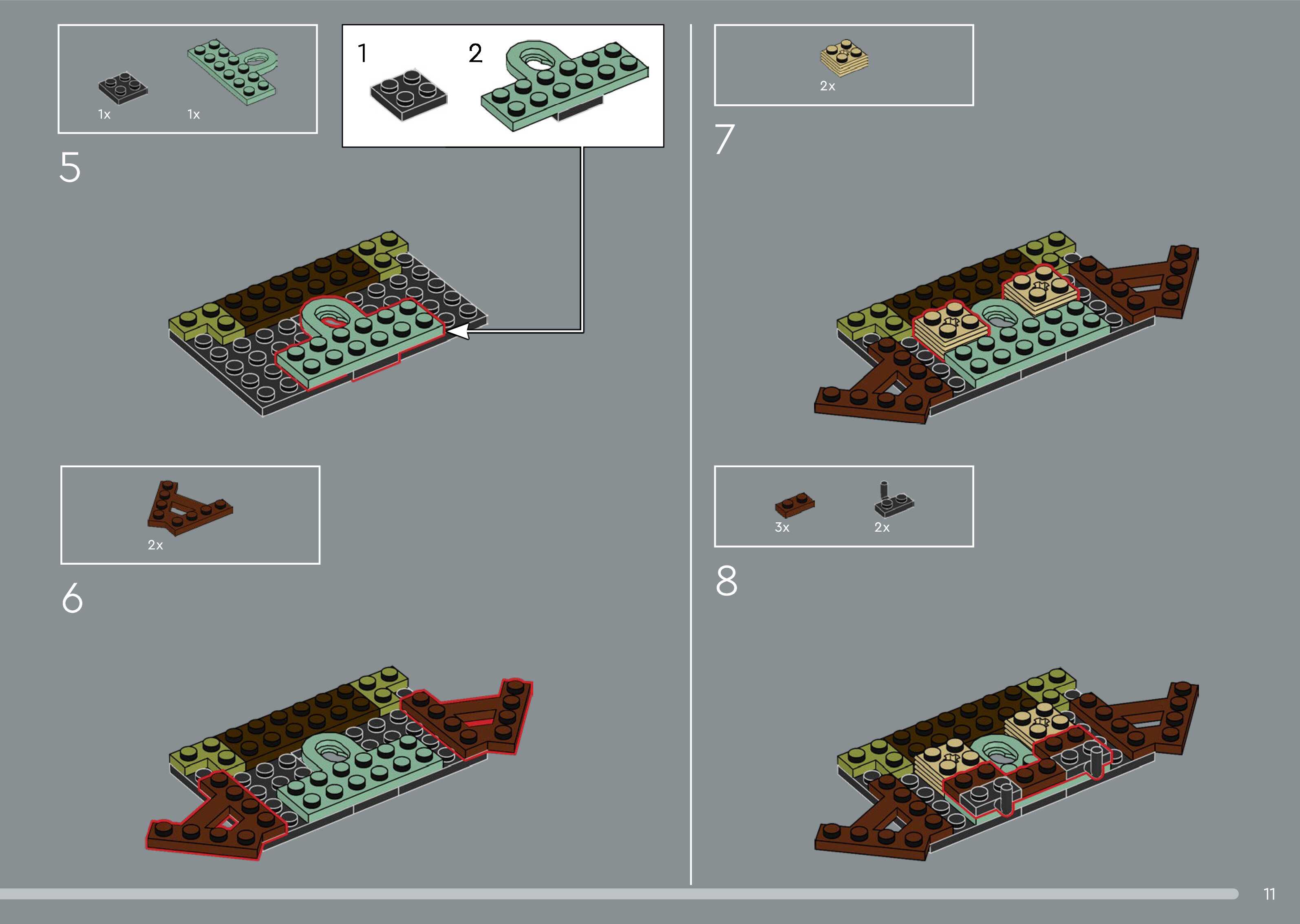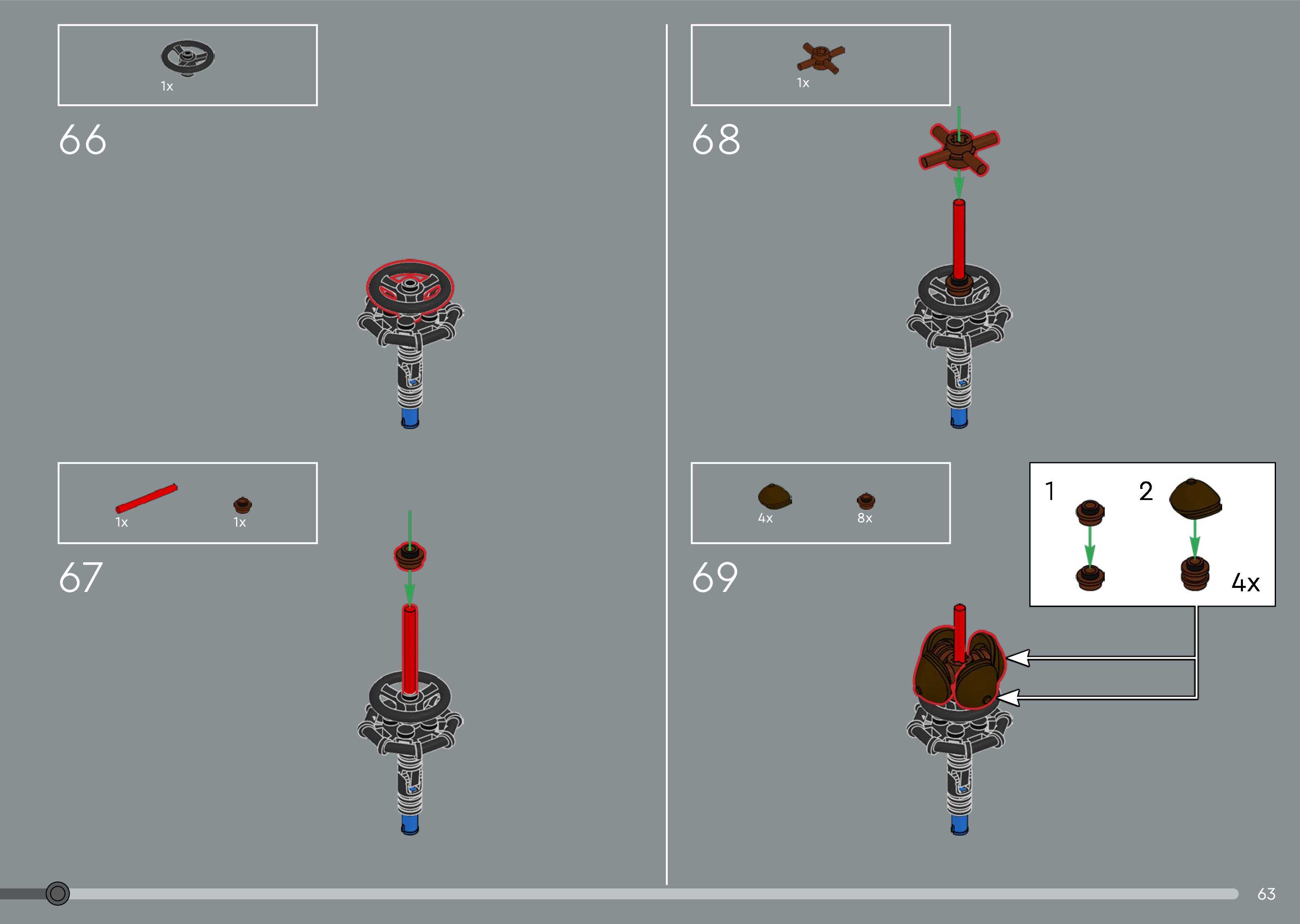 The assembly guide is prepared in a very understandable way for children and adult LEGO enthusiasts. A total of 120 picture galleries are shown, explaining the step-by-step construction stages for 1 different structures.