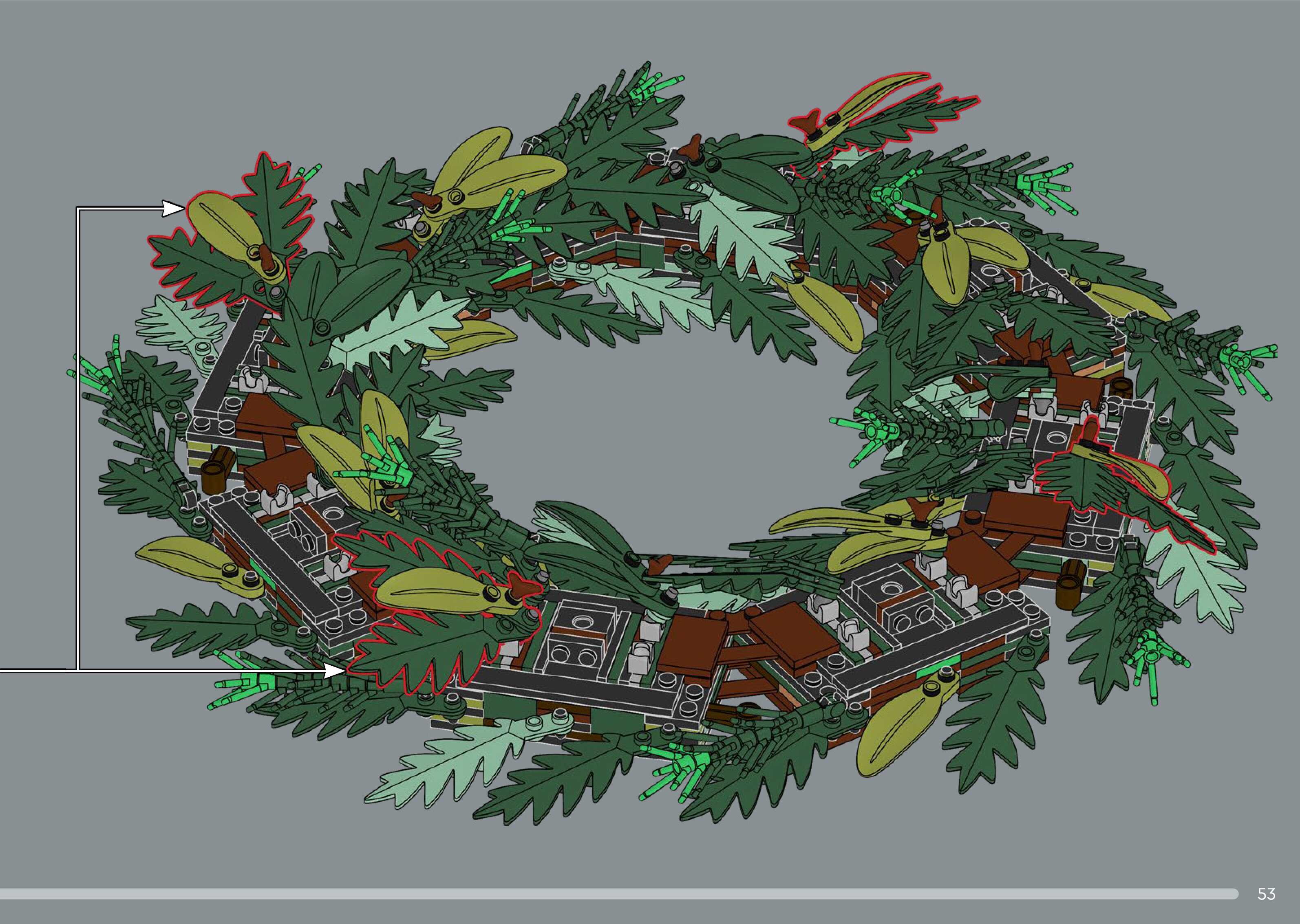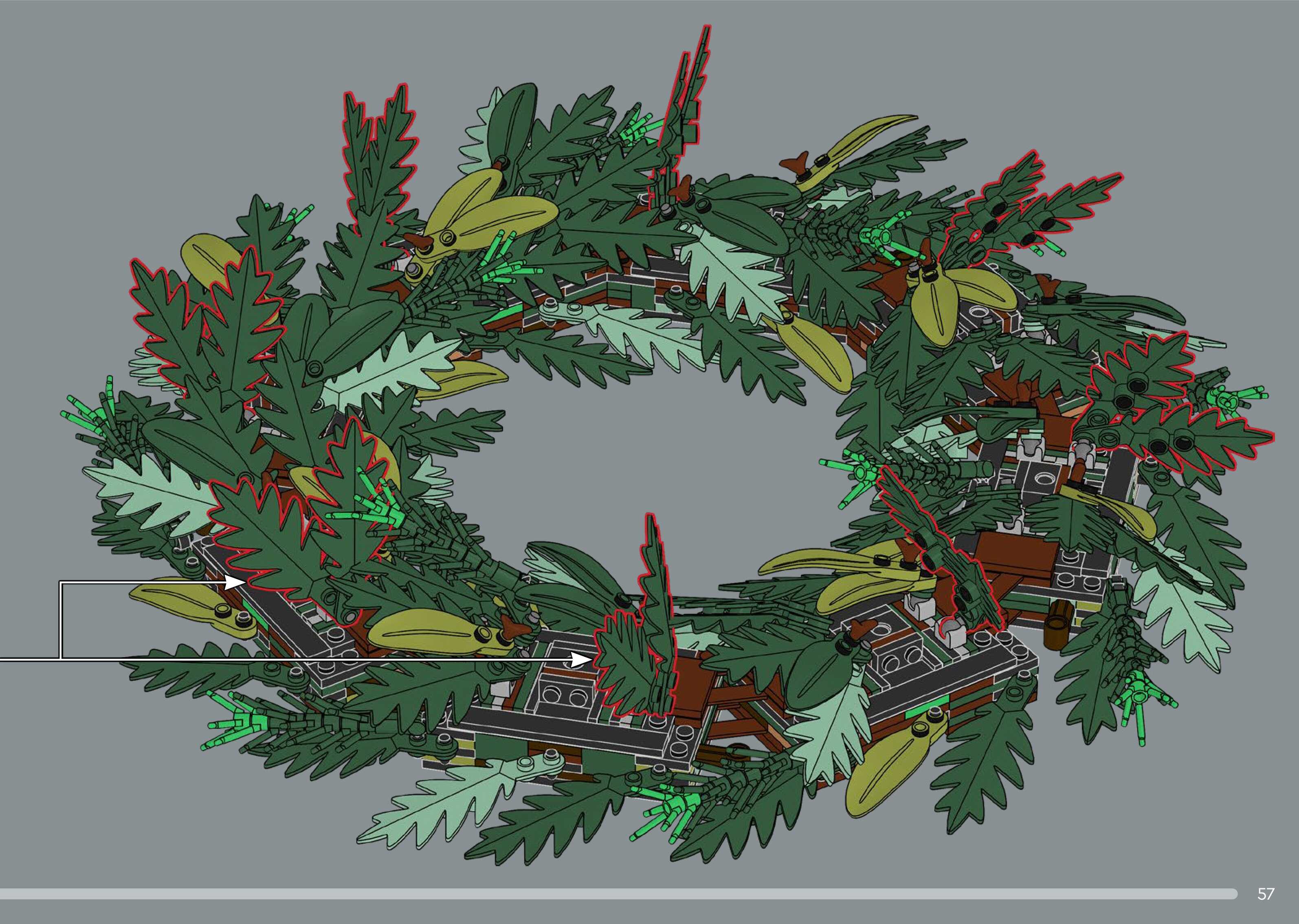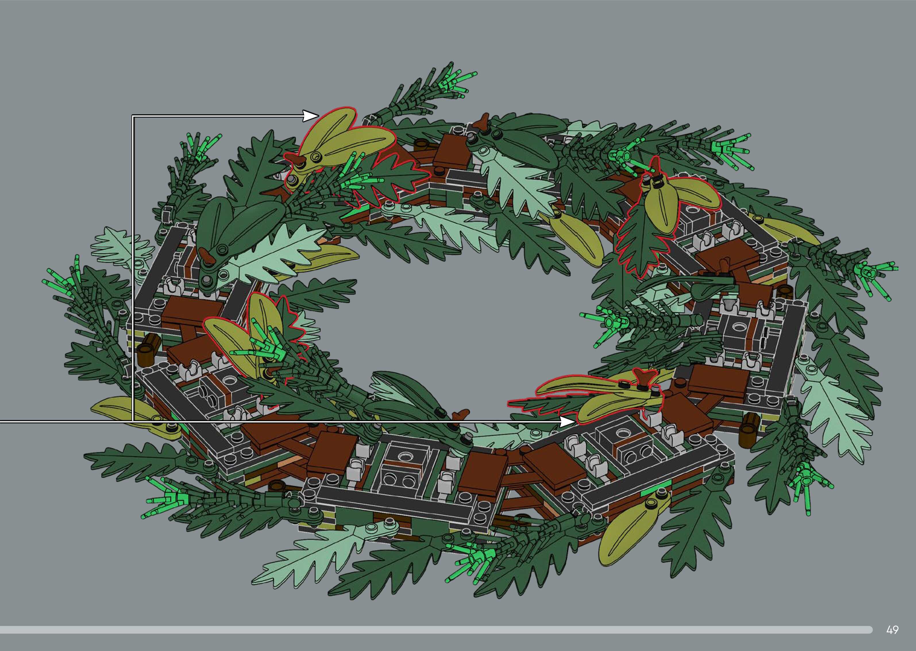 This page shares information about LEGO Wreath manual, LEGO 10340 PDF instructions, LEGO Wreath building guide online, How to build Wreath LEGO.
