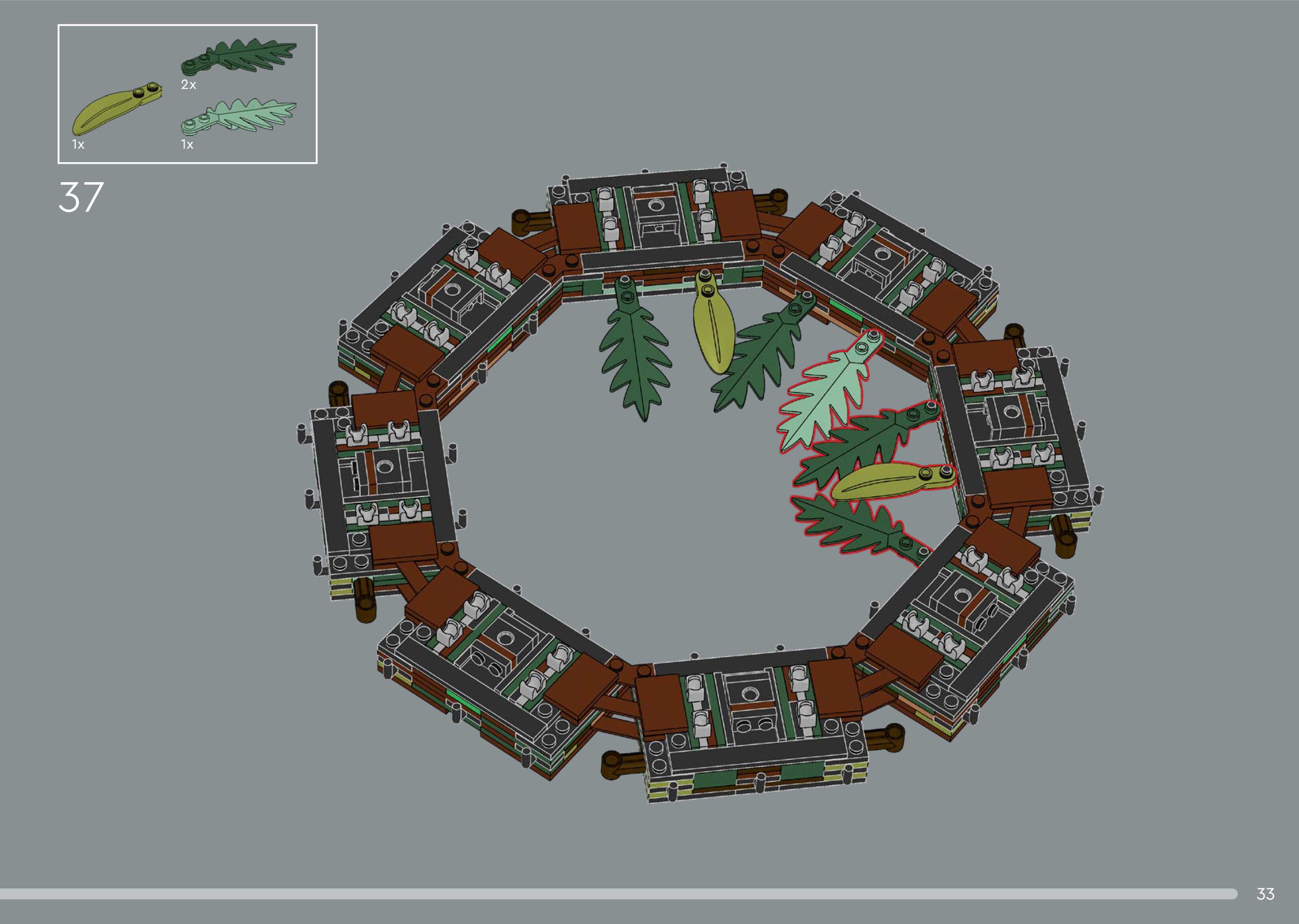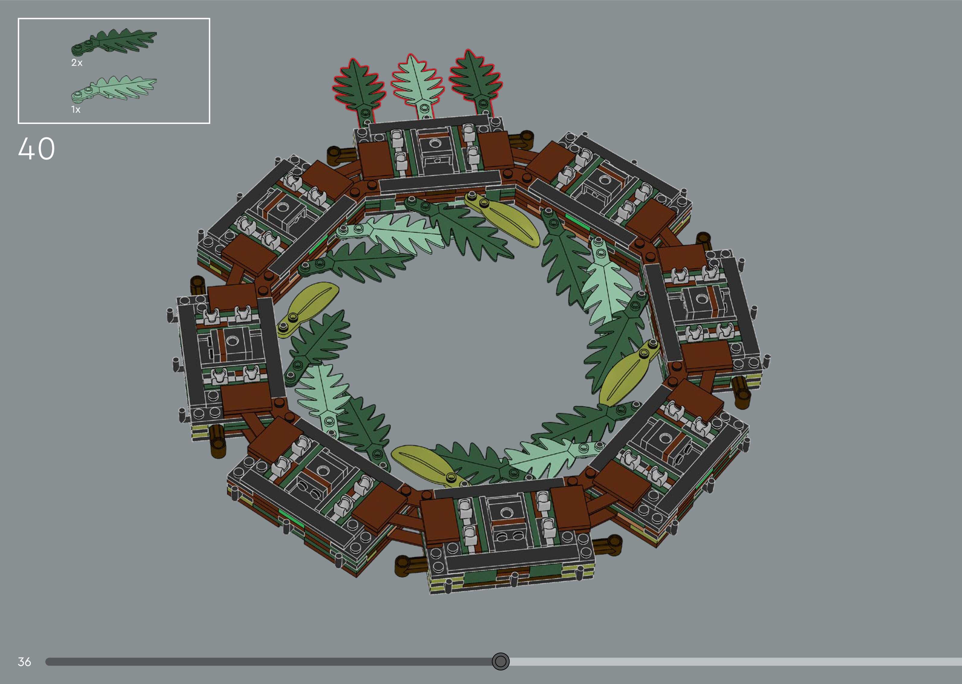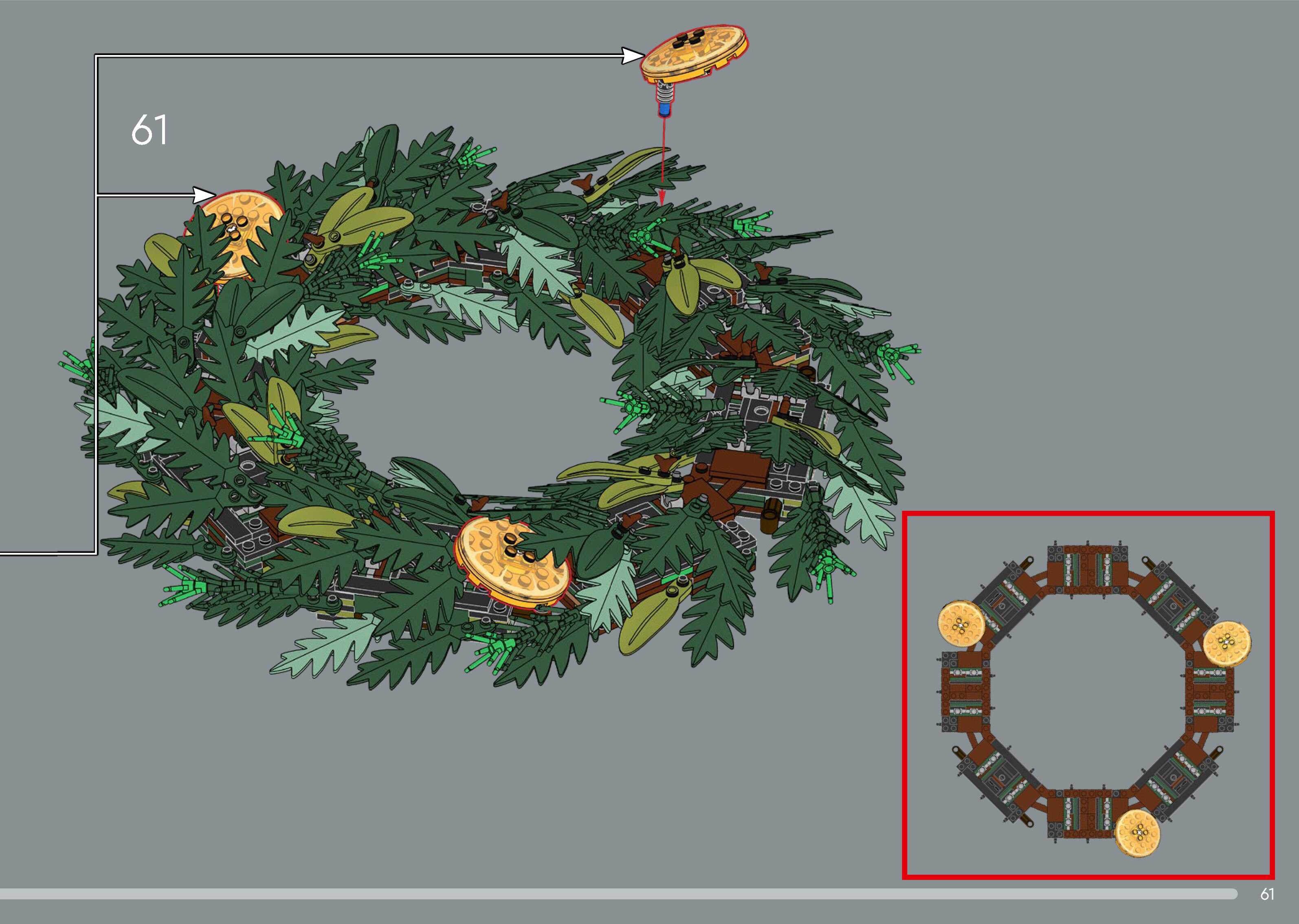 This page shares information about LEGO Wreath manual, LEGO 10340 PDF instructions, LEGO Wreath building guide online, How to build Wreath LEGO.