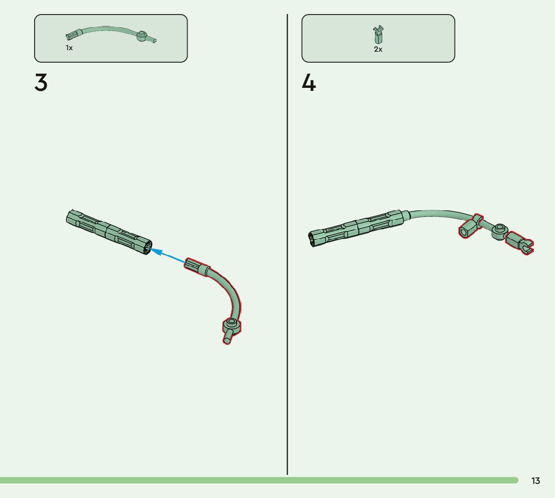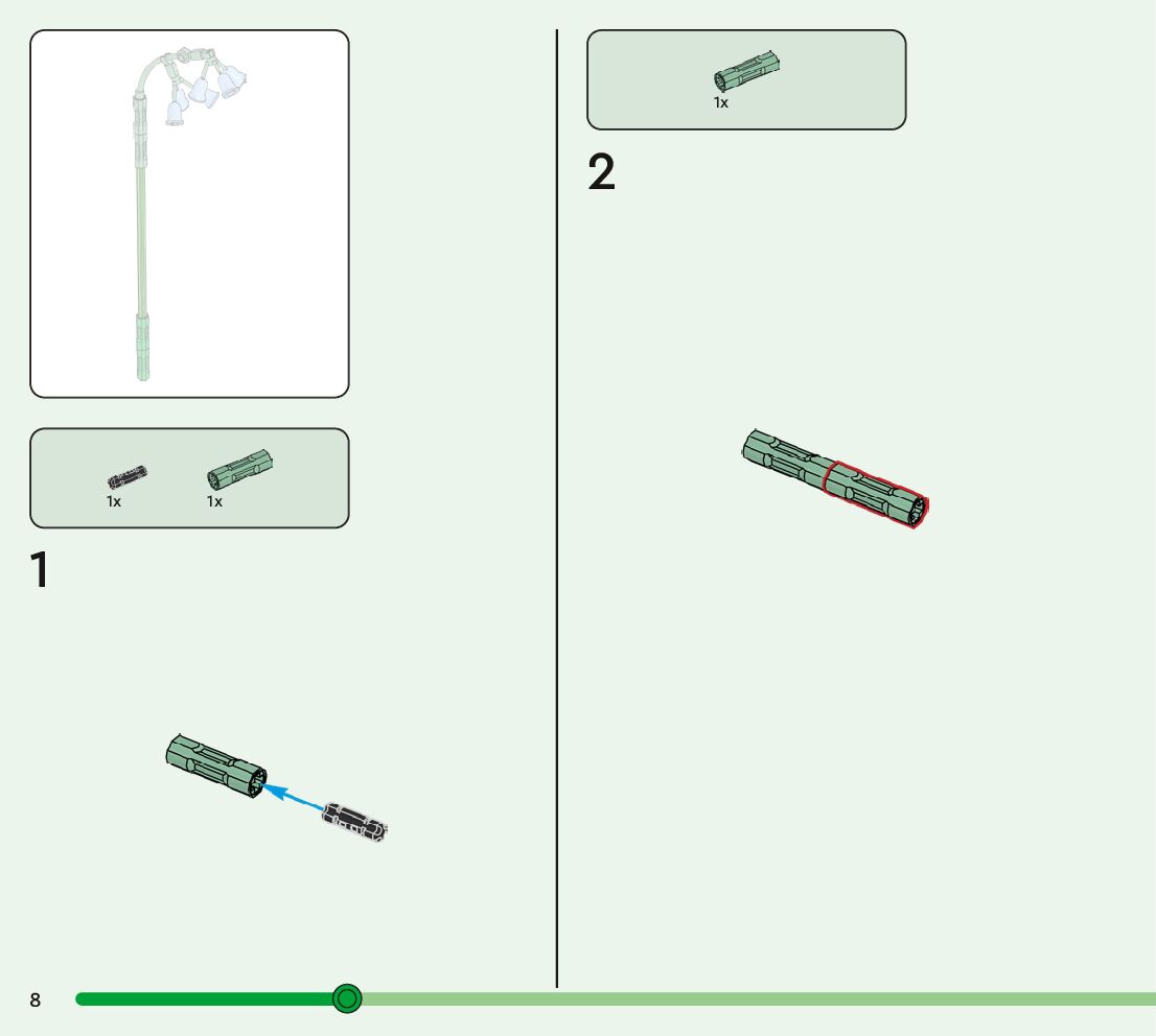 The assembly guide is prepared in a very understandable way for children and adult LEGO enthusiasts. A total of 76 picture galleries are shown, explaining the step-by-step construction stages for 2 different structures.