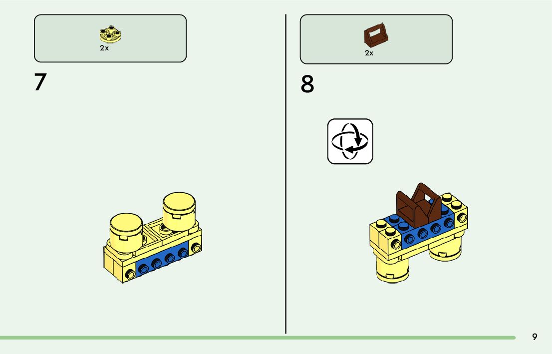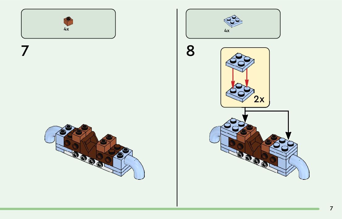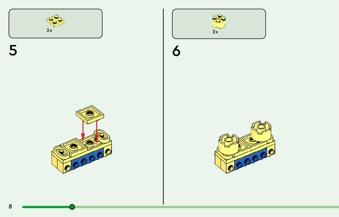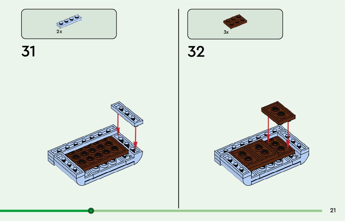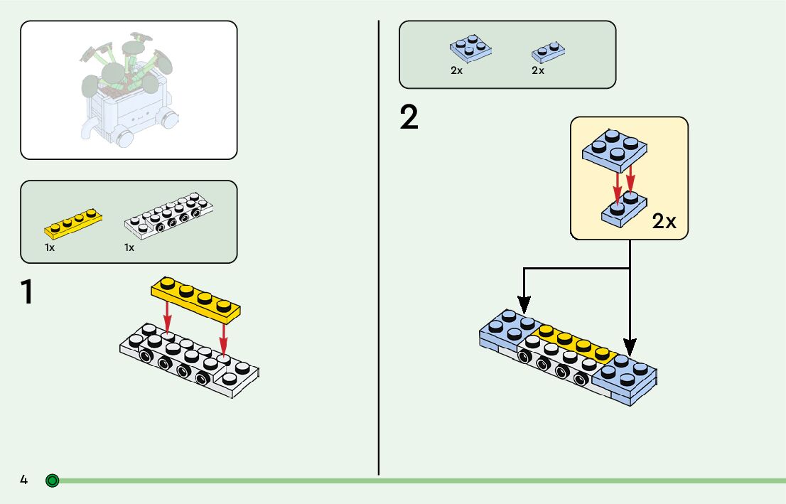 The assembly guide is prepared in a very understandable way for children and adult LEGO enthusiasts. A total of 64 picture galleries are shown, explaining the step-by-step construction stages for 2 different structures.