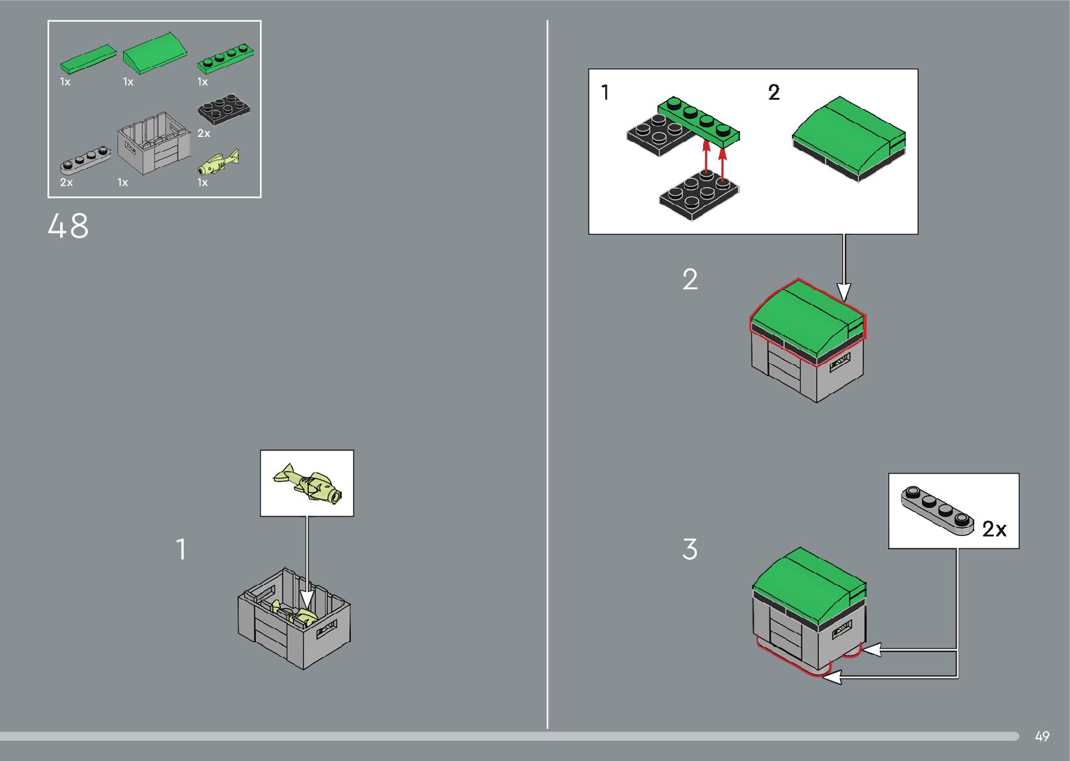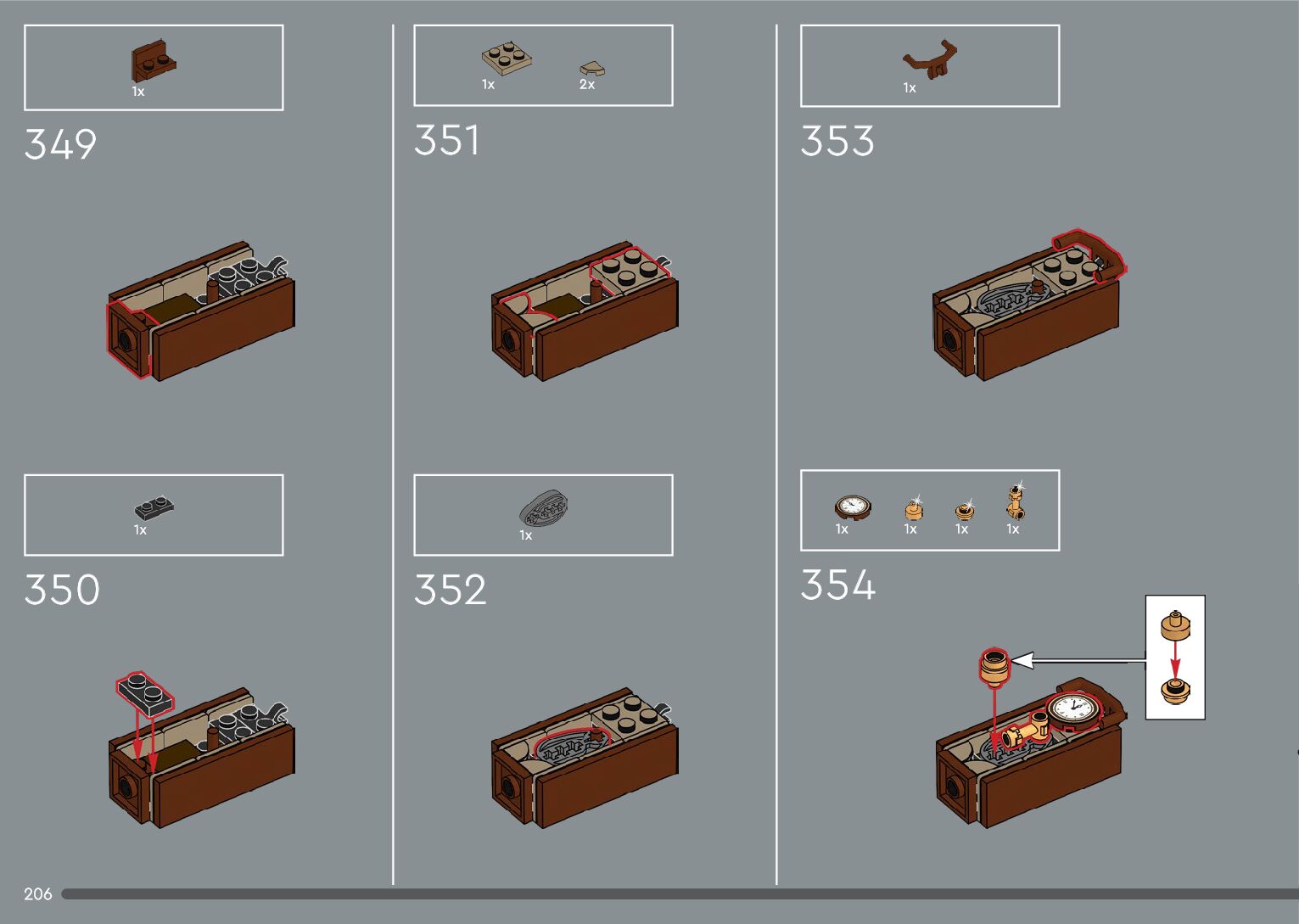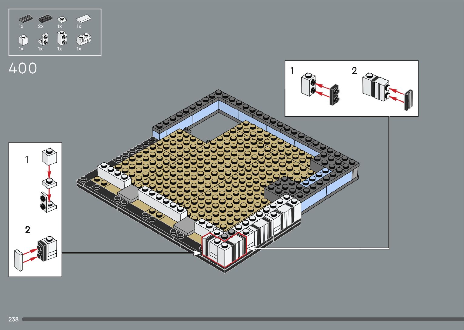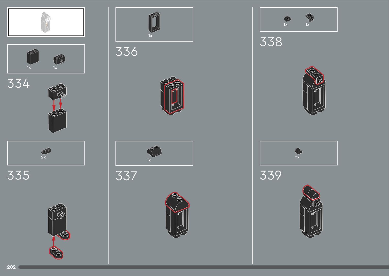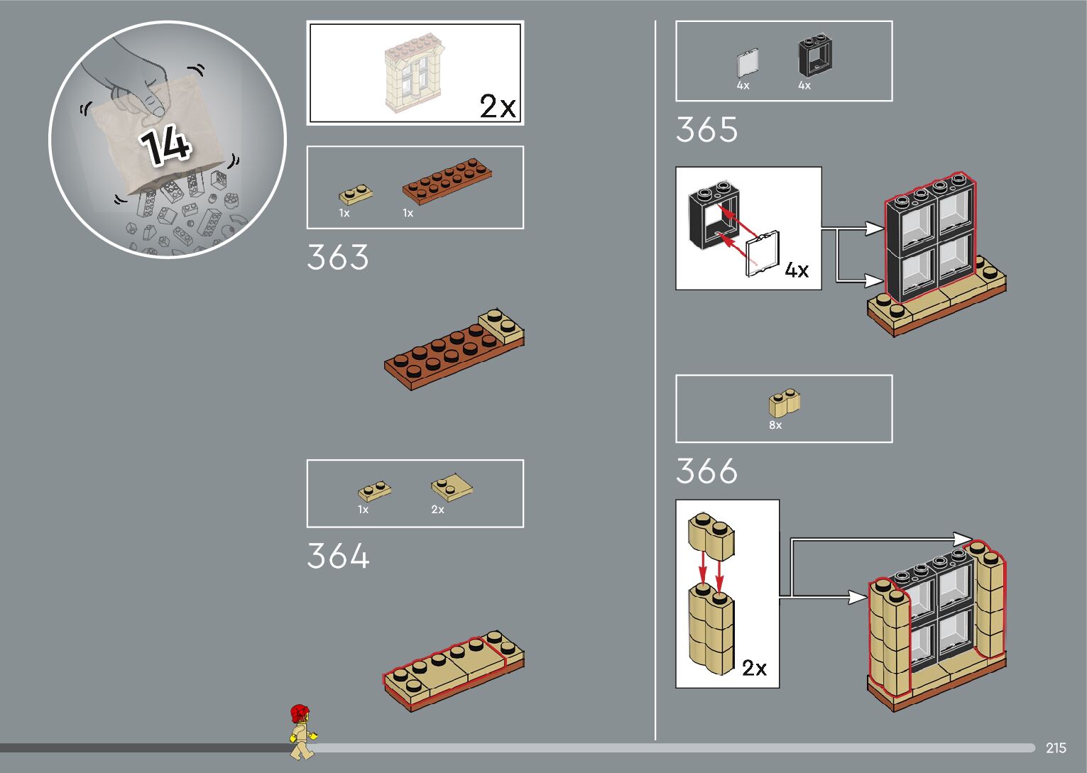 The assembly guide is prepared in a very understandable way for children and adult LEGO enthusiasts. A total of 344 picture galleries are shown, explaining the step-by-step construction stages for 1 different structures.