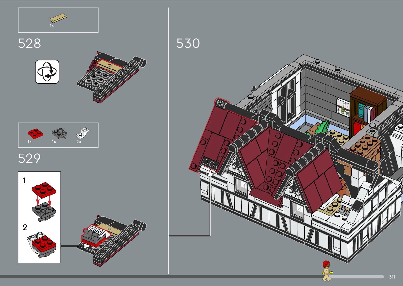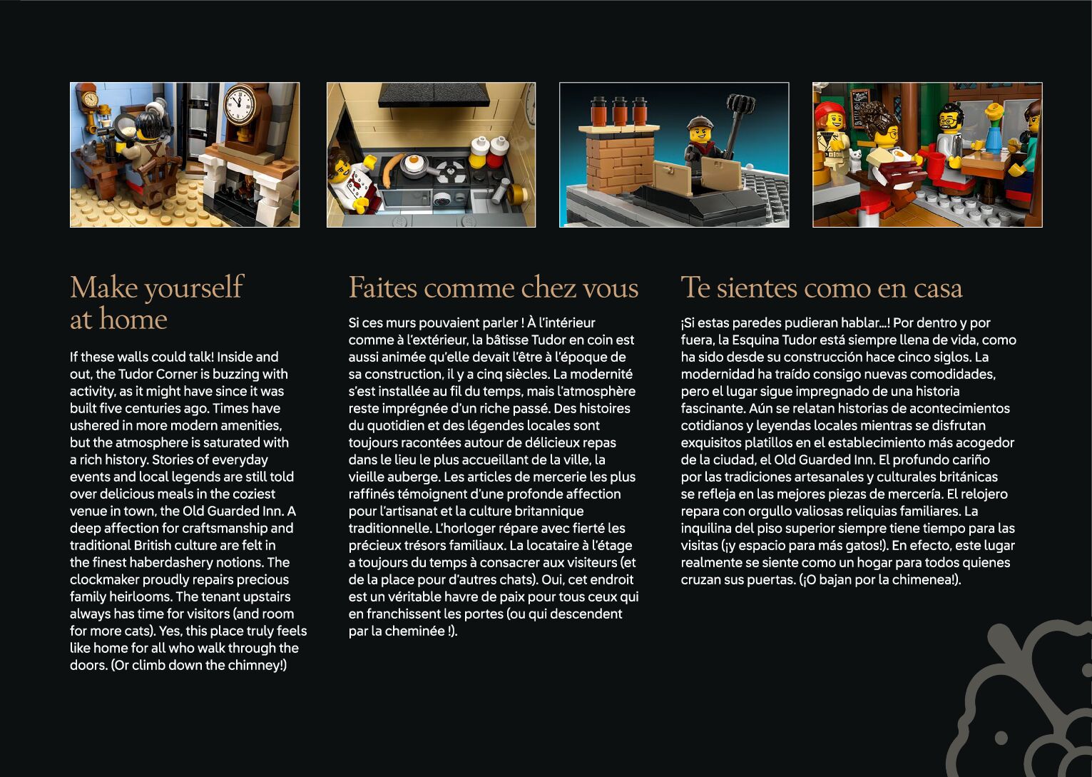 This page shares information about LEGO Tudor Corner manual, LEGO 10350 PDF instructions, LEGO Tudor Corner building guide online, How to build Tudor Corner LEGO.