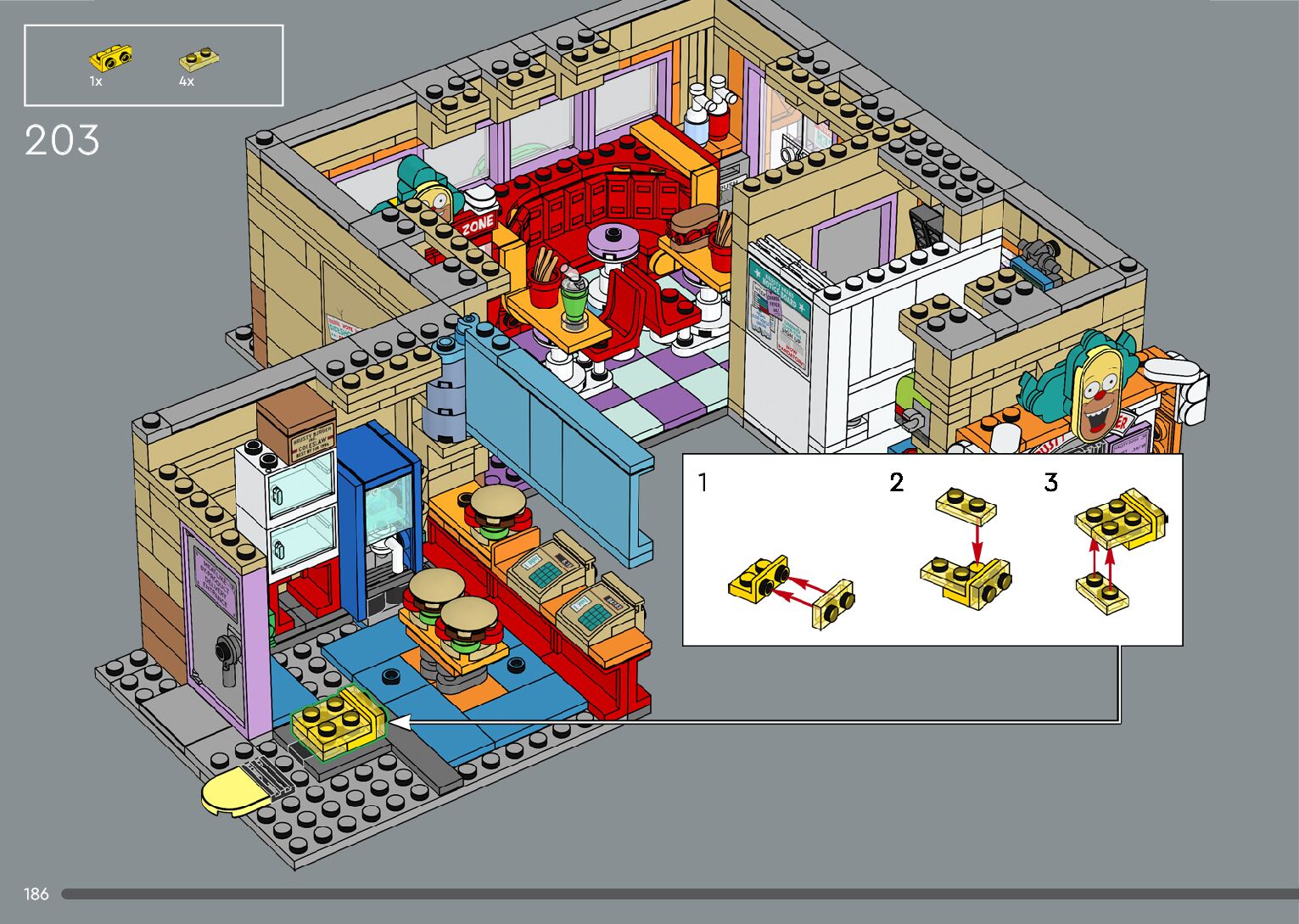 This page shares information about LEGO The Simpsons™: Krusty Burger manual, LEGO 10352 PDF instructions, LEGO The Simpsons™: Krusty Burger building guide online, How to build The Simpsons™: Krusty Burger LEGO.