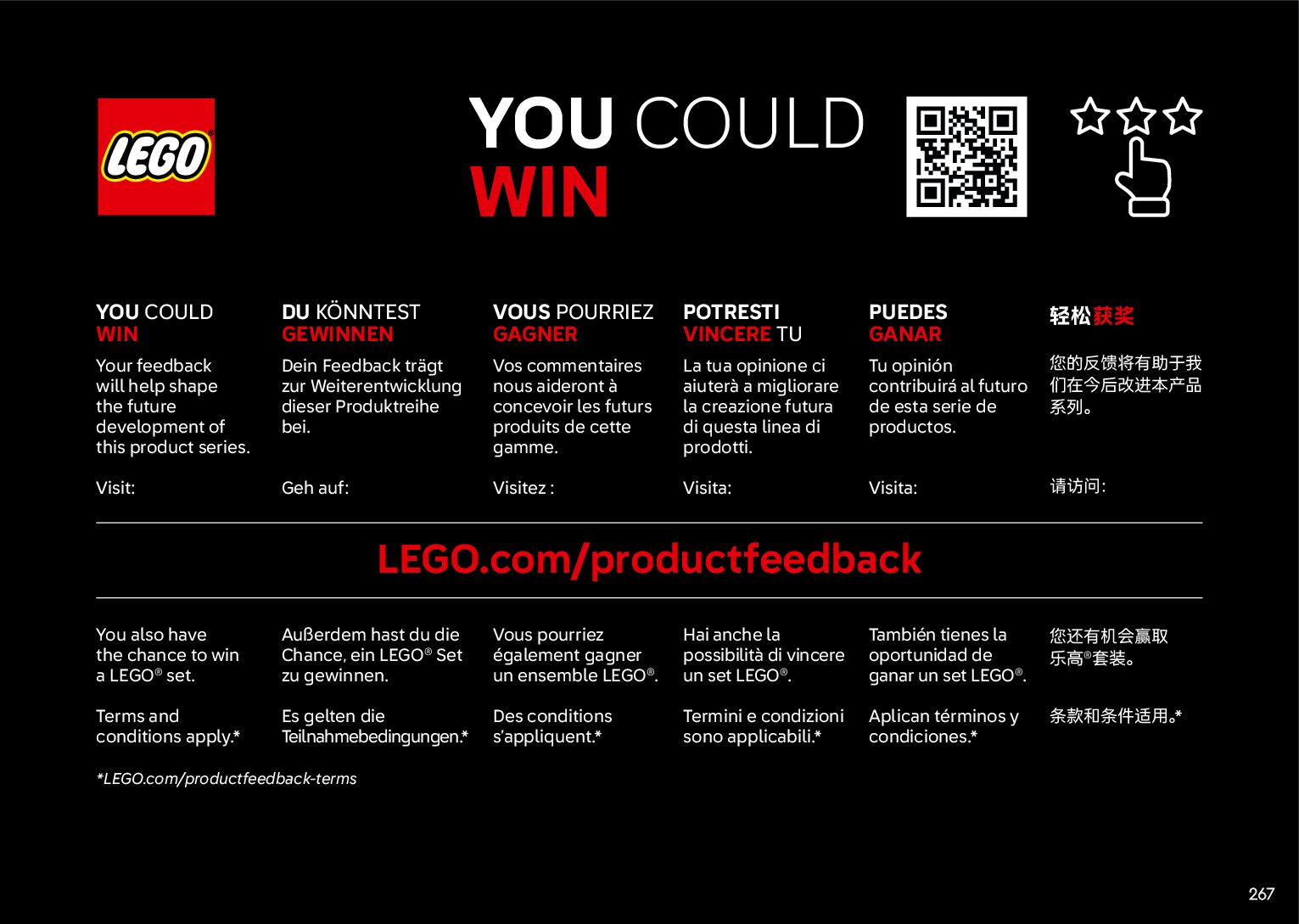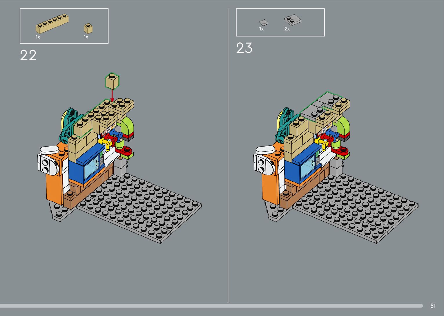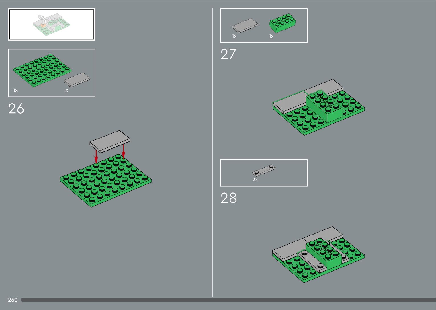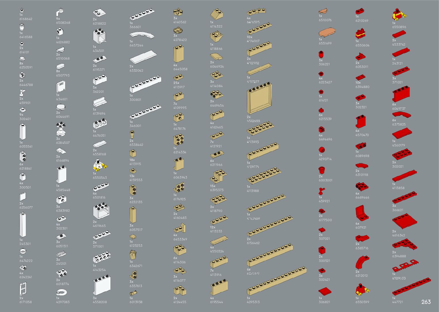 The assembly guide is prepared in a very understandable way for children and adult LEGO enthusiasts. A total of 268 picture galleries are shown, explaining the step-by-step construction stages for 1 different structures.