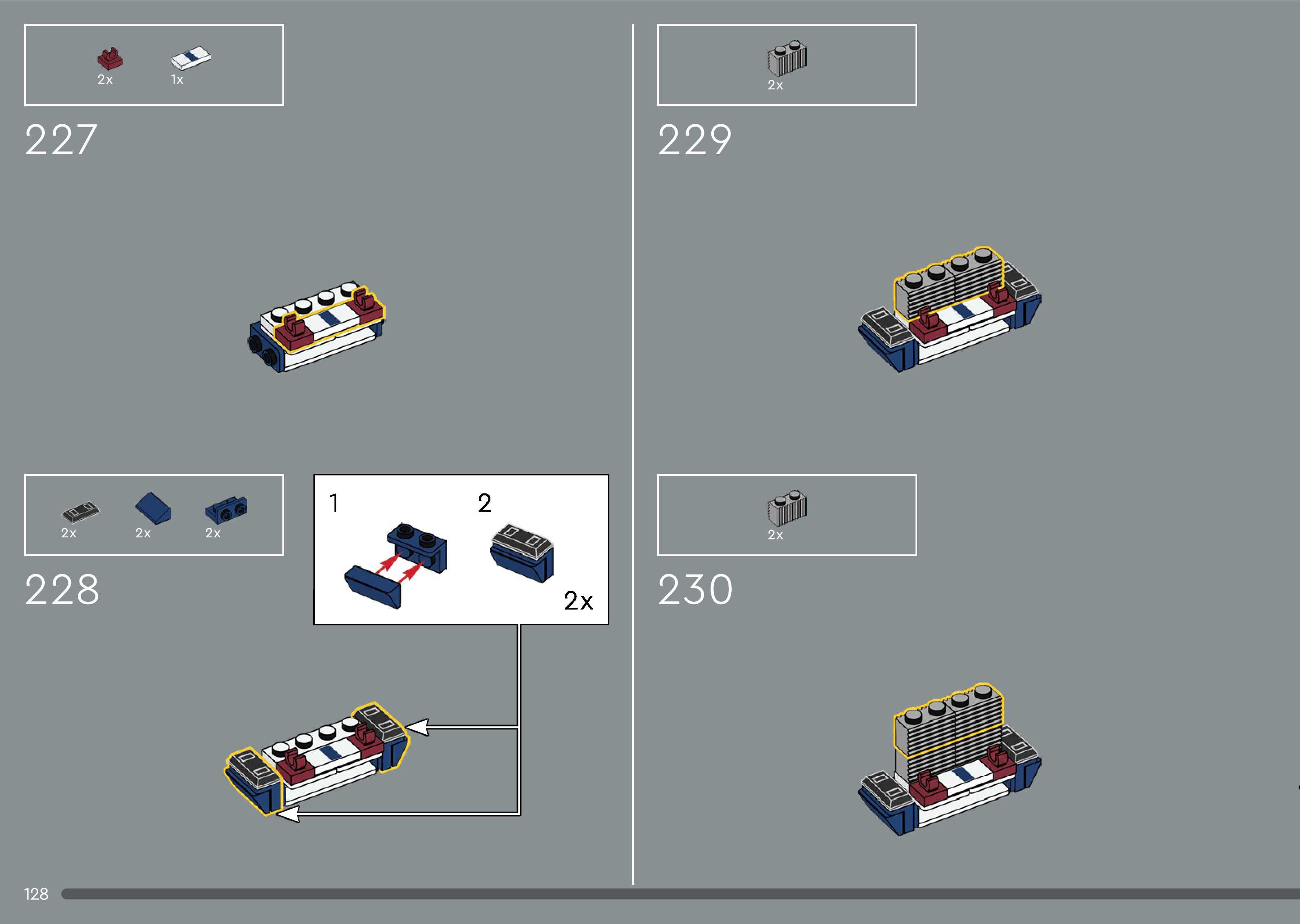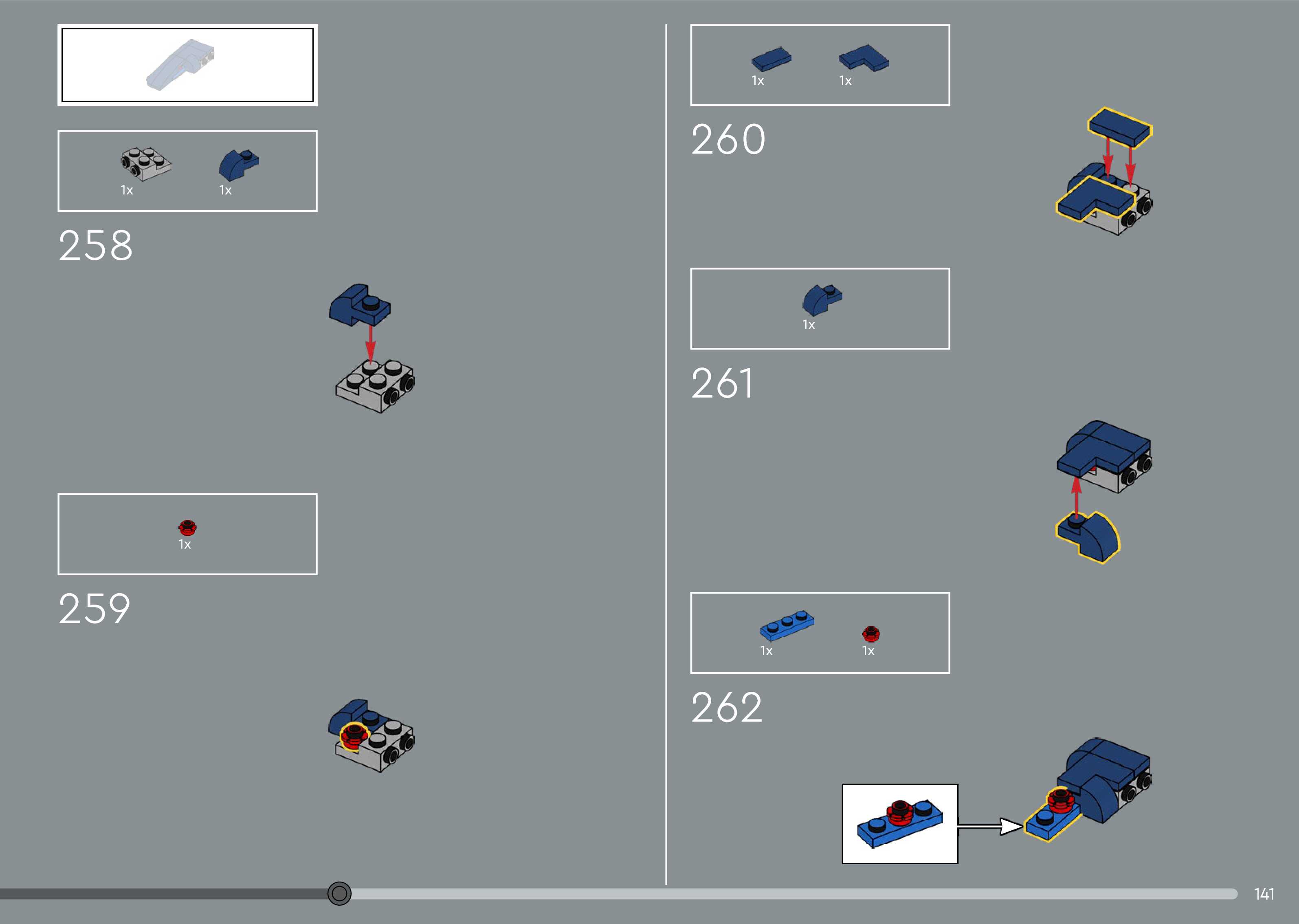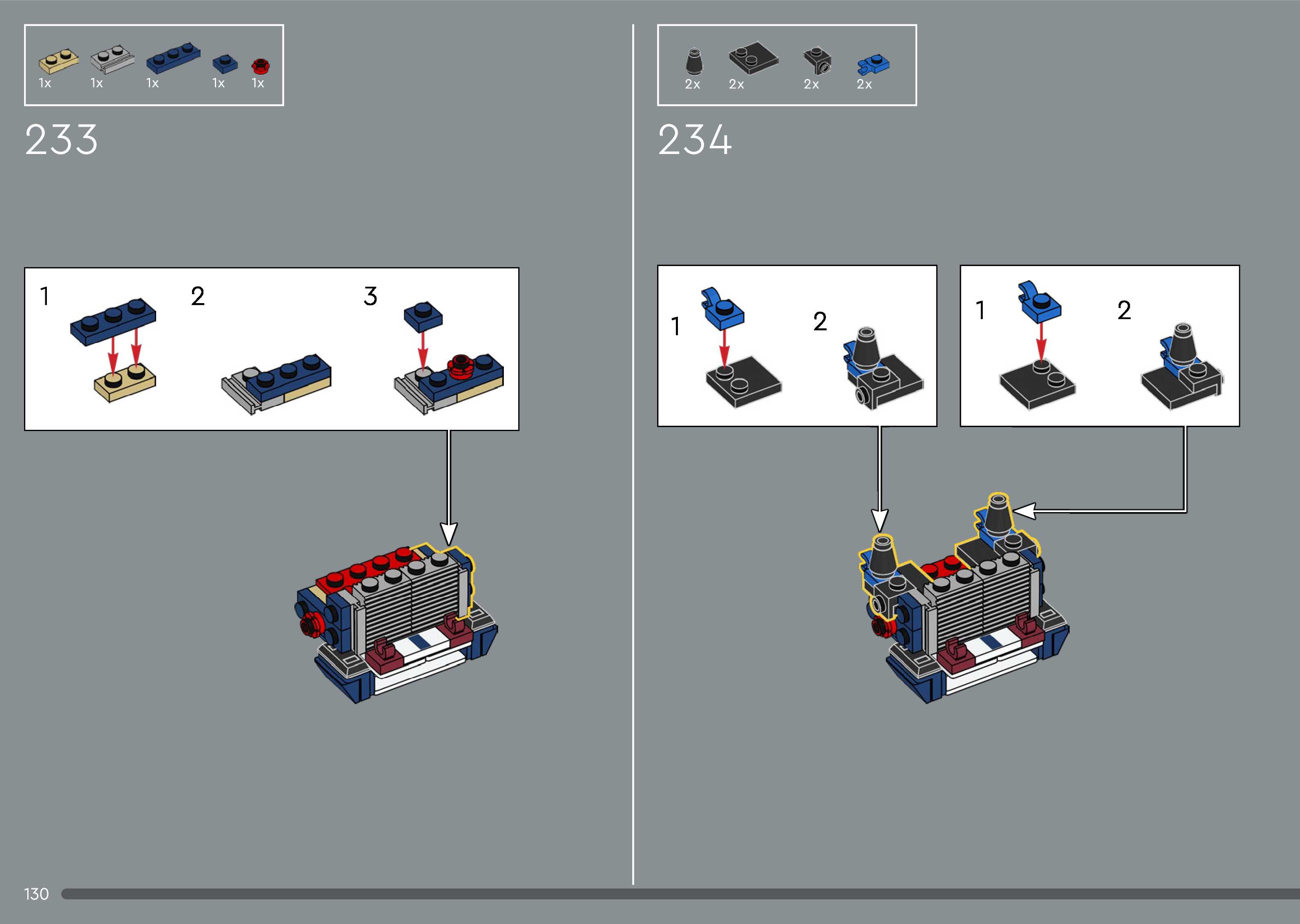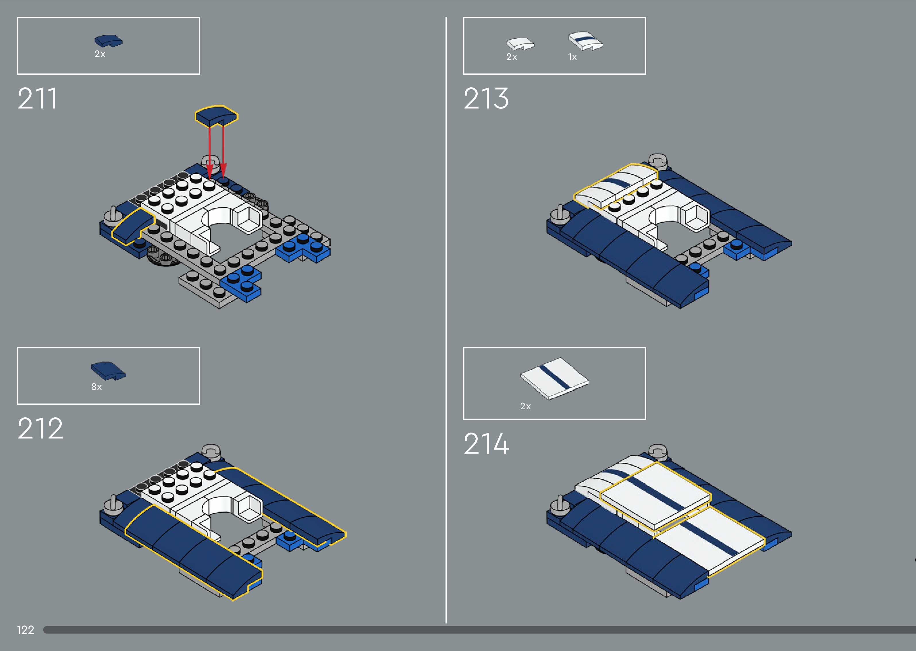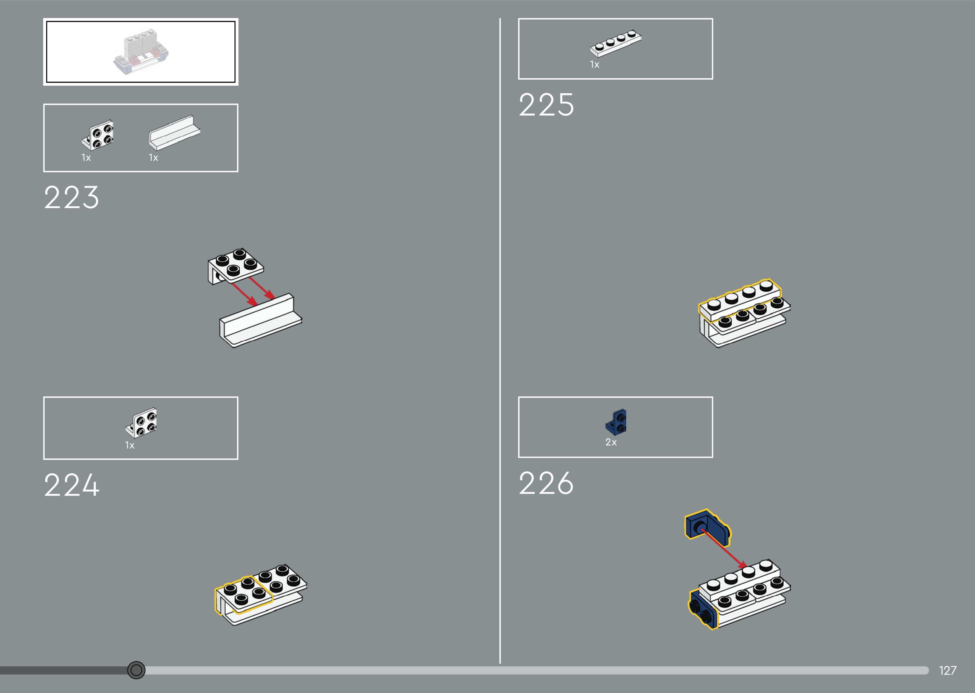 The assembly guide is prepared in a very understandable way for children and adult LEGO enthusiasts. A total of 224 picture galleries are shown, explaining the step-by-step construction stages for 1 different structures.