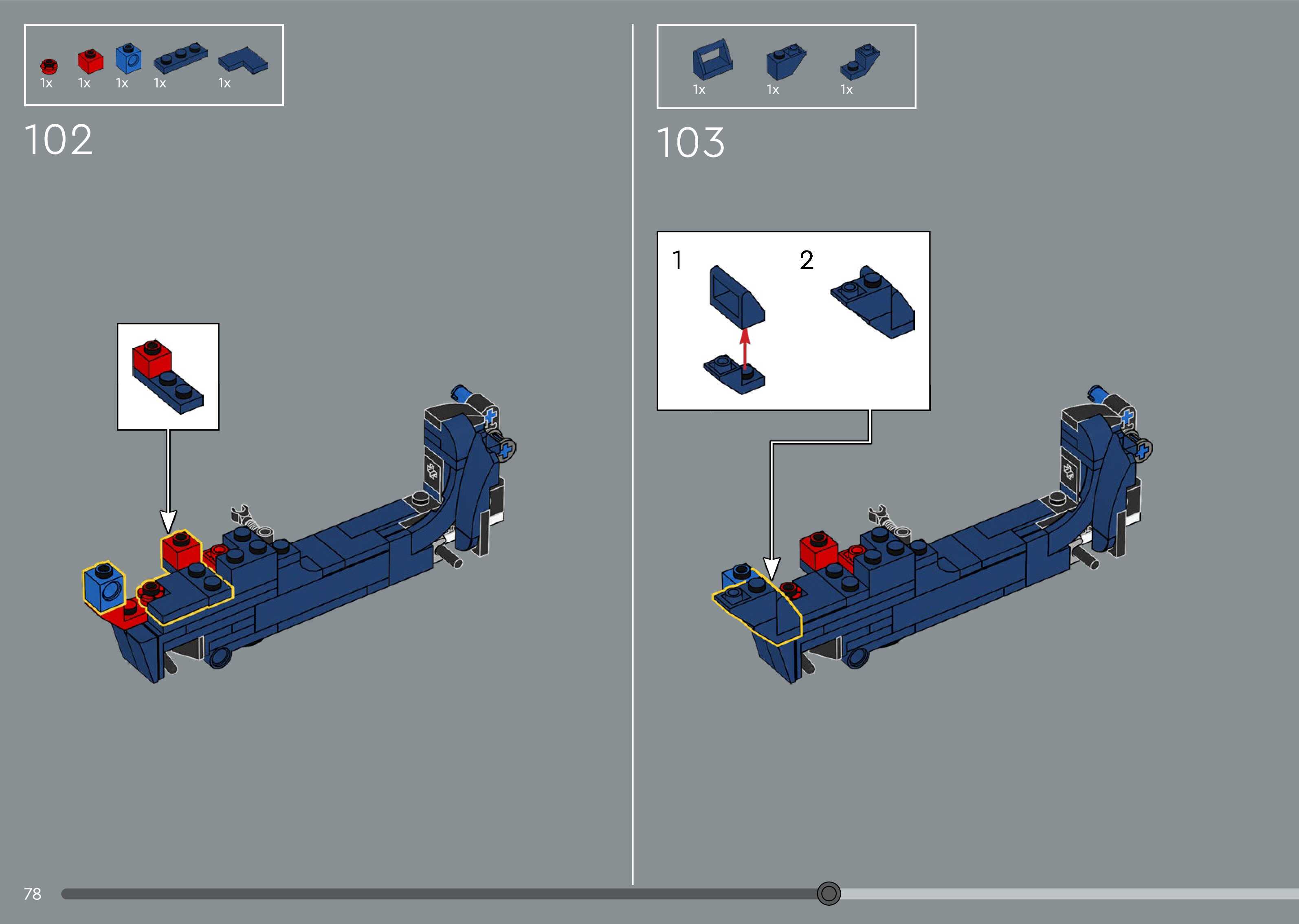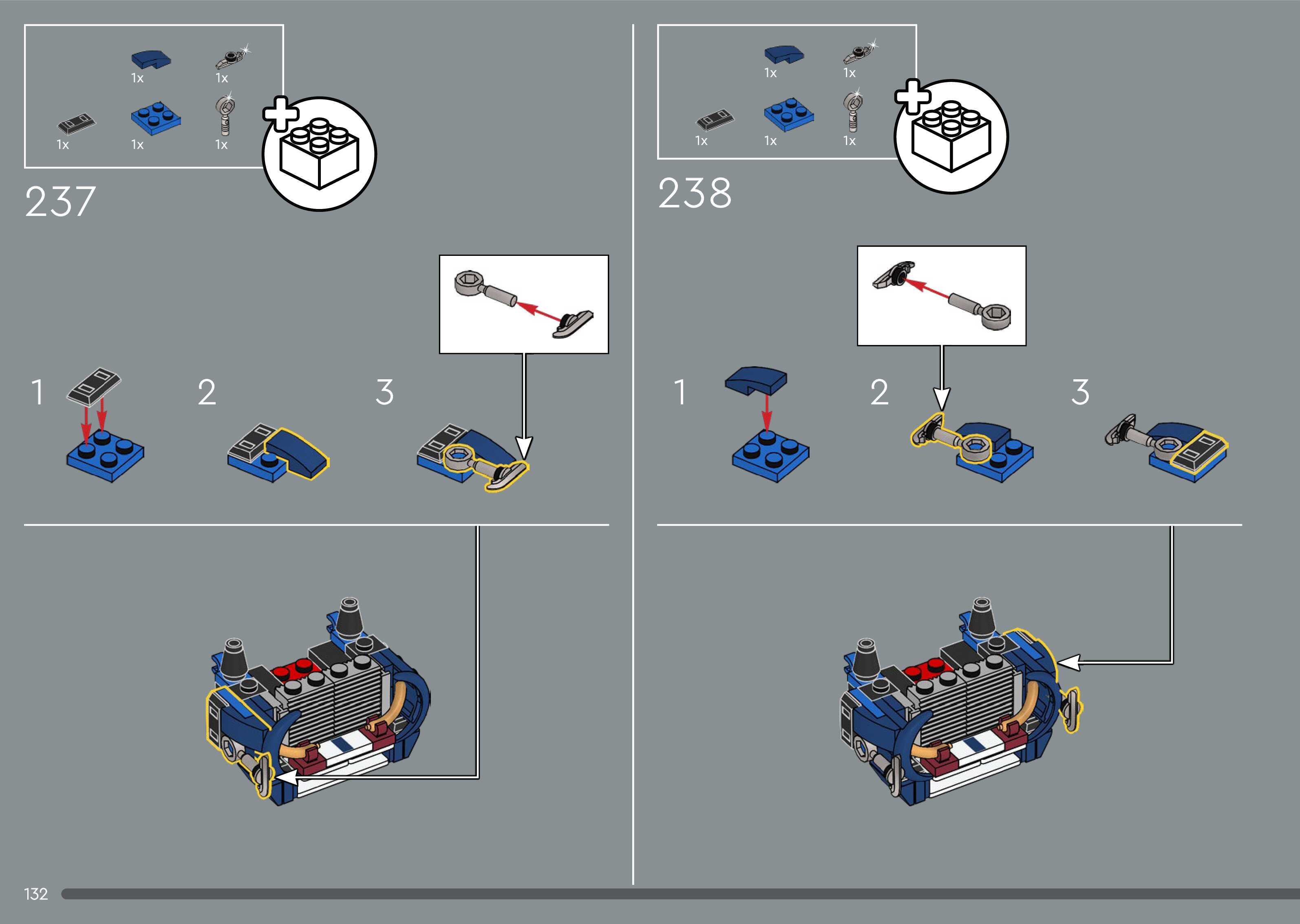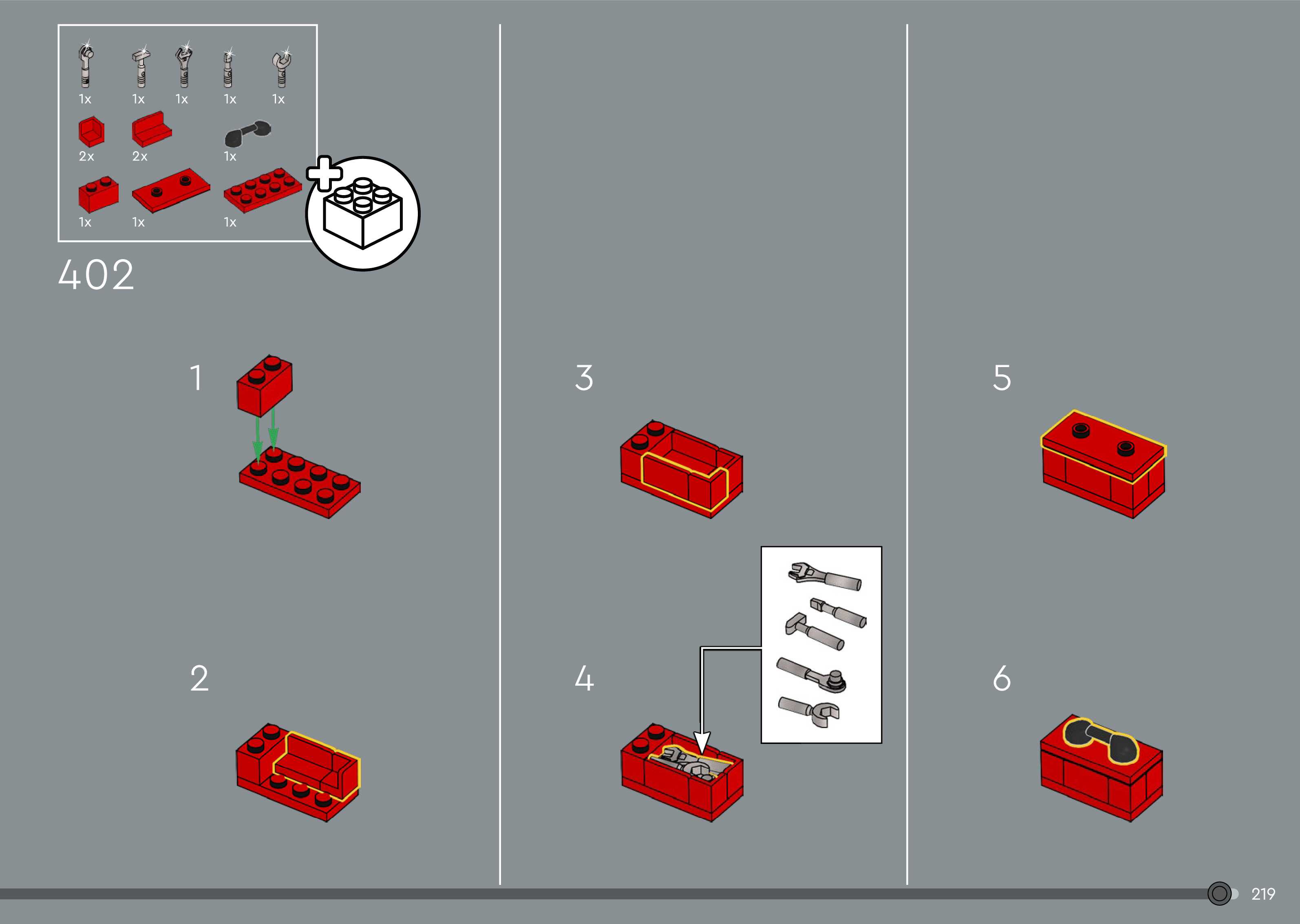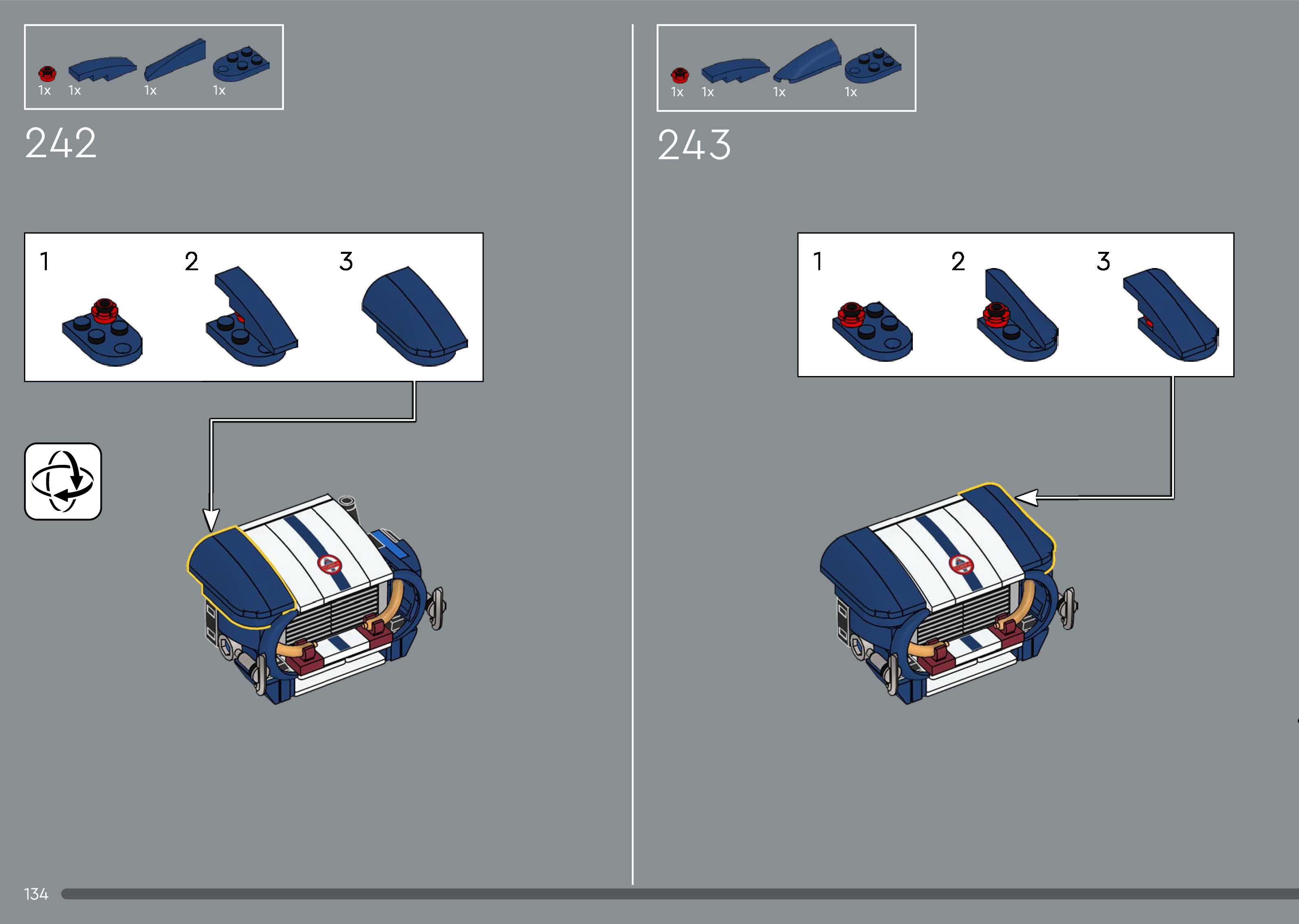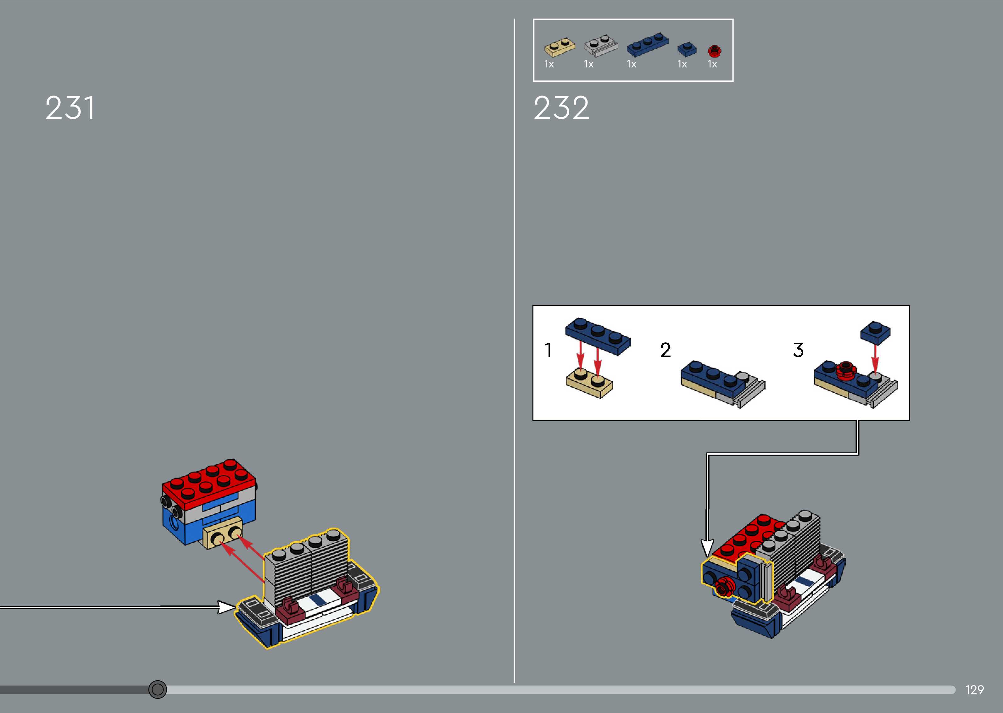 The assembly guide is prepared in a very understandable way for children and adult LEGO enthusiasts. A total of 224 picture galleries are shown, explaining the step-by-step construction stages for 1 different structures.