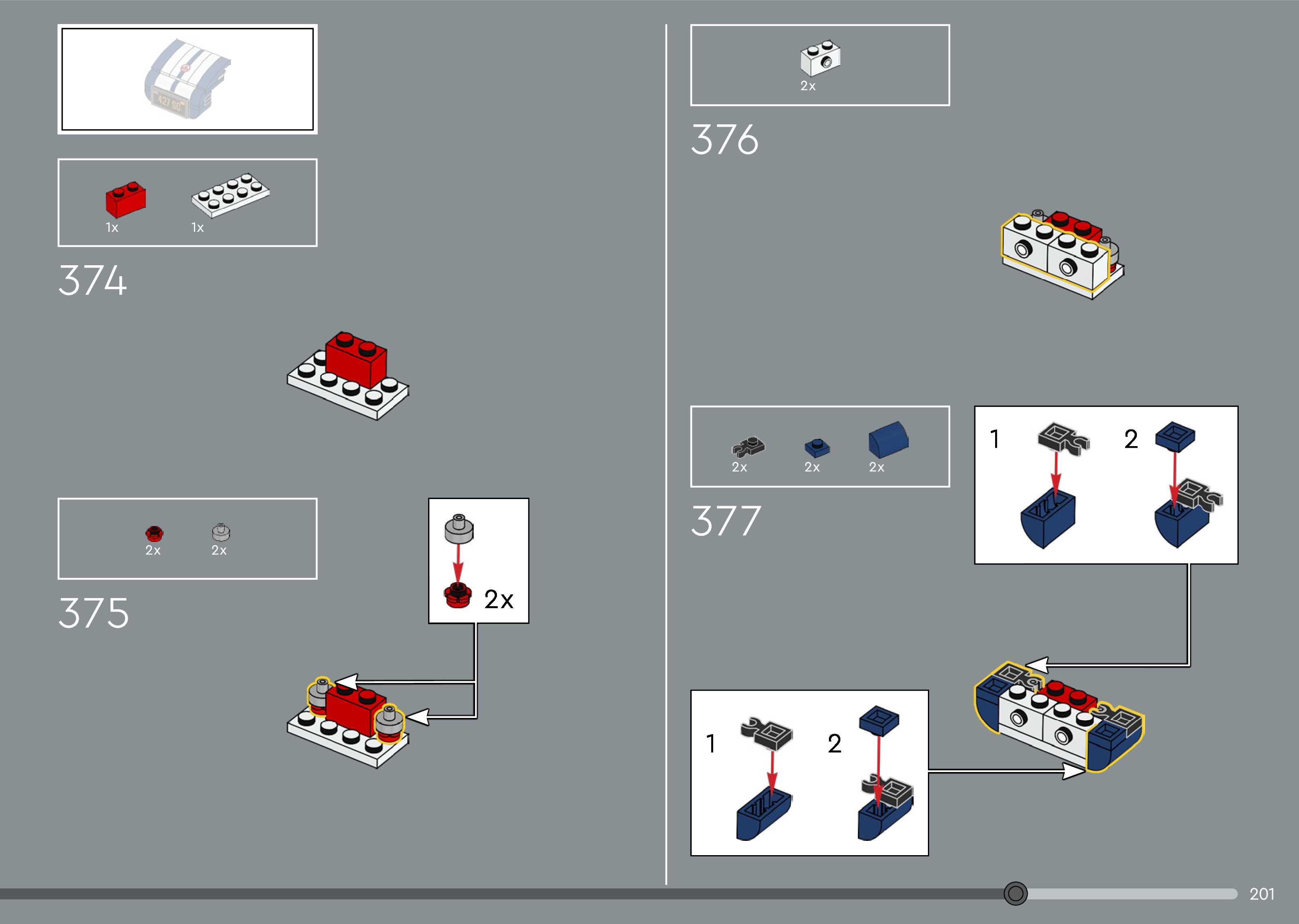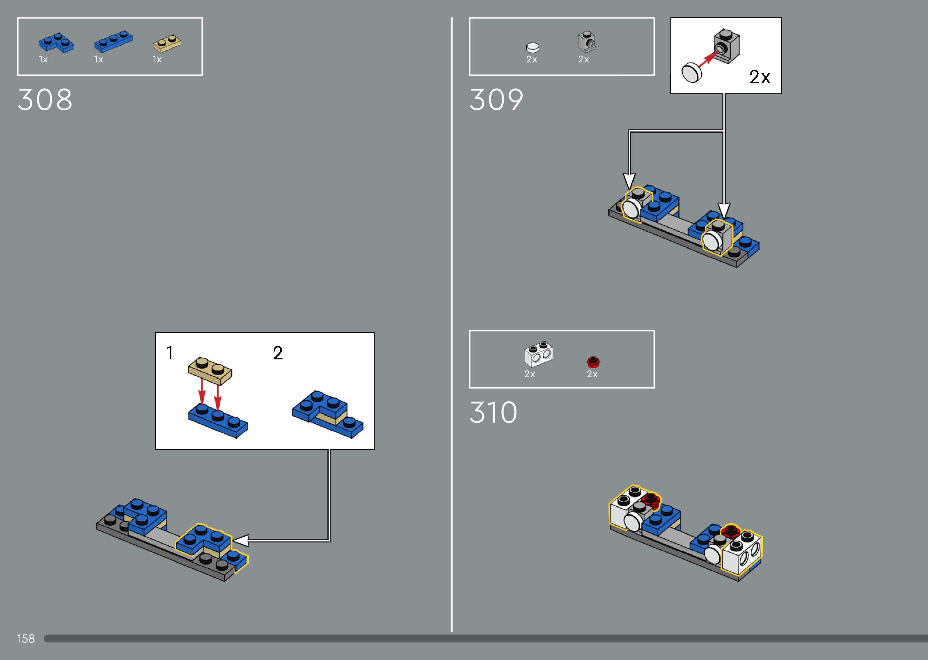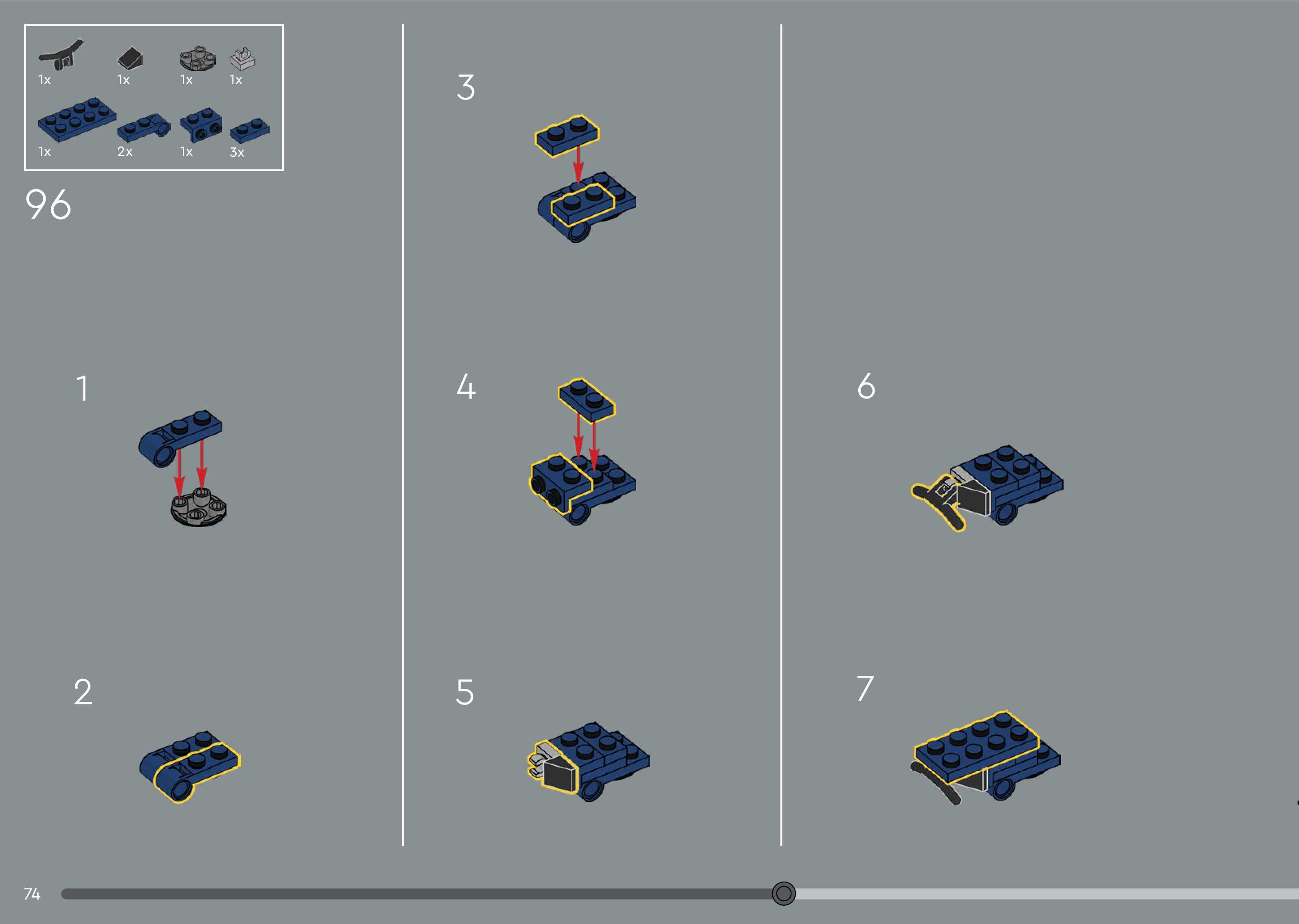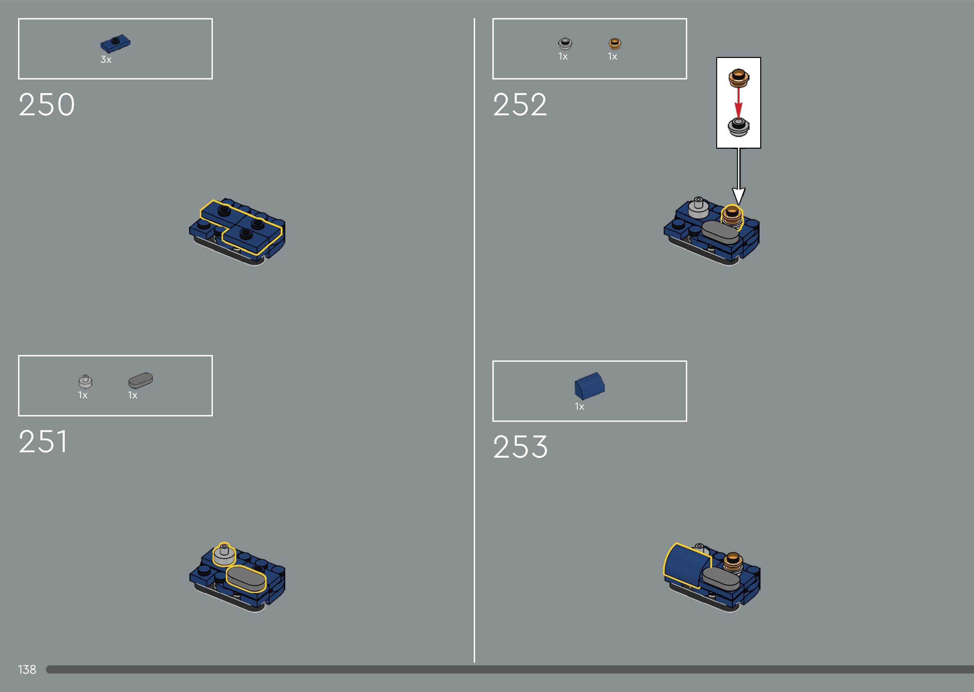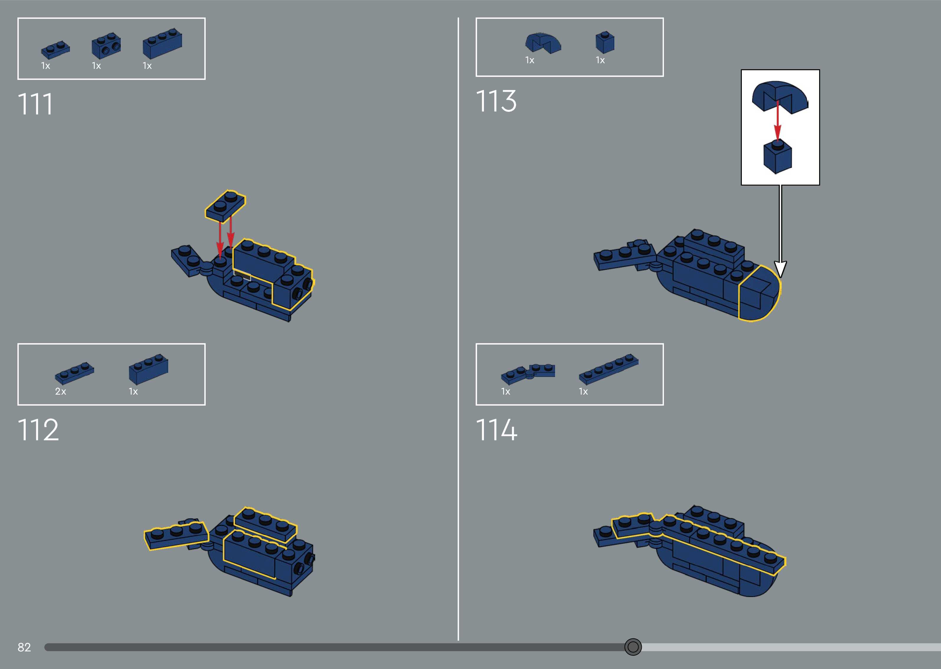The assembly guide is prepared in a very understandable way for children and adult LEGO enthusiasts. A total of 224 picture galleries are shown, explaining the step-by-step construction stages for 1 different structures.