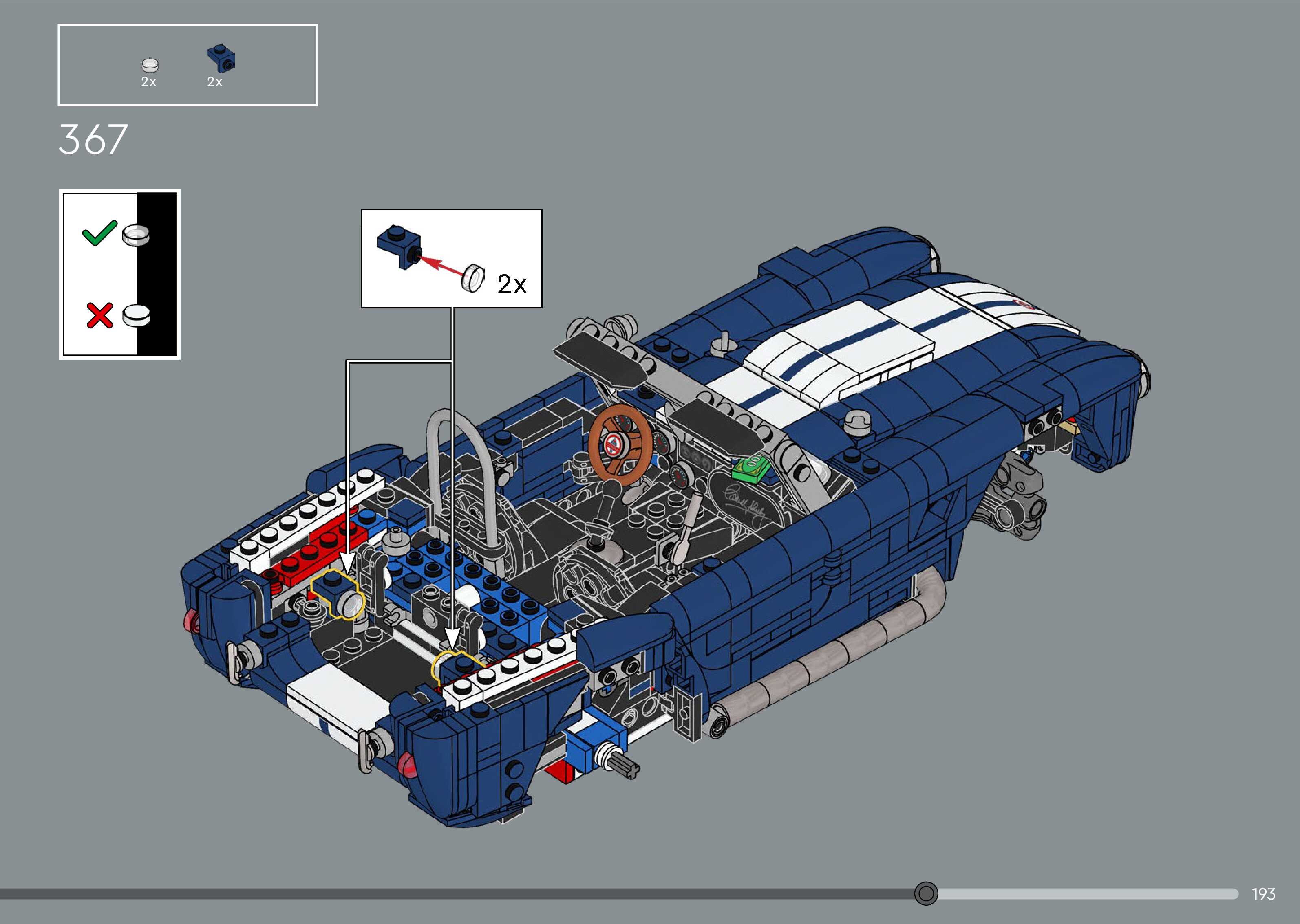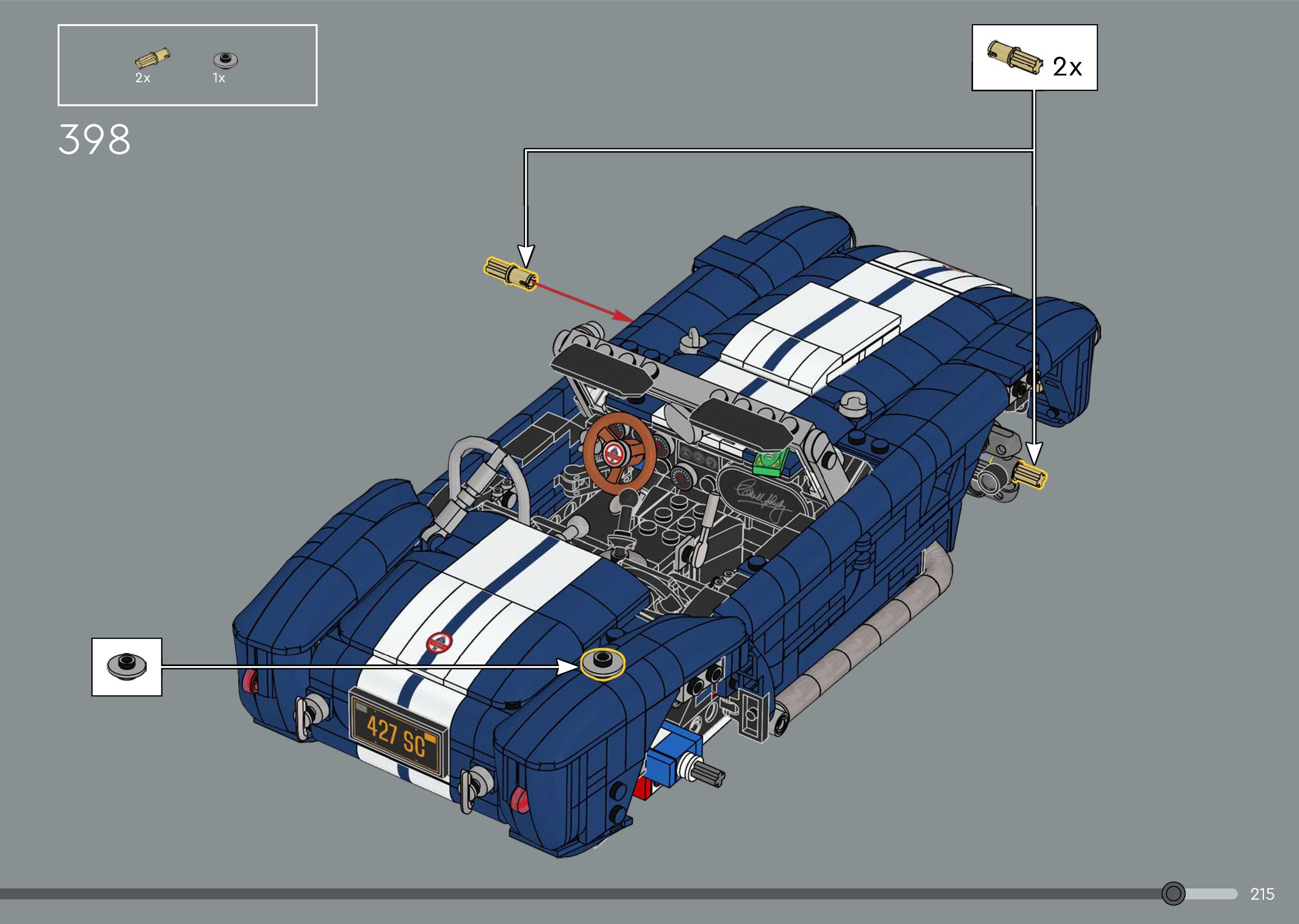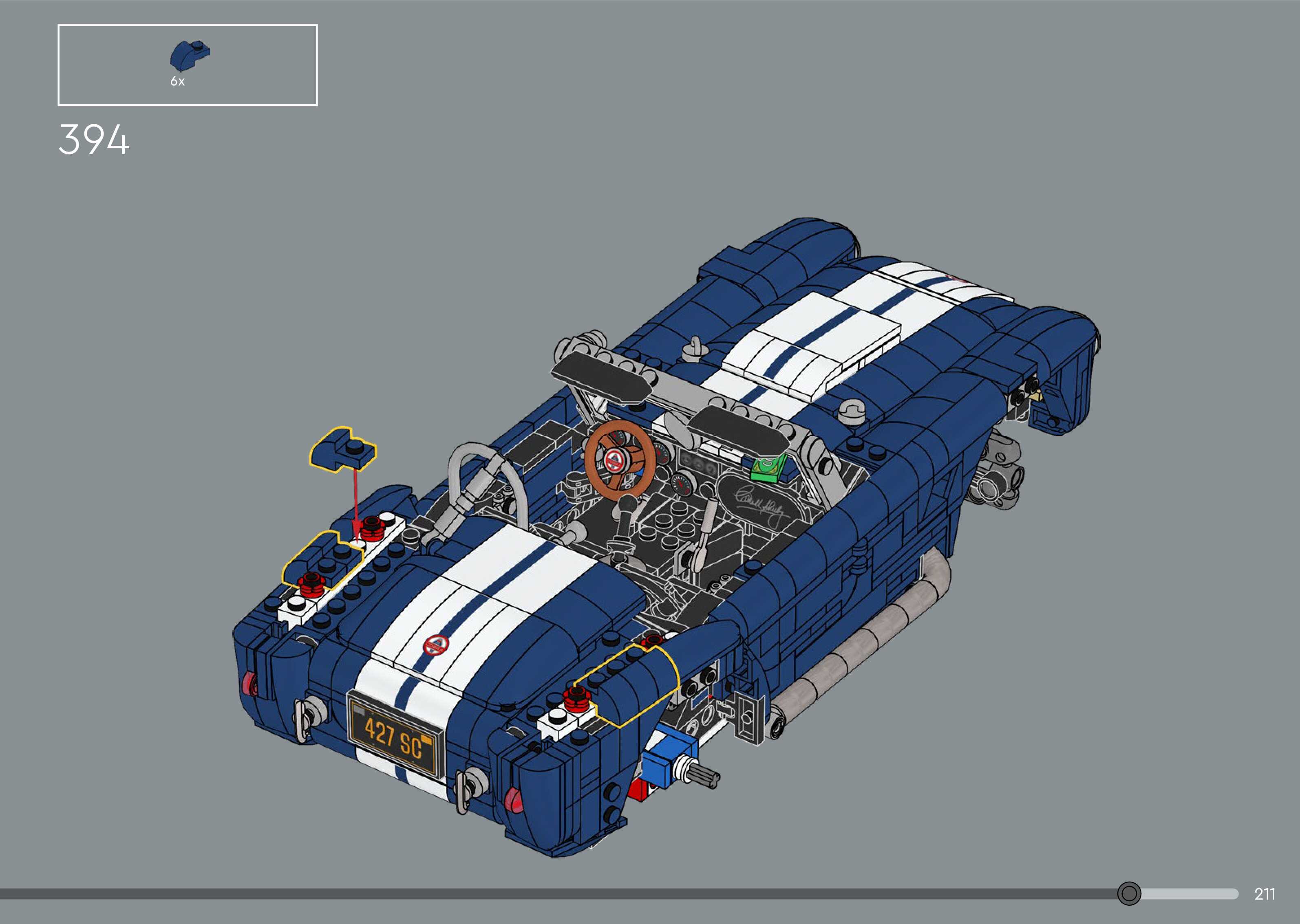 This page shares information about LEGO Shelby Cobra 427 S/C manual, LEGO 10357 PDF instructions, LEGO Shelby Cobra 427 S/C building guide online, How to build Shelby Cobra 427 S/C LEGO.