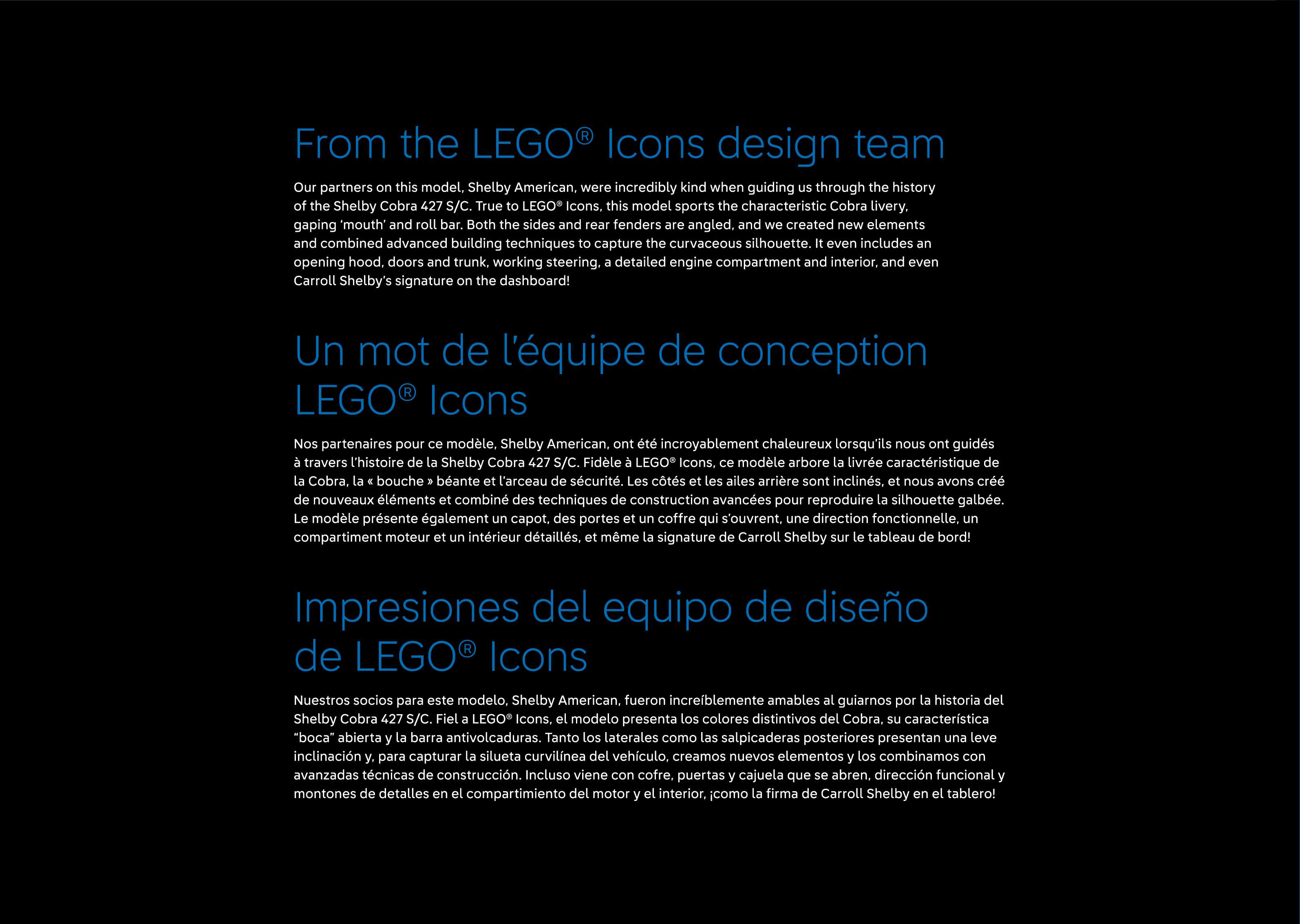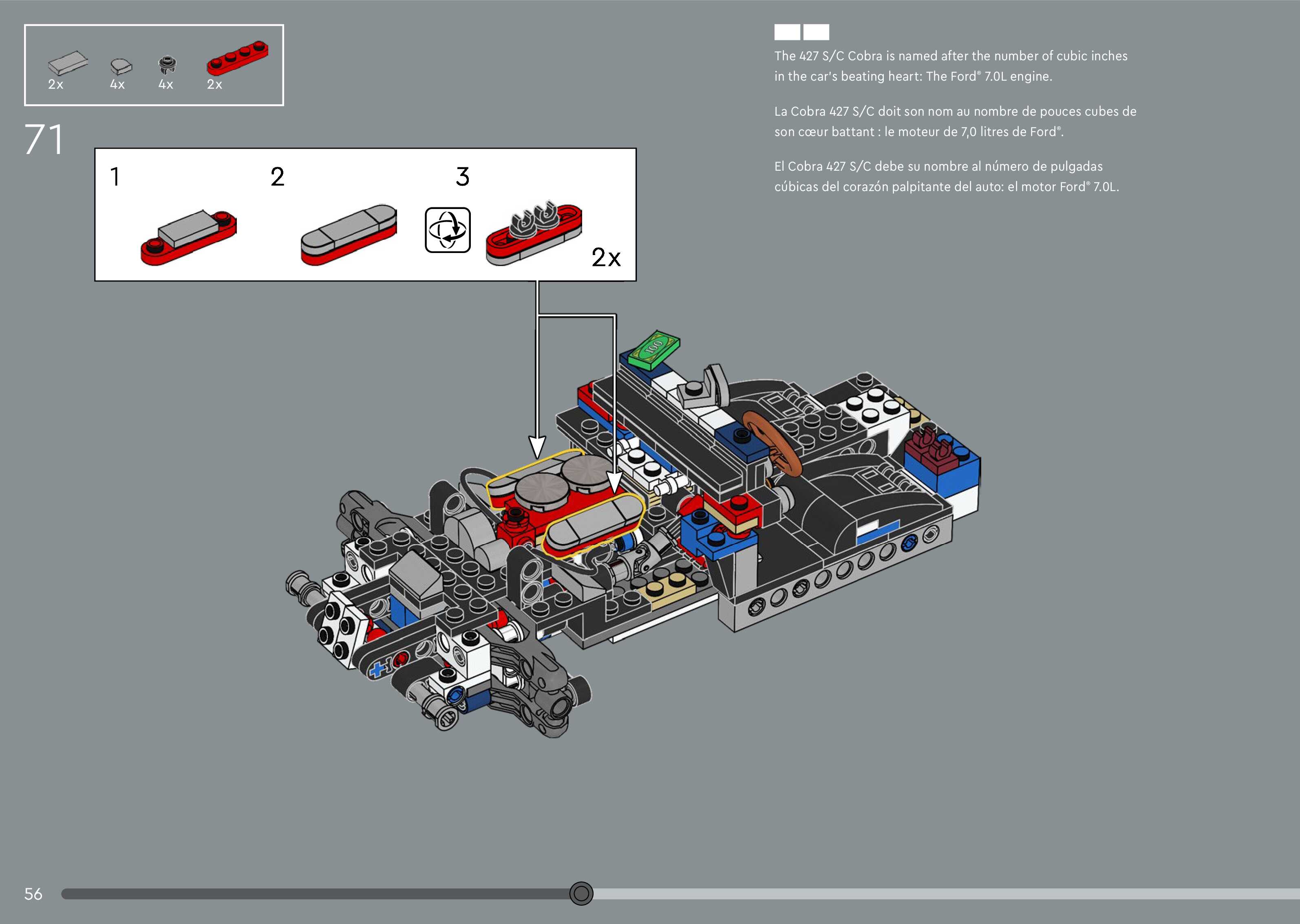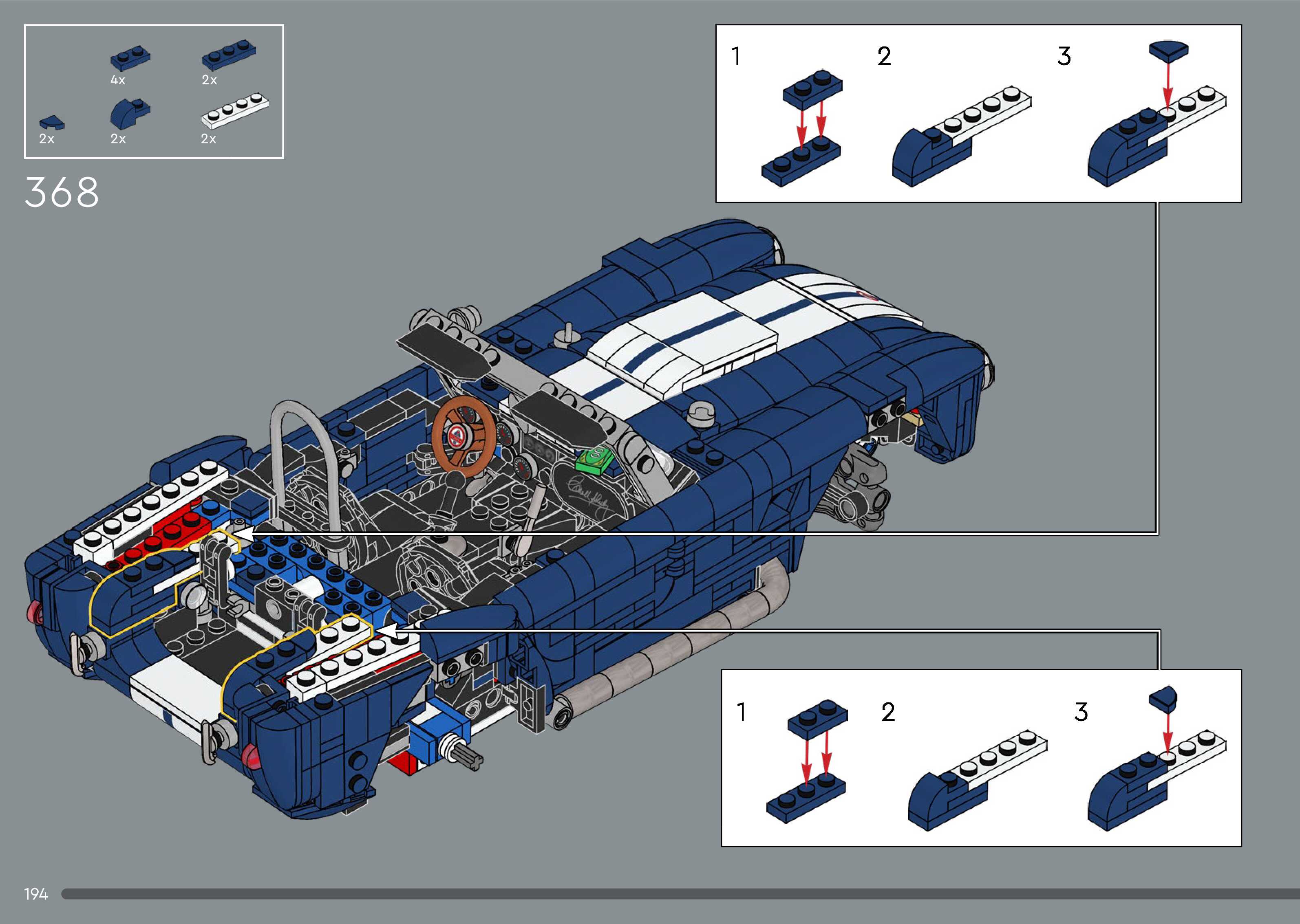 This page shares information about LEGO Shelby Cobra 427 S/C manual, LEGO 10357 PDF instructions, LEGO Shelby Cobra 427 S/C building guide online, How to build Shelby Cobra 427 S/C LEGO.