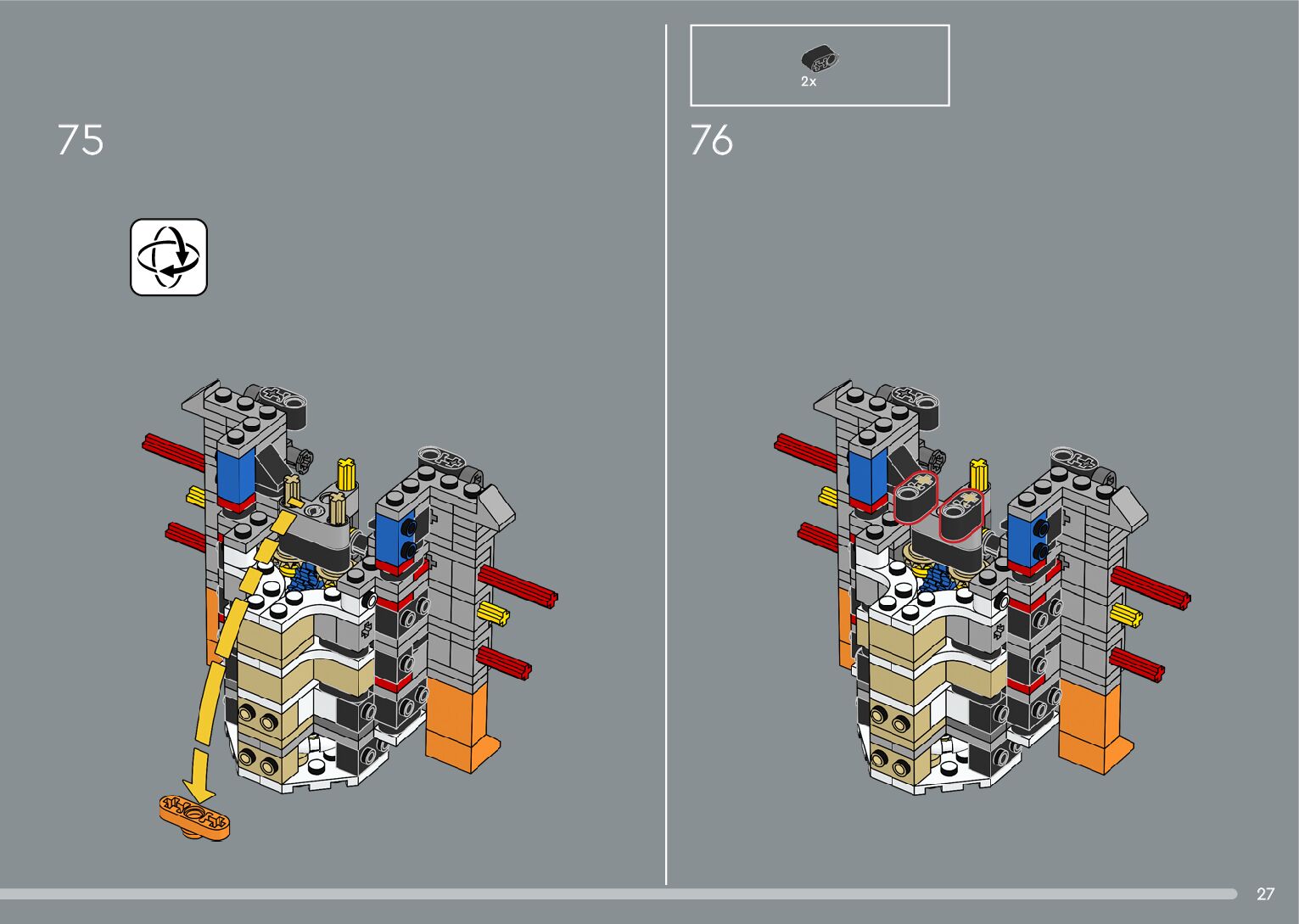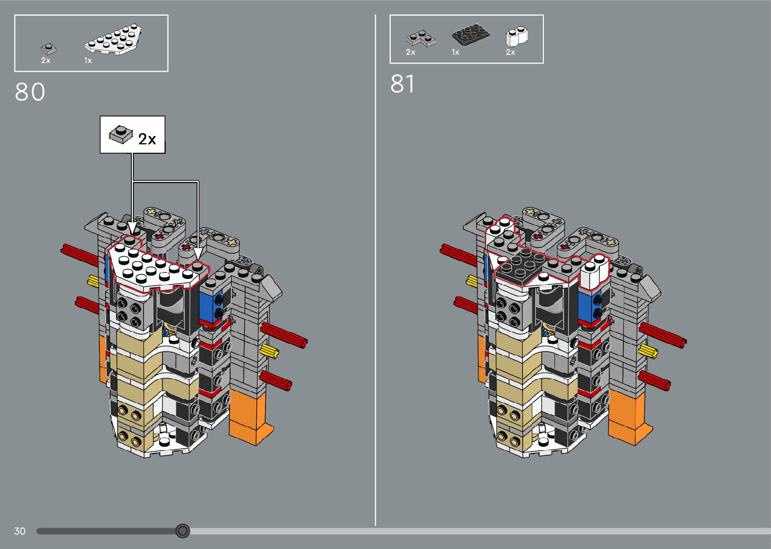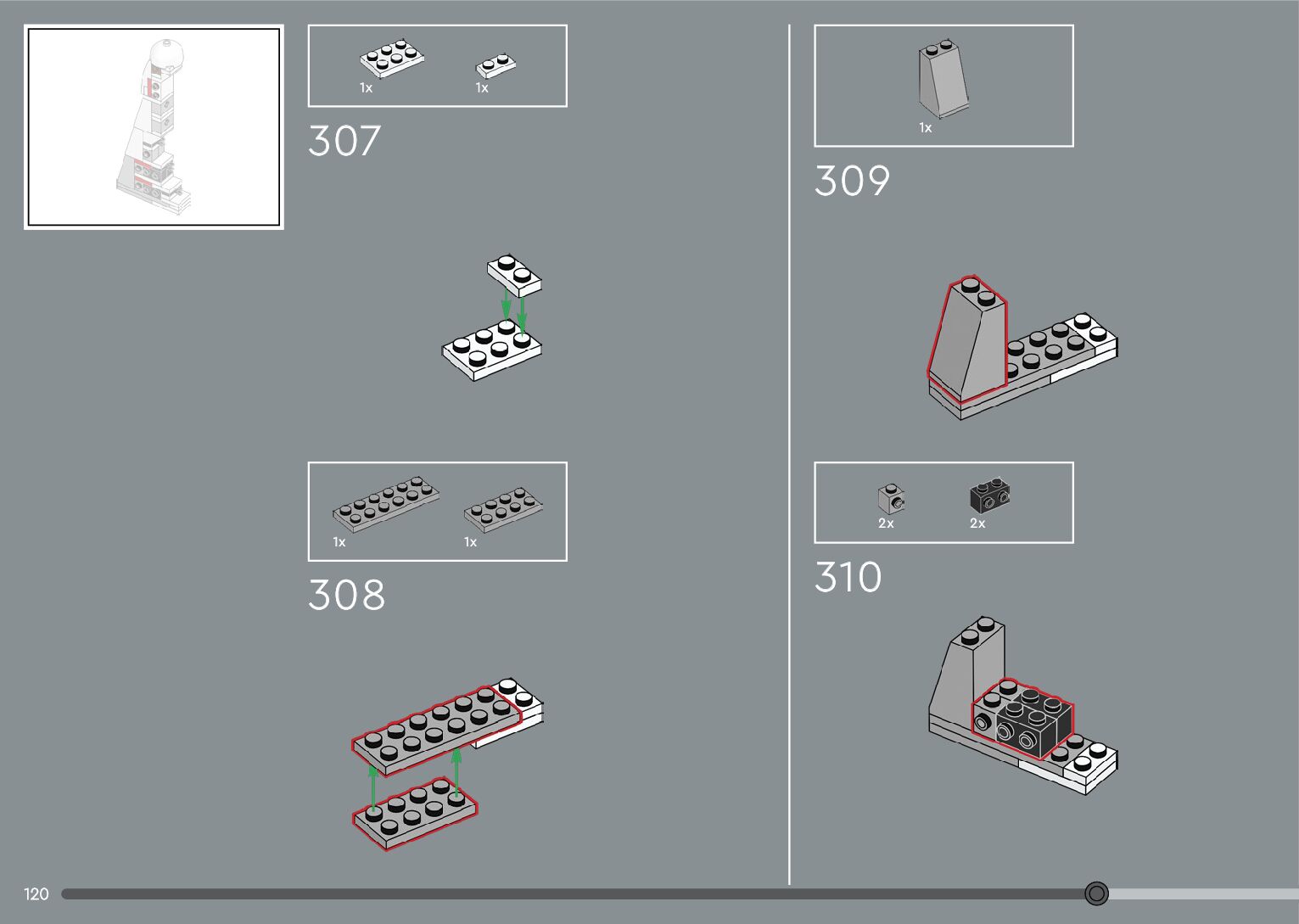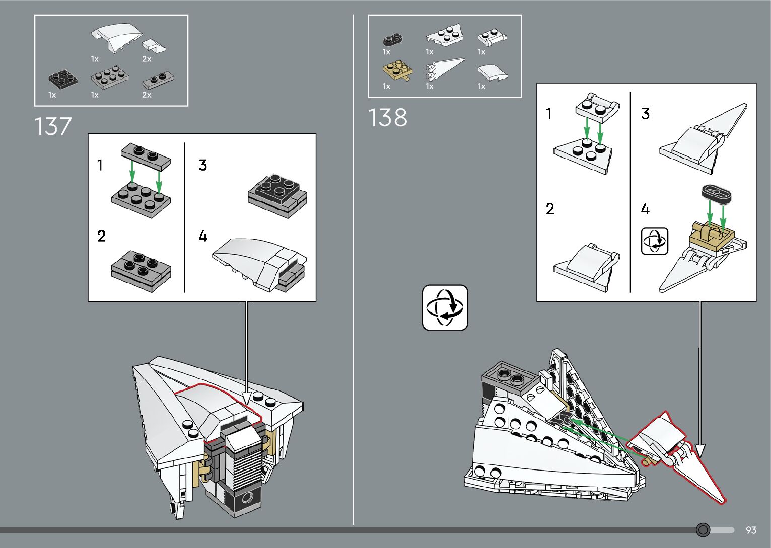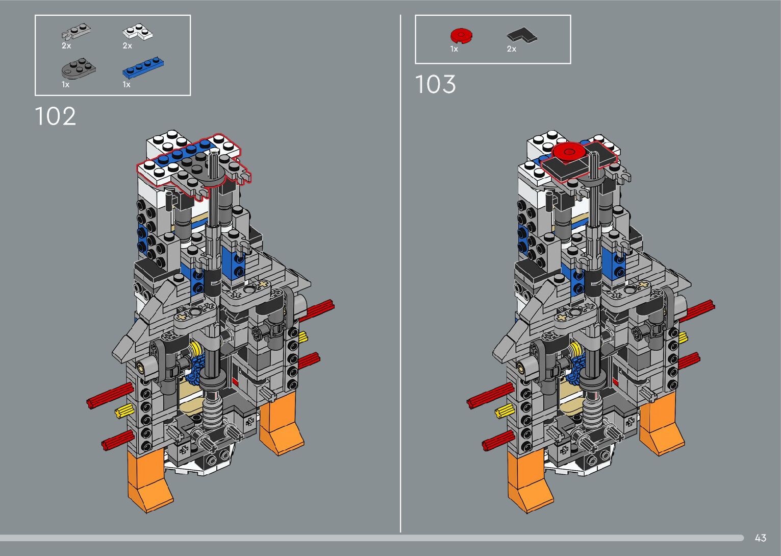 The assembly guide is prepared in a very understandable way for children and adult LEGO enthusiasts. A total of 376 picture galleries are shown, explaining the step-by-step construction stages for 2 different structures.