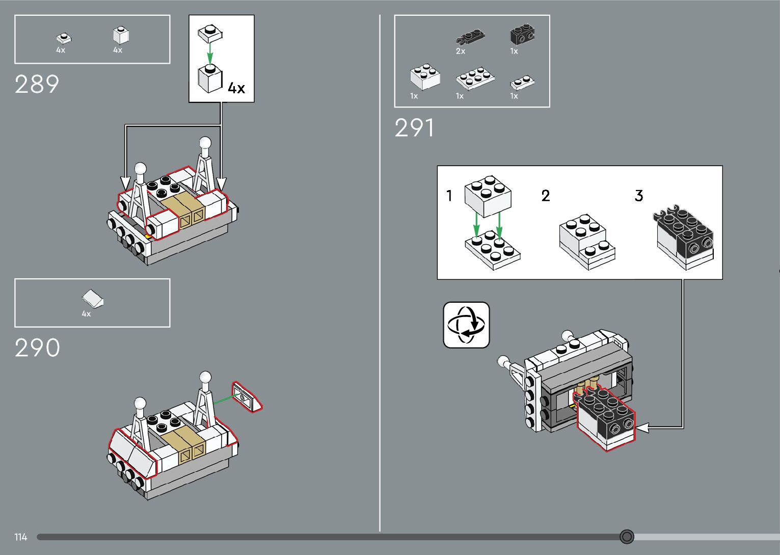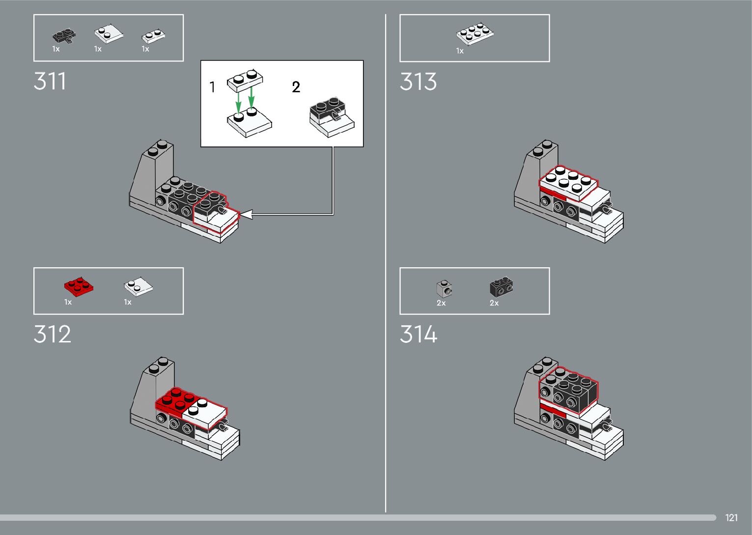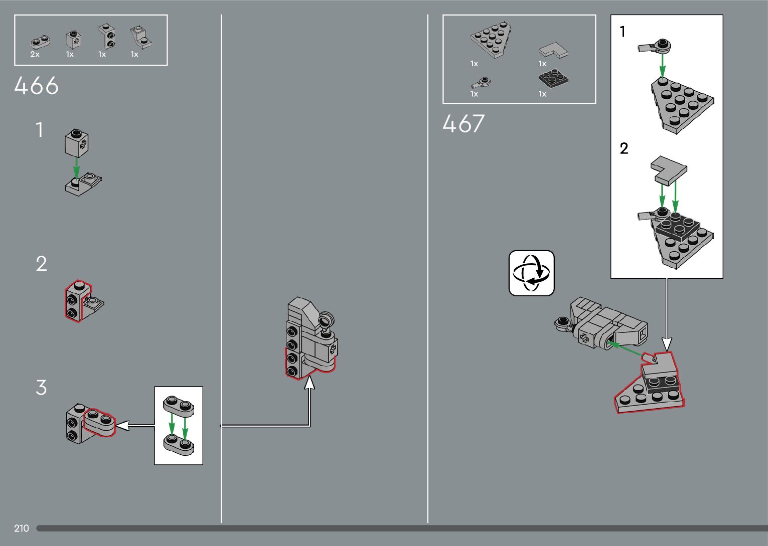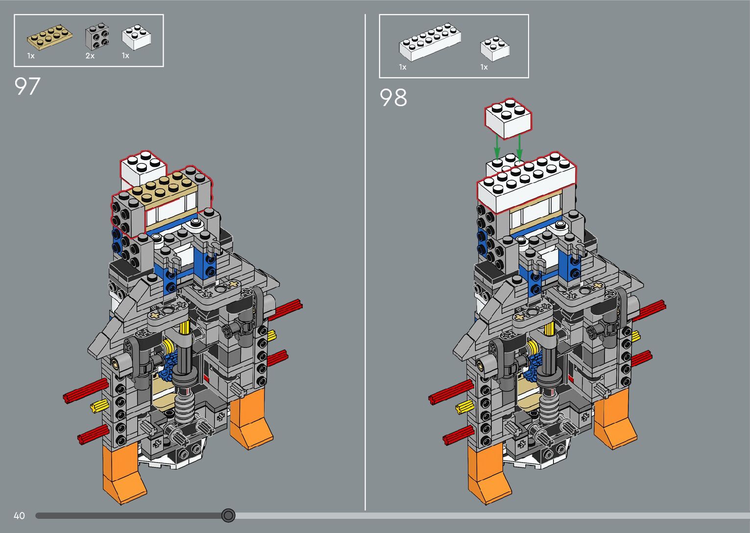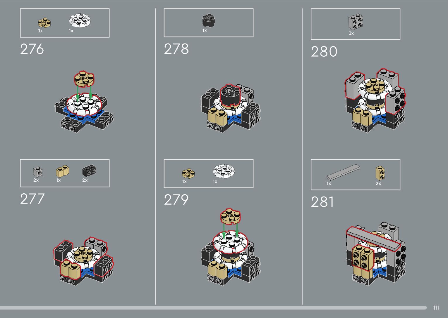 The assembly guide is prepared in a very understandable way for children and adult LEGO enthusiasts. A total of 376 picture galleries are shown, explaining the step-by-step construction stages for 2 different structures.