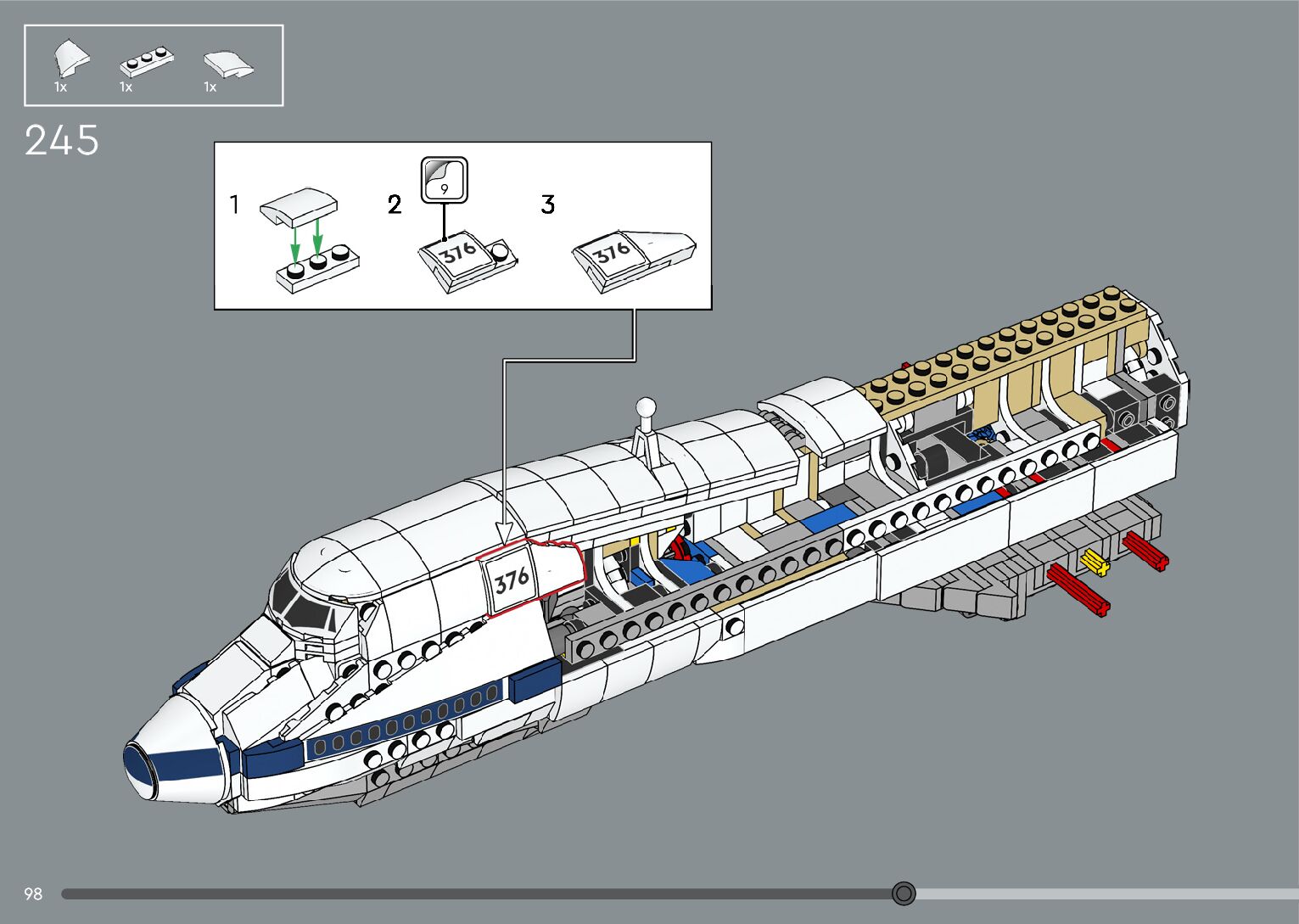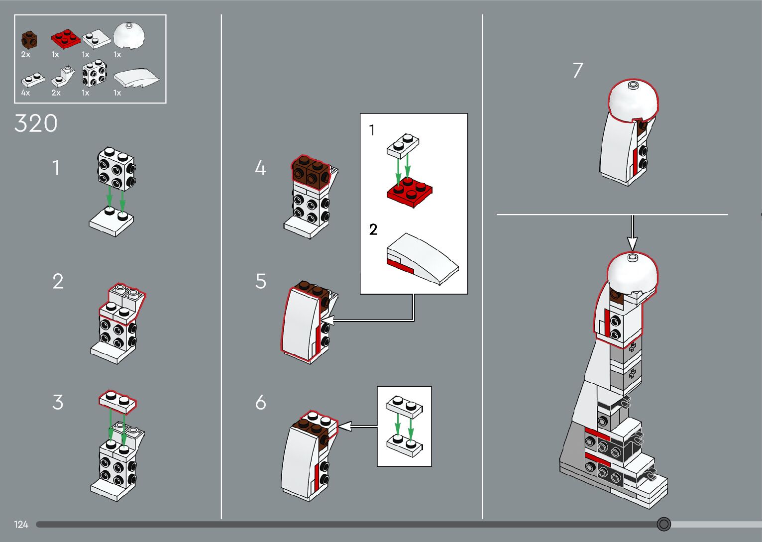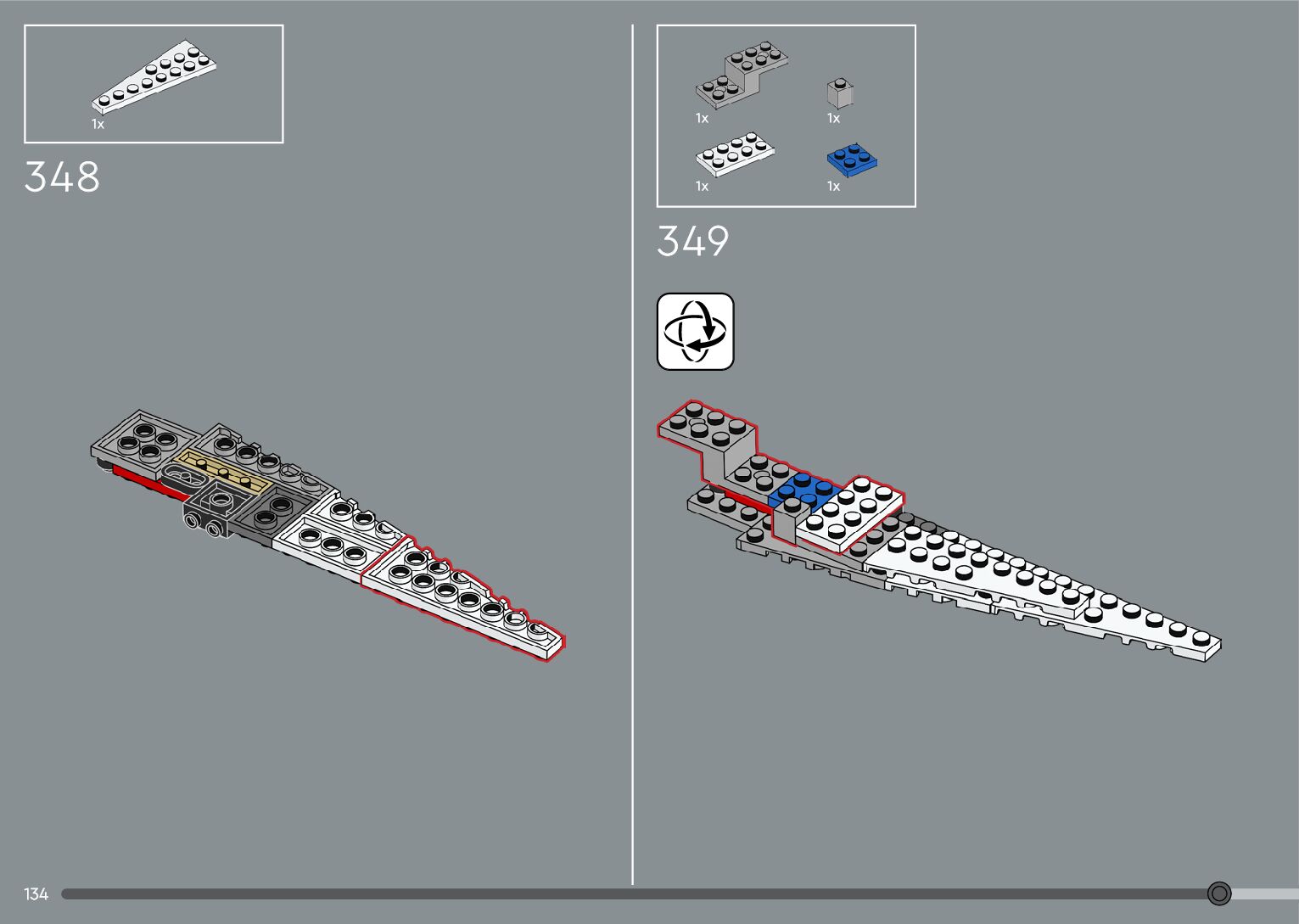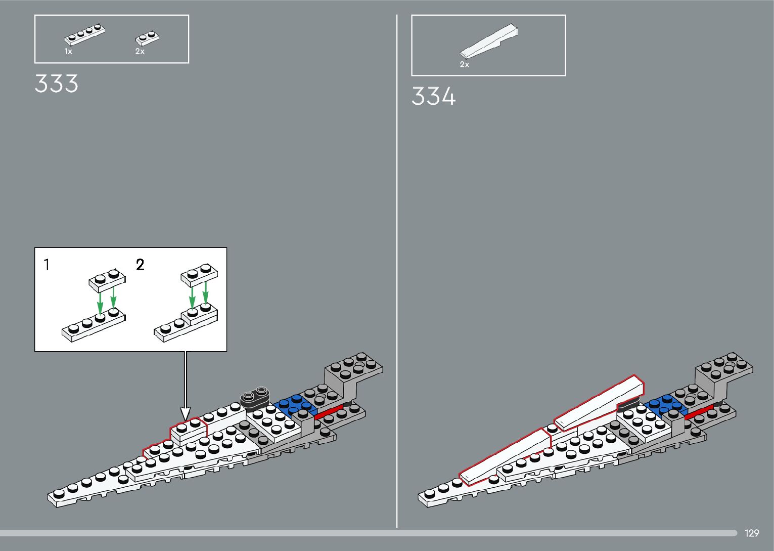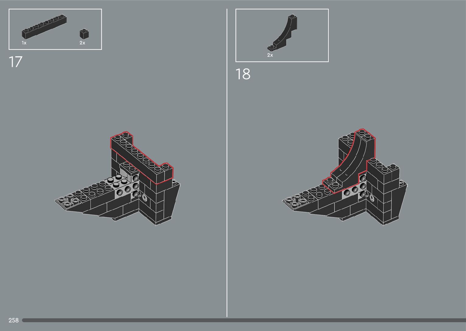 The assembly guide is prepared in a very understandable way for children and adult LEGO enthusiasts. A total of 376 picture galleries are shown, explaining the step-by-step construction stages for 2 different structures.