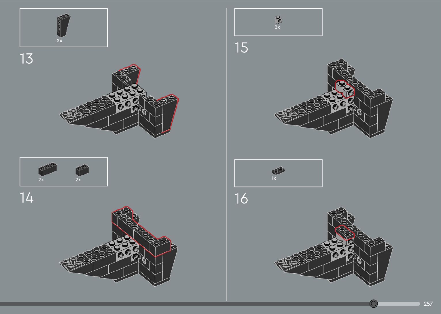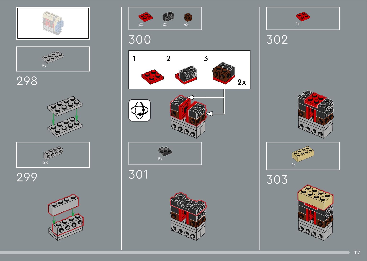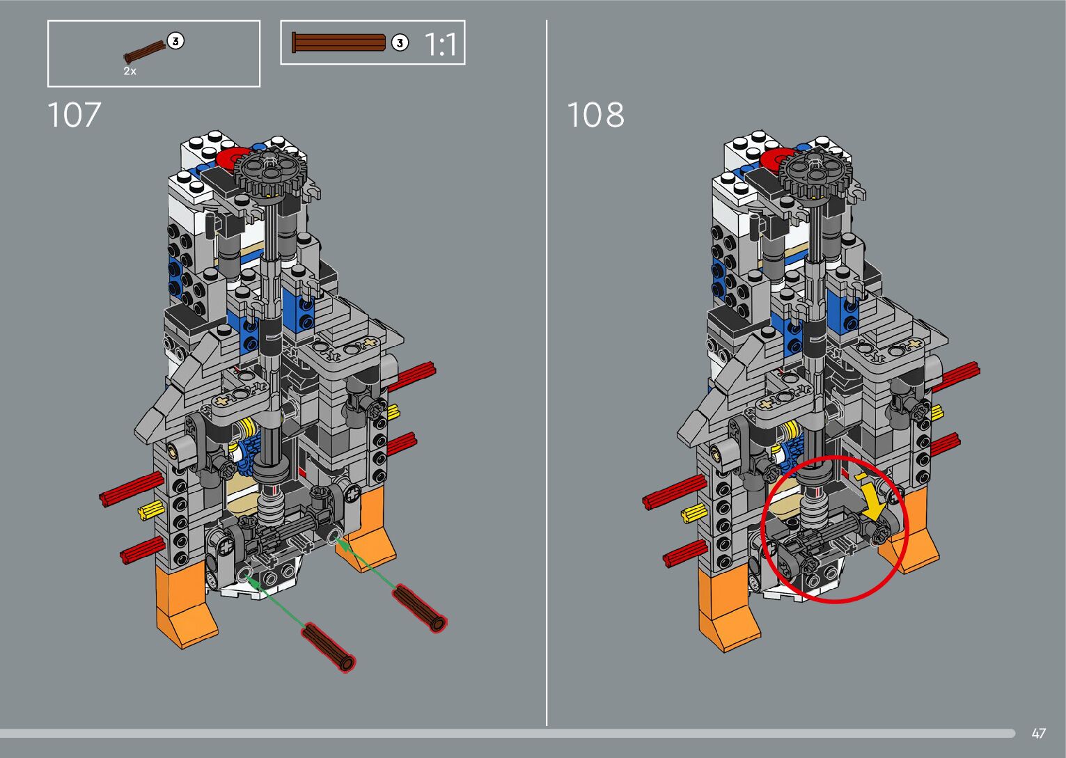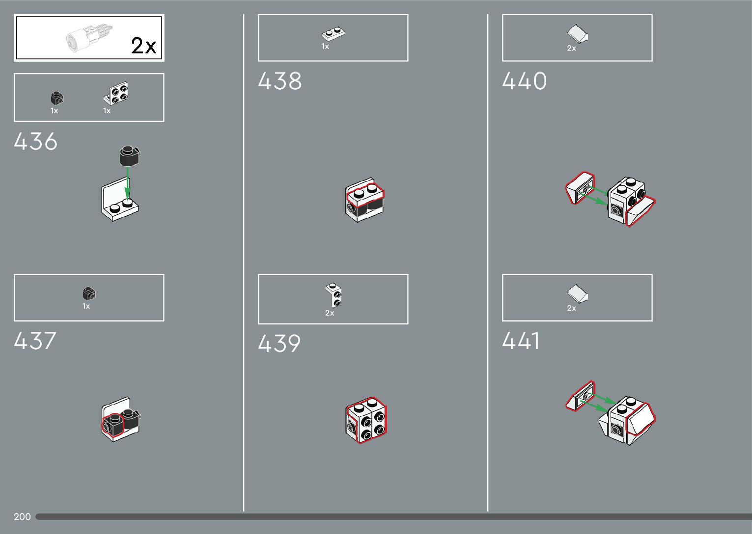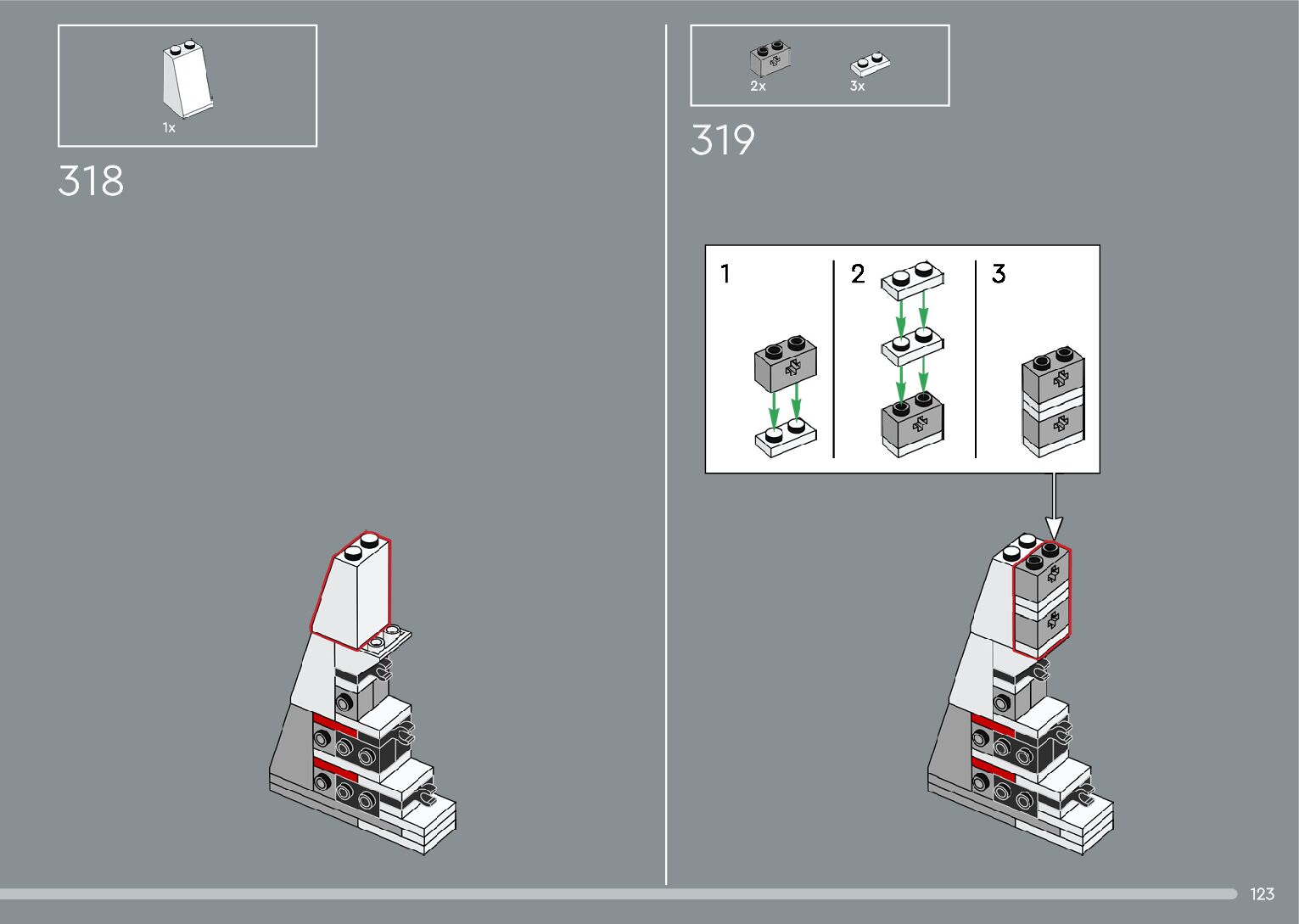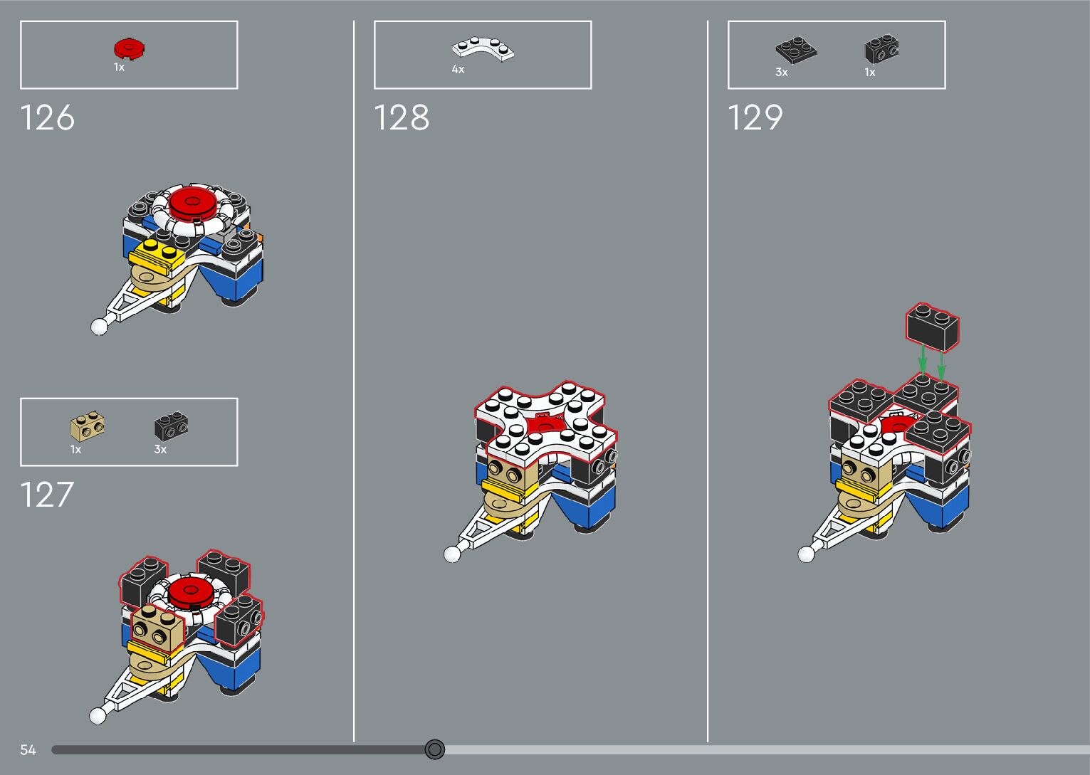 The assembly guide is prepared in a very understandable way for children and adult LEGO enthusiasts. A total of 376 picture galleries are shown, explaining the step-by-step construction stages for 2 different structures.