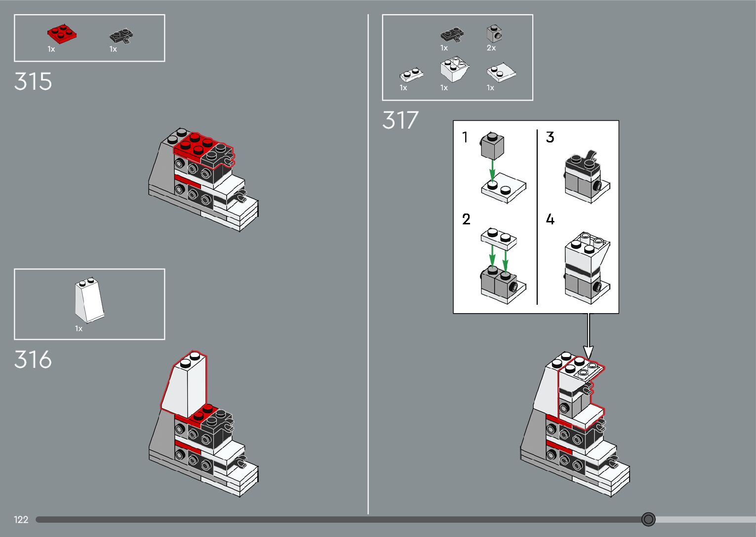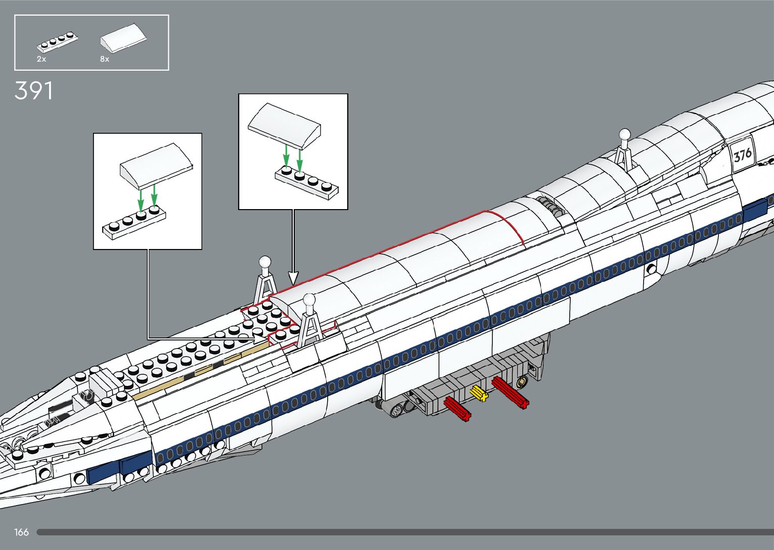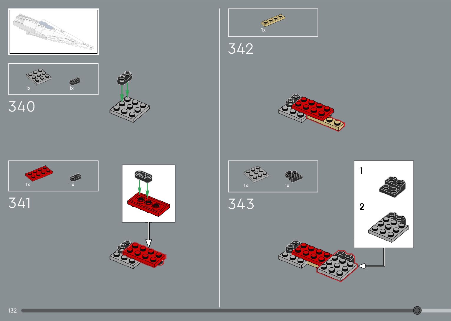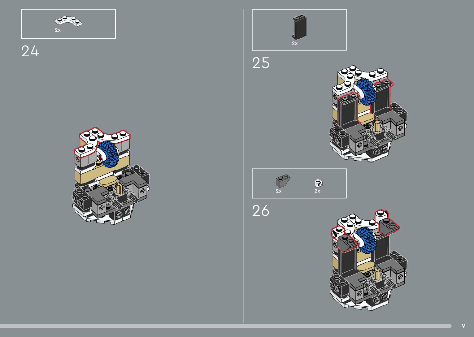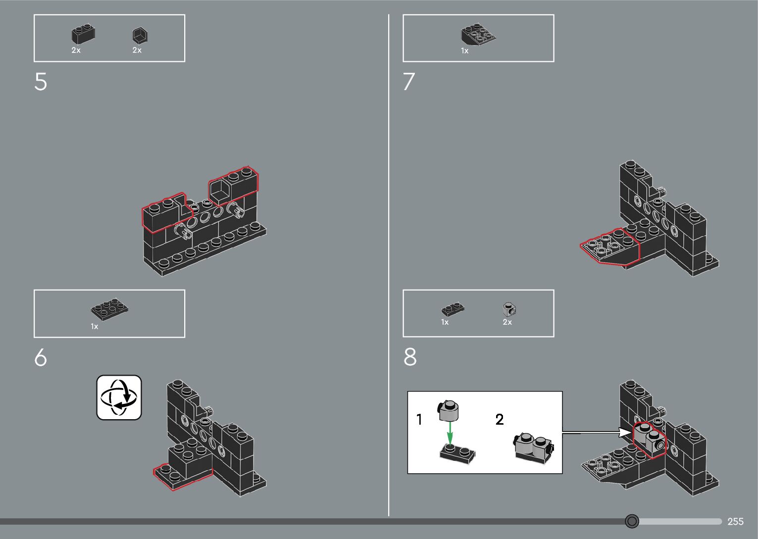 The assembly guide is prepared in a very understandable way for children and adult LEGO enthusiasts. A total of 376 picture galleries are shown, explaining the step-by-step construction stages for 2 different structures.