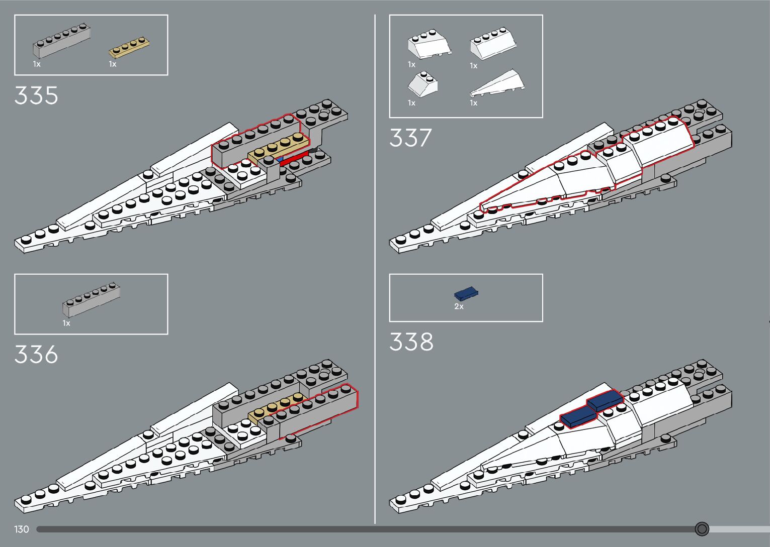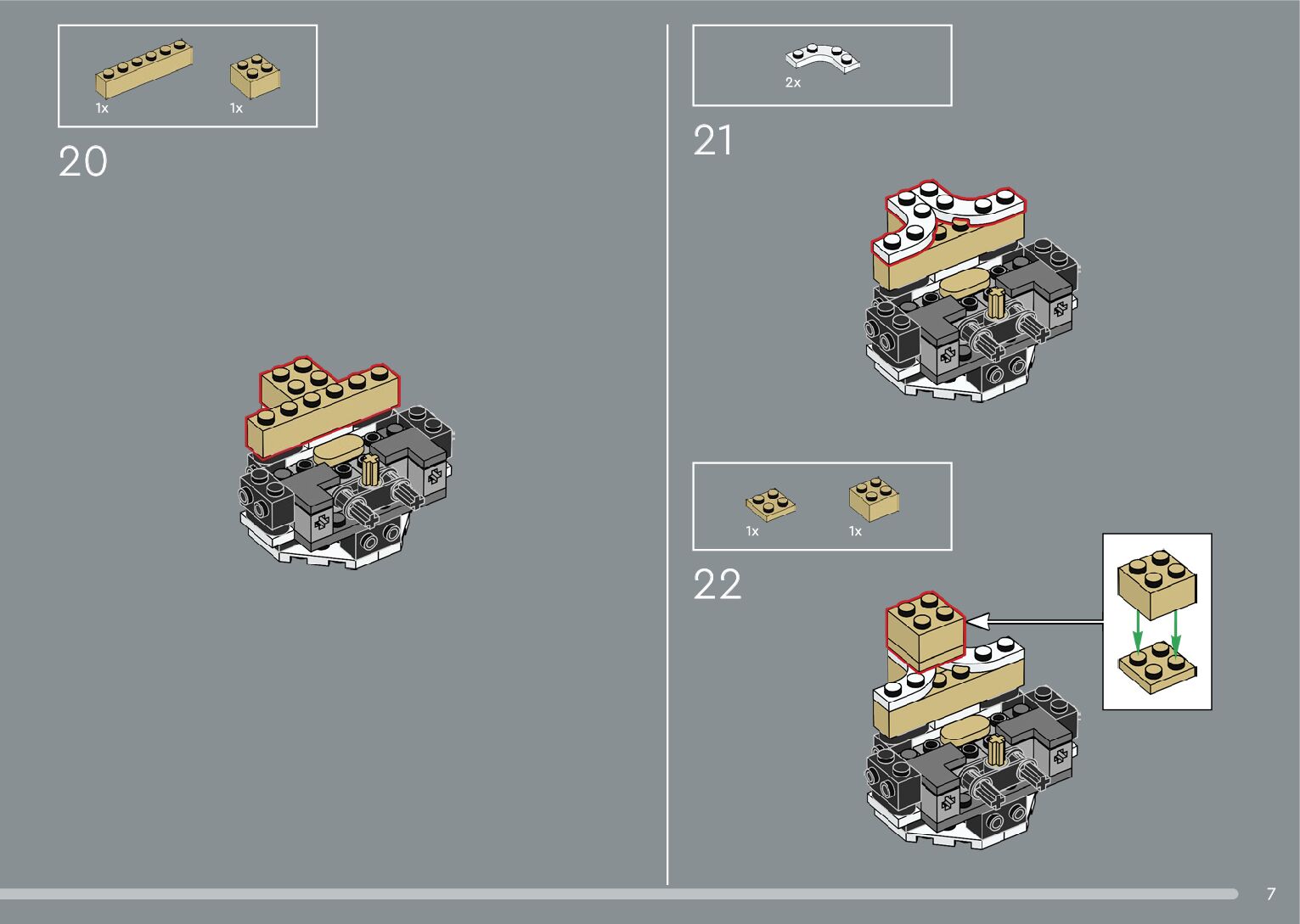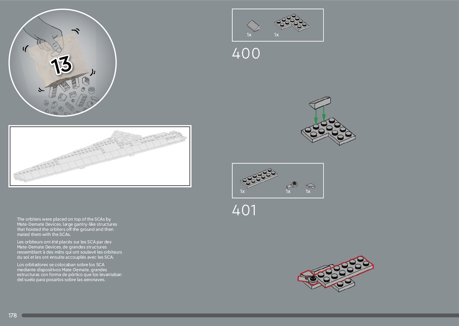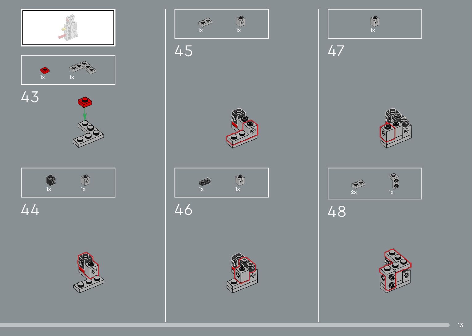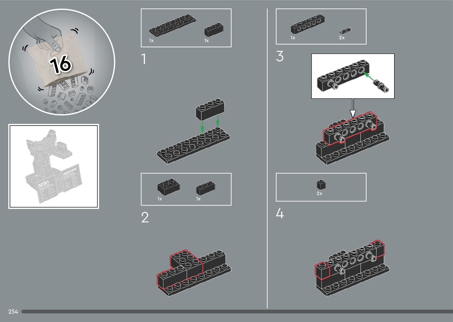 The assembly guide is prepared in a very understandable way for children and adult LEGO enthusiasts. A total of 376 picture galleries are shown, explaining the step-by-step construction stages for 2 different structures.