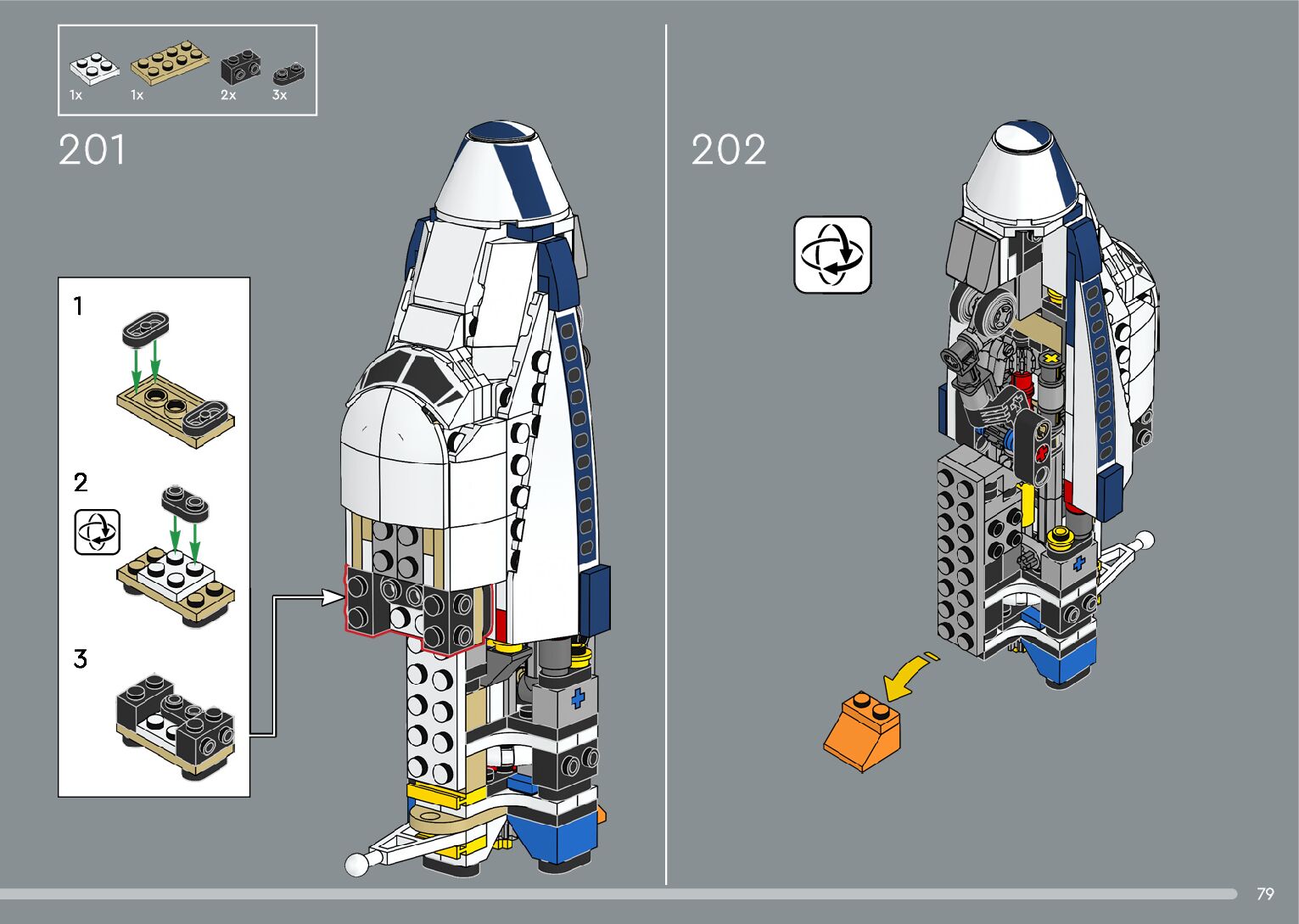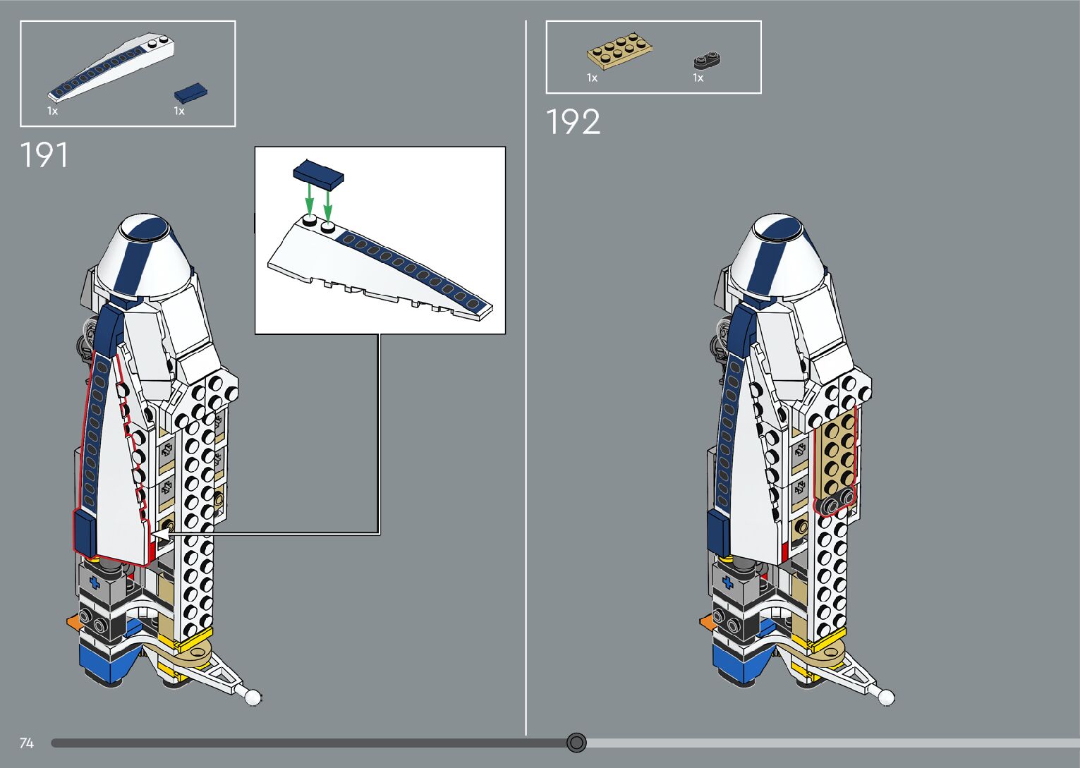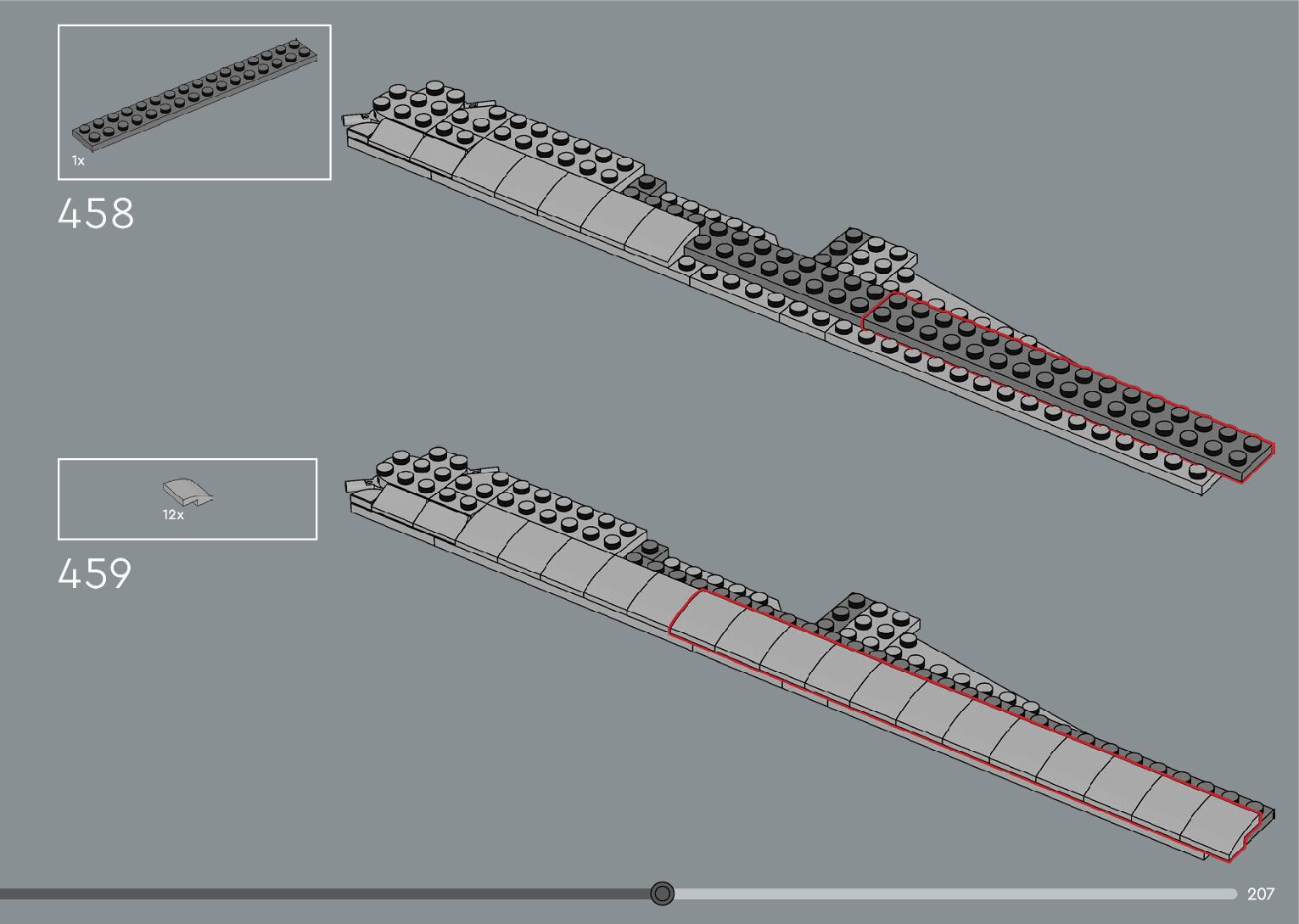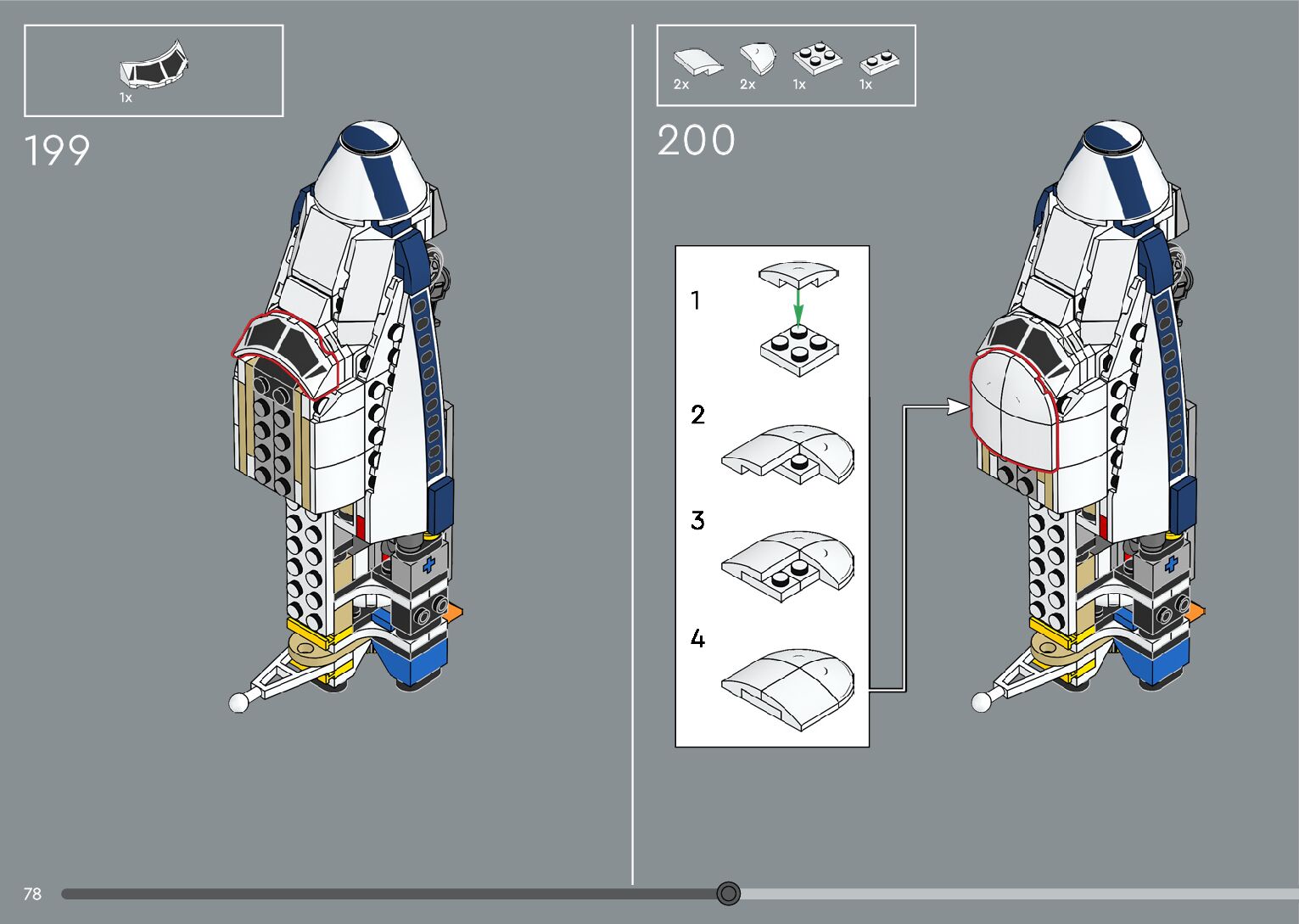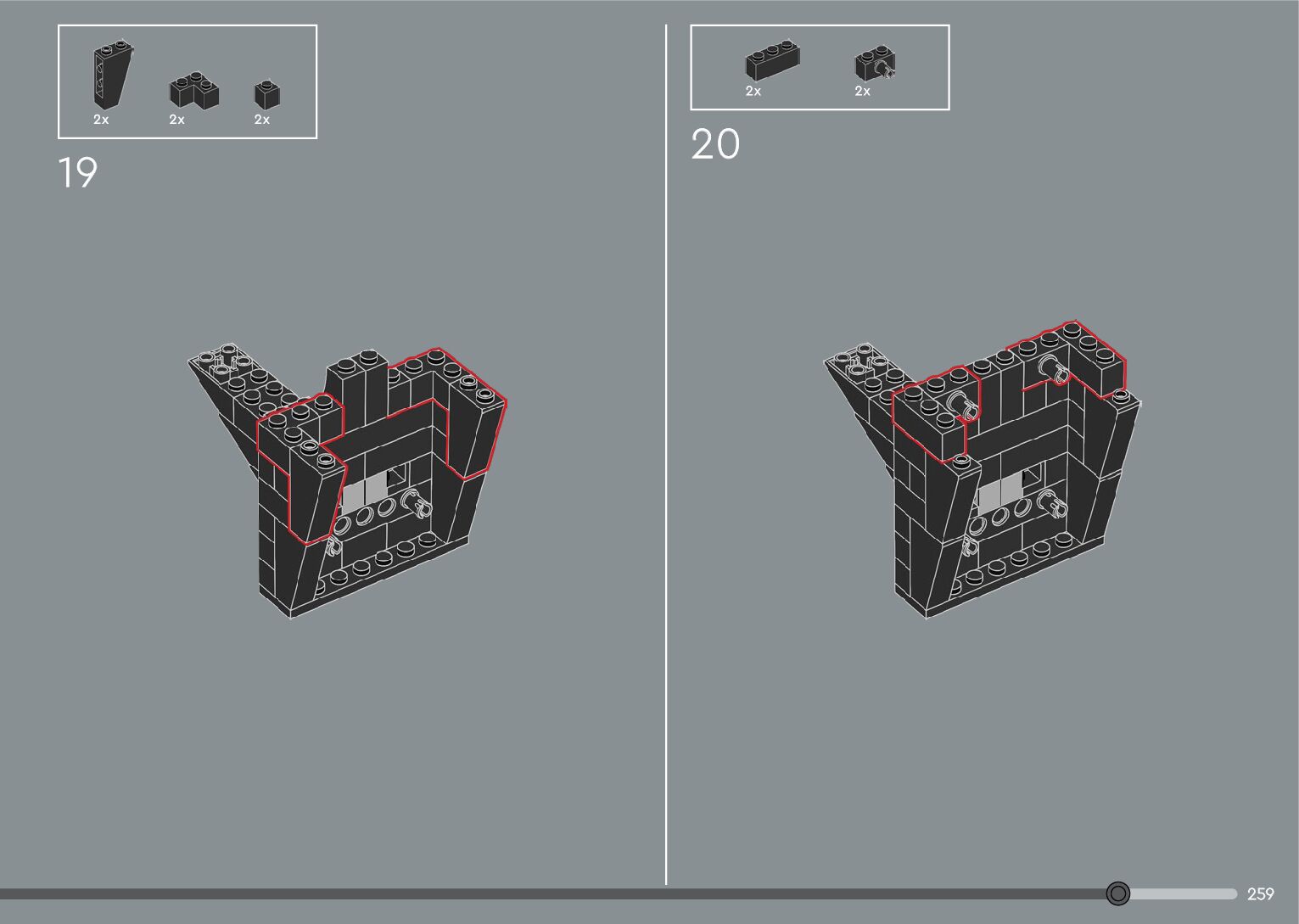 The assembly guide is prepared in a very understandable way for children and adult LEGO enthusiasts. A total of 376 picture galleries are shown, explaining the step-by-step construction stages for 2 different structures.