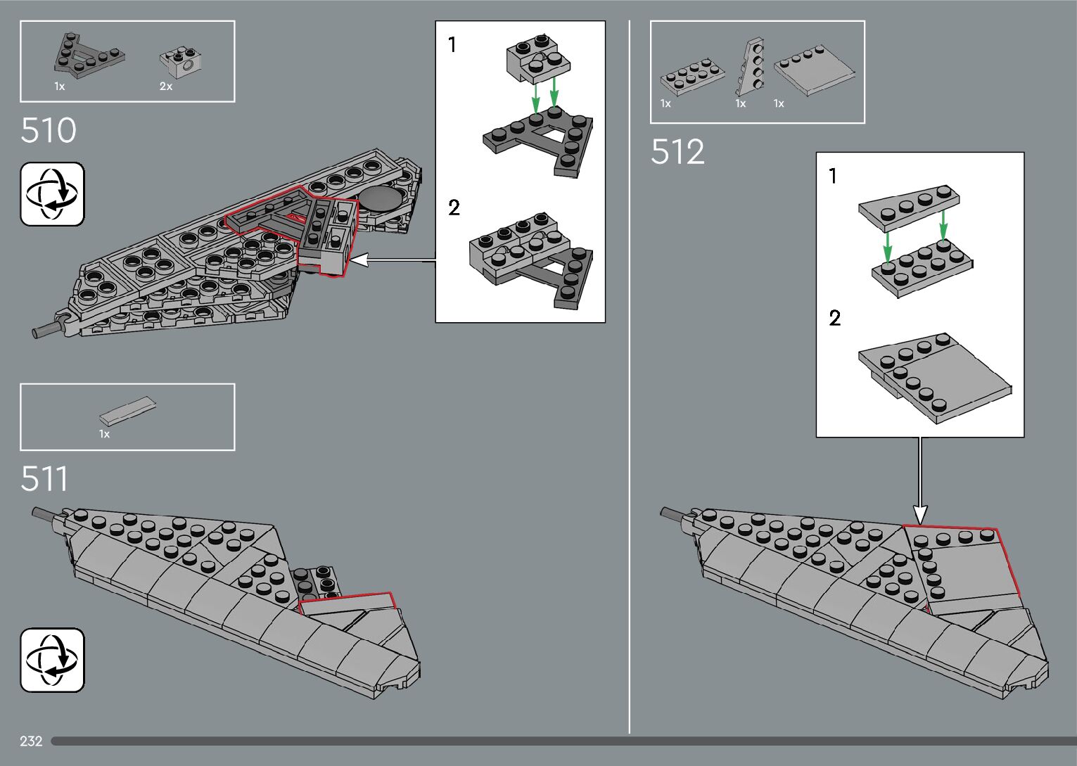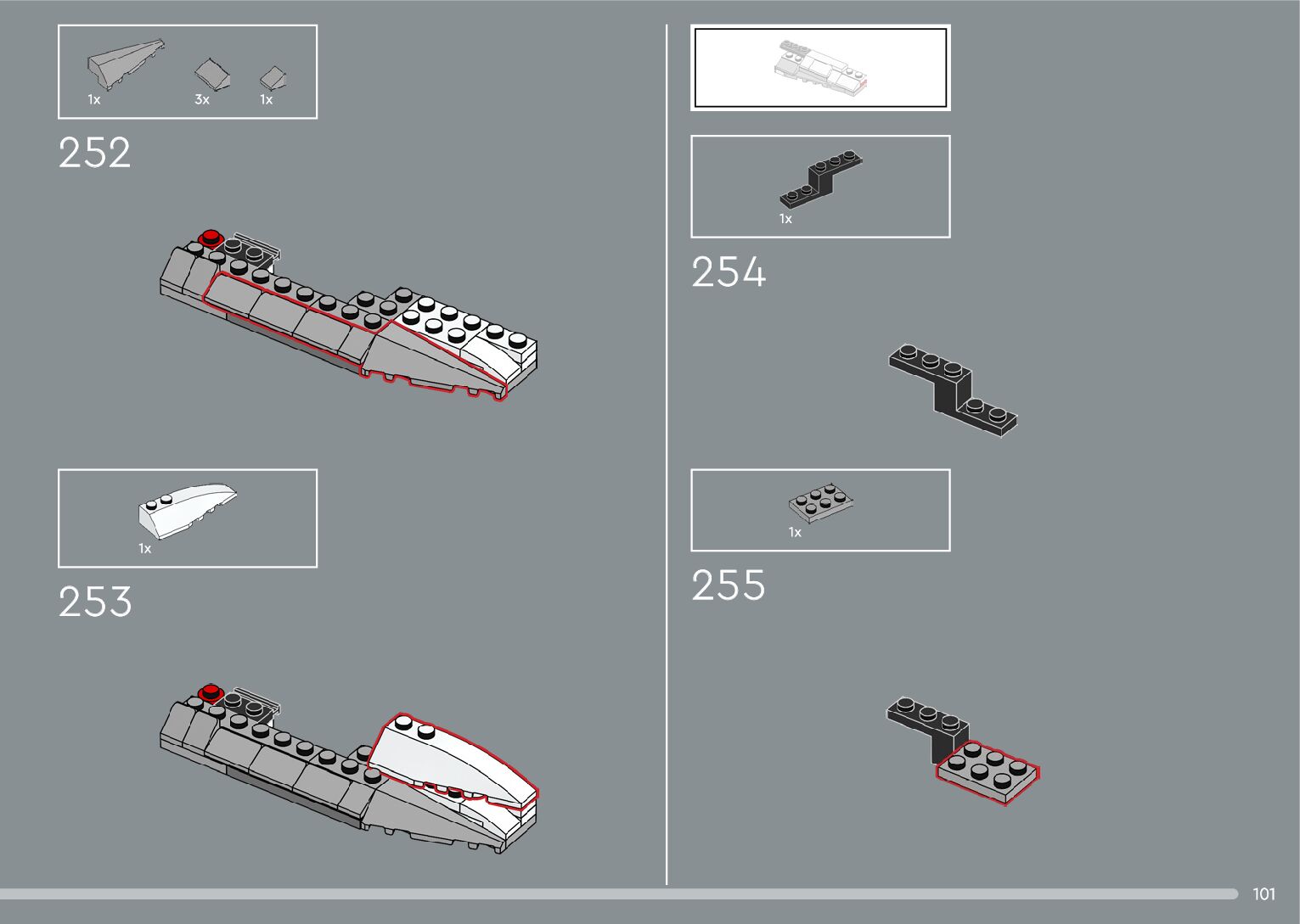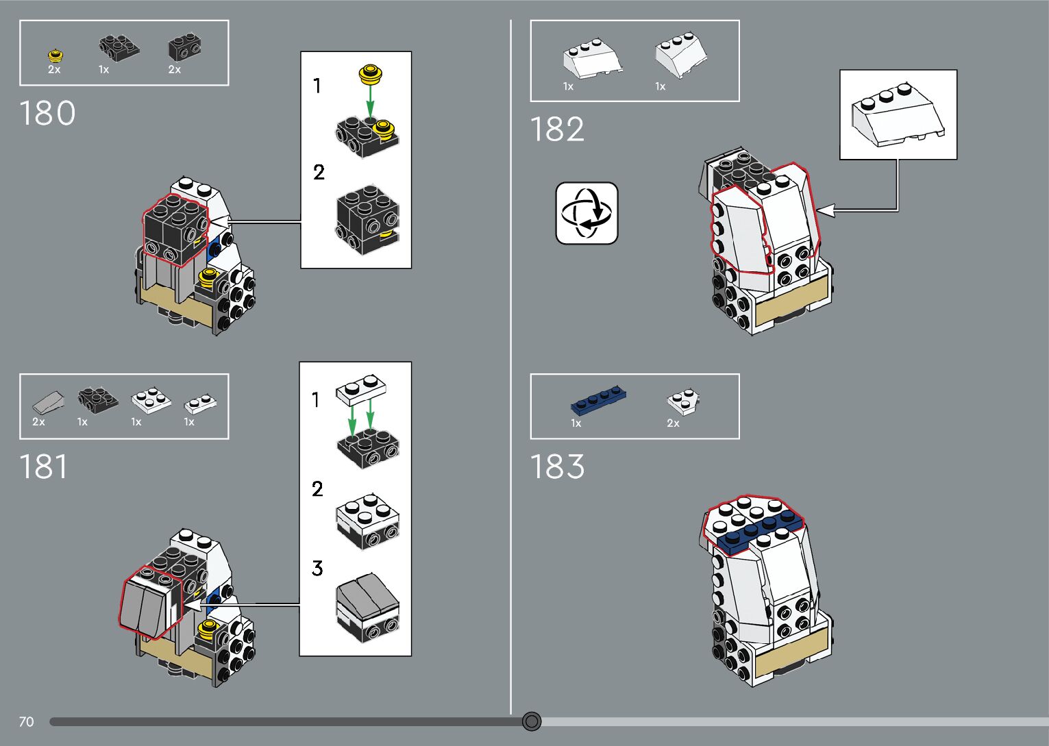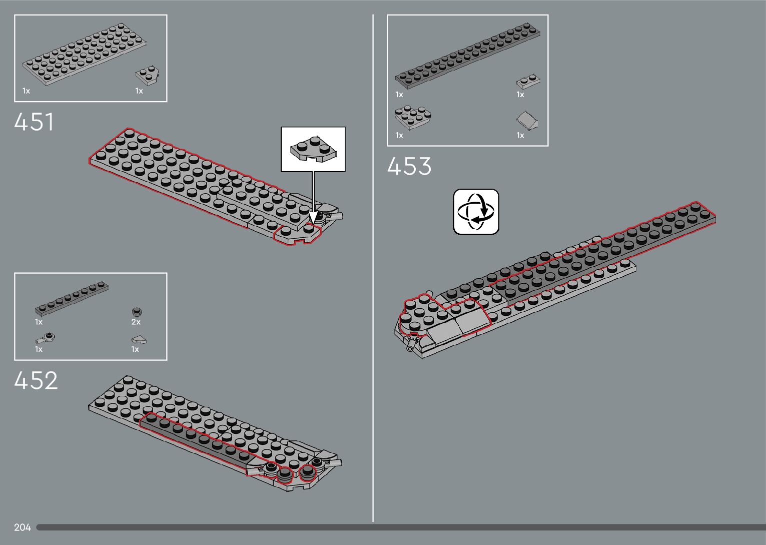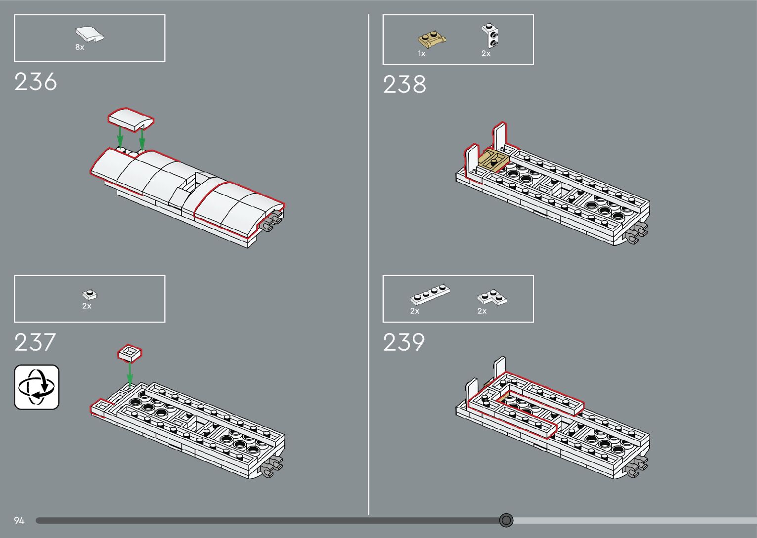 The assembly guide is prepared in a very understandable way for children and adult LEGO enthusiasts. A total of 376 picture galleries are shown, explaining the step-by-step construction stages for 2 different structures.