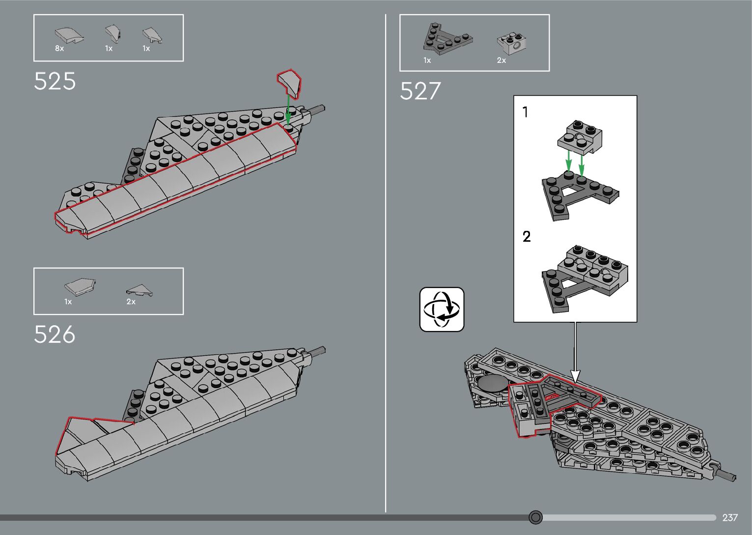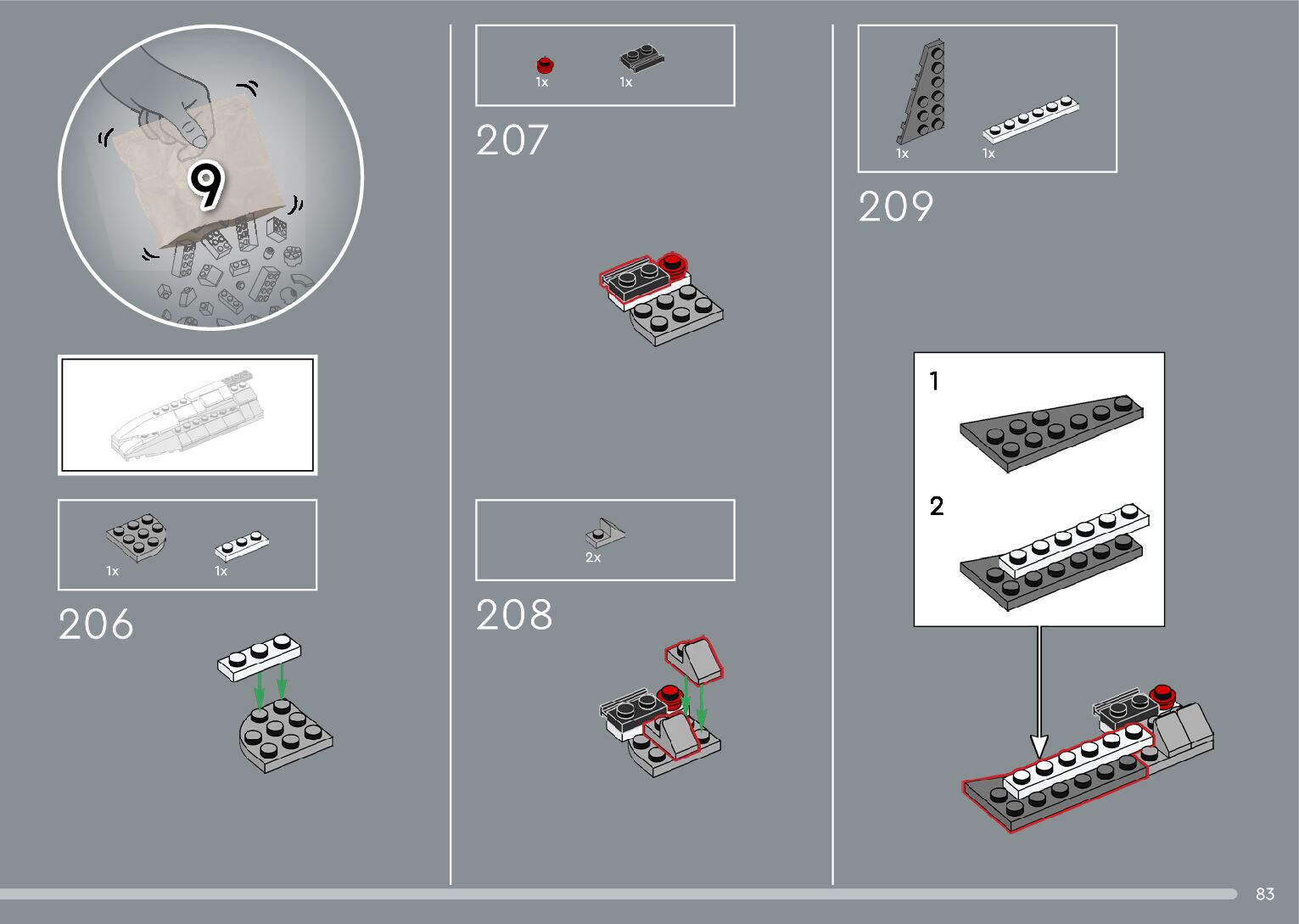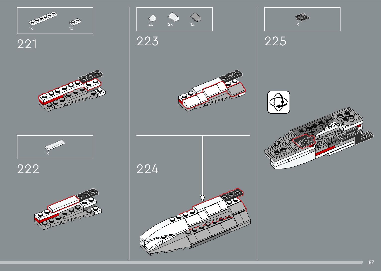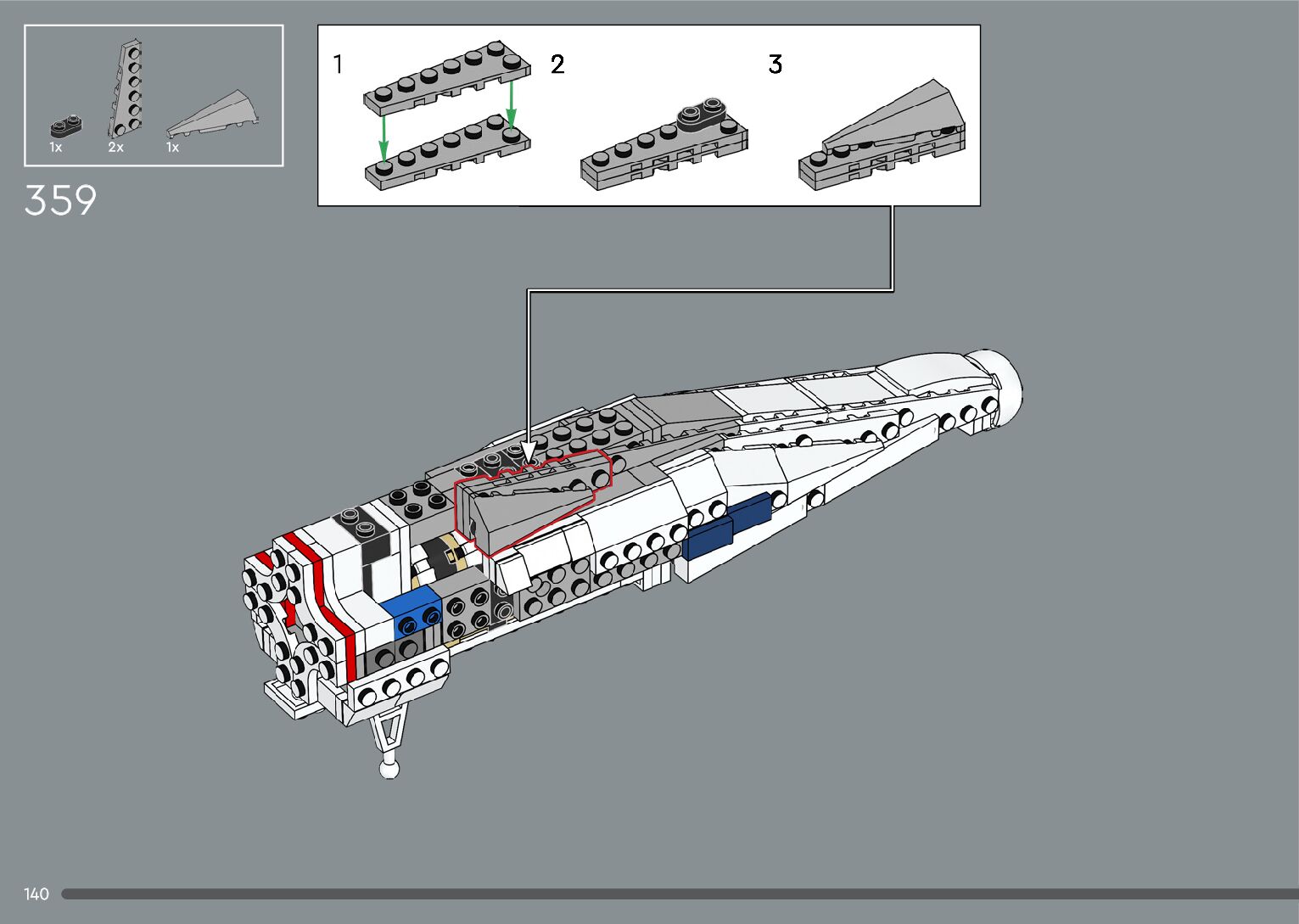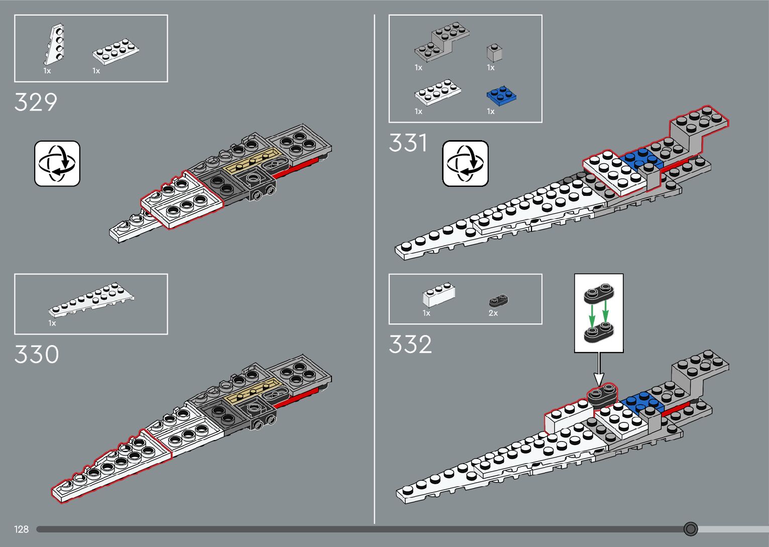 The assembly guide is prepared in a very understandable way for children and adult LEGO enthusiasts. A total of 376 picture galleries are shown, explaining the step-by-step construction stages for 2 different structures.