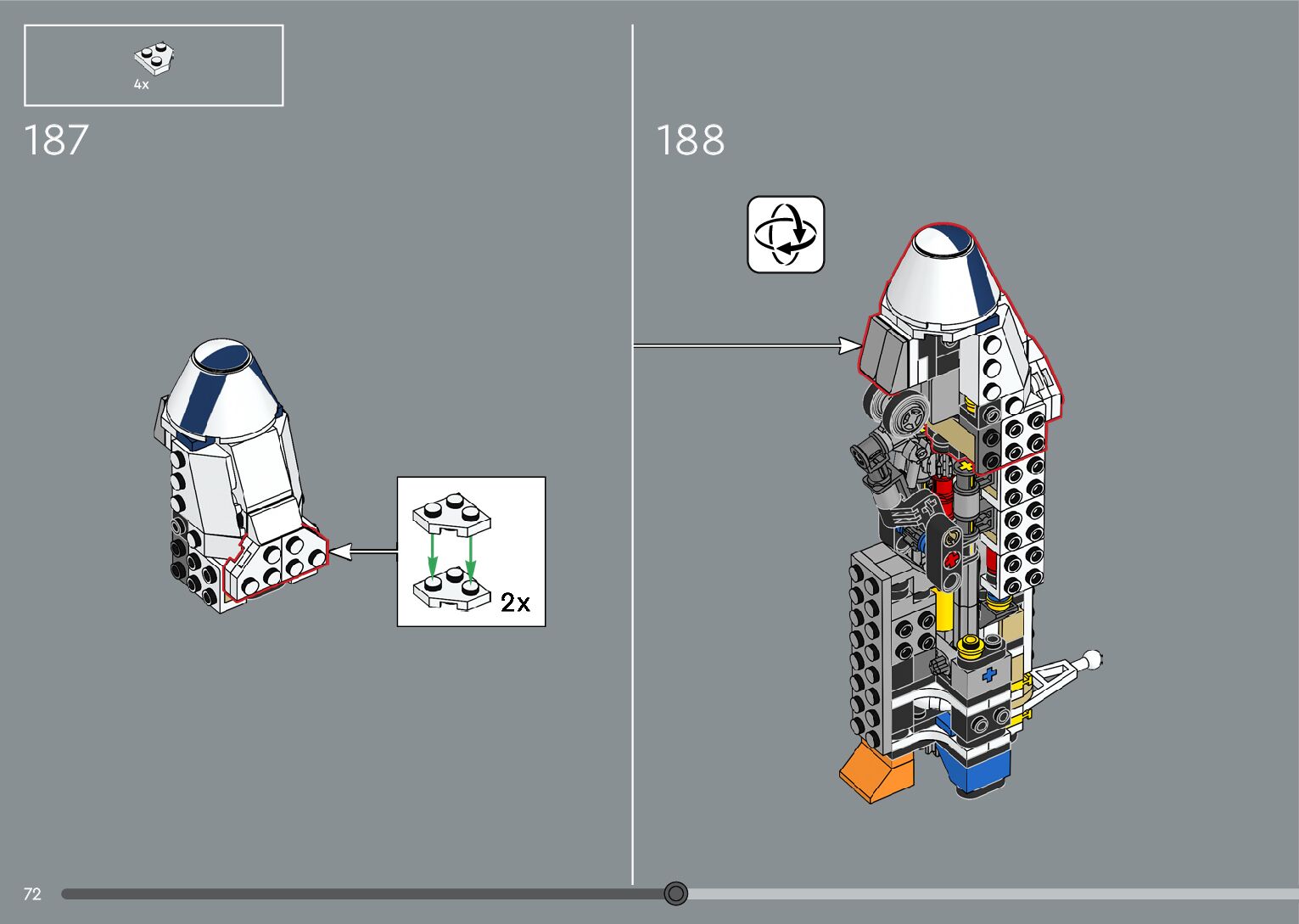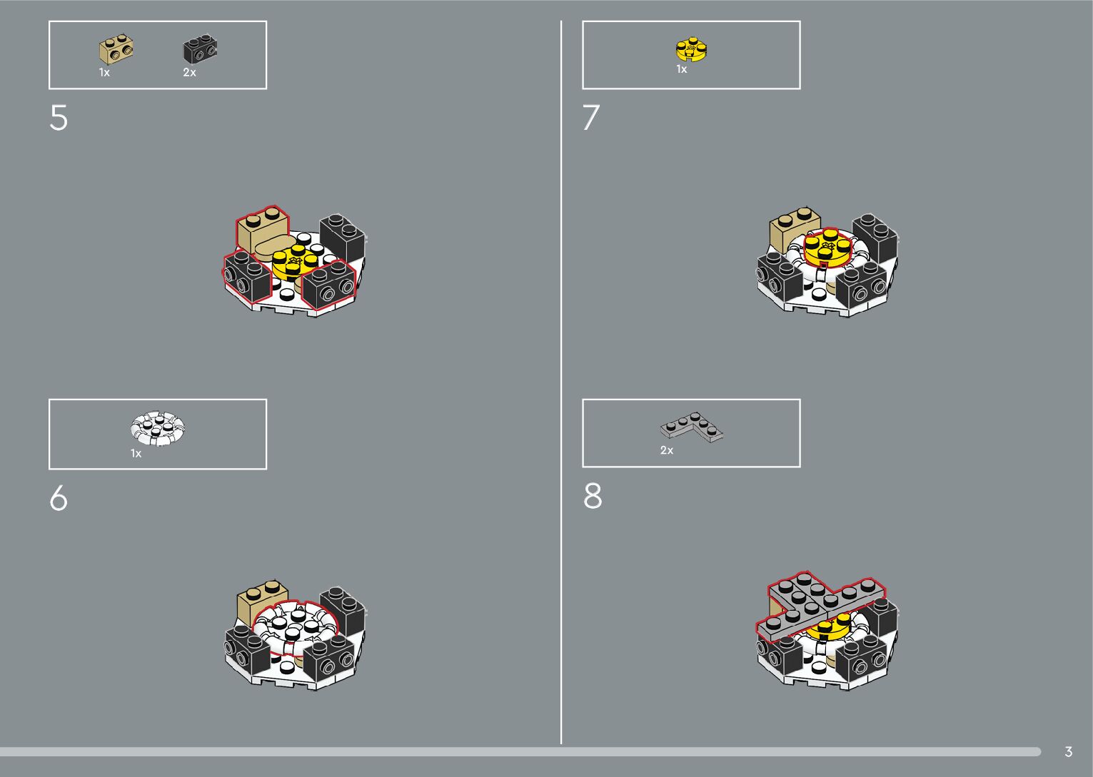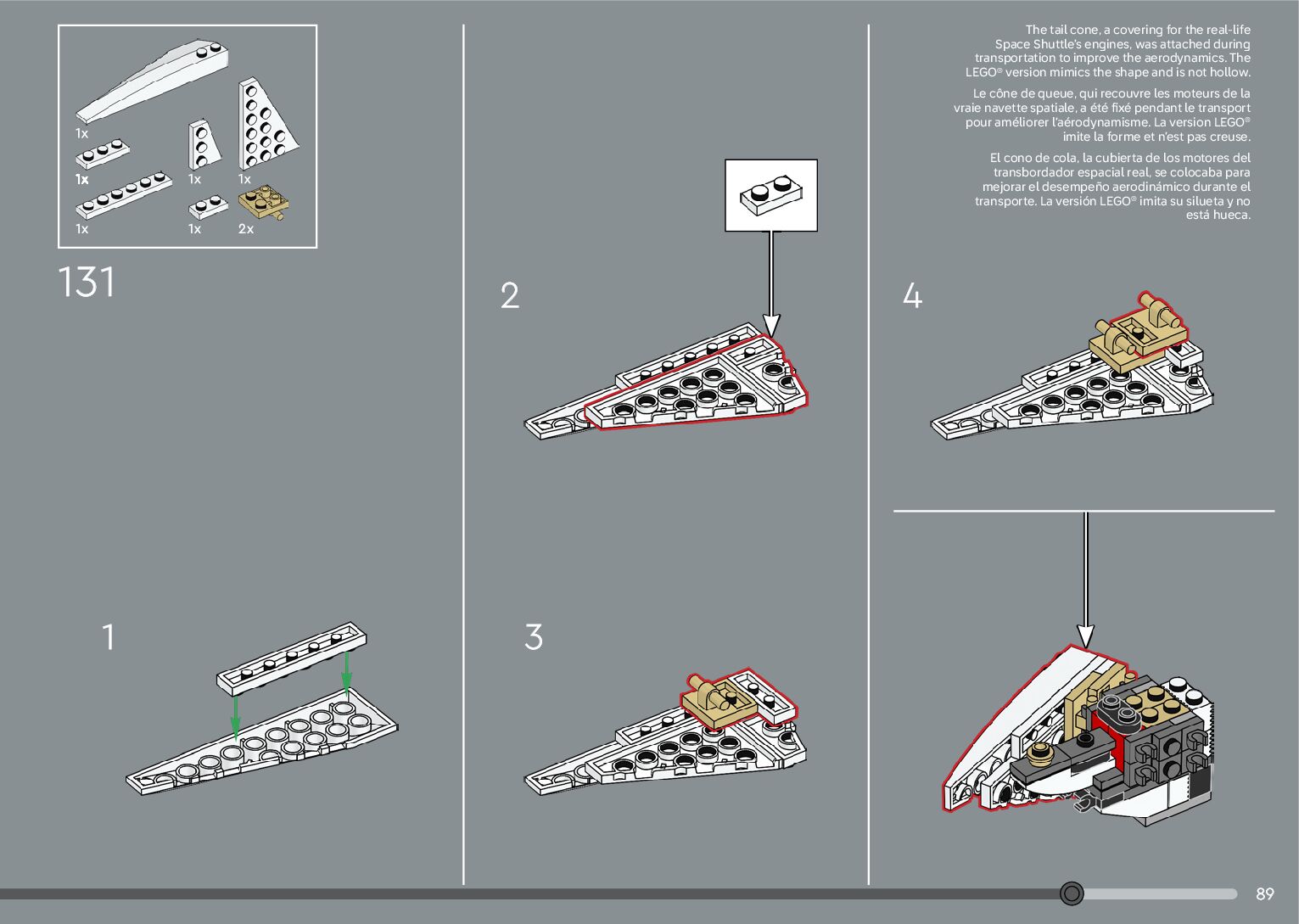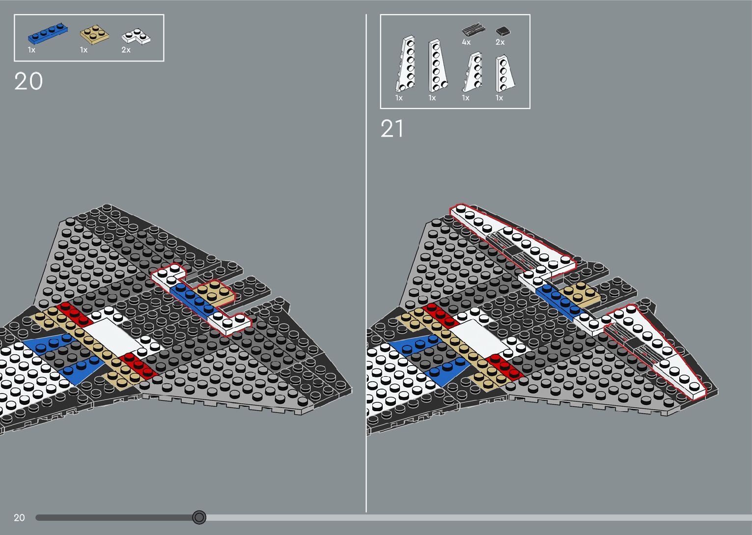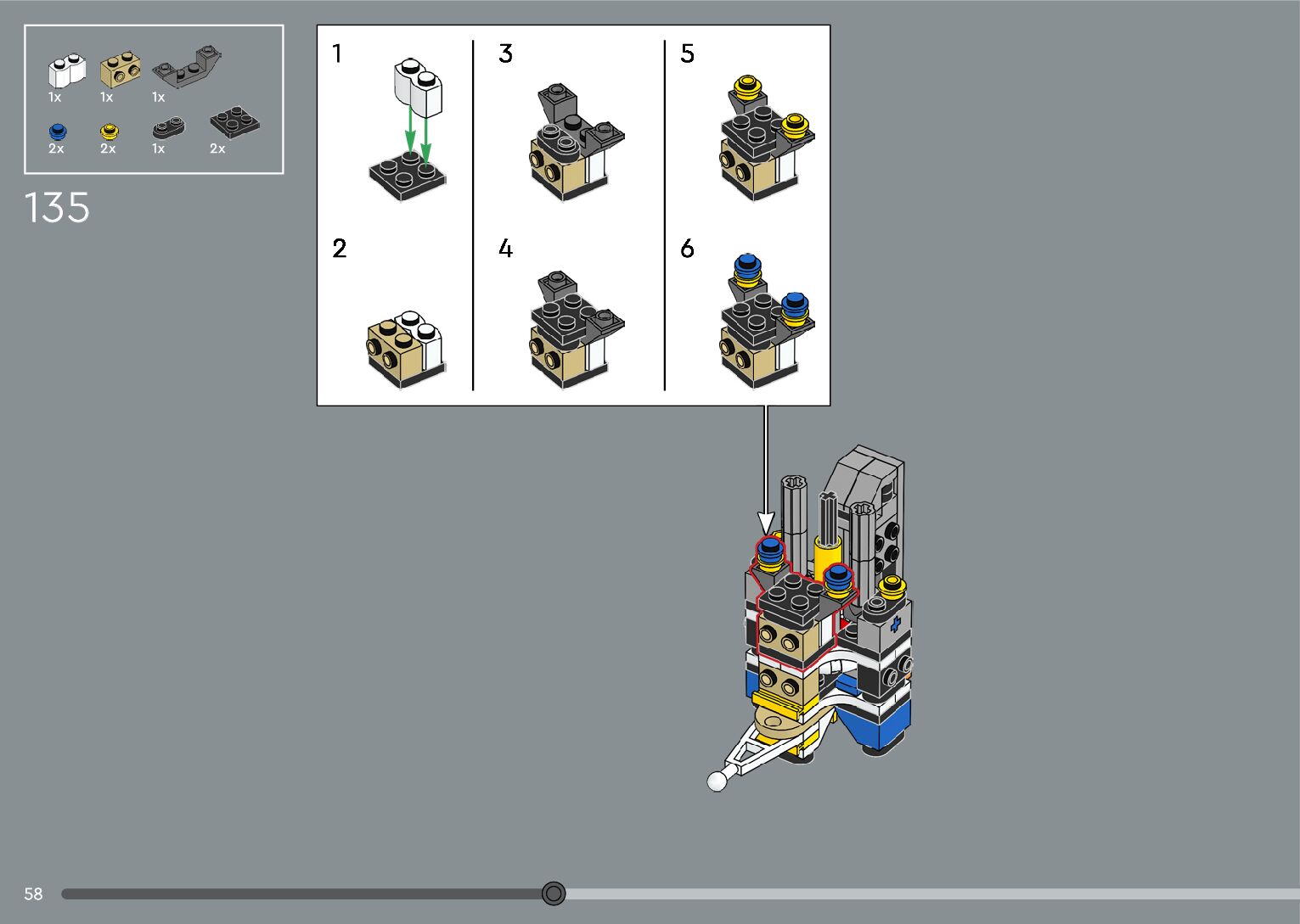 The assembly guide is prepared in a very understandable way for children and adult LEGO enthusiasts. A total of 376 picture galleries are shown, explaining the step-by-step construction stages for 2 different structures.