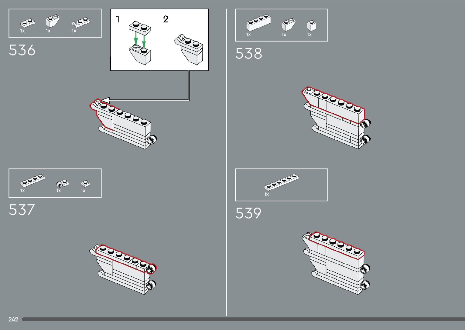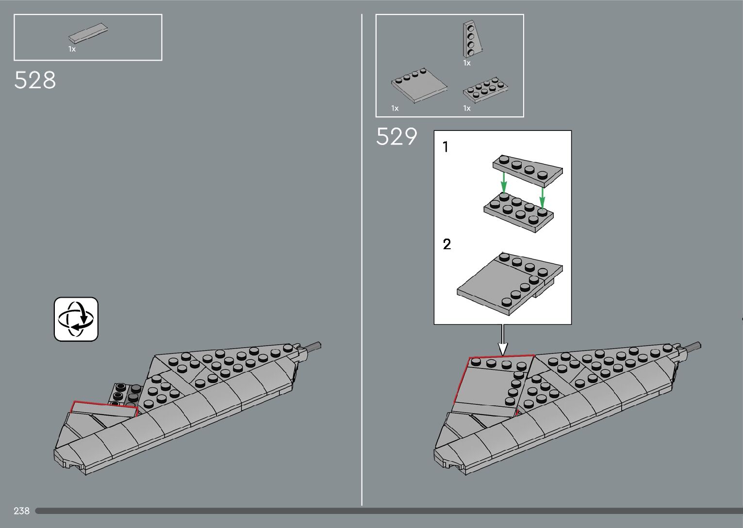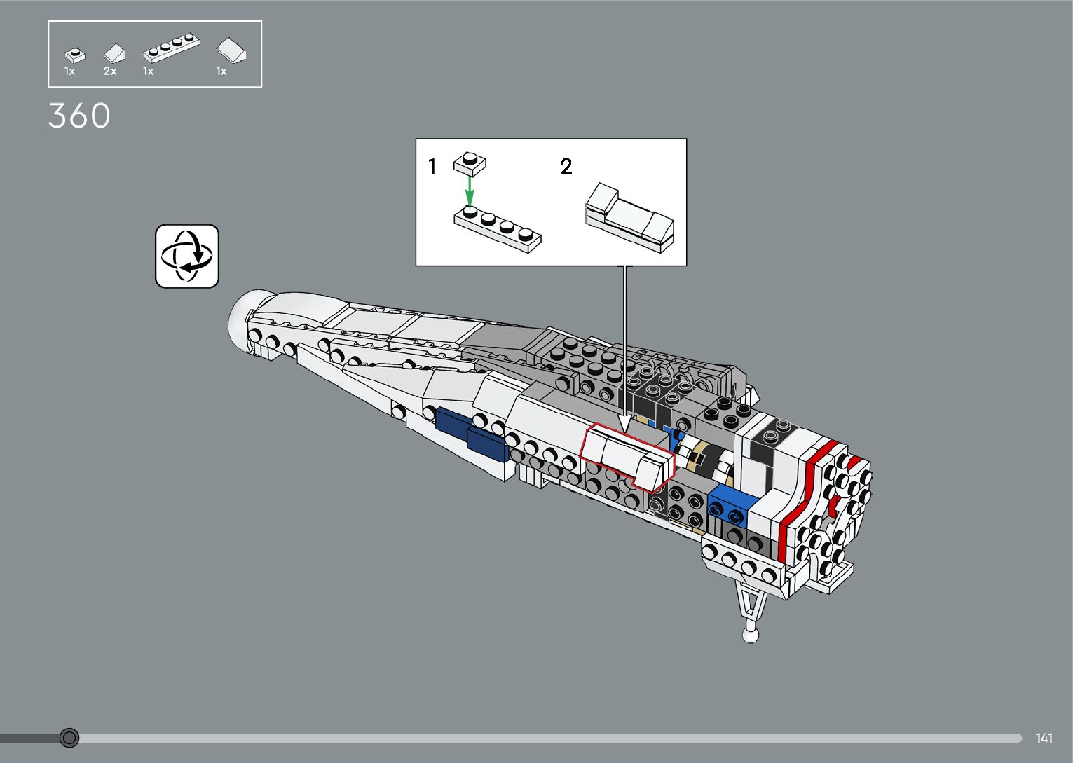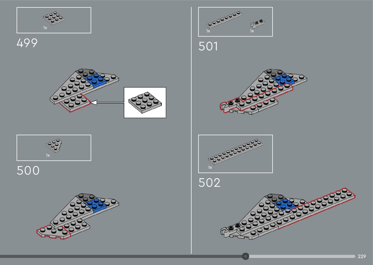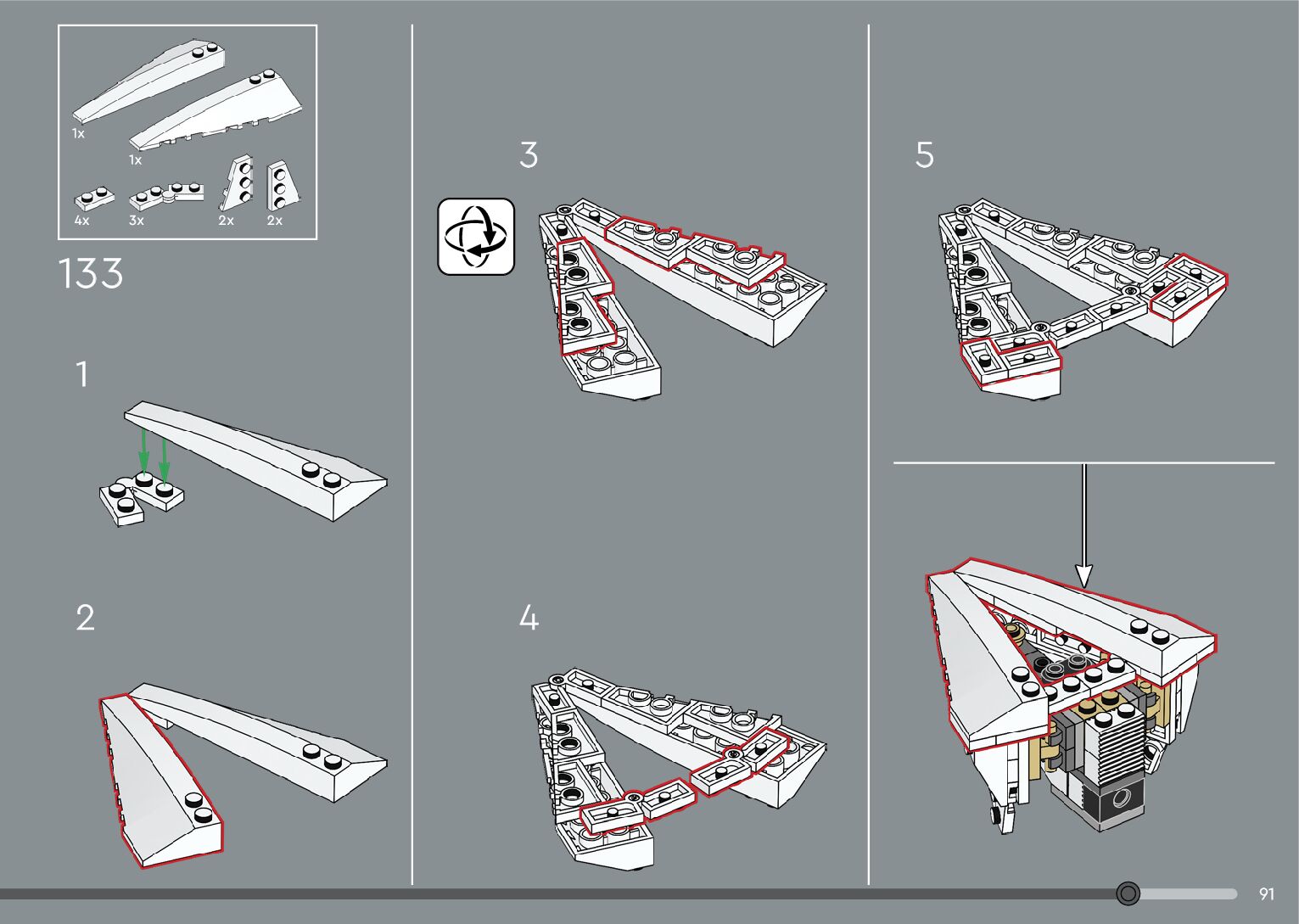 The assembly guide is prepared in a very understandable way for children and adult LEGO enthusiasts. A total of 376 picture galleries are shown, explaining the step-by-step construction stages for 2 different structures.