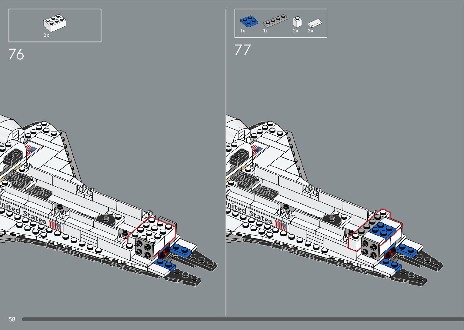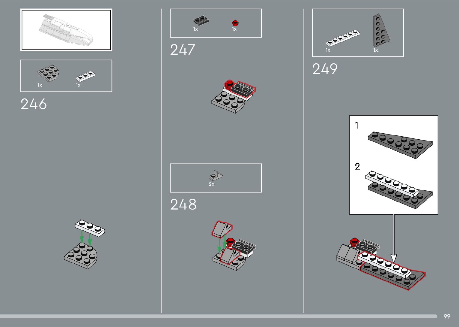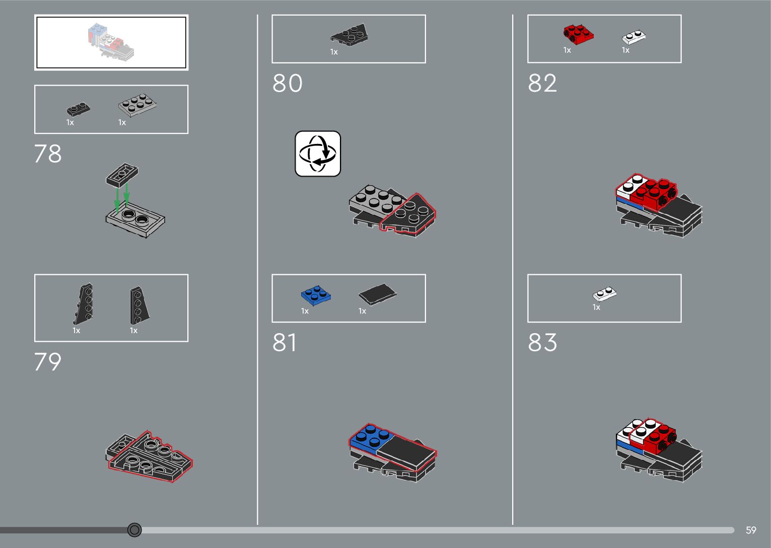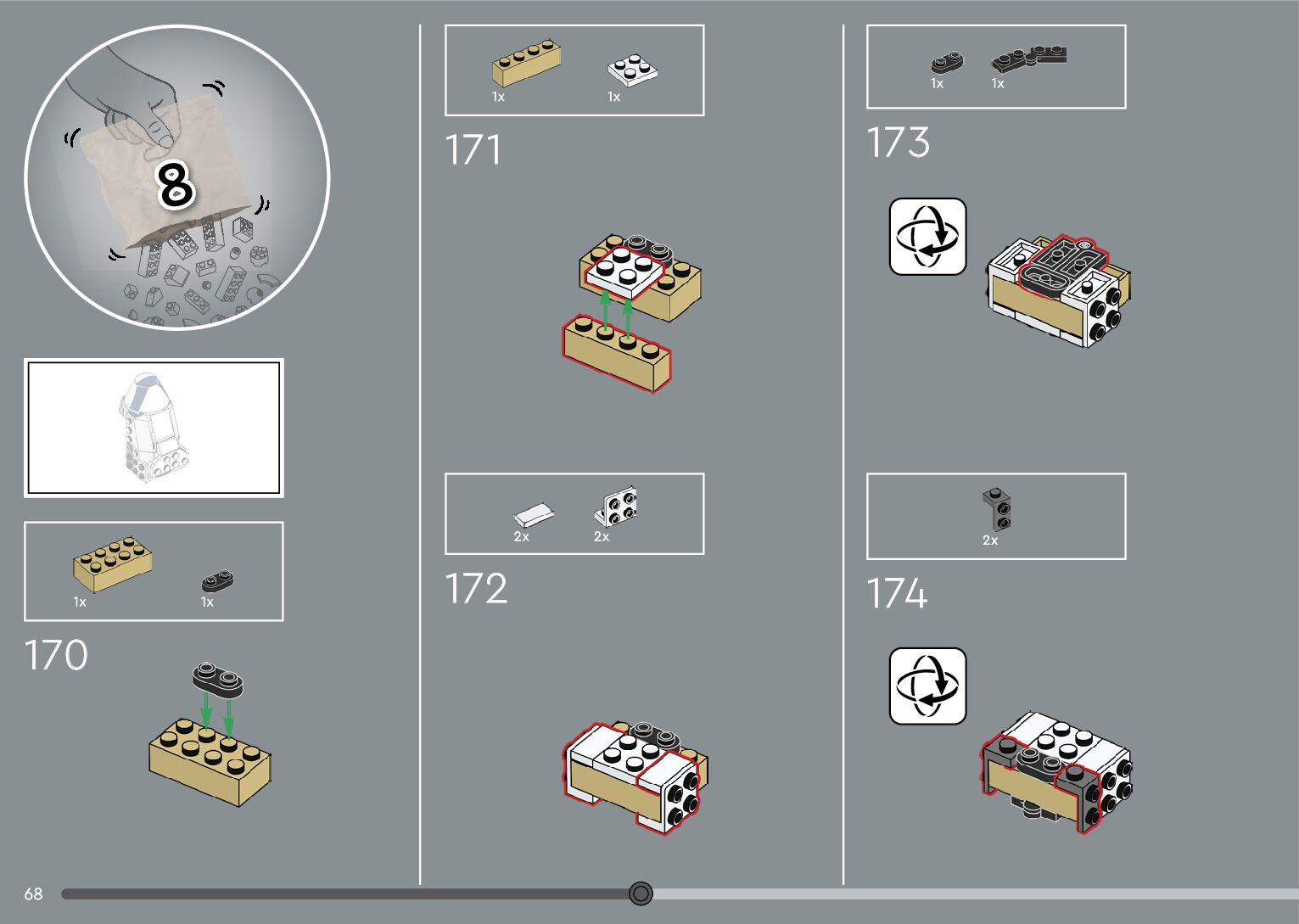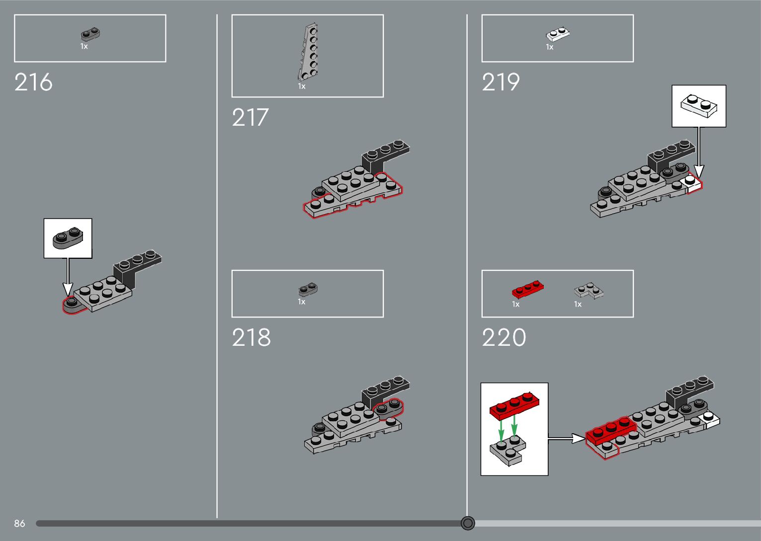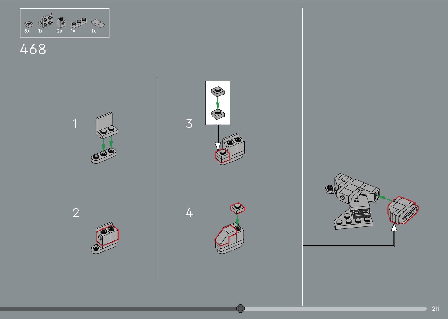 The assembly guide is prepared in a very understandable way for children and adult LEGO enthusiasts. A total of 376 picture galleries are shown, explaining the step-by-step construction stages for 2 different structures.