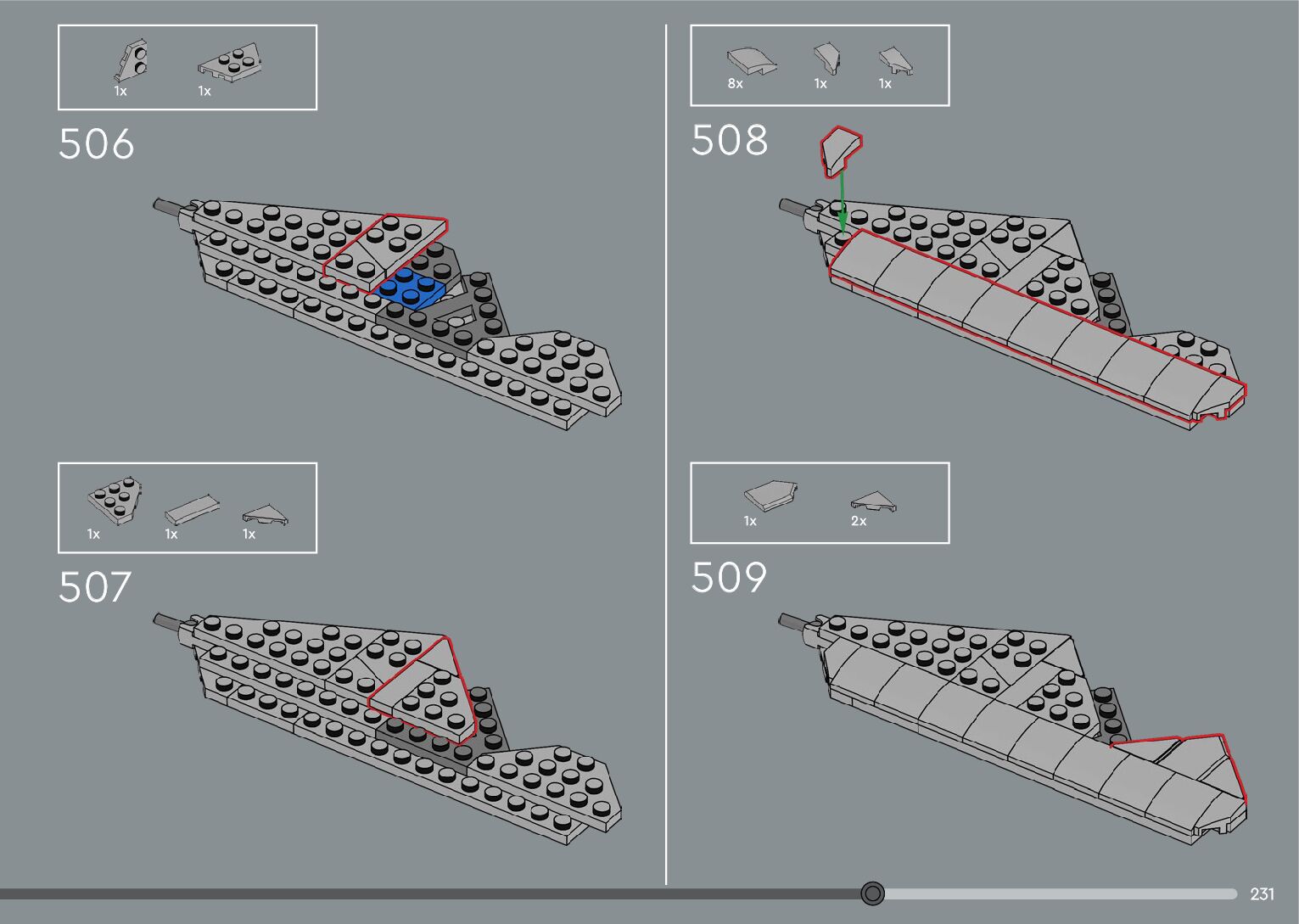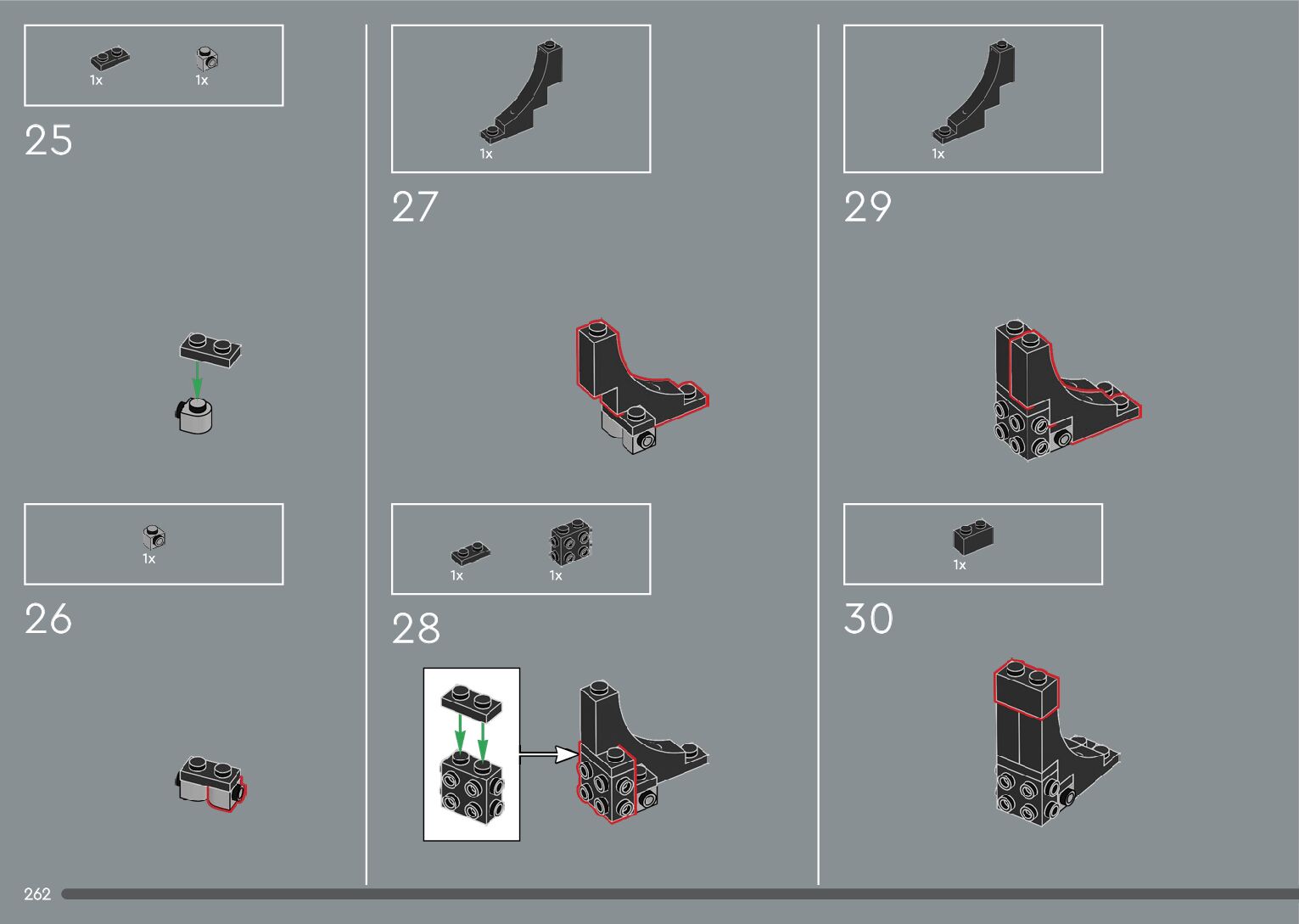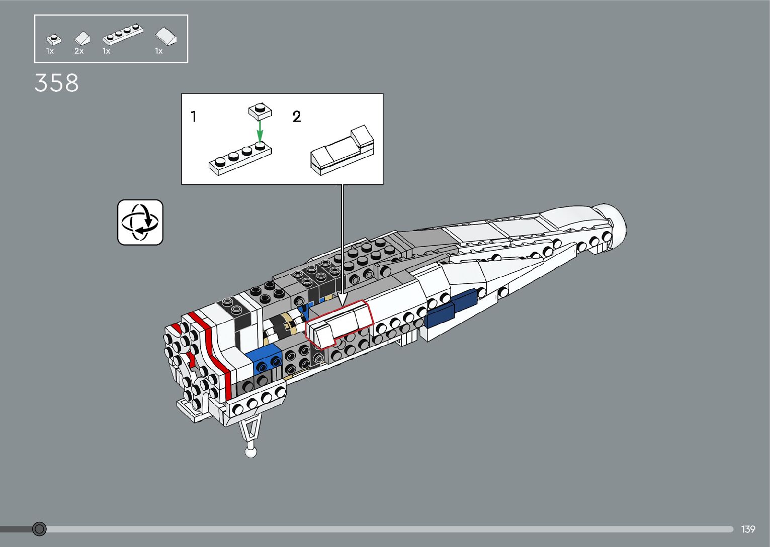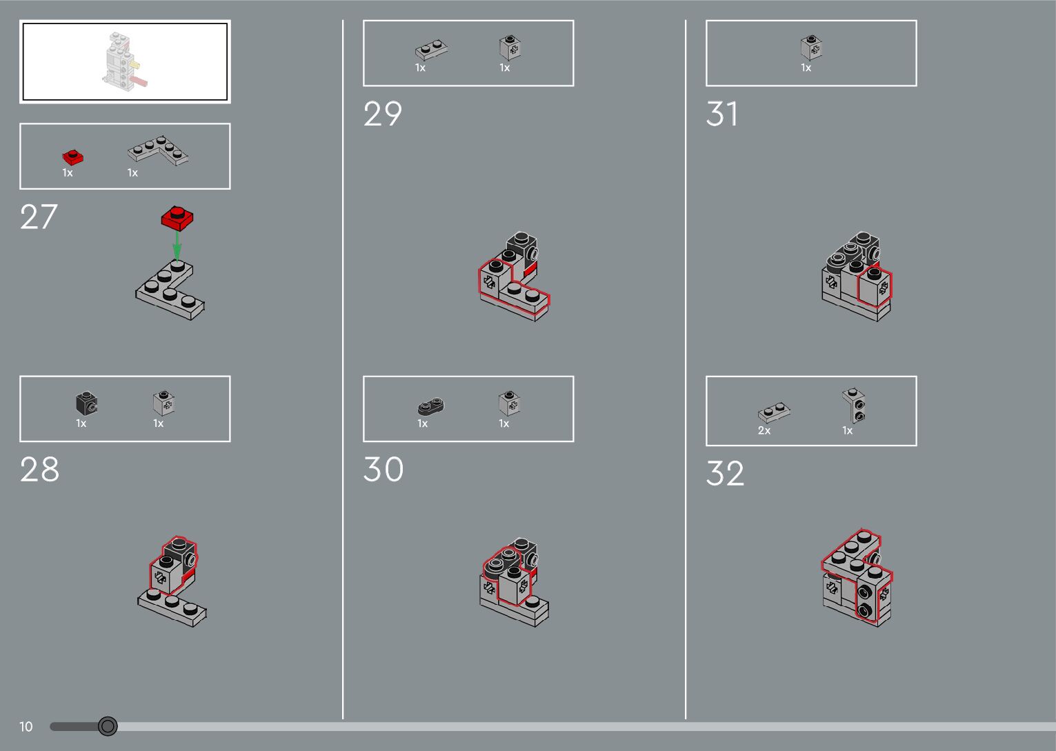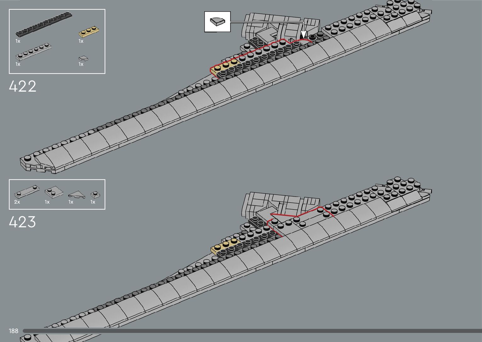 The assembly guide is prepared in a very understandable way for children and adult LEGO enthusiasts. A total of 376 picture galleries are shown, explaining the step-by-step construction stages for 2 different structures.