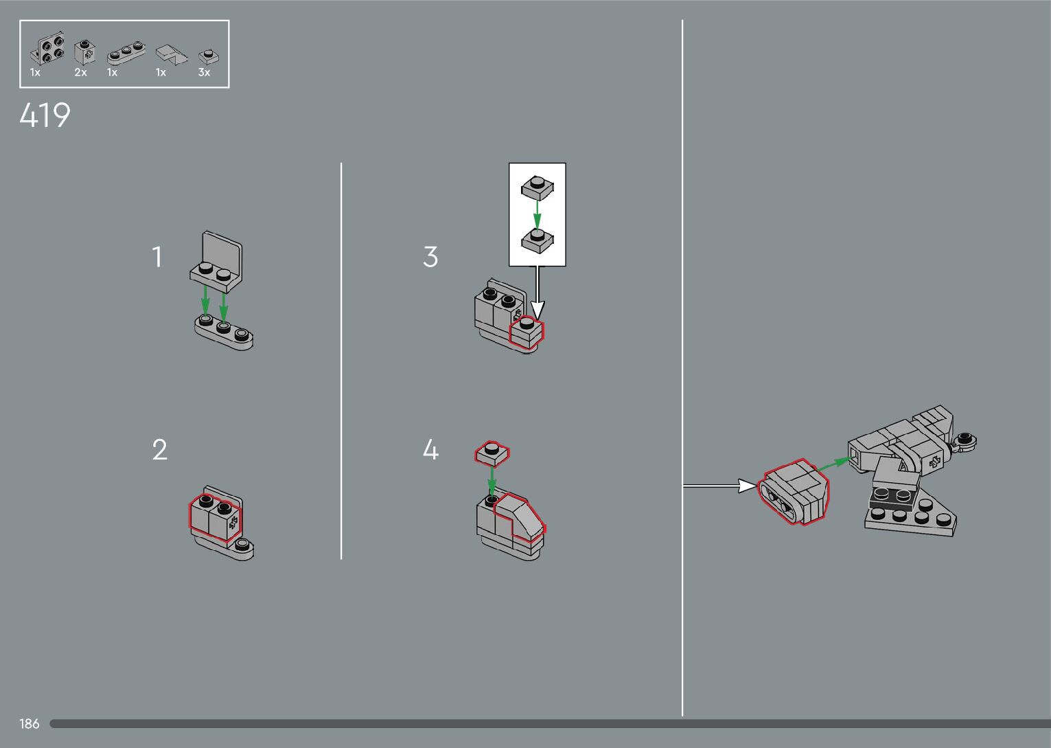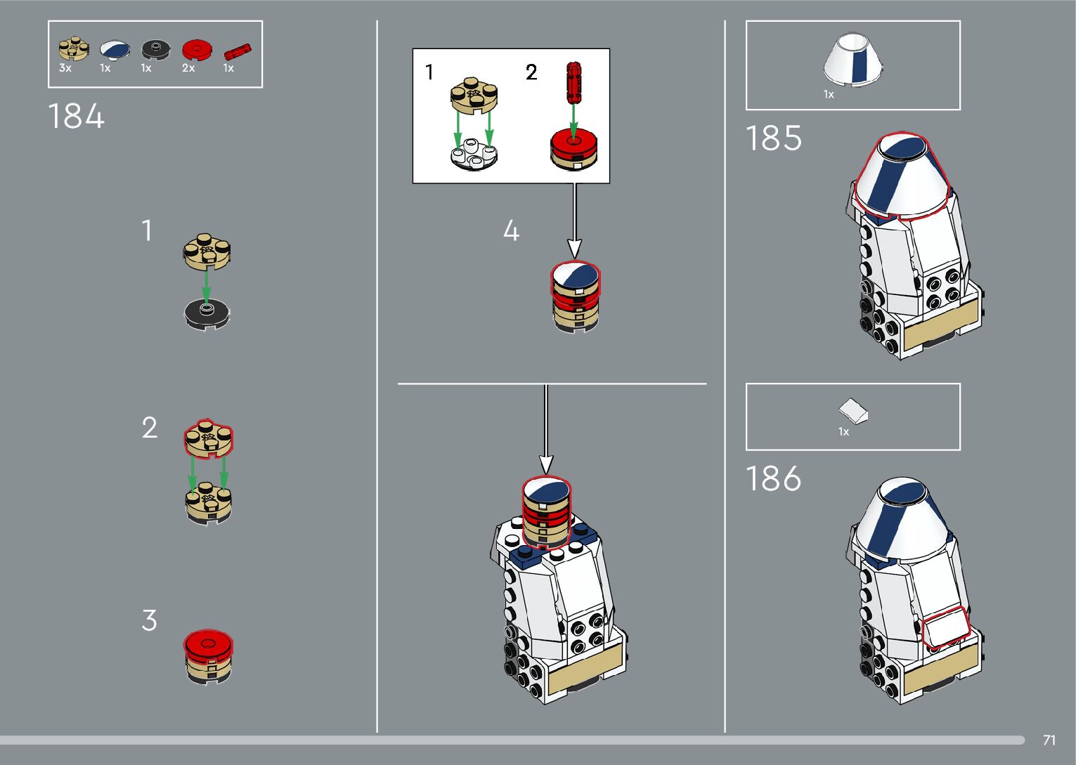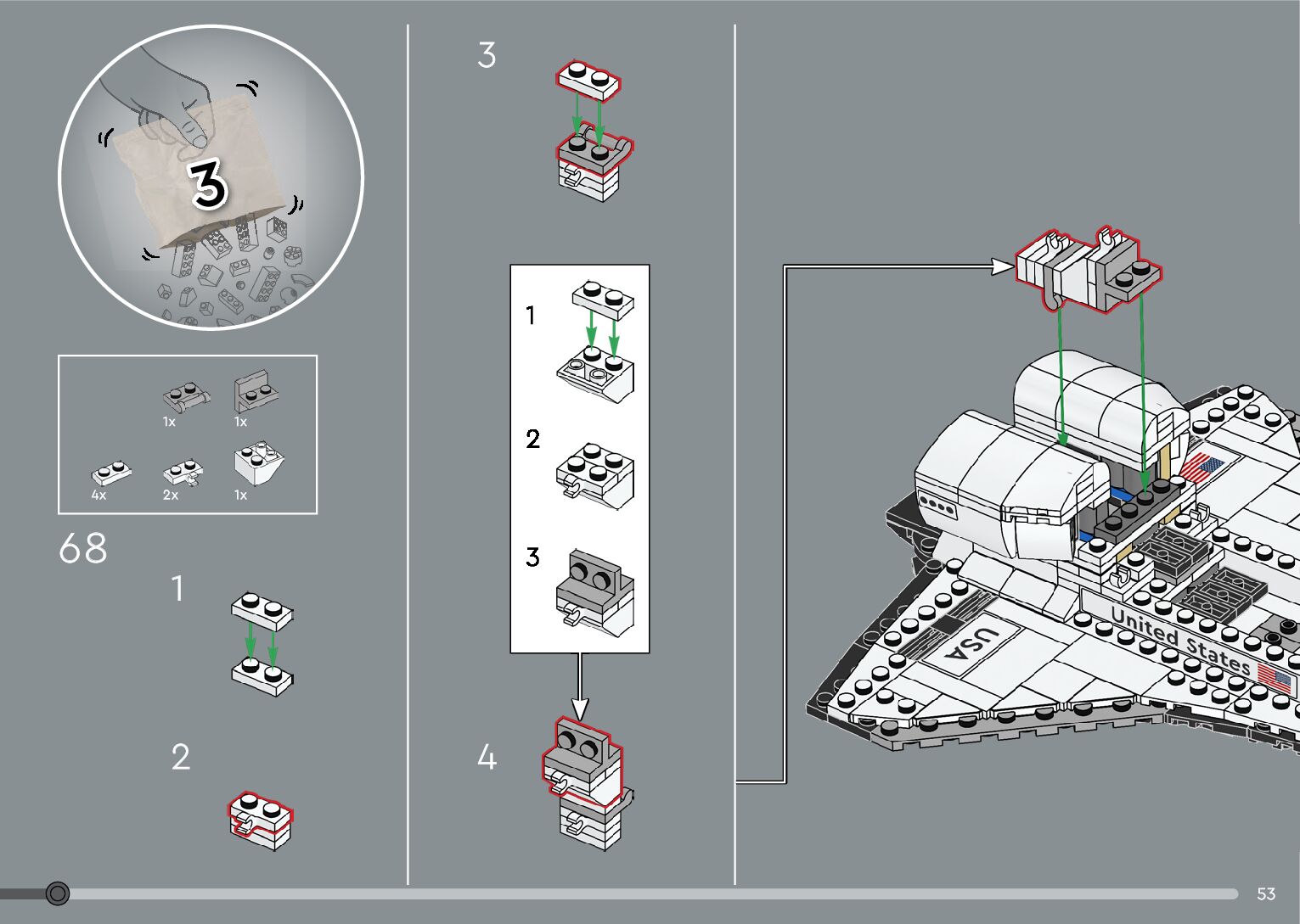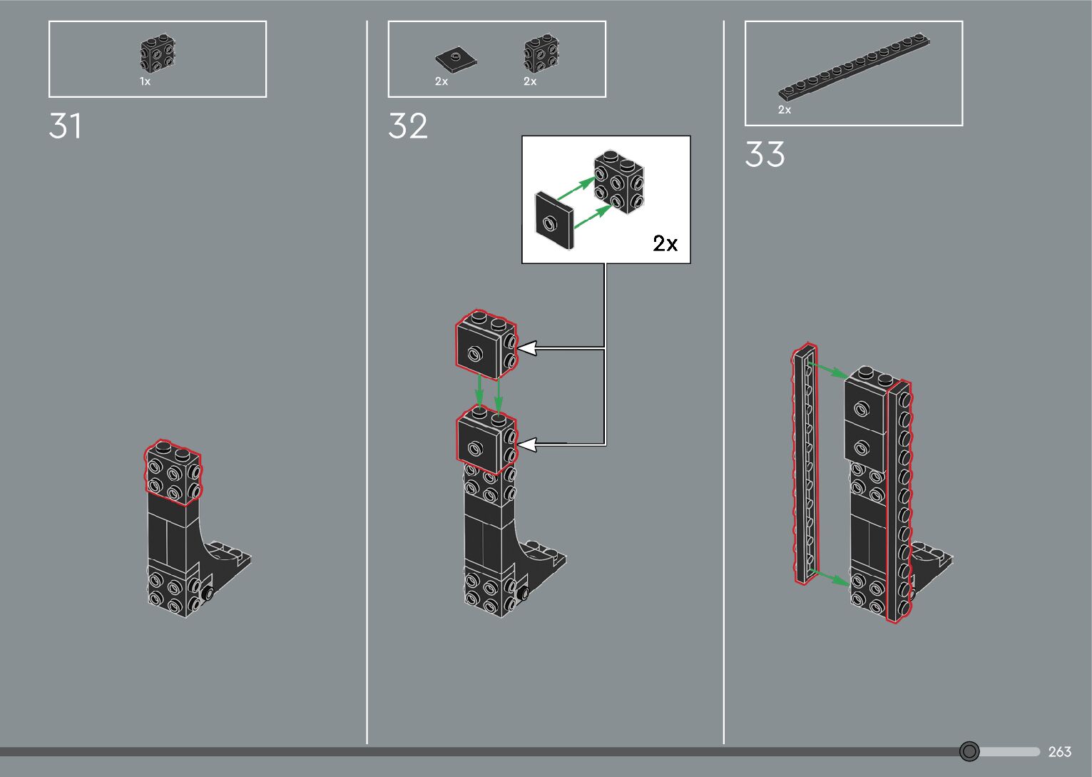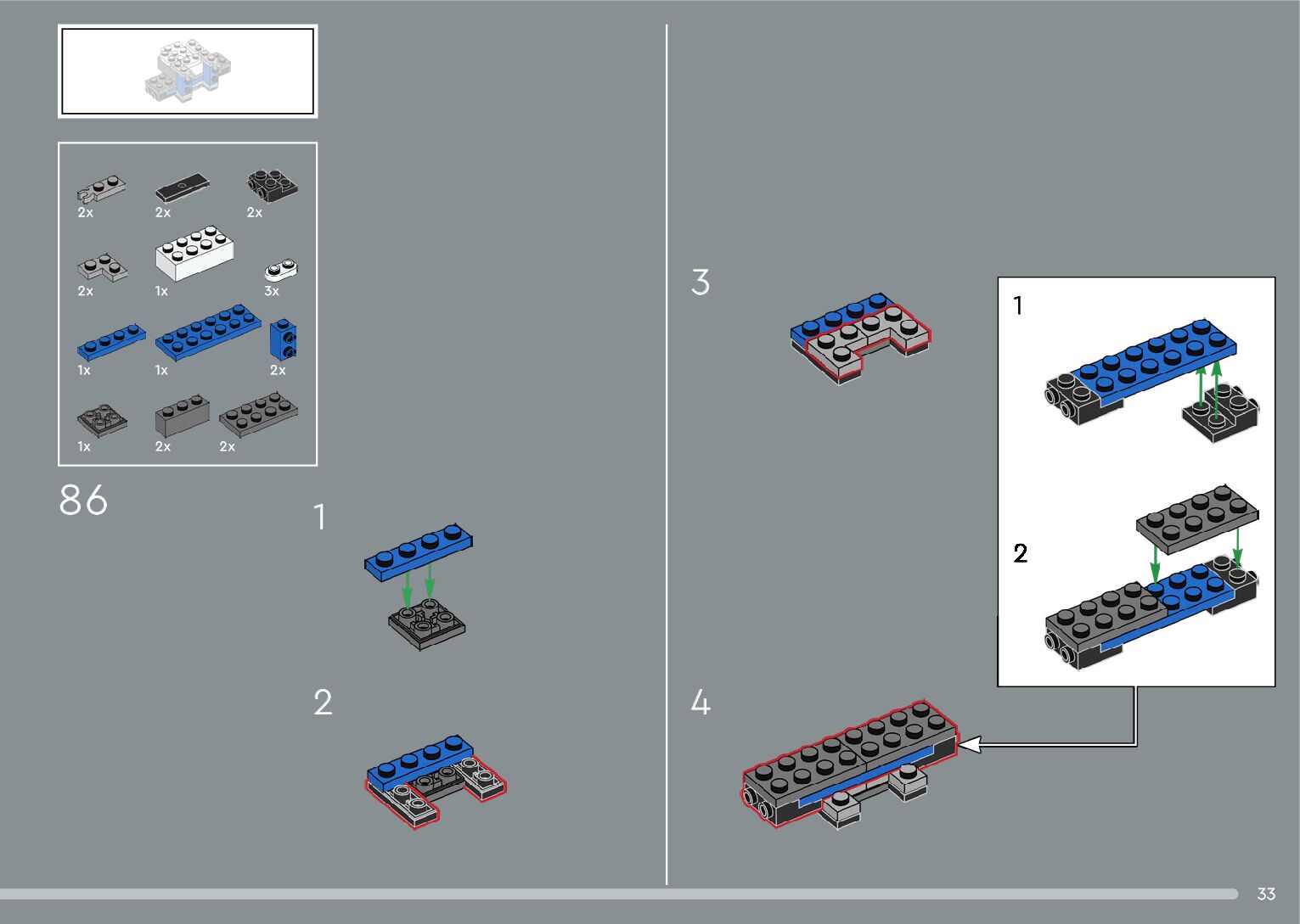 The assembly guide is prepared in a very understandable way for children and adult LEGO enthusiasts. A total of 376 picture galleries are shown, explaining the step-by-step construction stages for 2 different structures.