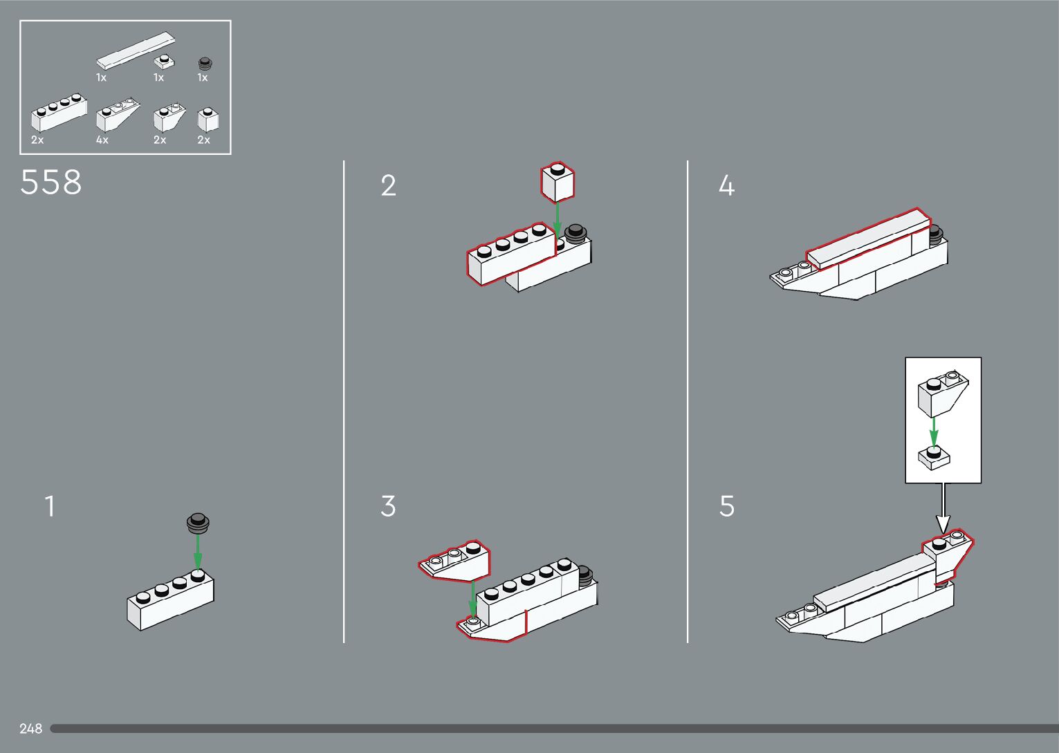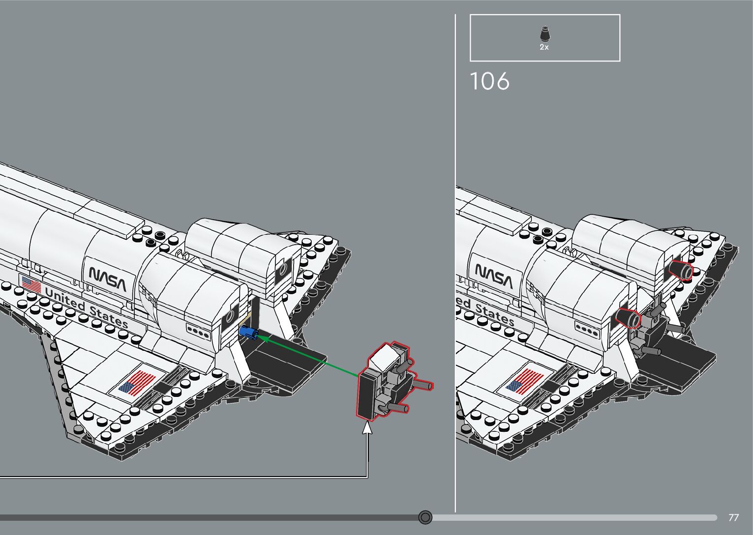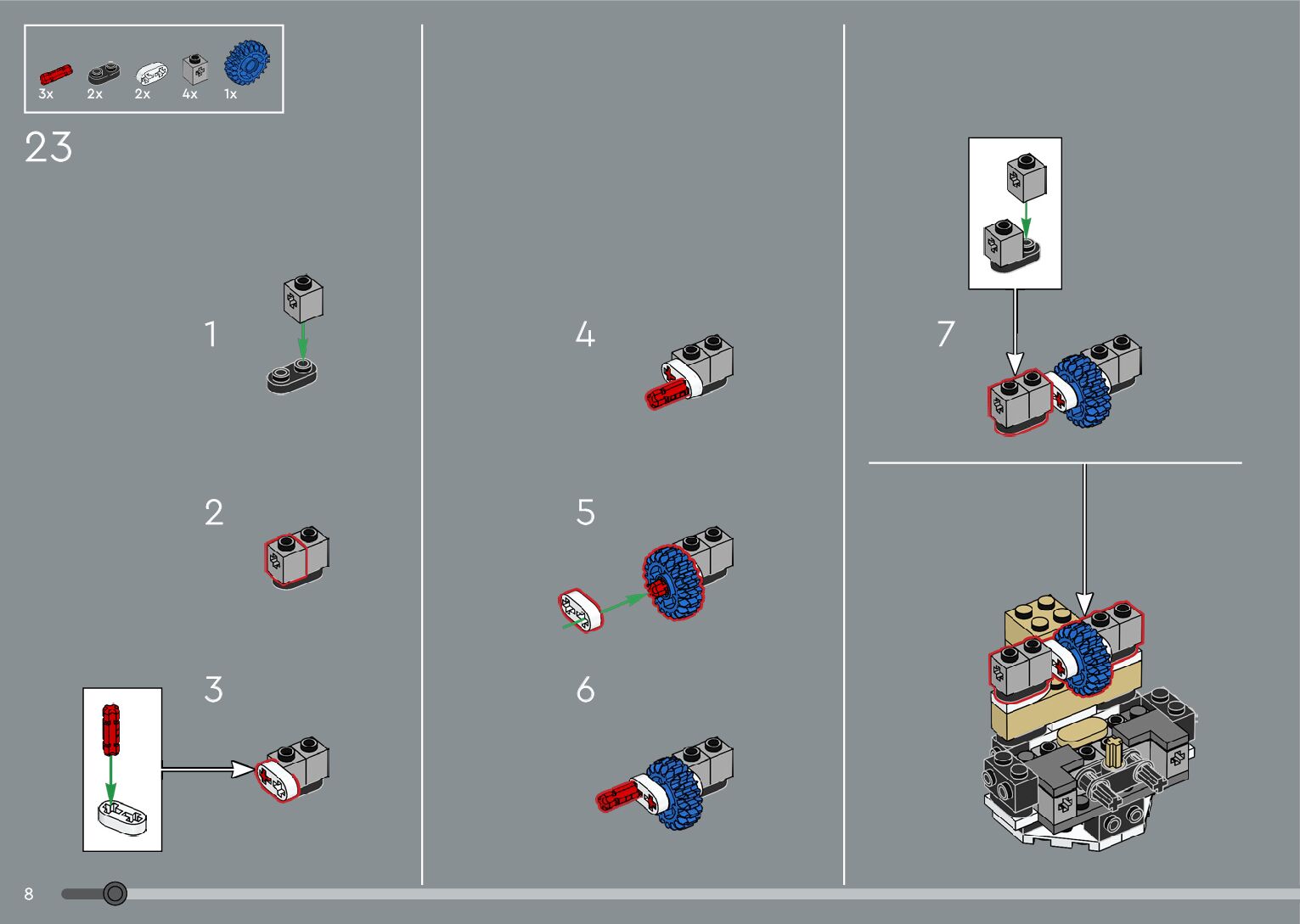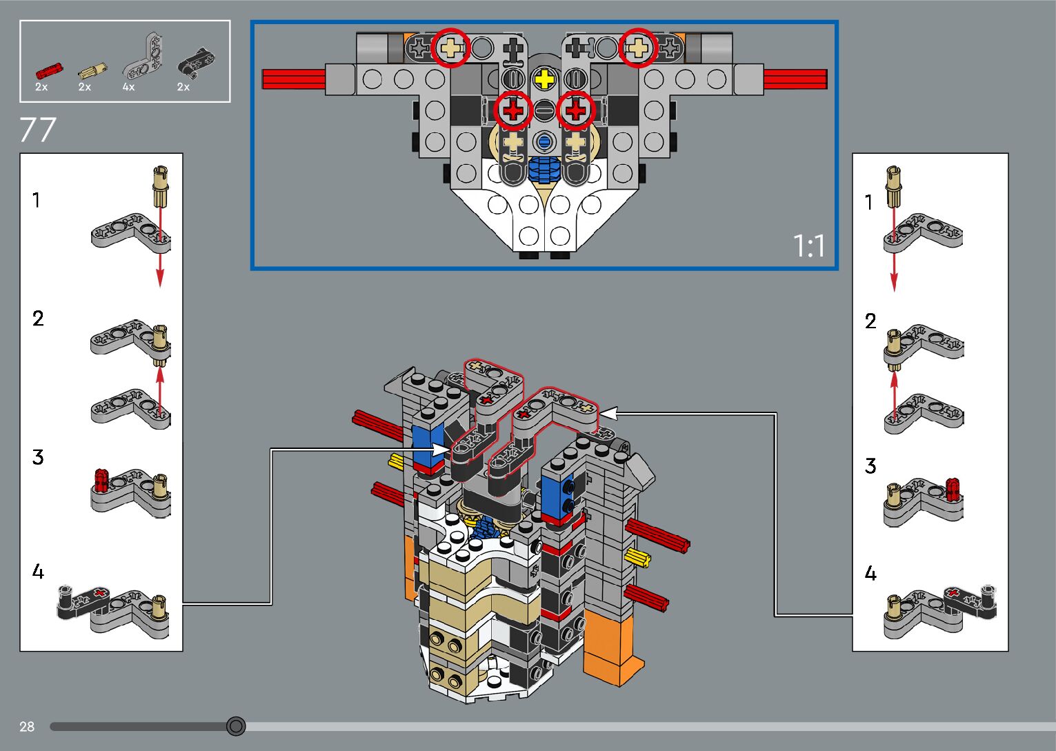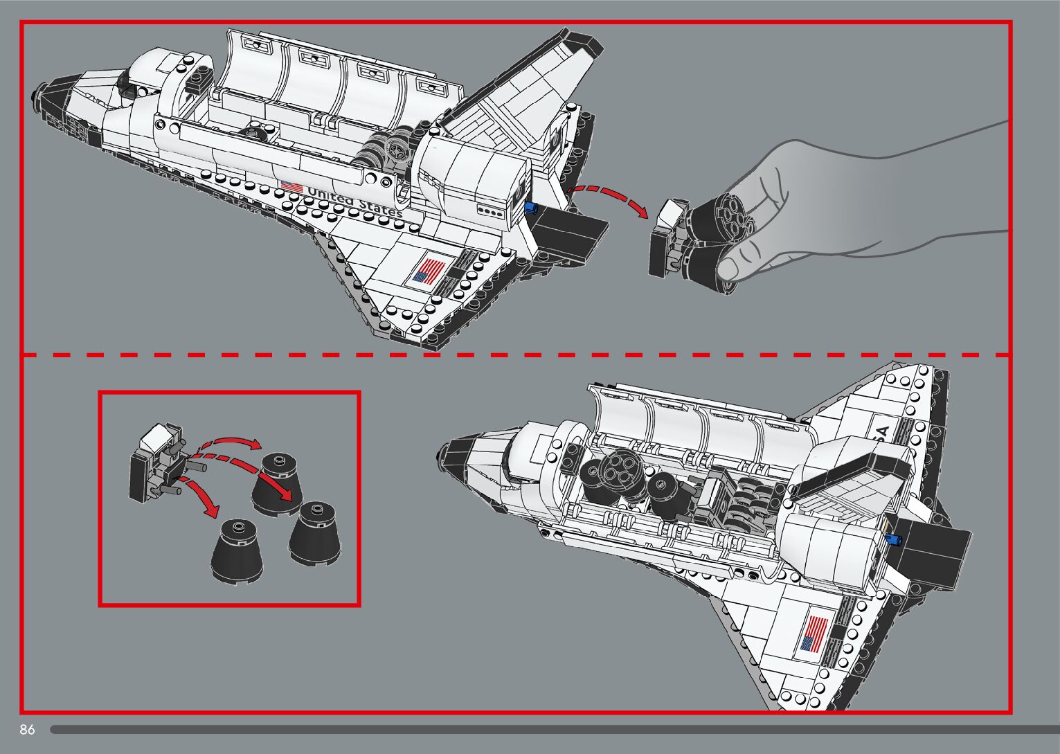The assembly guide is prepared in a very understandable way for children and adult LEGO enthusiasts. A total of 376 picture galleries are shown, explaining the step-by-step construction stages for 2 different structures.