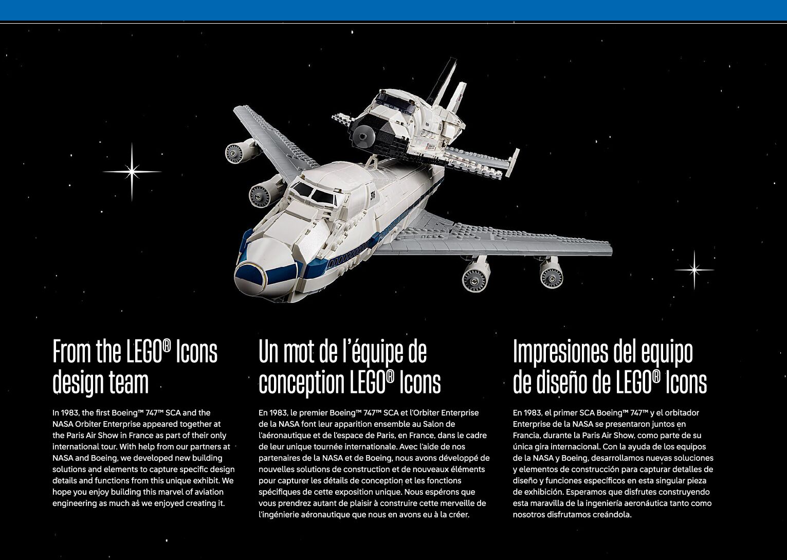 On this page you can find the original construction manual for the LEGO 10360 set. With the assembly manual you can easily learn how to build the Shuttle Carrier Aircraft step by step. The set was released in 2025.