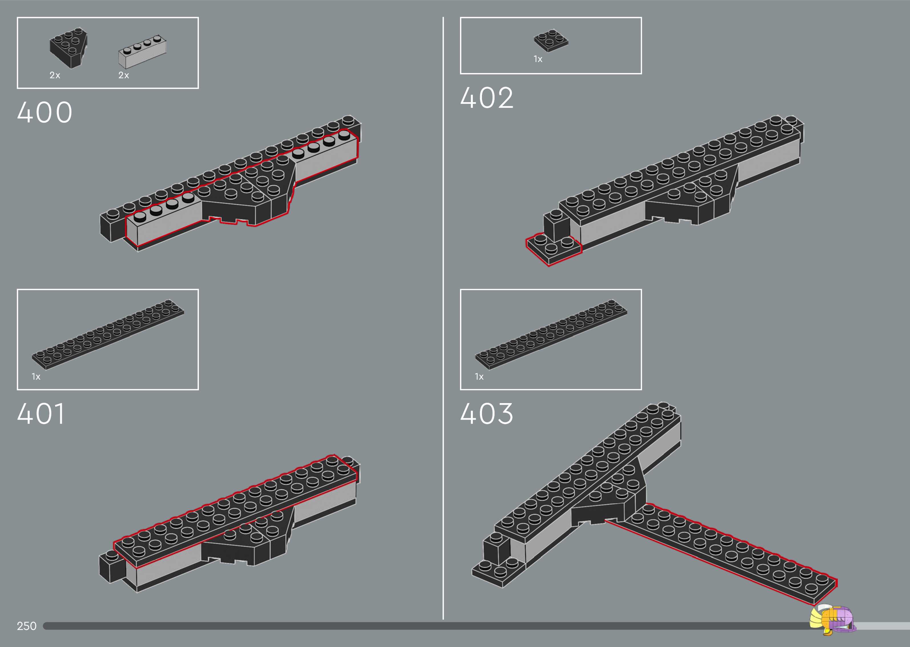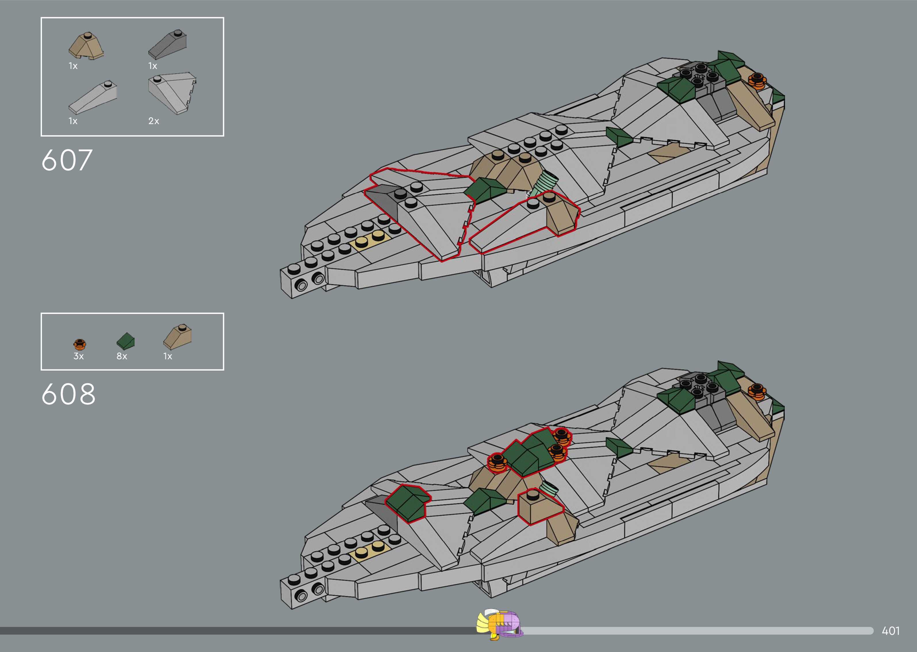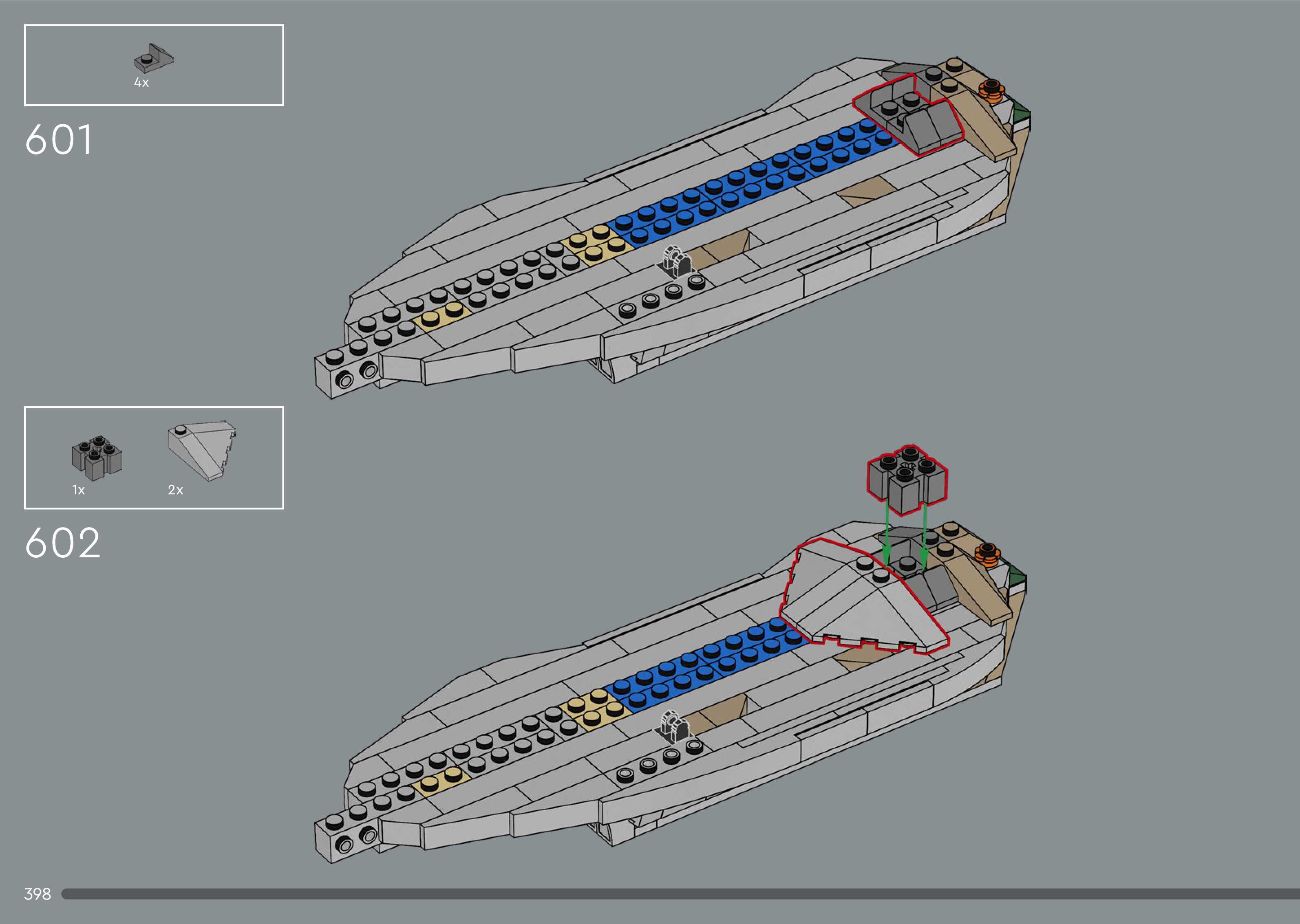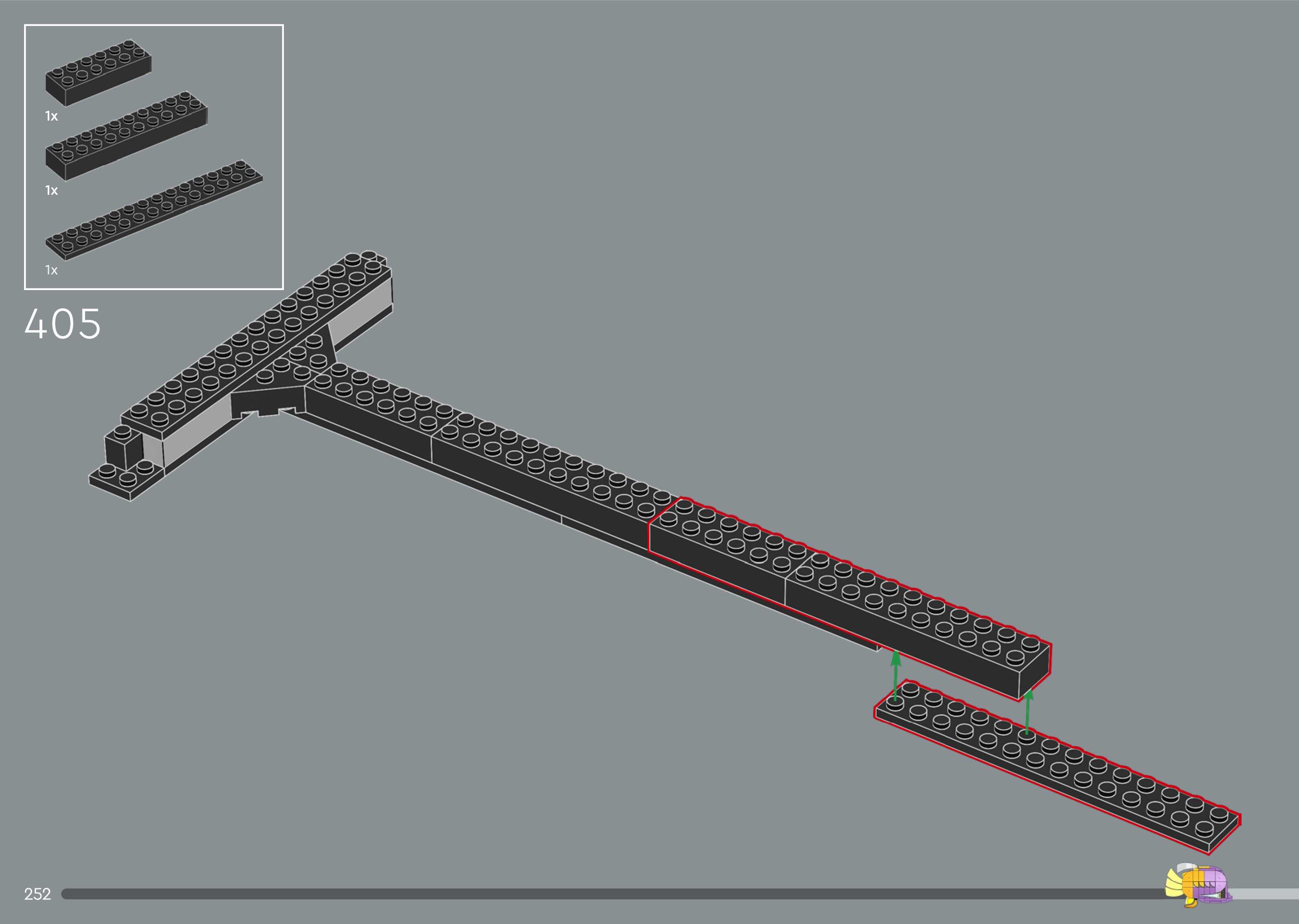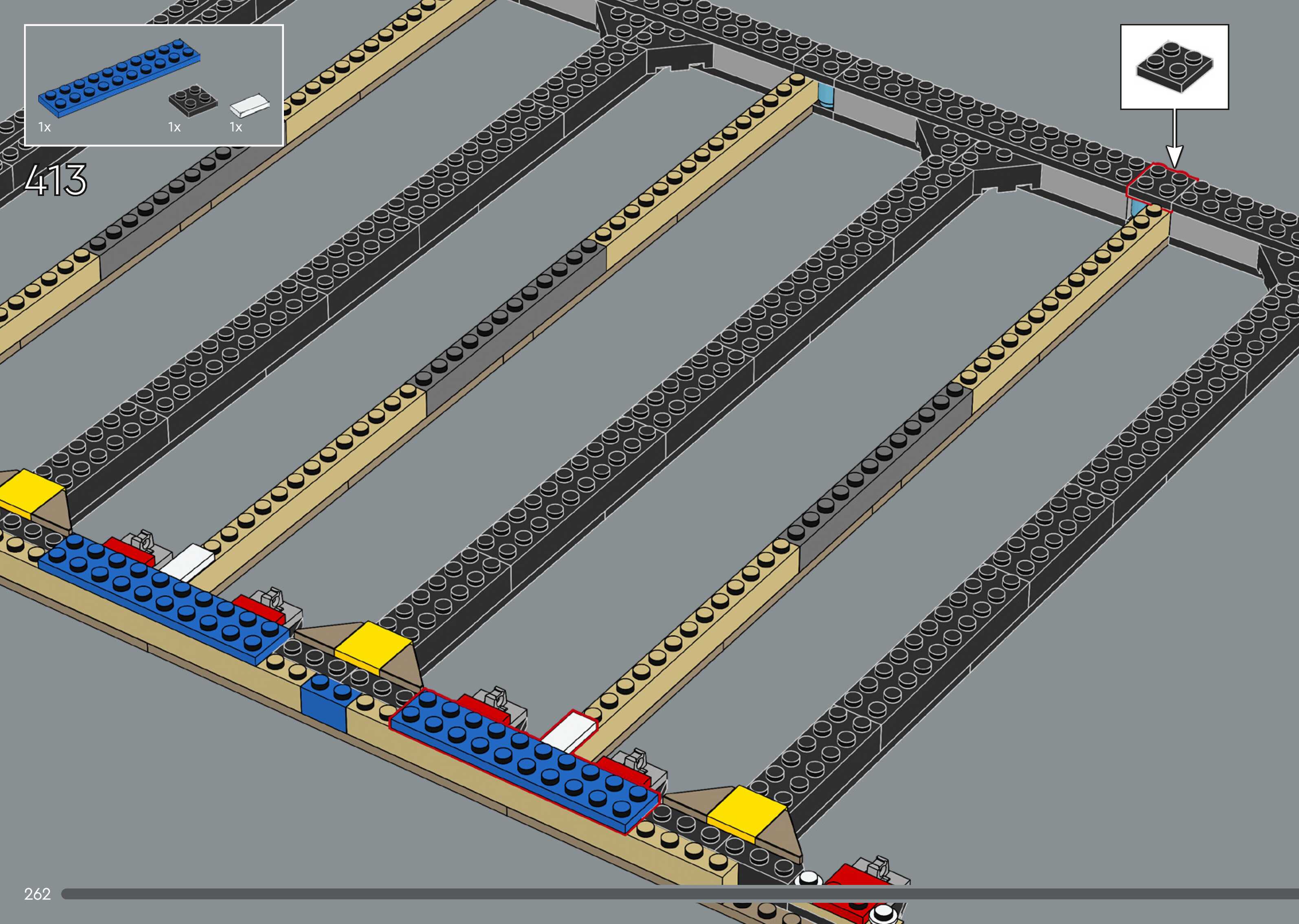 The assembly guide is prepared in a very understandable way for children and adult LEGO enthusiasts. A total of 402 picture galleries are shown, explaining the step-by-step construction stages for 1 different structures.