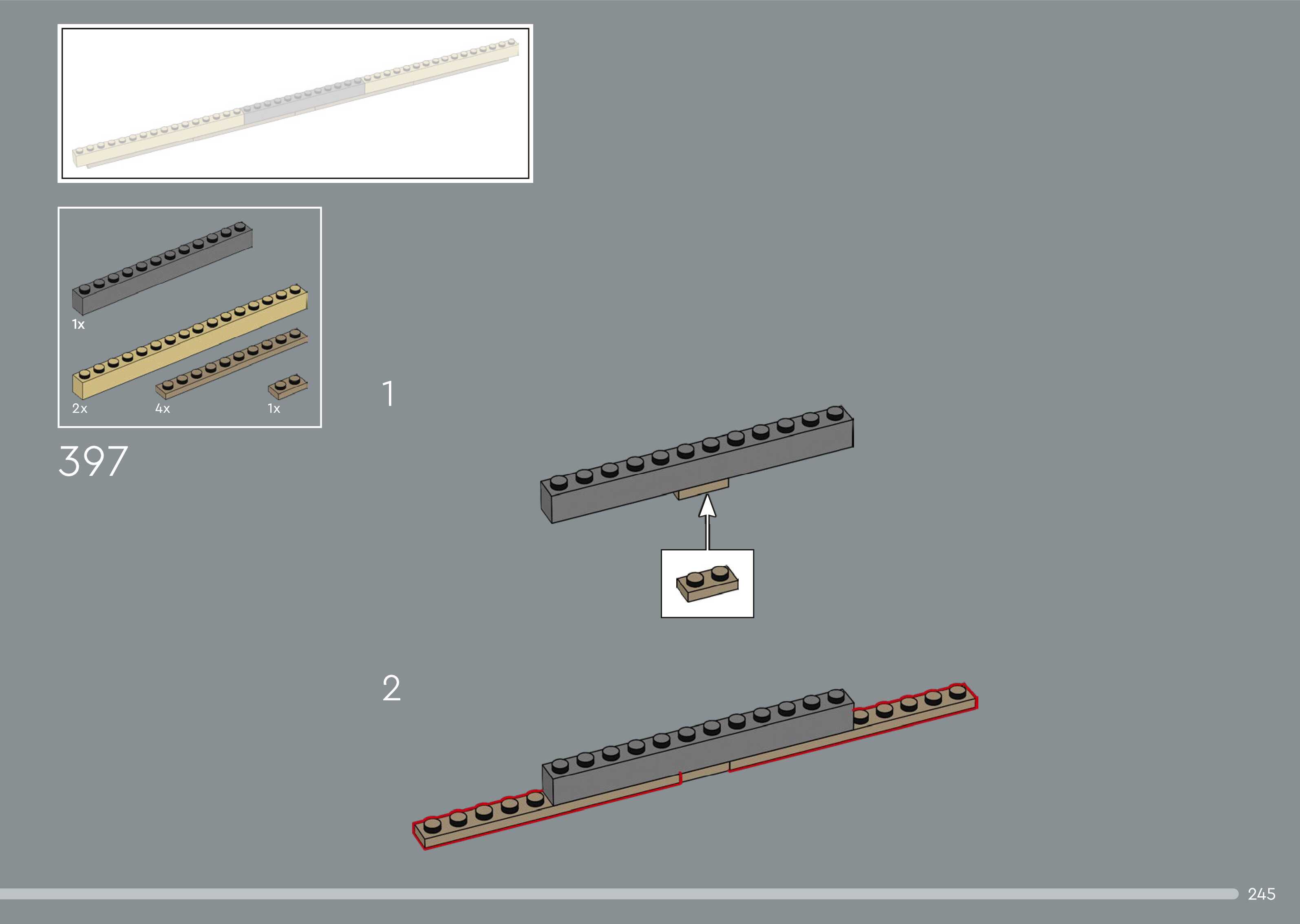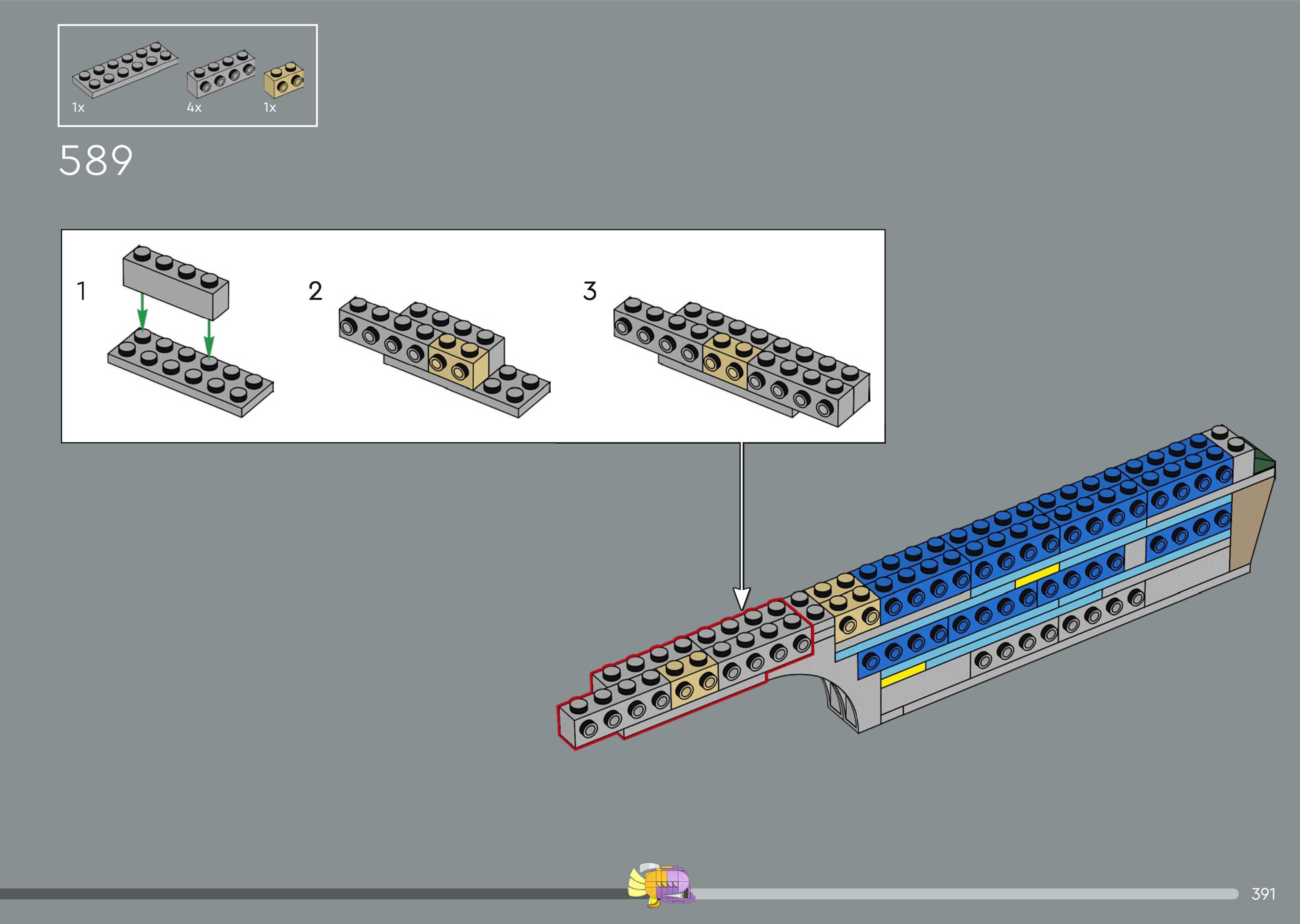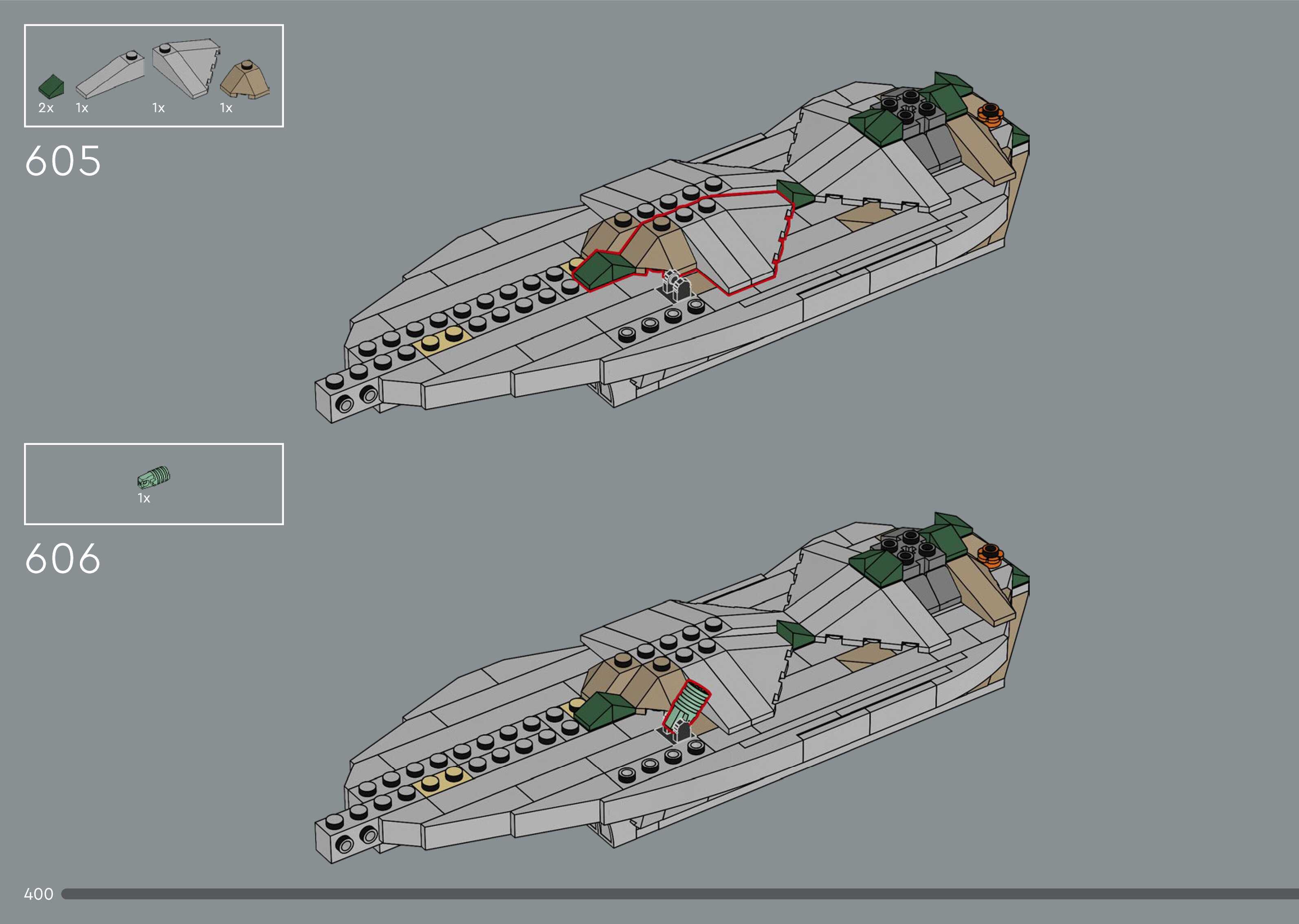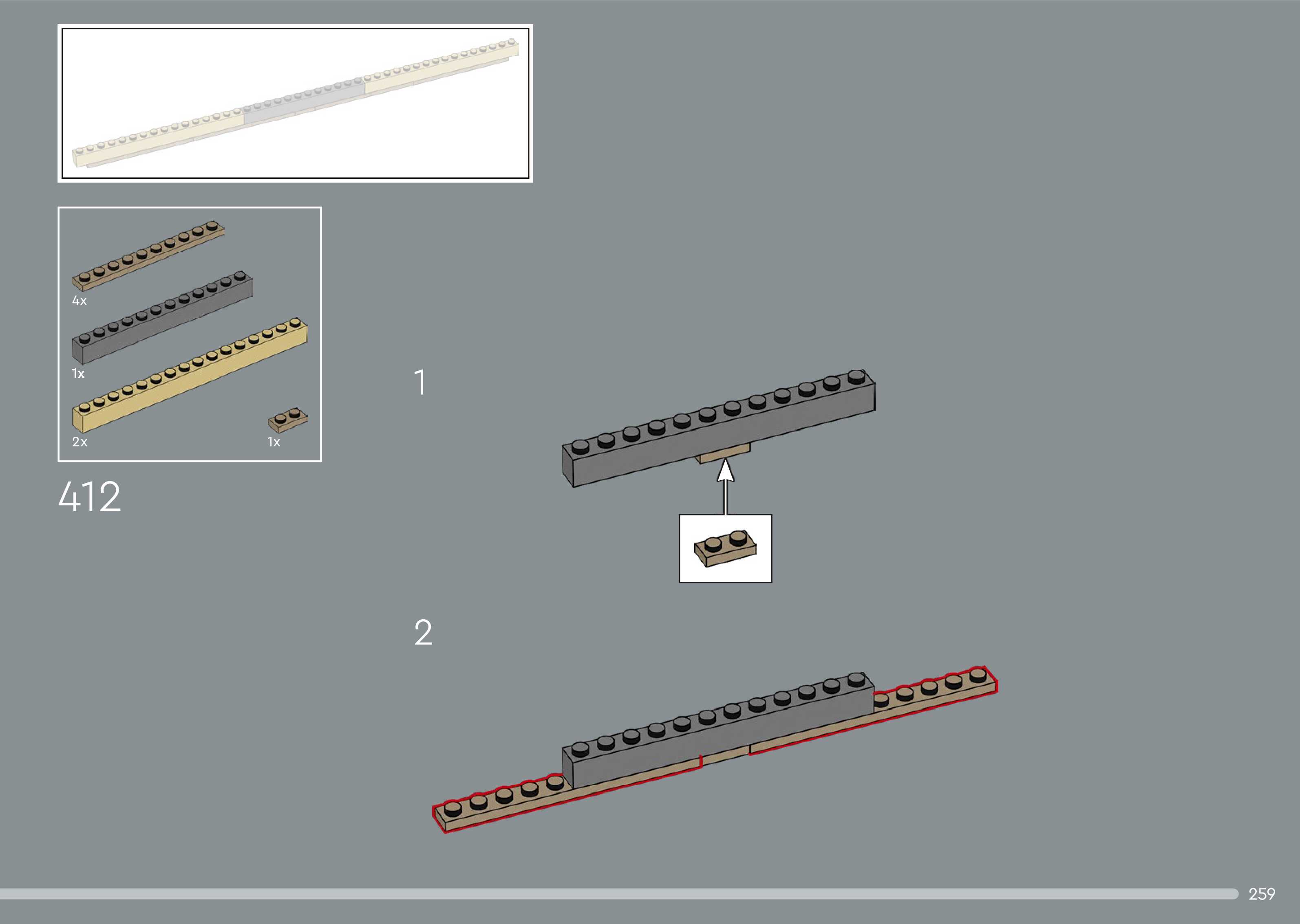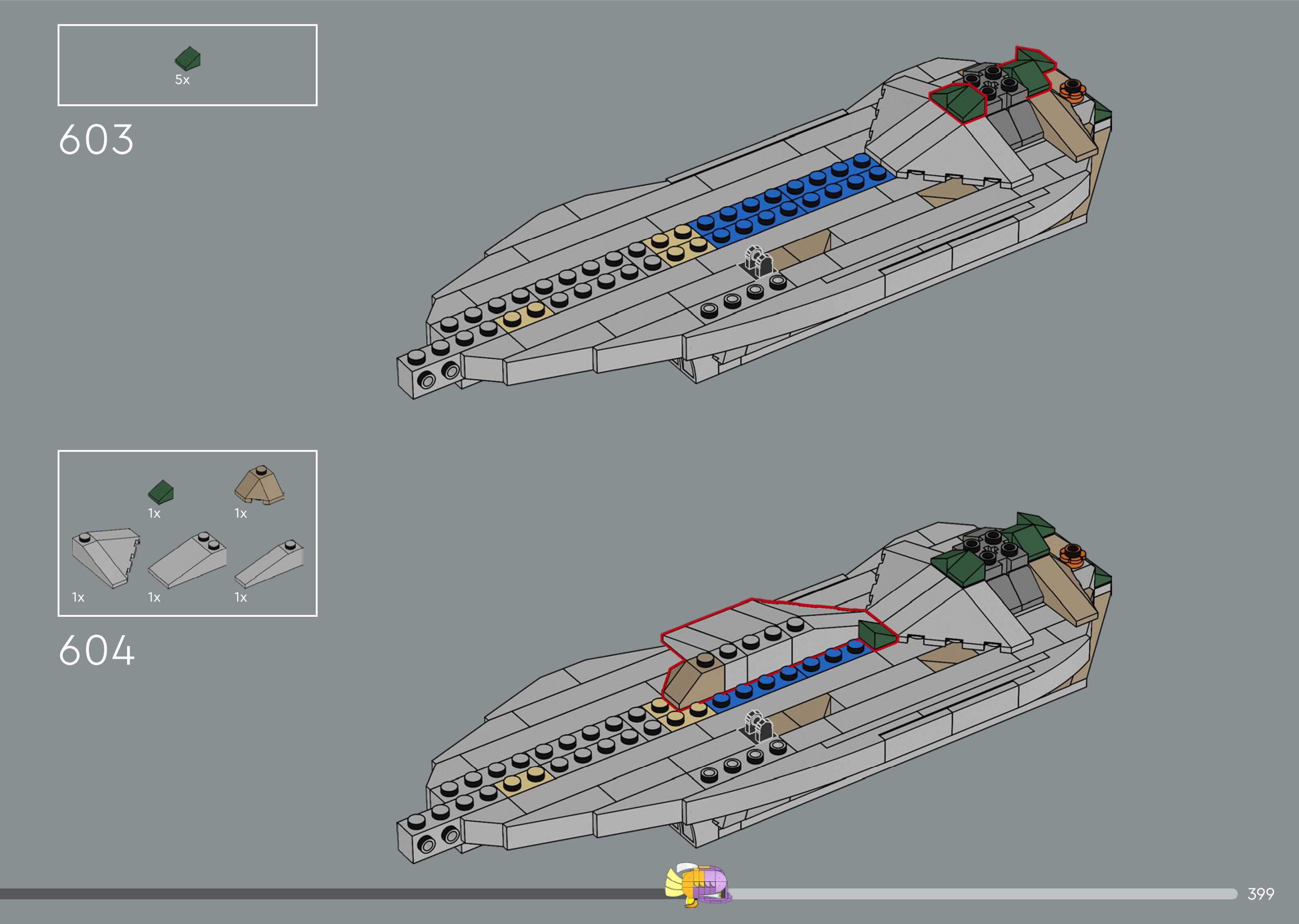 The assembly guide is prepared in a very understandable way for children and adult LEGO enthusiasts. A total of 402 picture galleries are shown, explaining the step-by-step construction stages for 1 different structures.