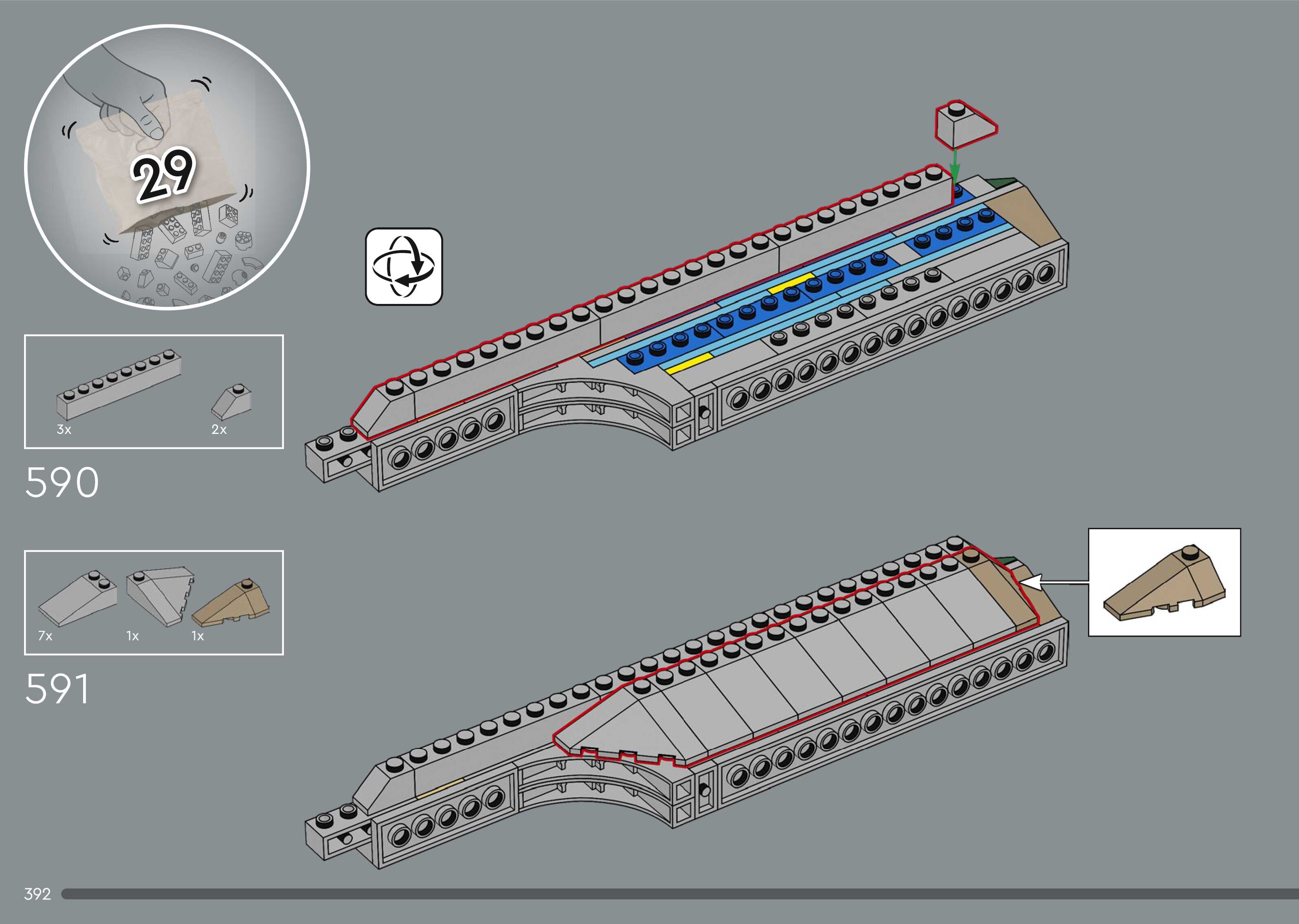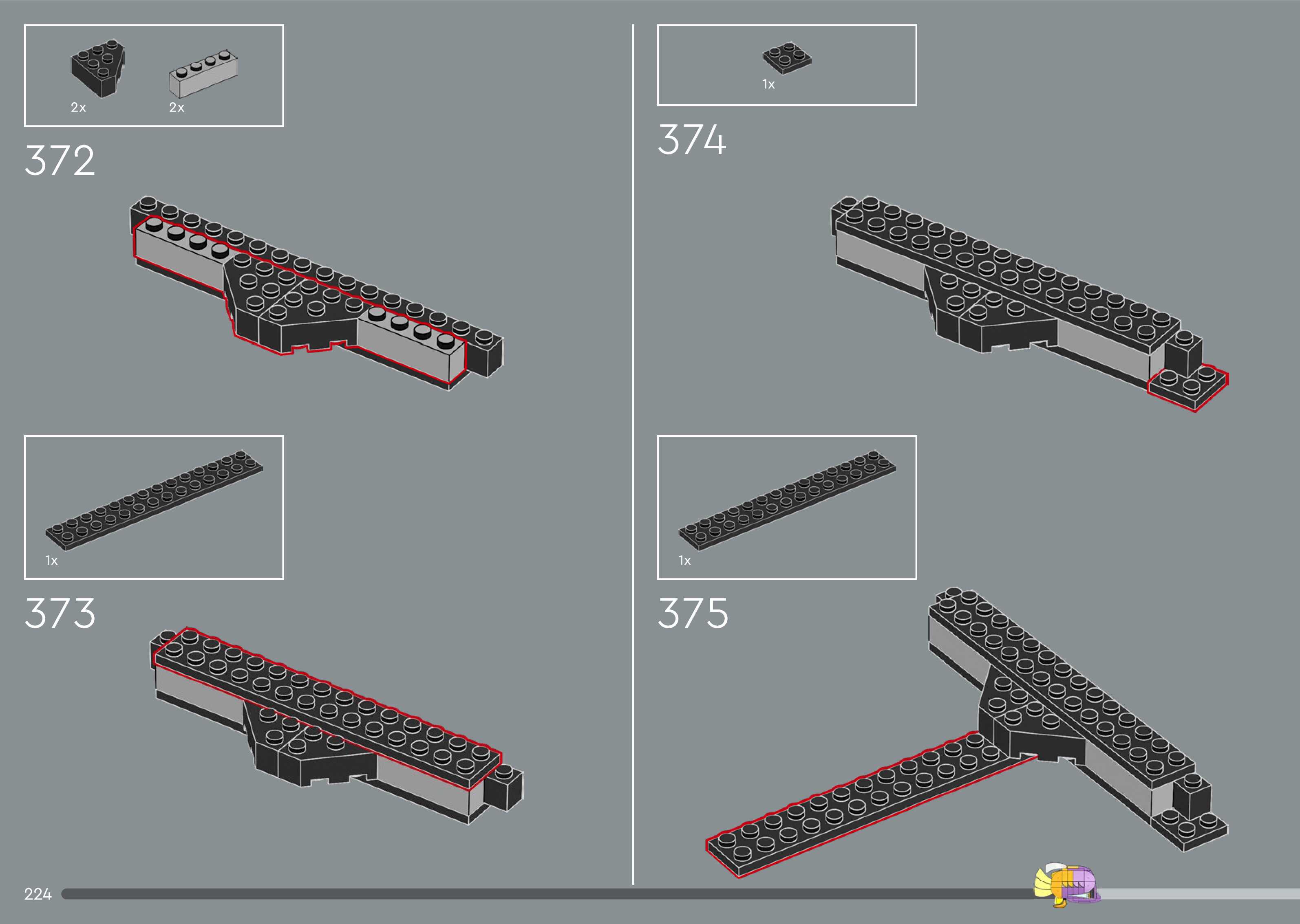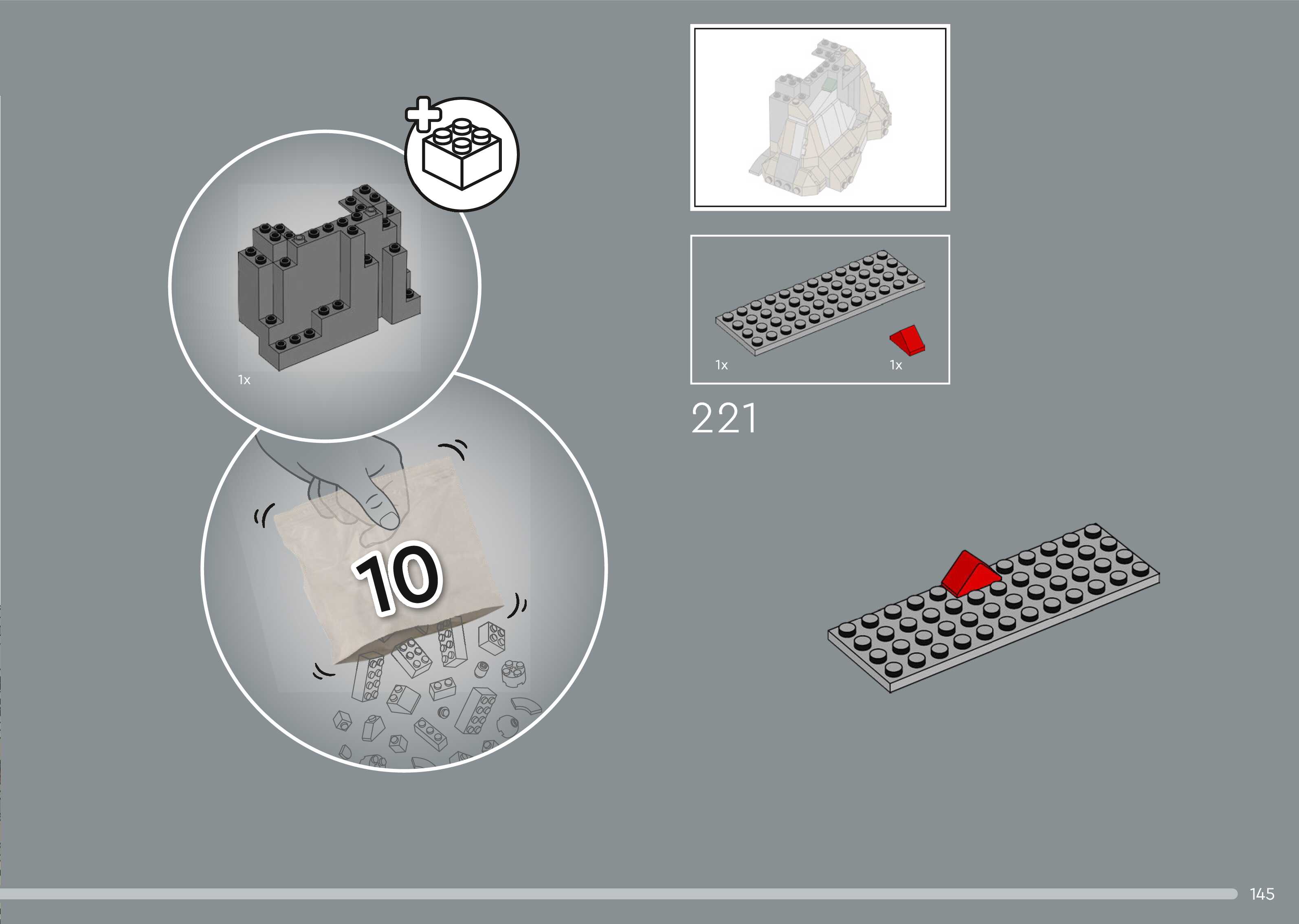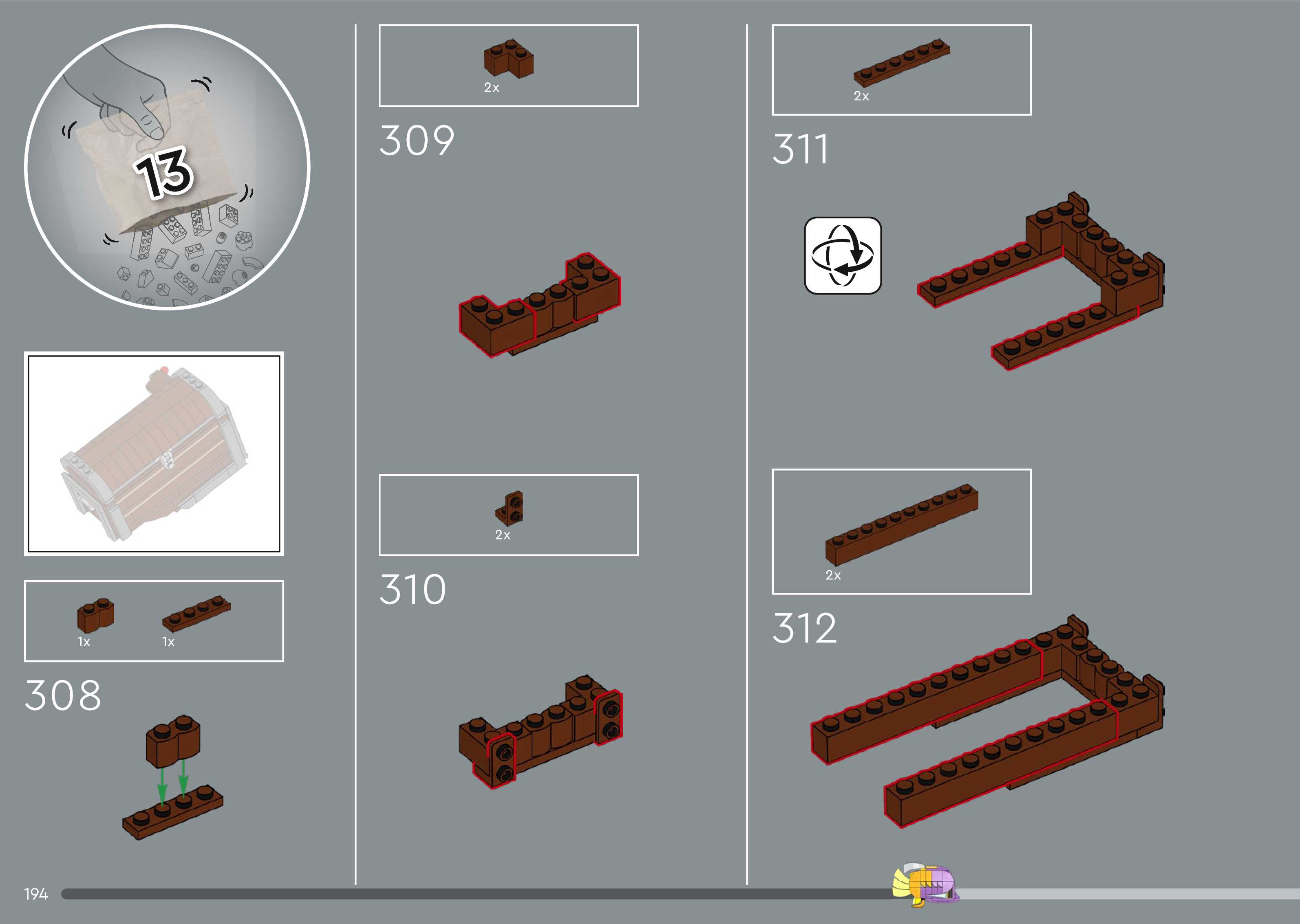 The assembly guide is prepared in a very understandable way for children and adult LEGO enthusiasts. A total of 402 picture galleries are shown, explaining the step-by-step construction stages for 1 different structures.