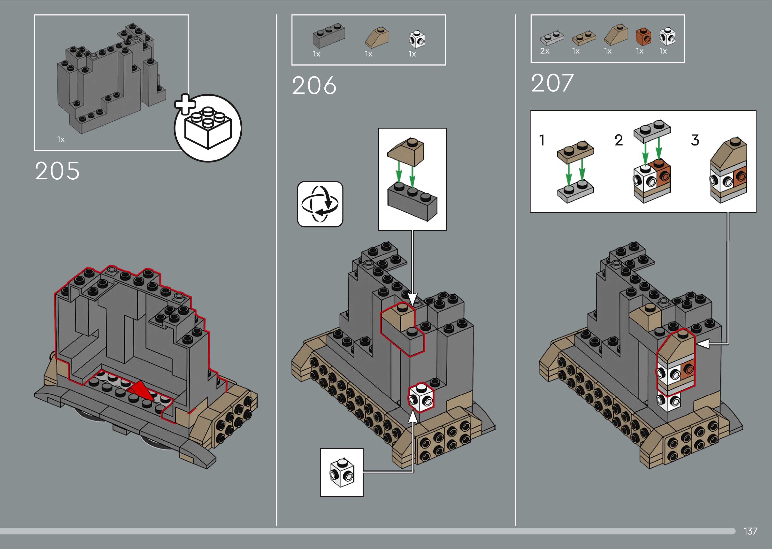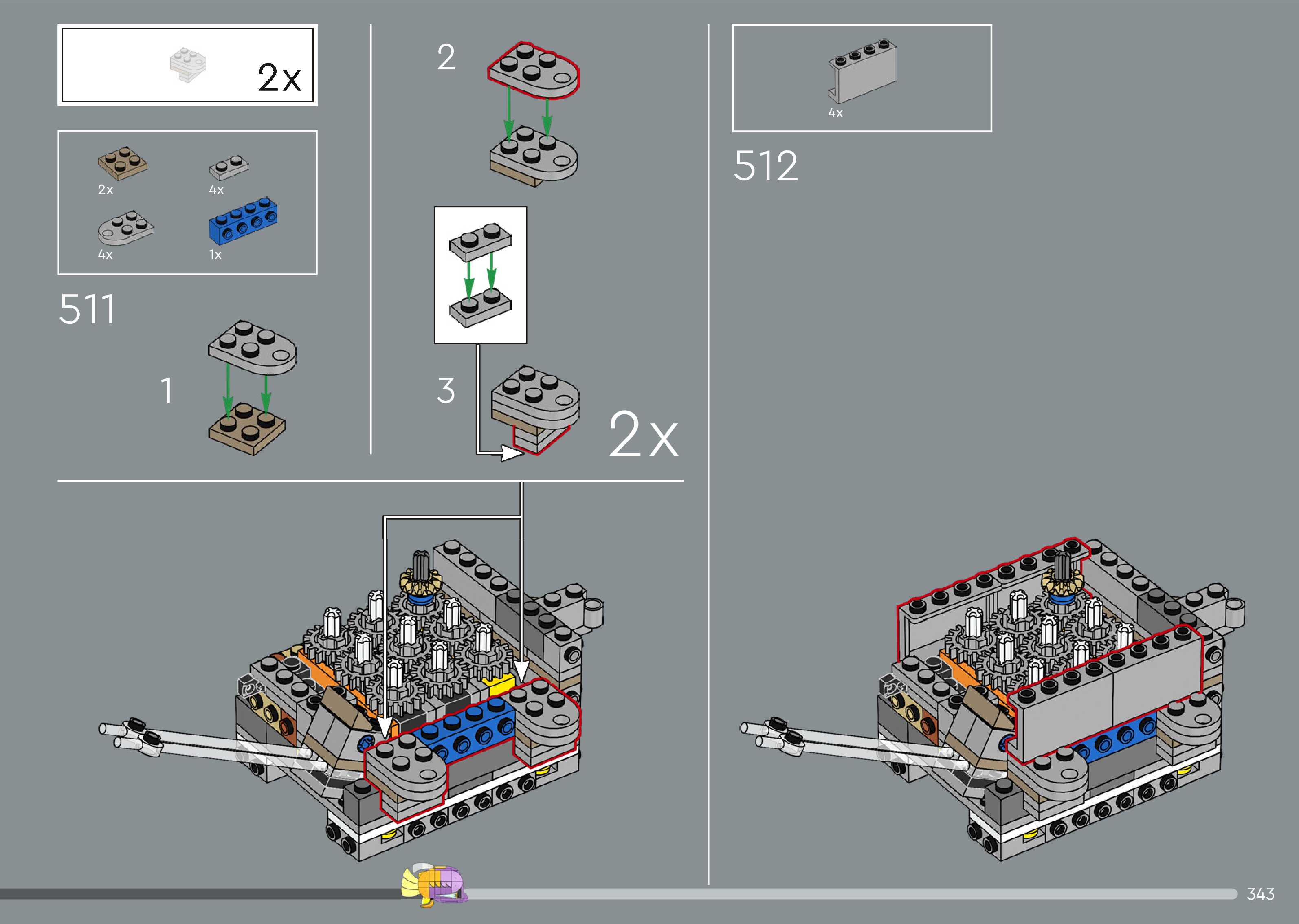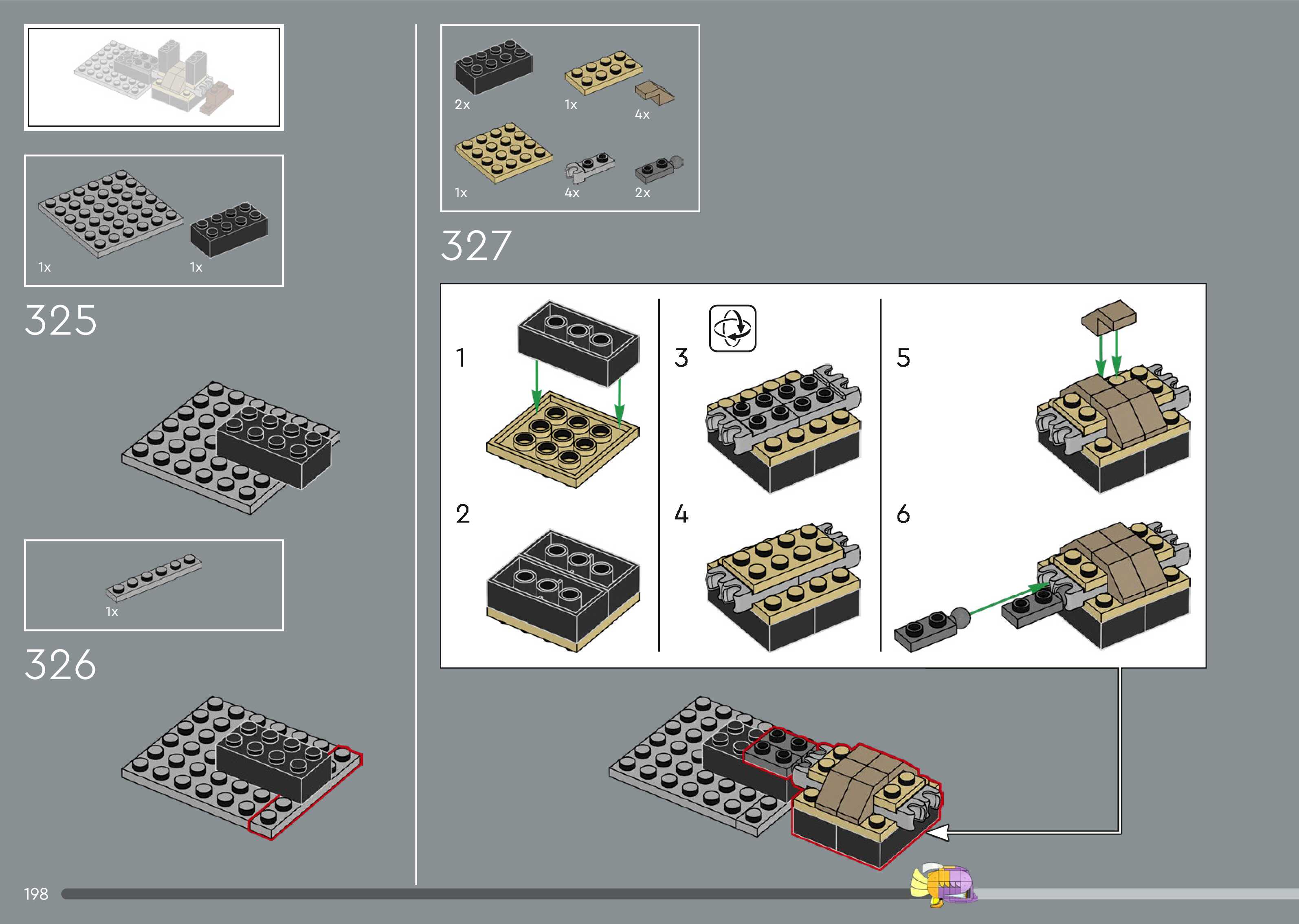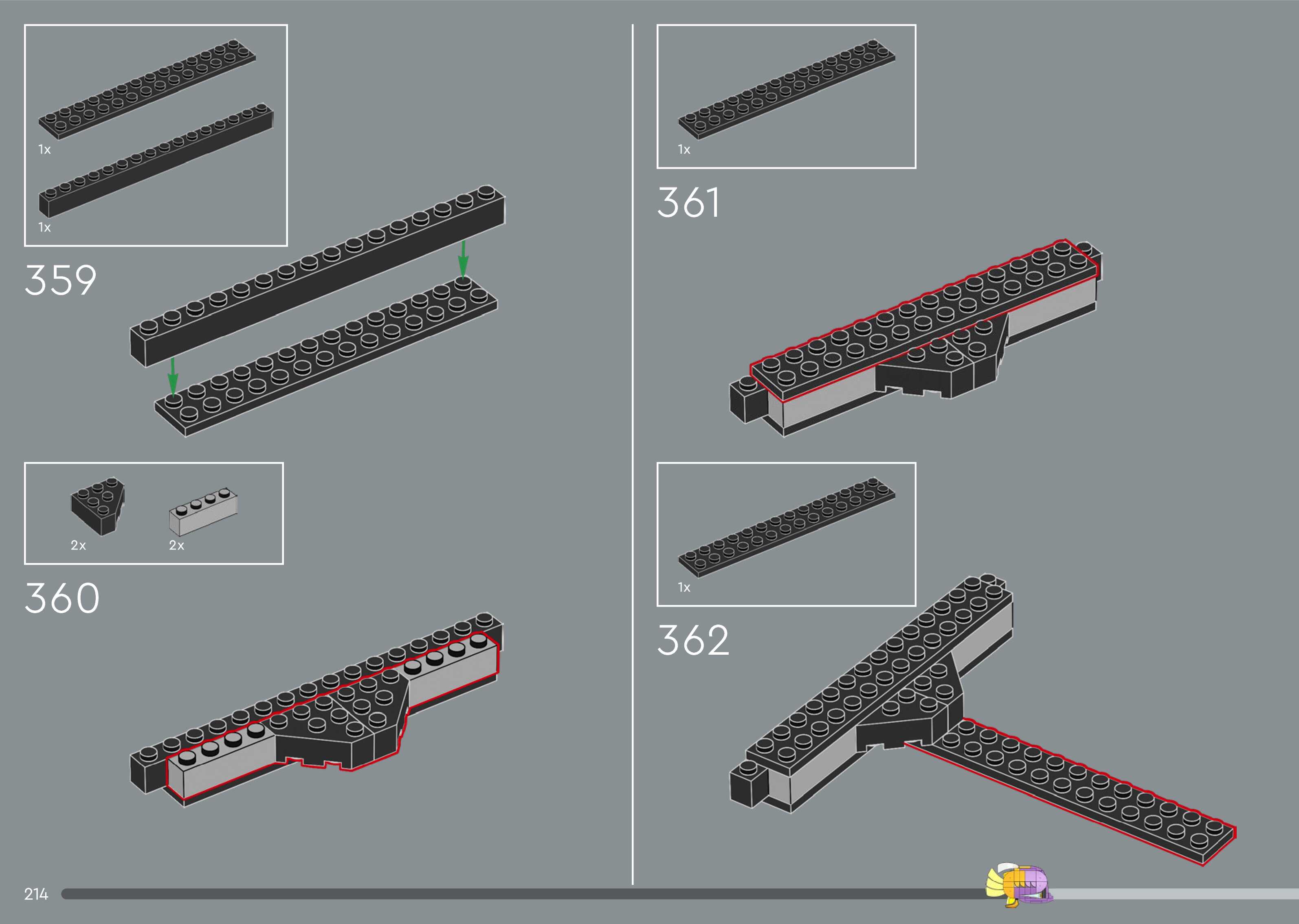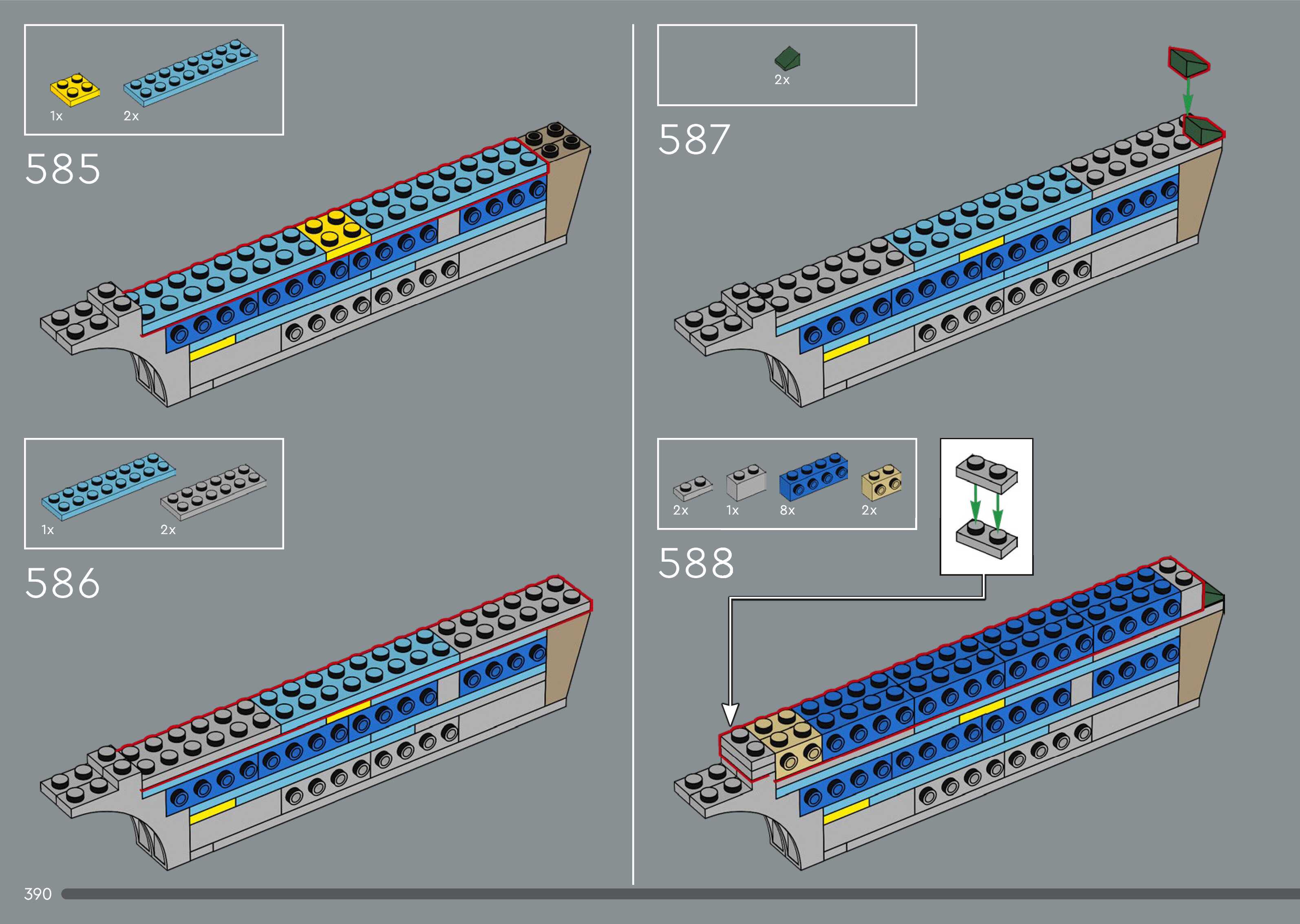 The assembly guide is prepared in a very understandable way for children and adult LEGO enthusiasts. A total of 402 picture galleries are shown, explaining the step-by-step construction stages for 1 different structures.