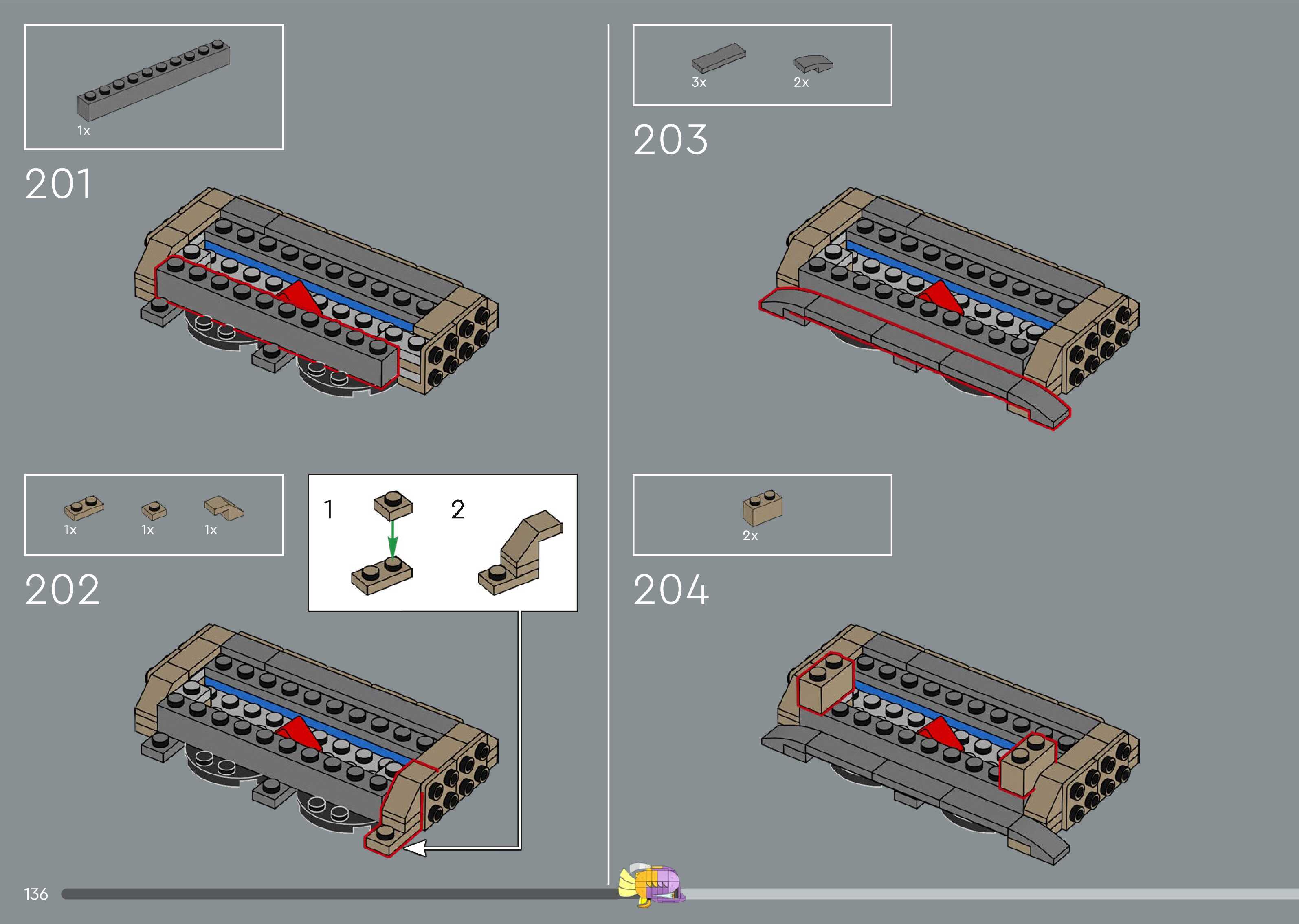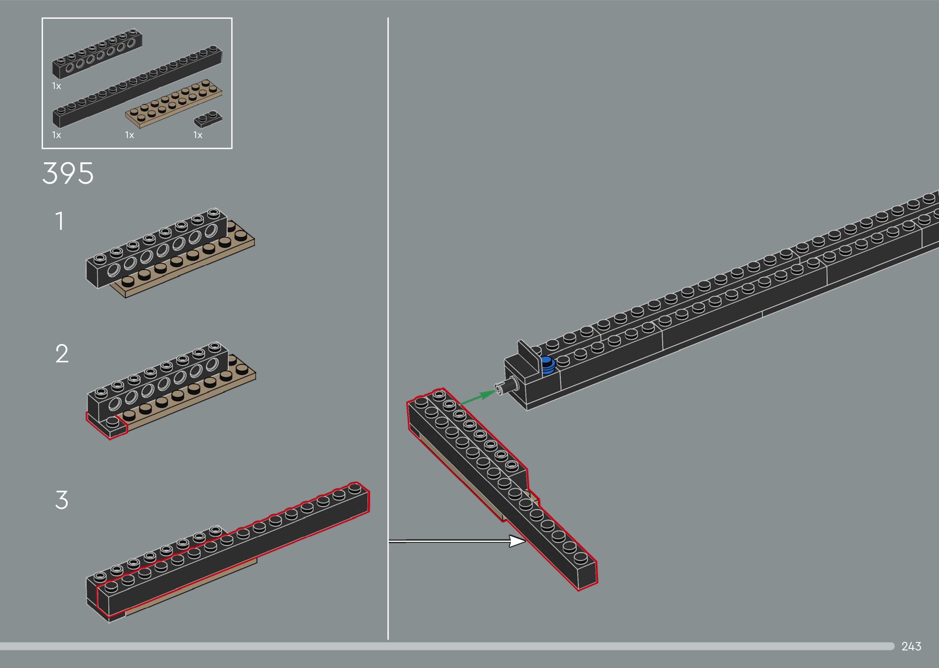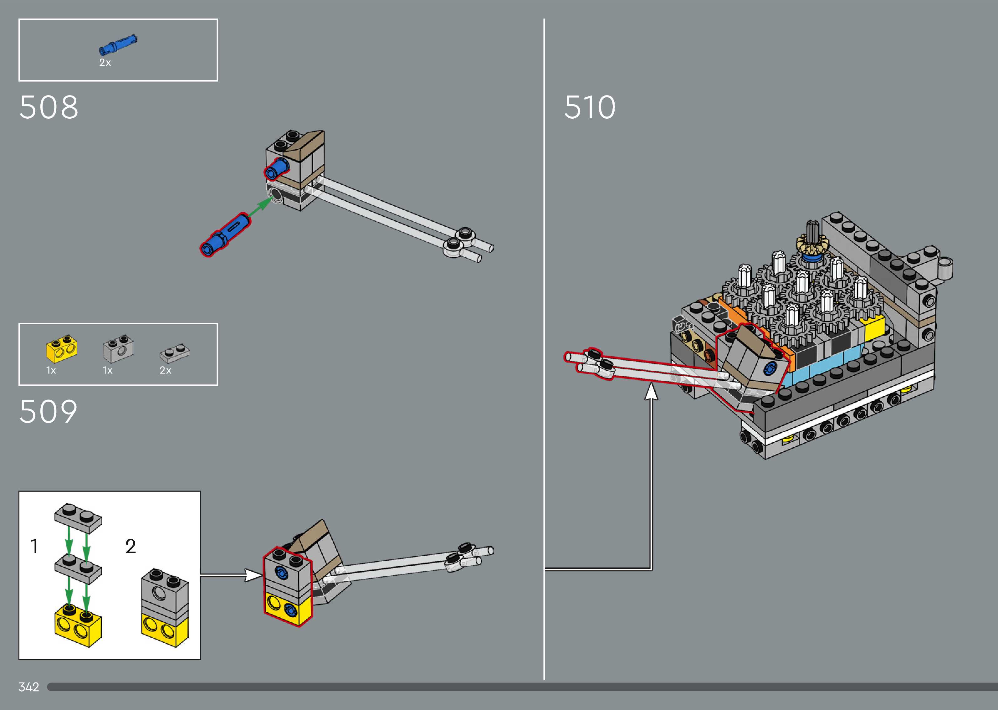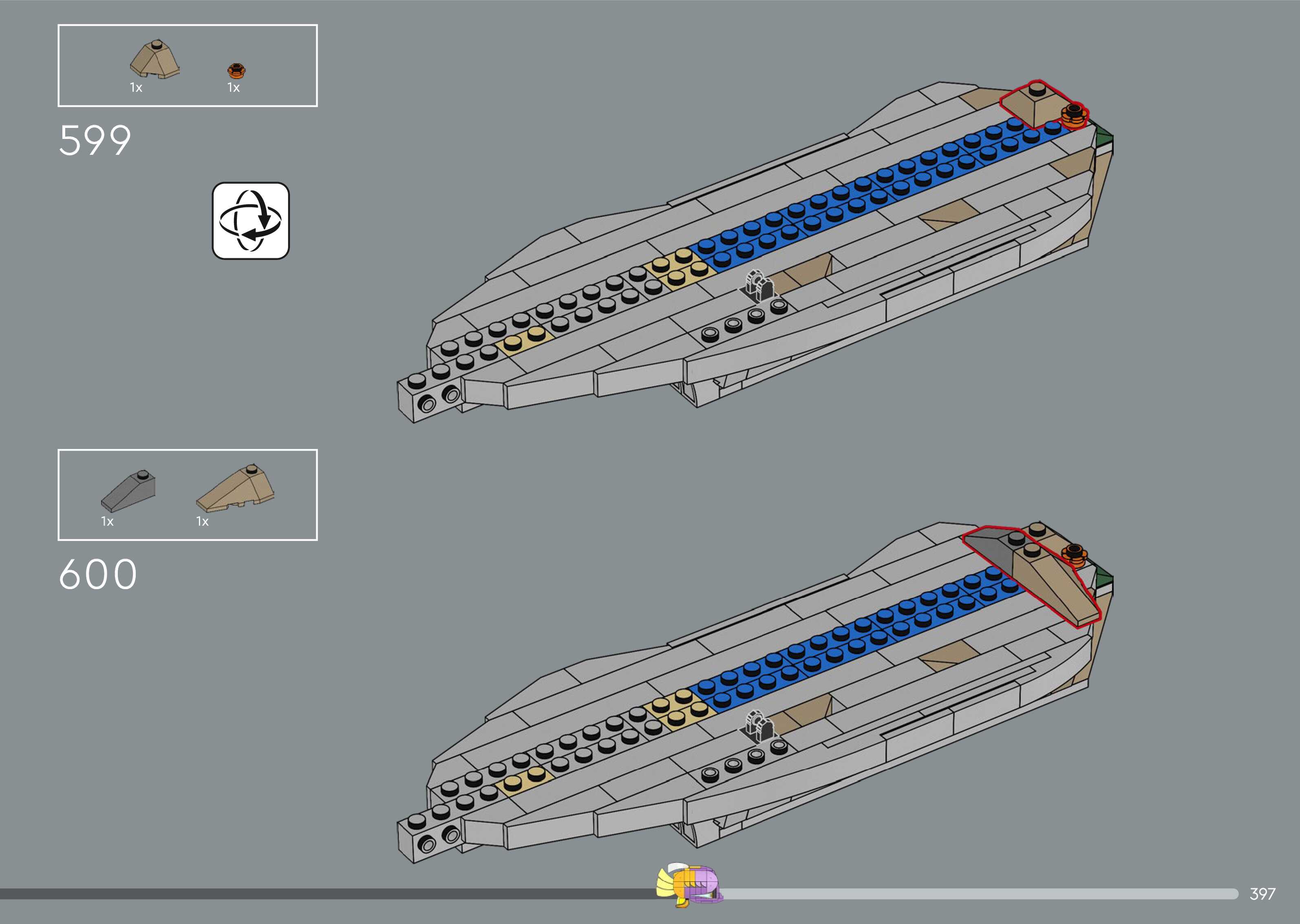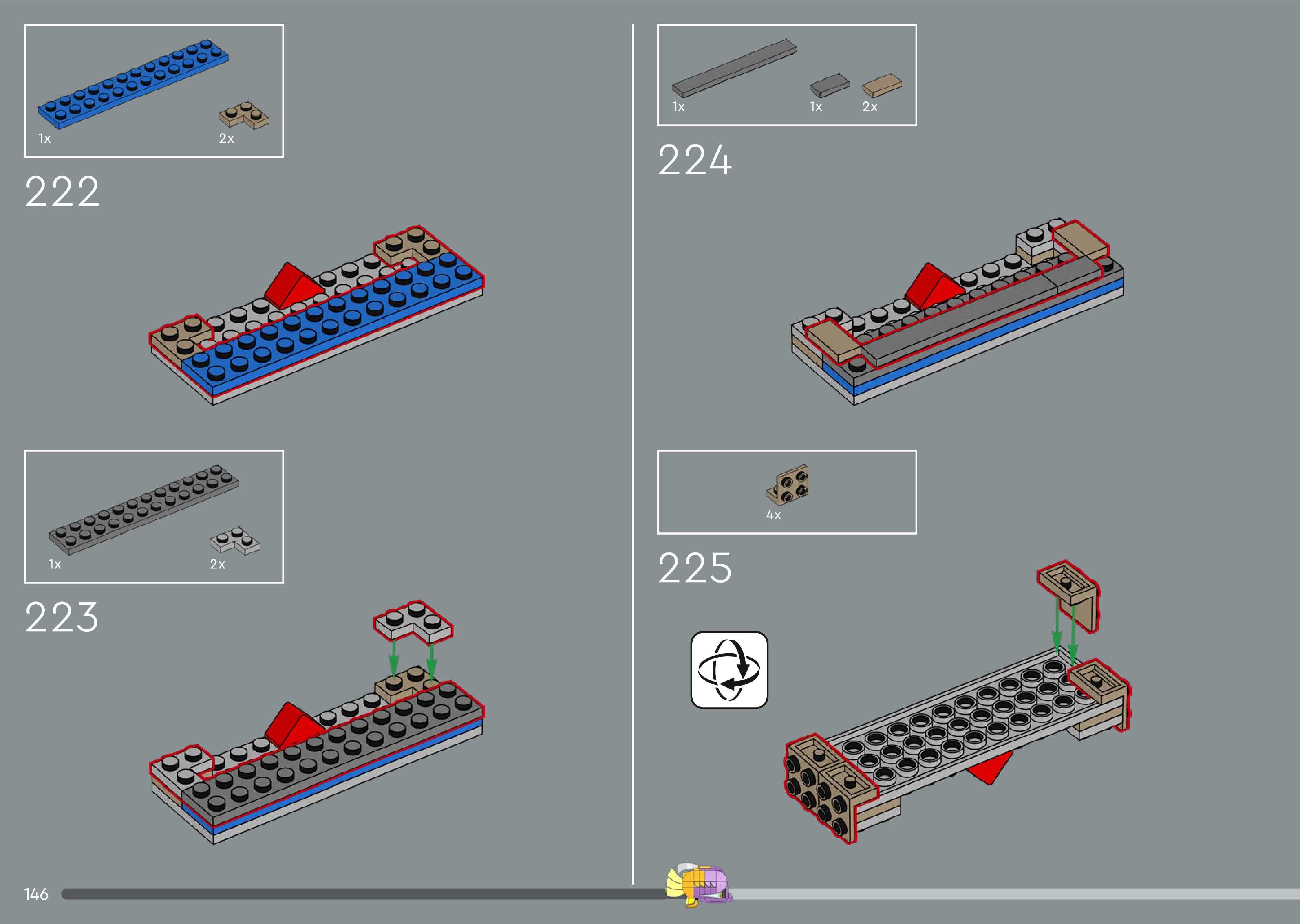 The assembly guide is prepared in a very understandable way for children and adult LEGO enthusiasts. A total of 402 picture galleries are shown, explaining the step-by-step construction stages for 1 different structures.