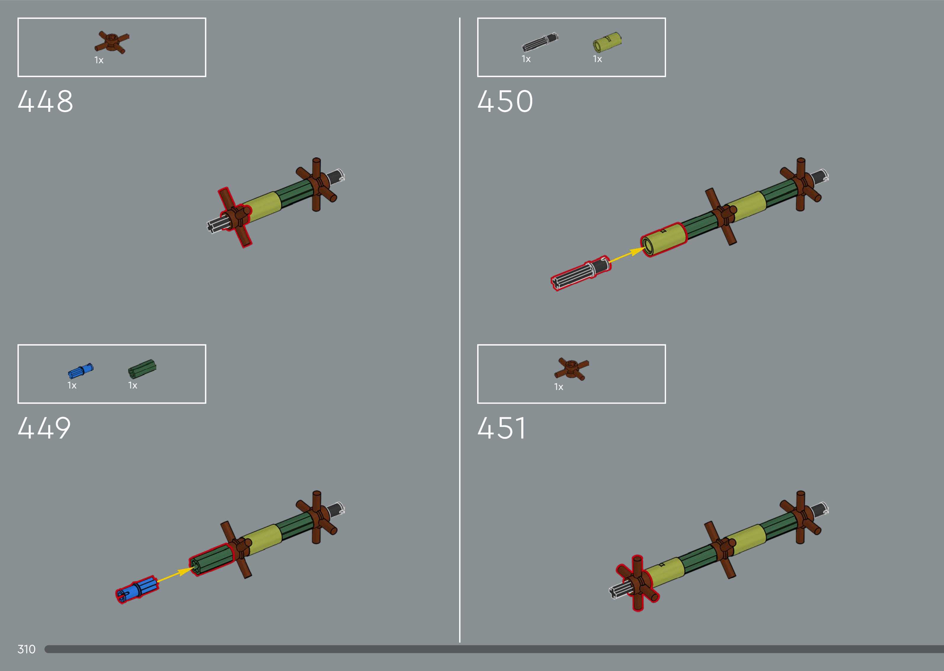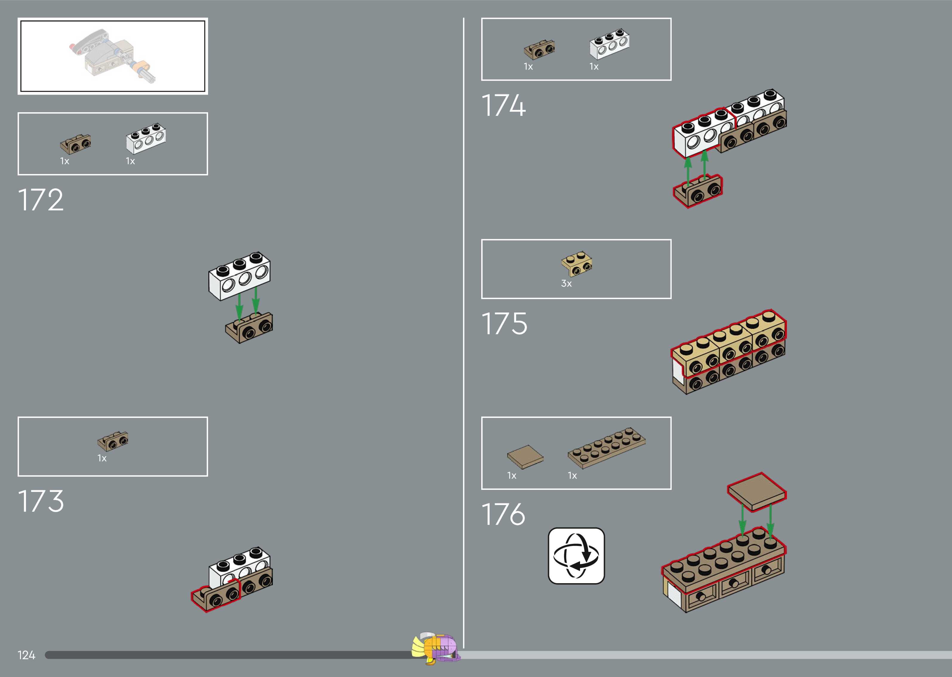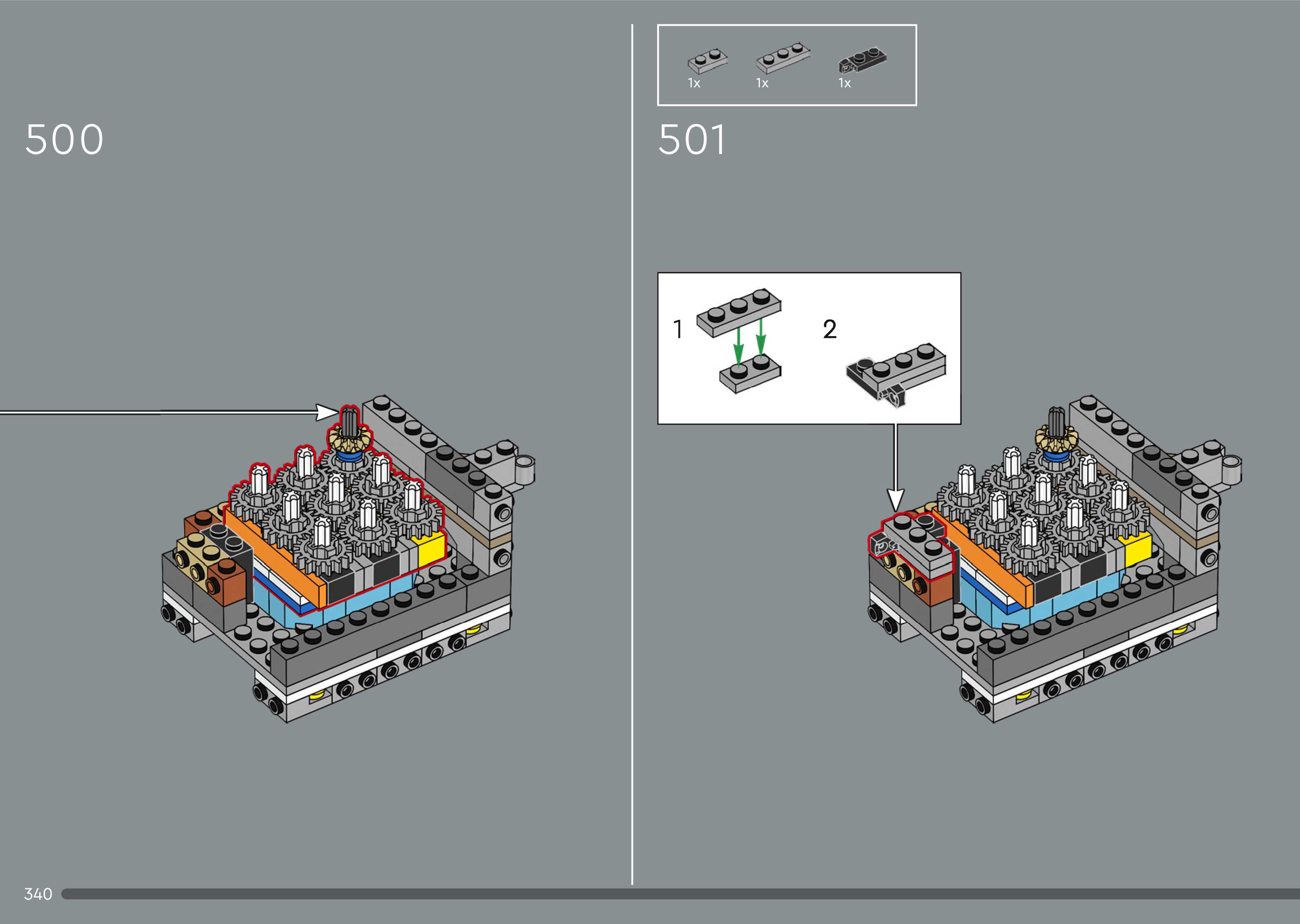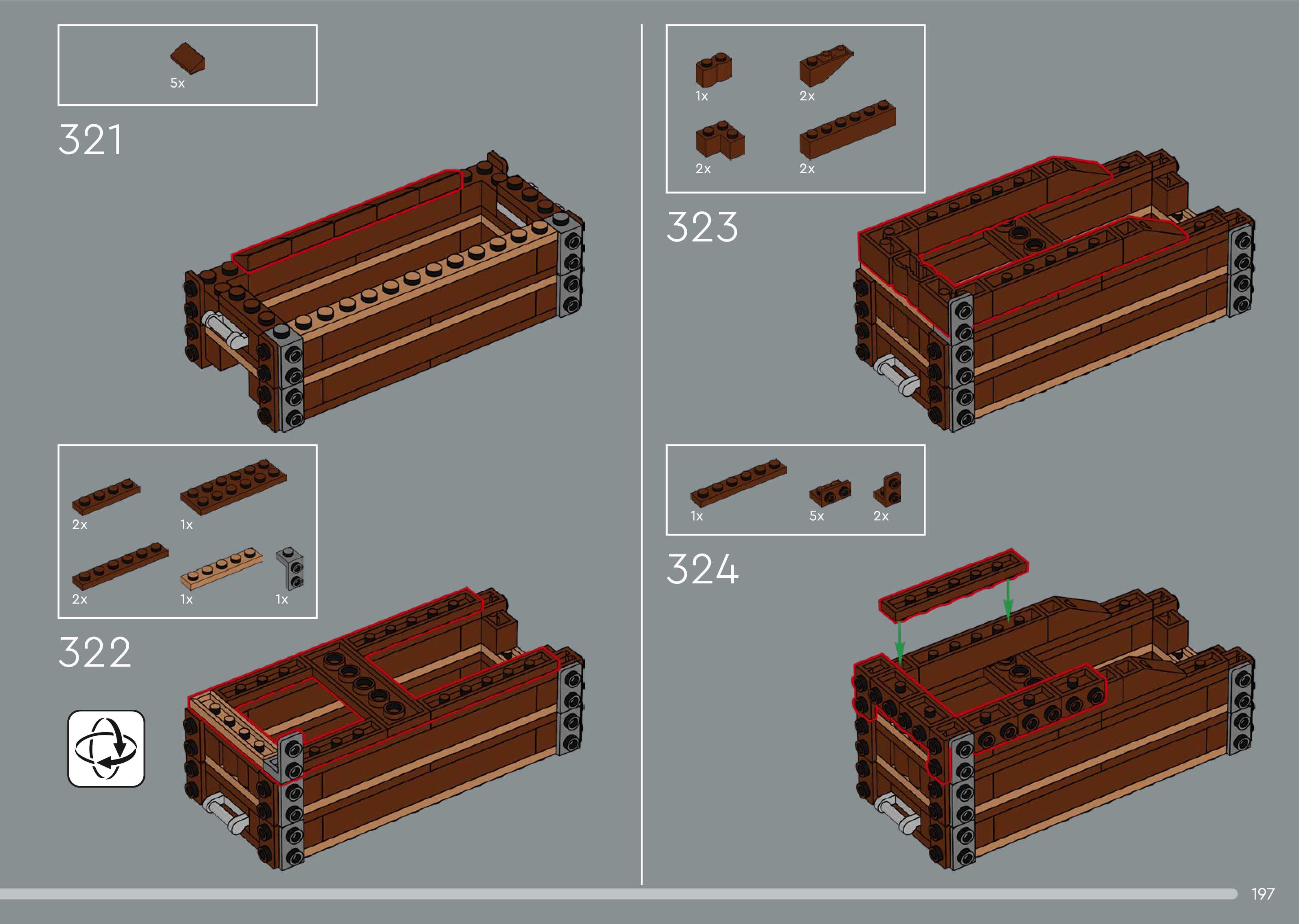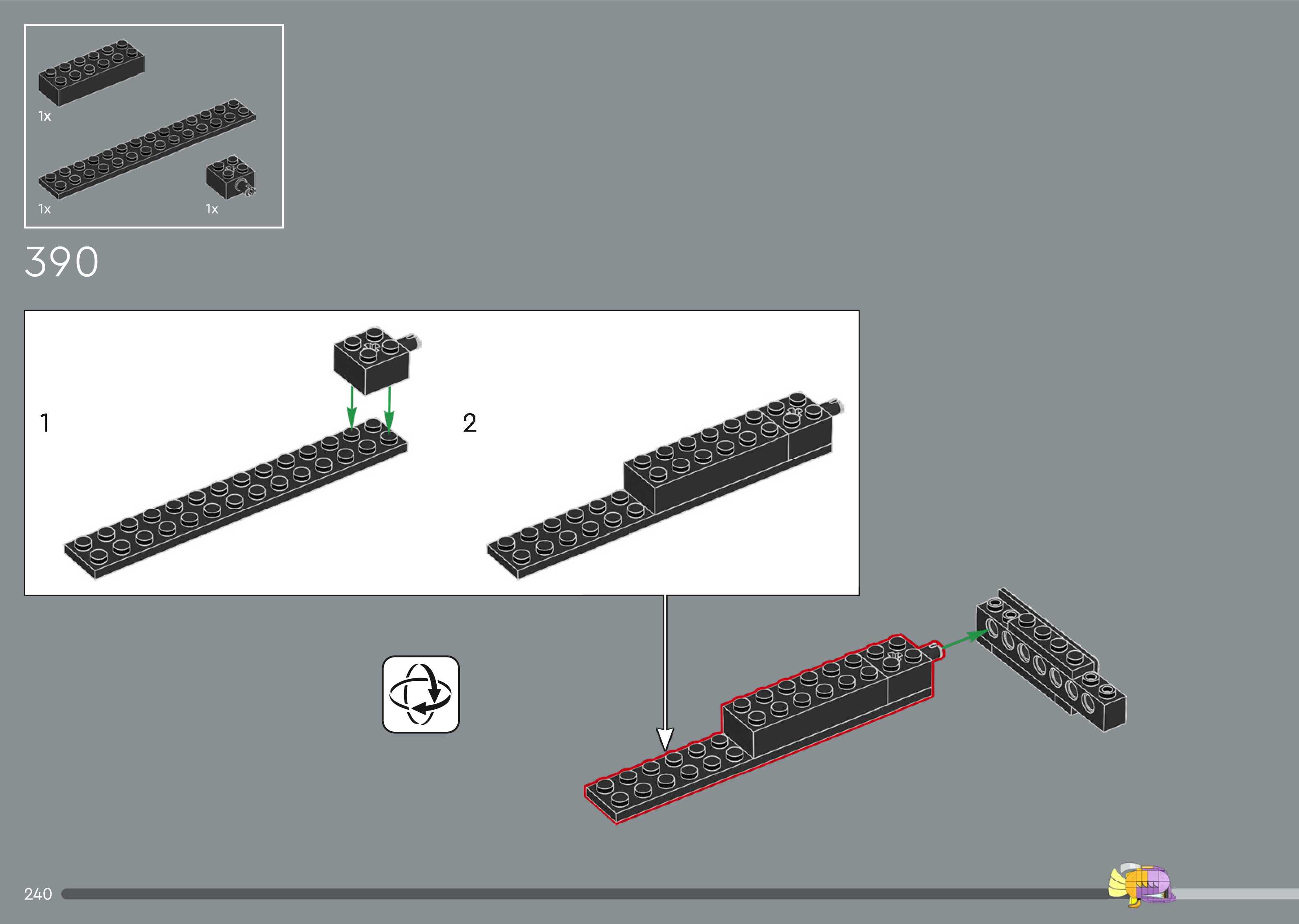 The assembly guide is prepared in a very understandable way for children and adult LEGO enthusiasts. A total of 402 picture galleries are shown, explaining the step-by-step construction stages for 1 different structures.