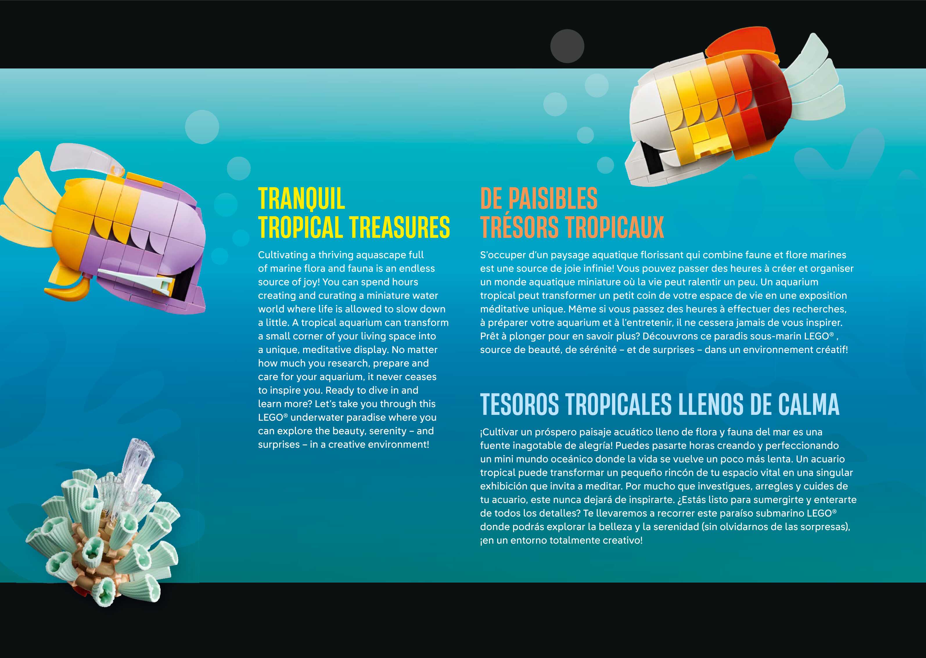 On this page you can find the original construction manual for the LEGO 10366 set. With the assembly manual you can easily learn how to build the Tropical Aquarium step by step. The set was released in 2025.