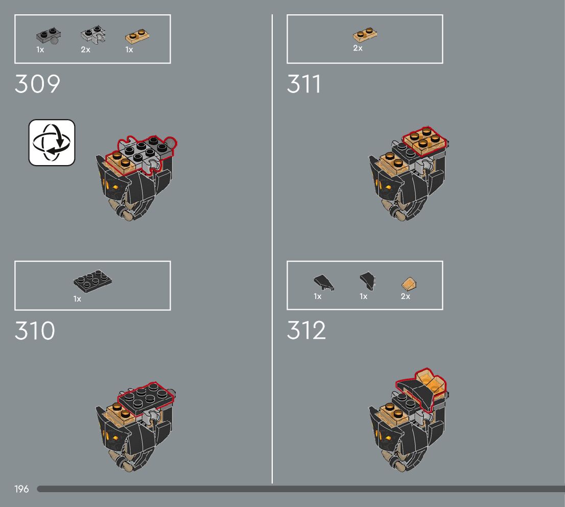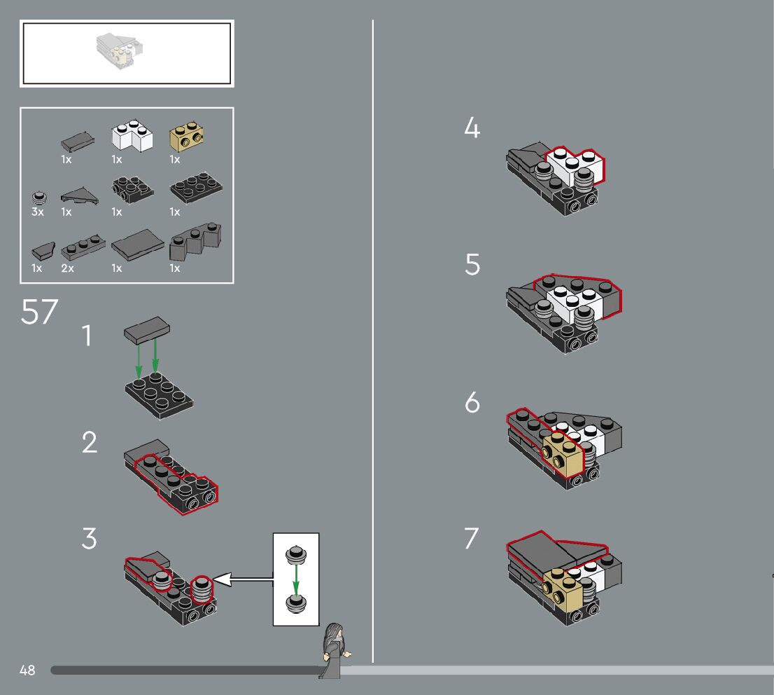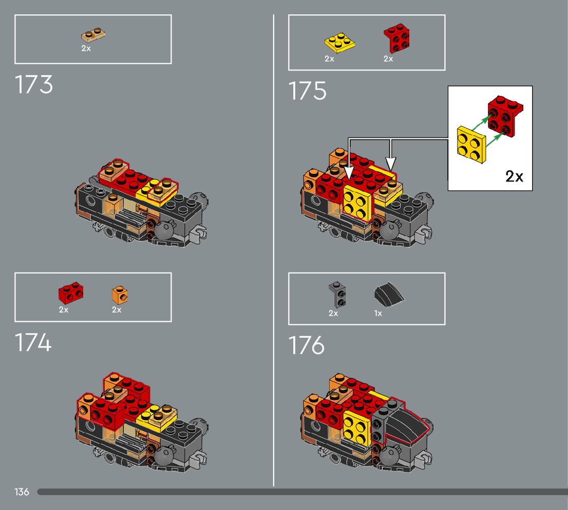 The assembly guide is prepared in a very understandable way for children and adult LEGO enthusiasts. A total of 208 picture galleries are shown, explaining the step-by-step construction stages for 1 different structures.