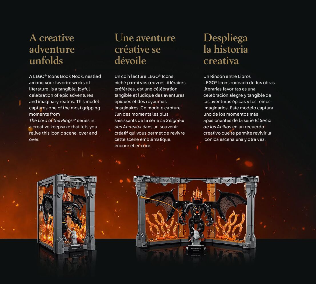 This page shares information about LEGO The Lord of the Rings: Balrog™ Book Nook manual, LEGO 10367 PDF instructions, LEGO The Lord of the Rings: Balrog™ Book Nook building guide online, How to build The Lord of the Rings: Balrog™ Book Nook LEGO.
