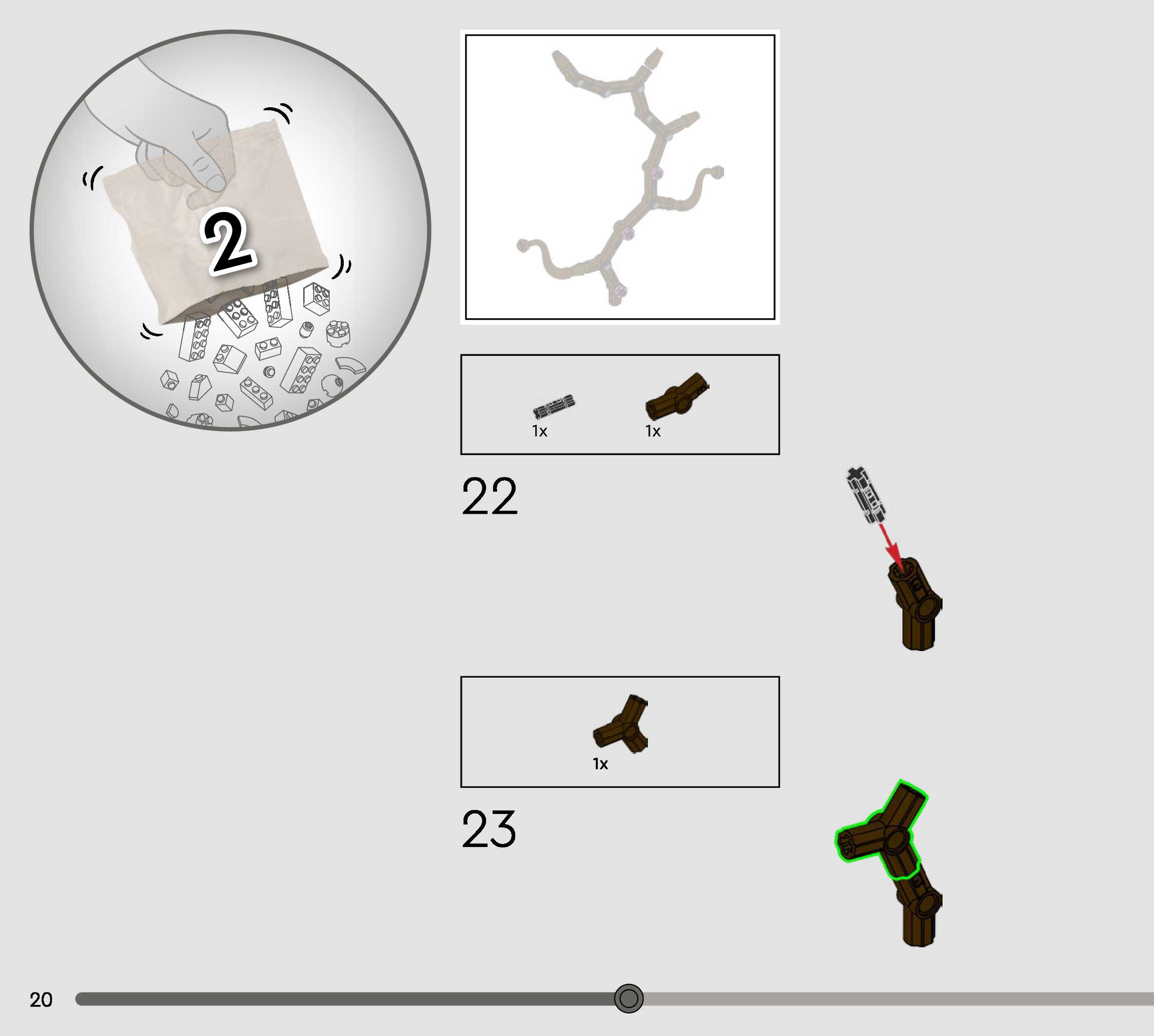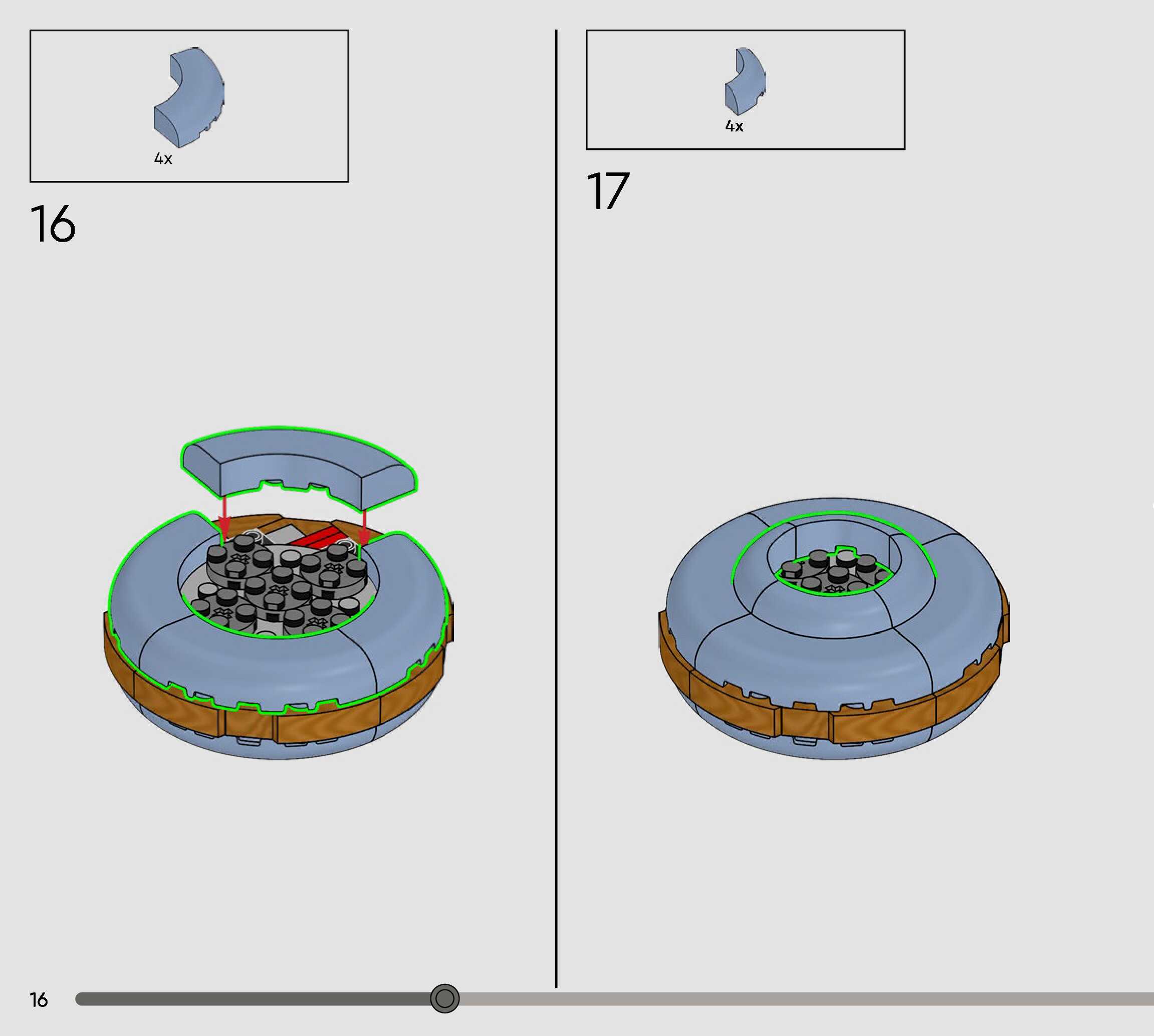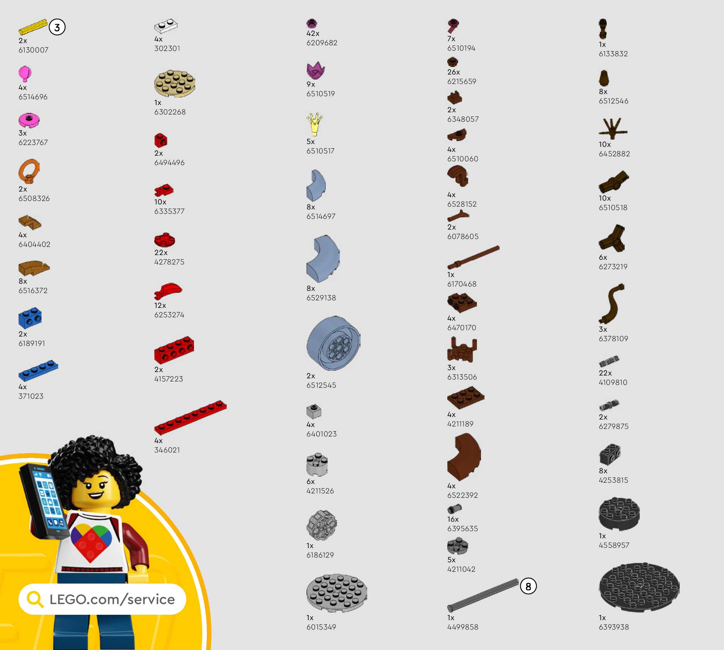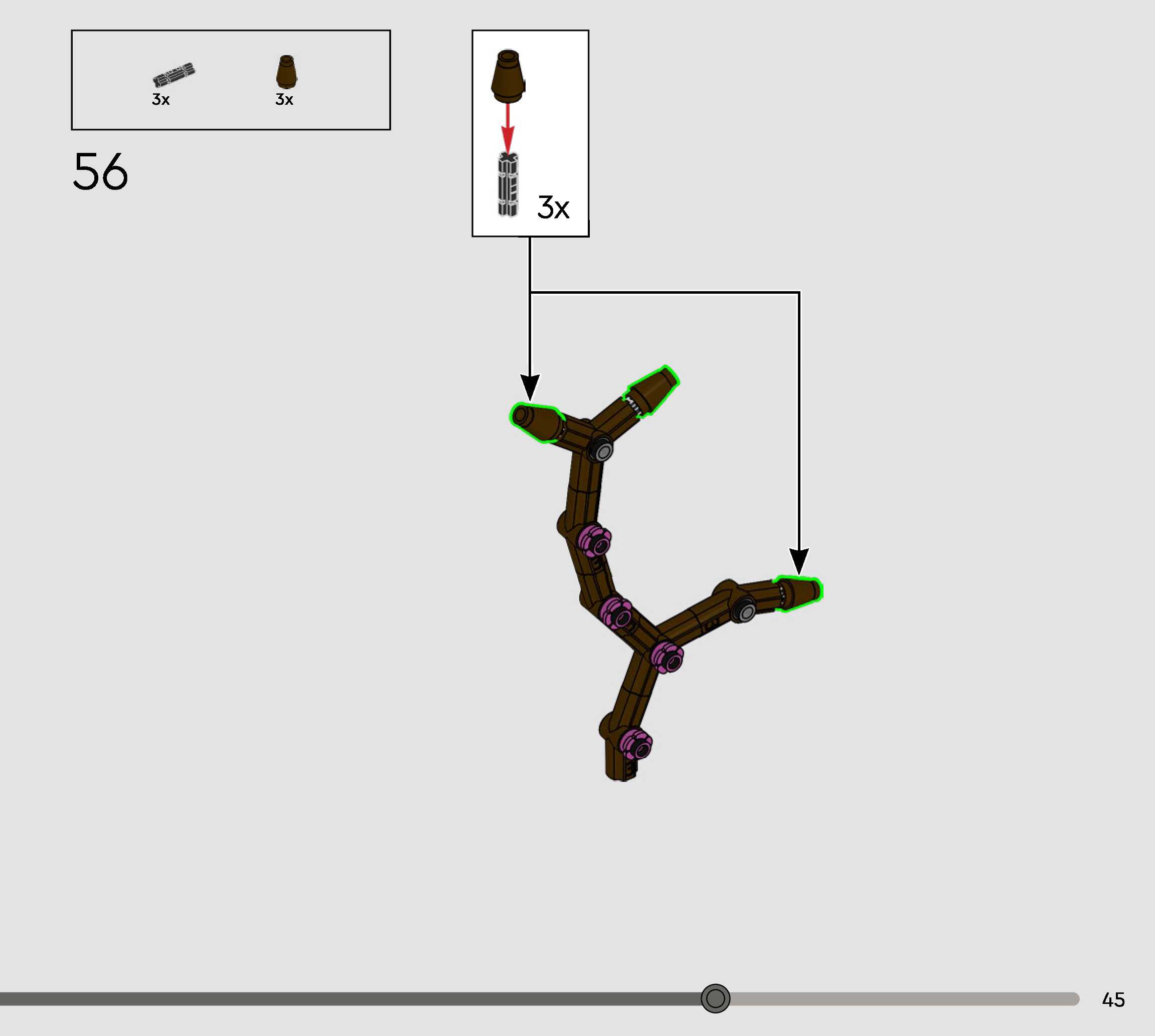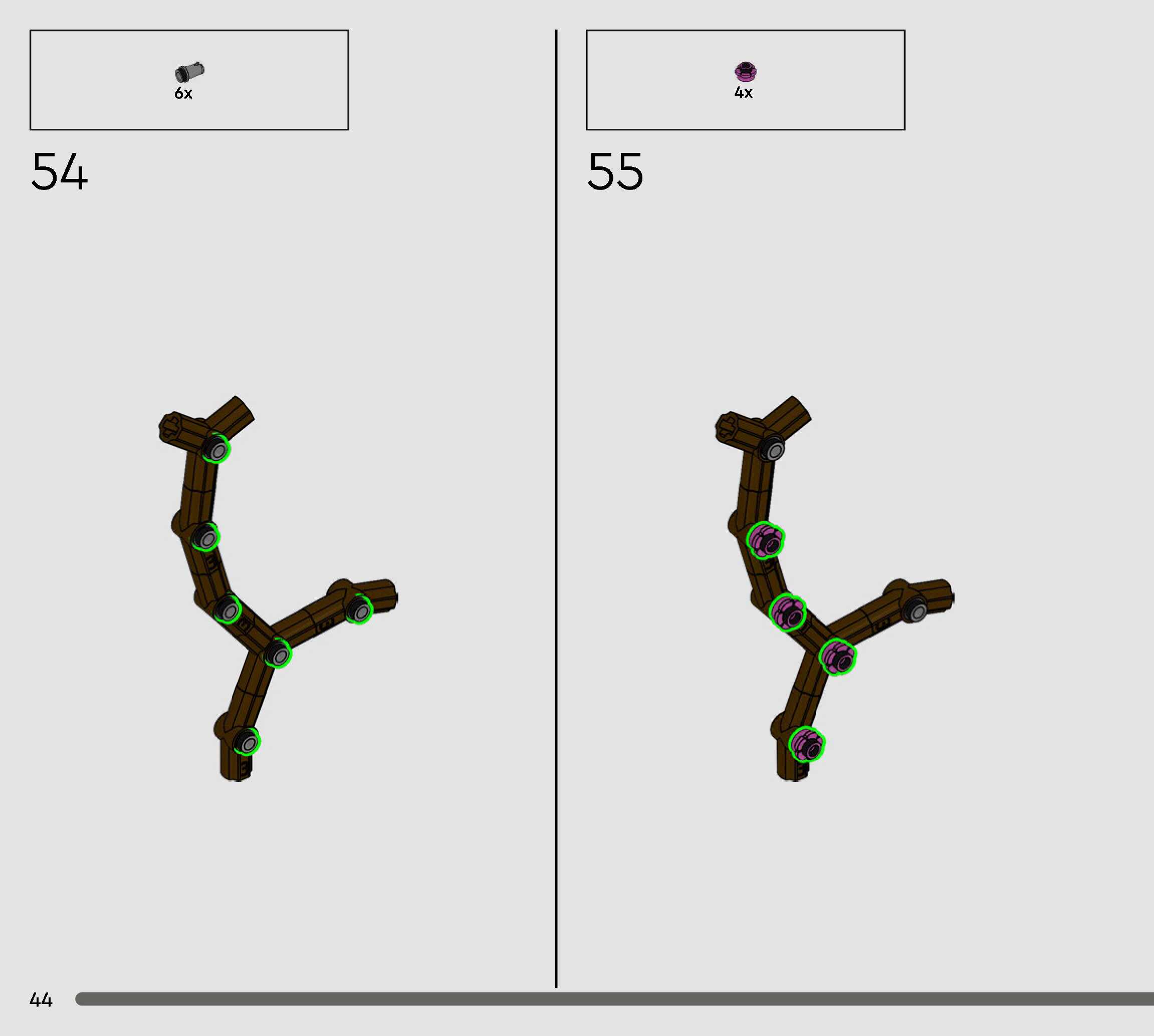 The assembly guide is prepared in a very understandable way for children and adult LEGO enthusiasts. A total of 56 picture galleries are shown, explaining the step-by-step construction stages for 1 different structures.