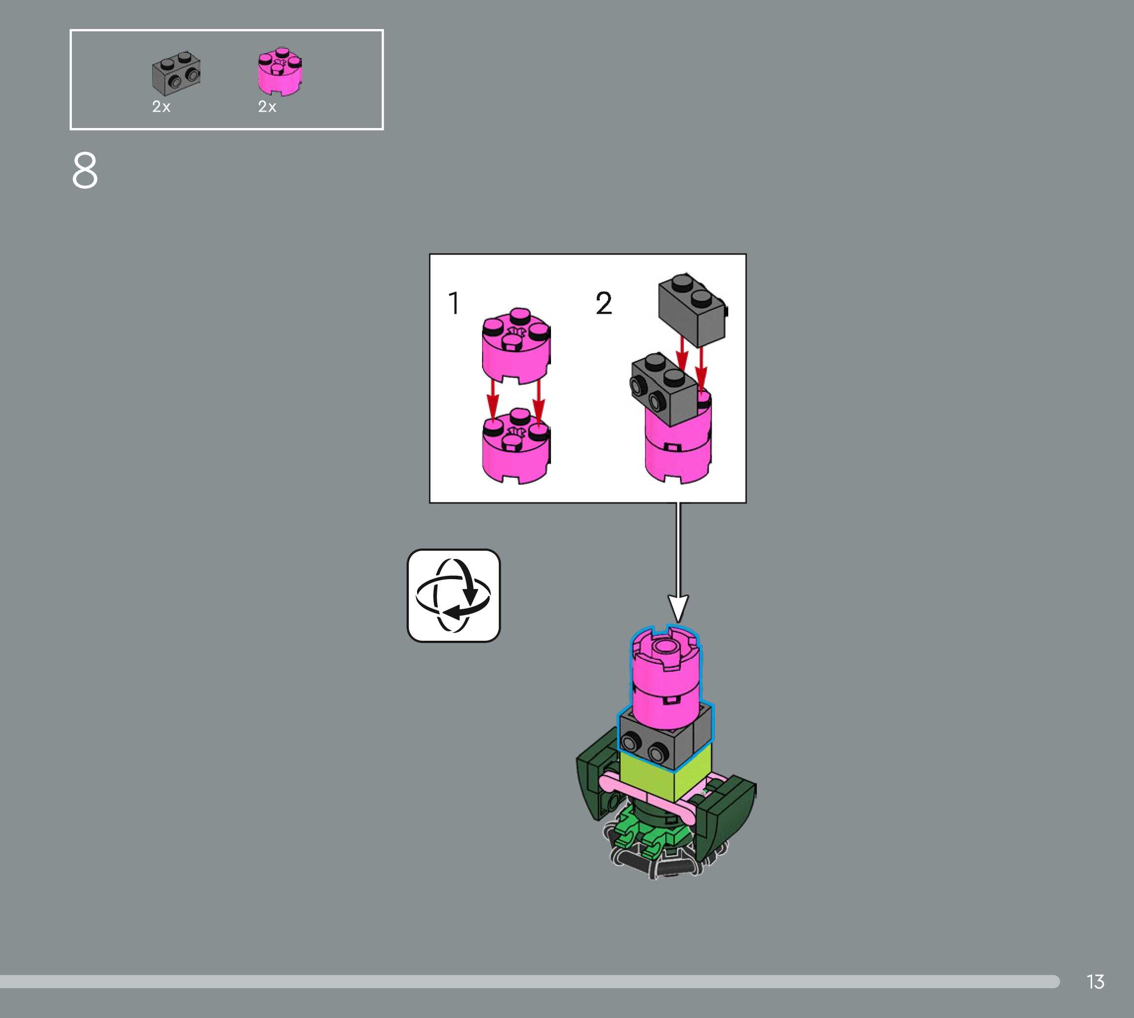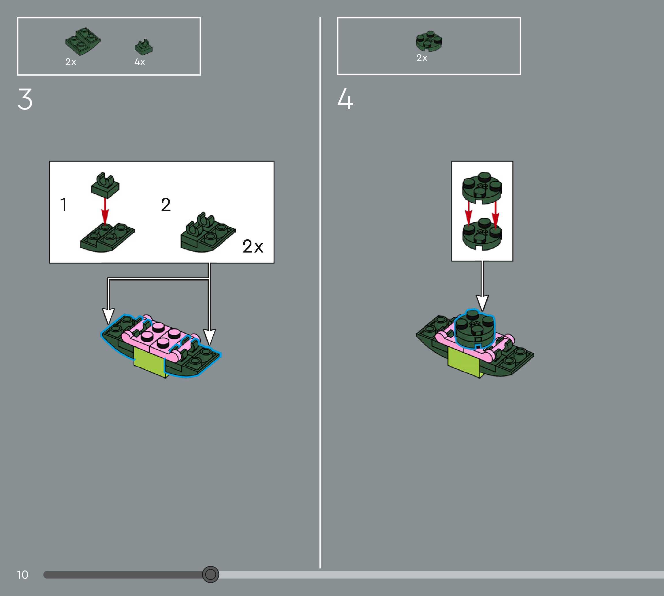 The assembly guide is prepared in a very understandable way for children and adult LEGO enthusiasts. A total of 56 picture galleries are shown, explaining the step-by-step construction stages for 3 different structures.