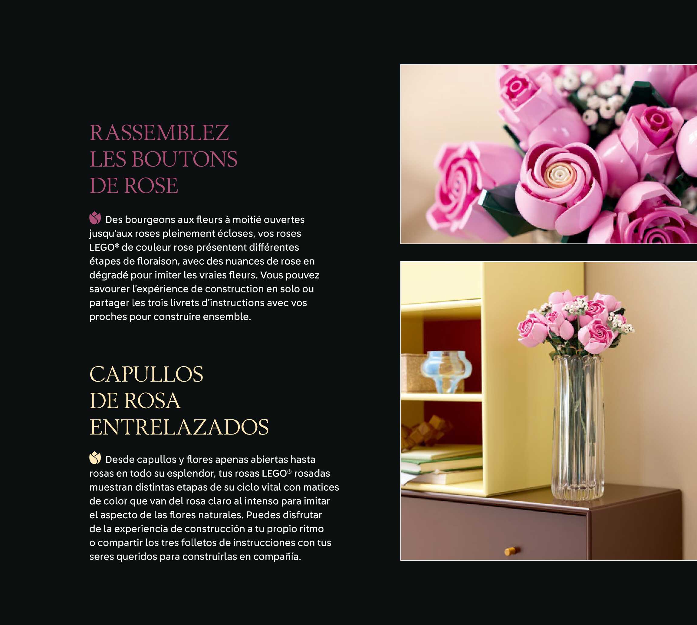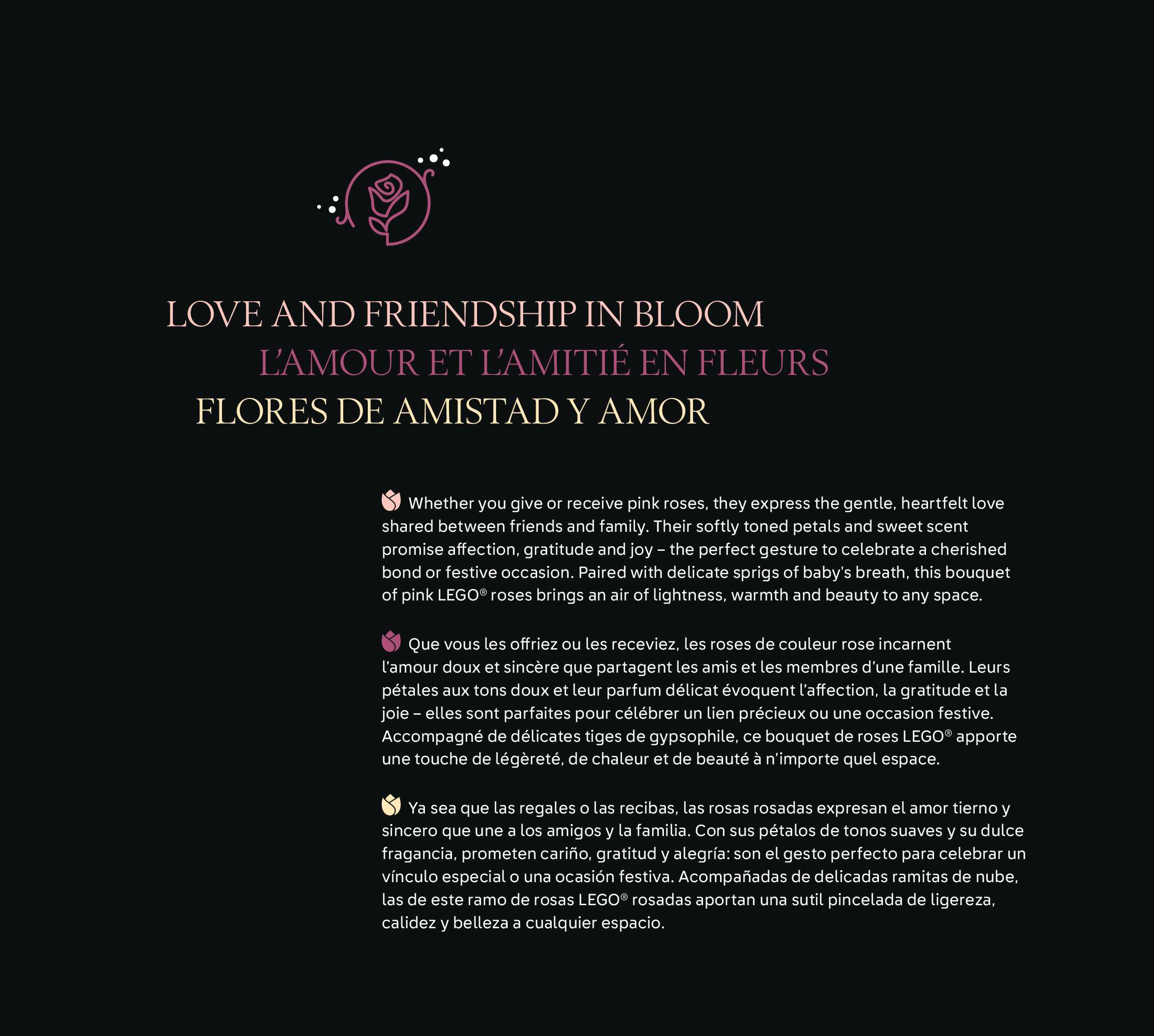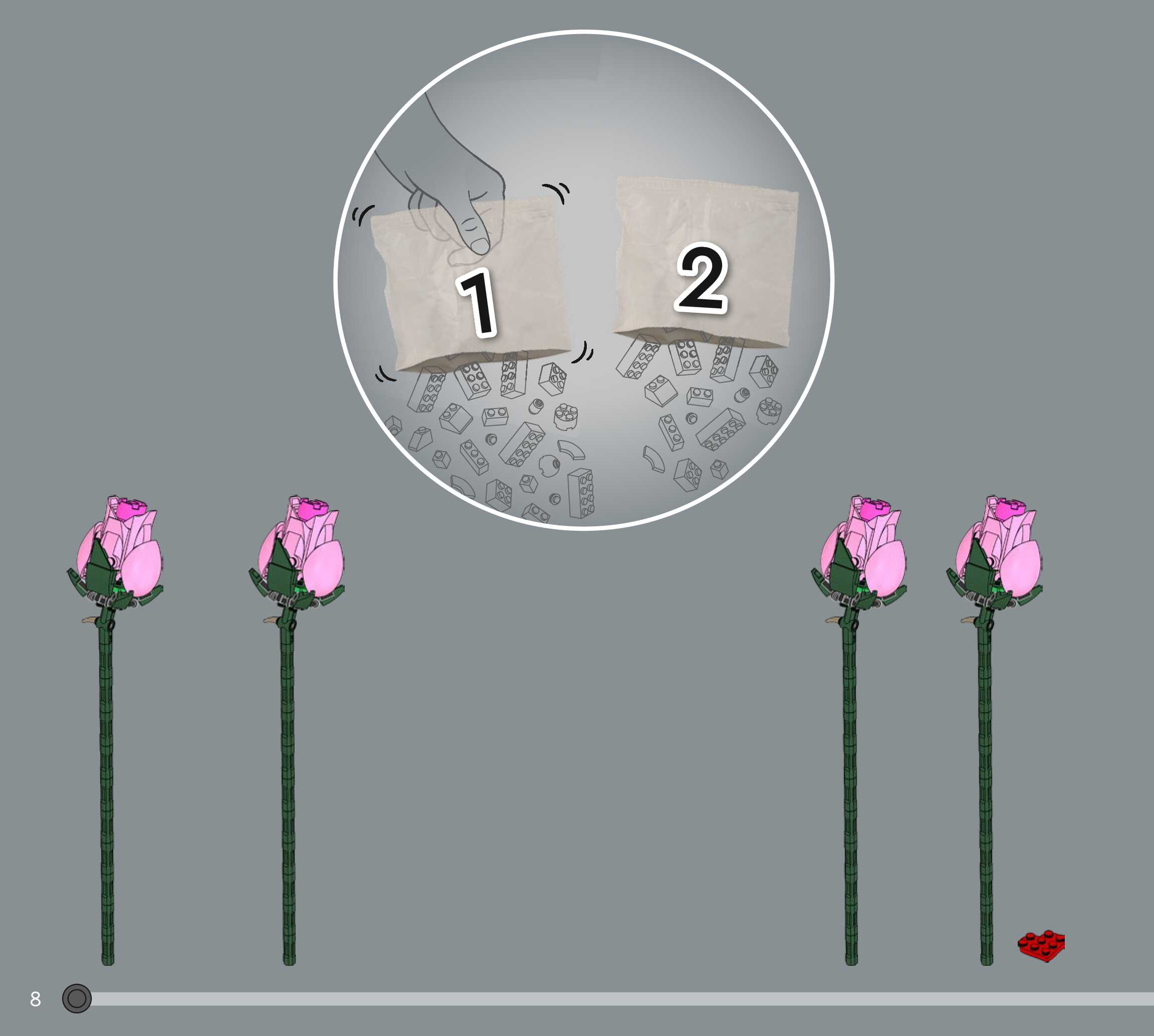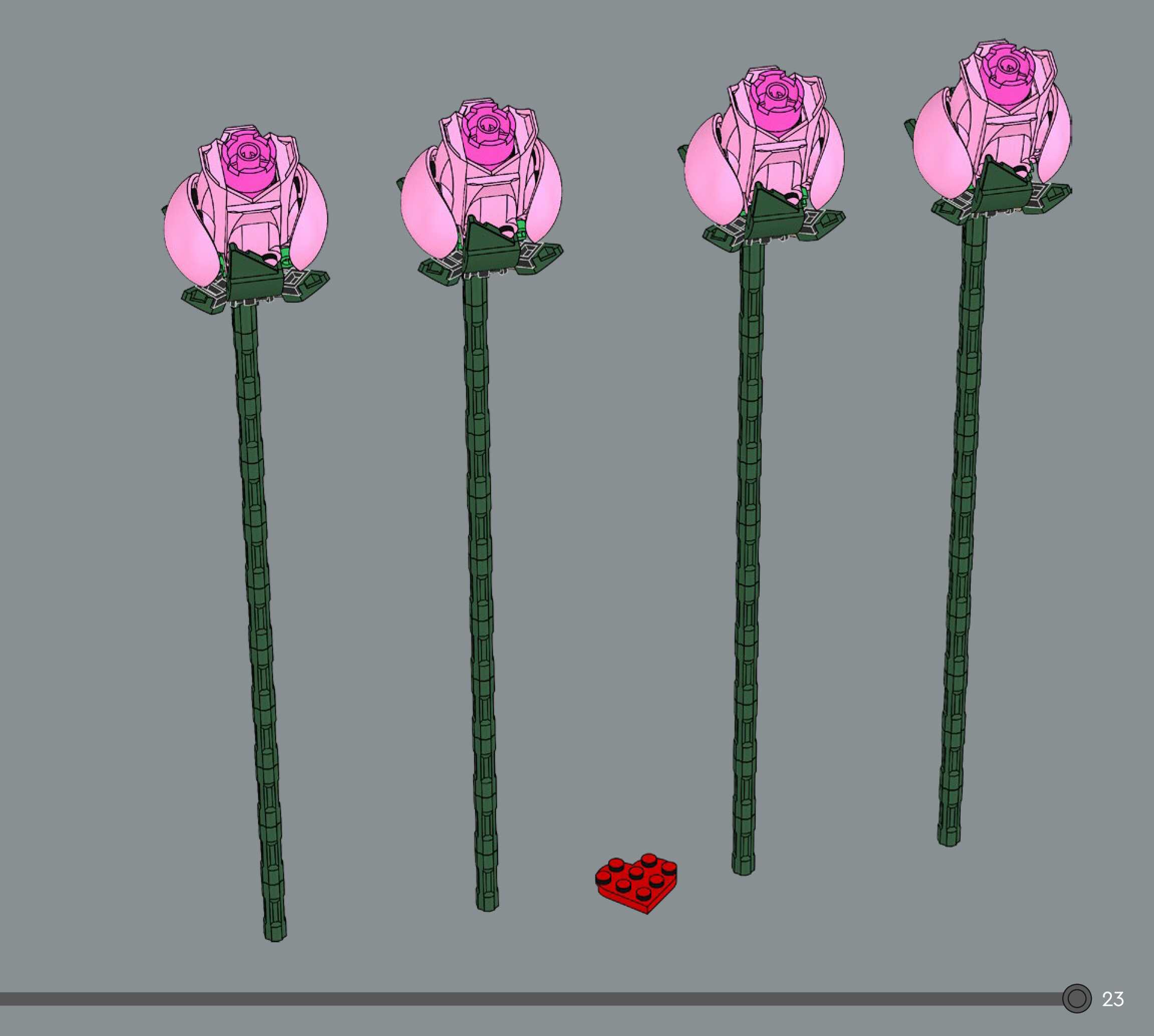 This page shares information about LEGO Bouquet of Pink Roses manual, LEGO 10374 PDF instructions, LEGO Bouquet of Pink Roses building guide online, How to build Bouquet of Pink Roses LEGO.