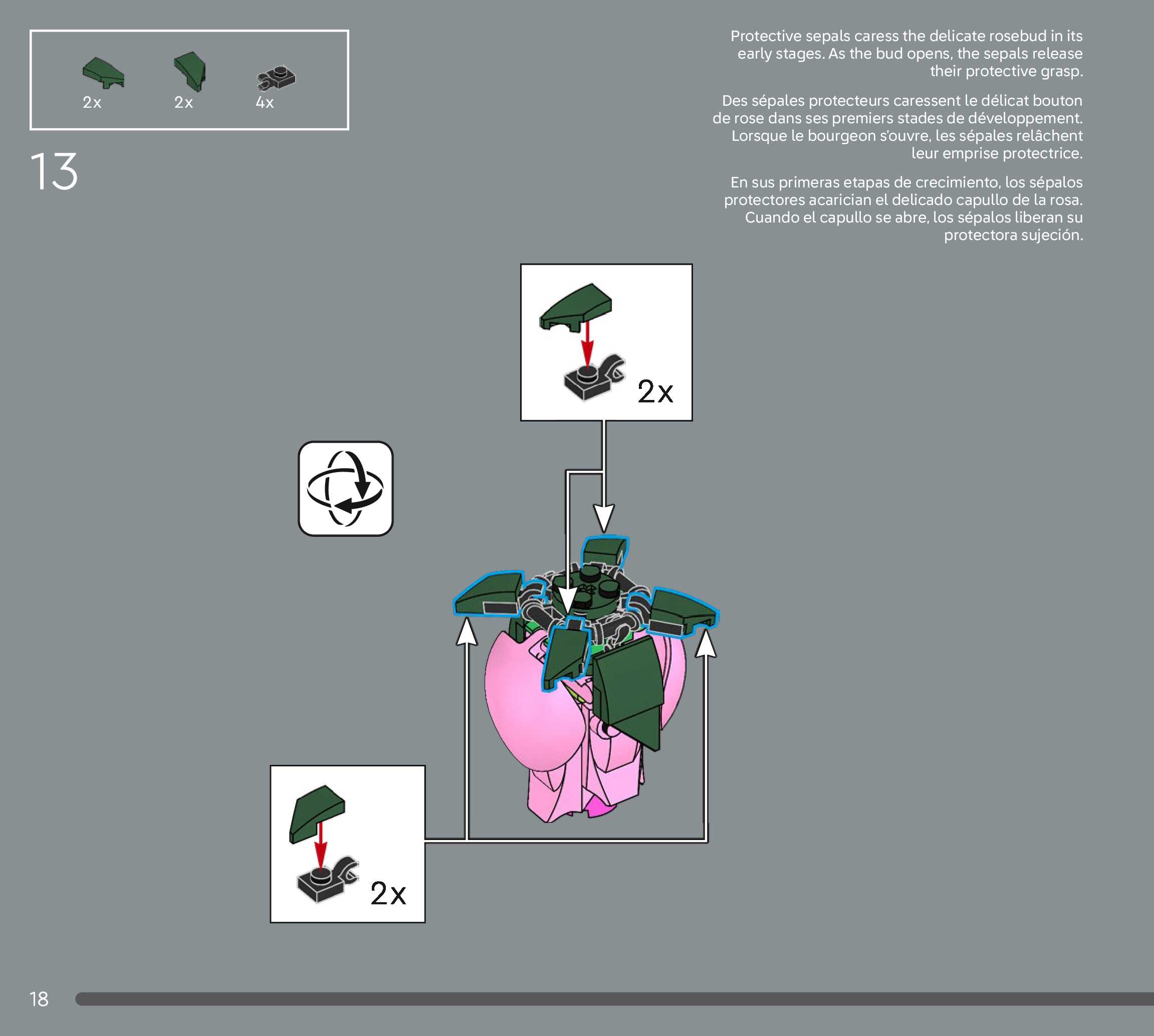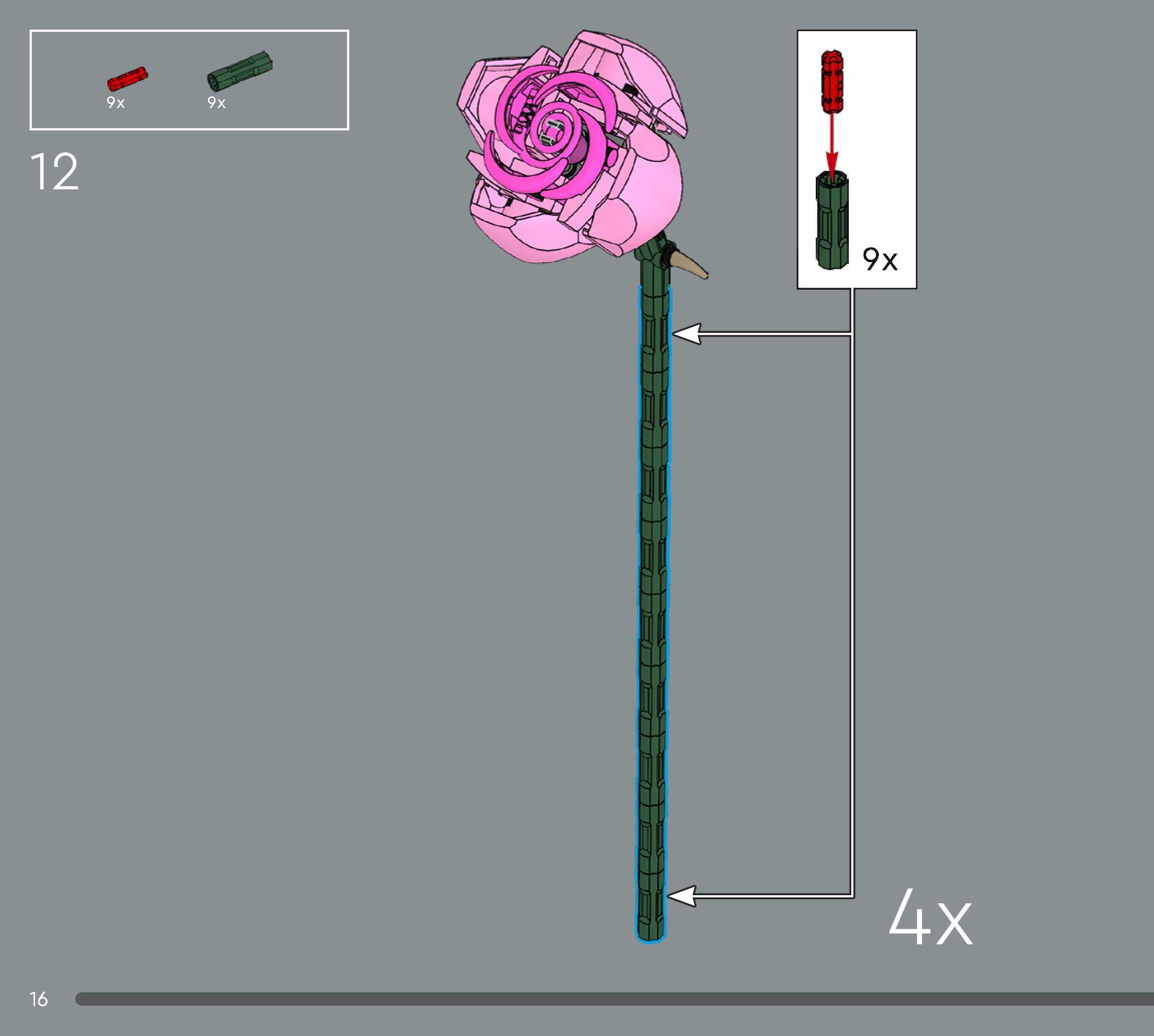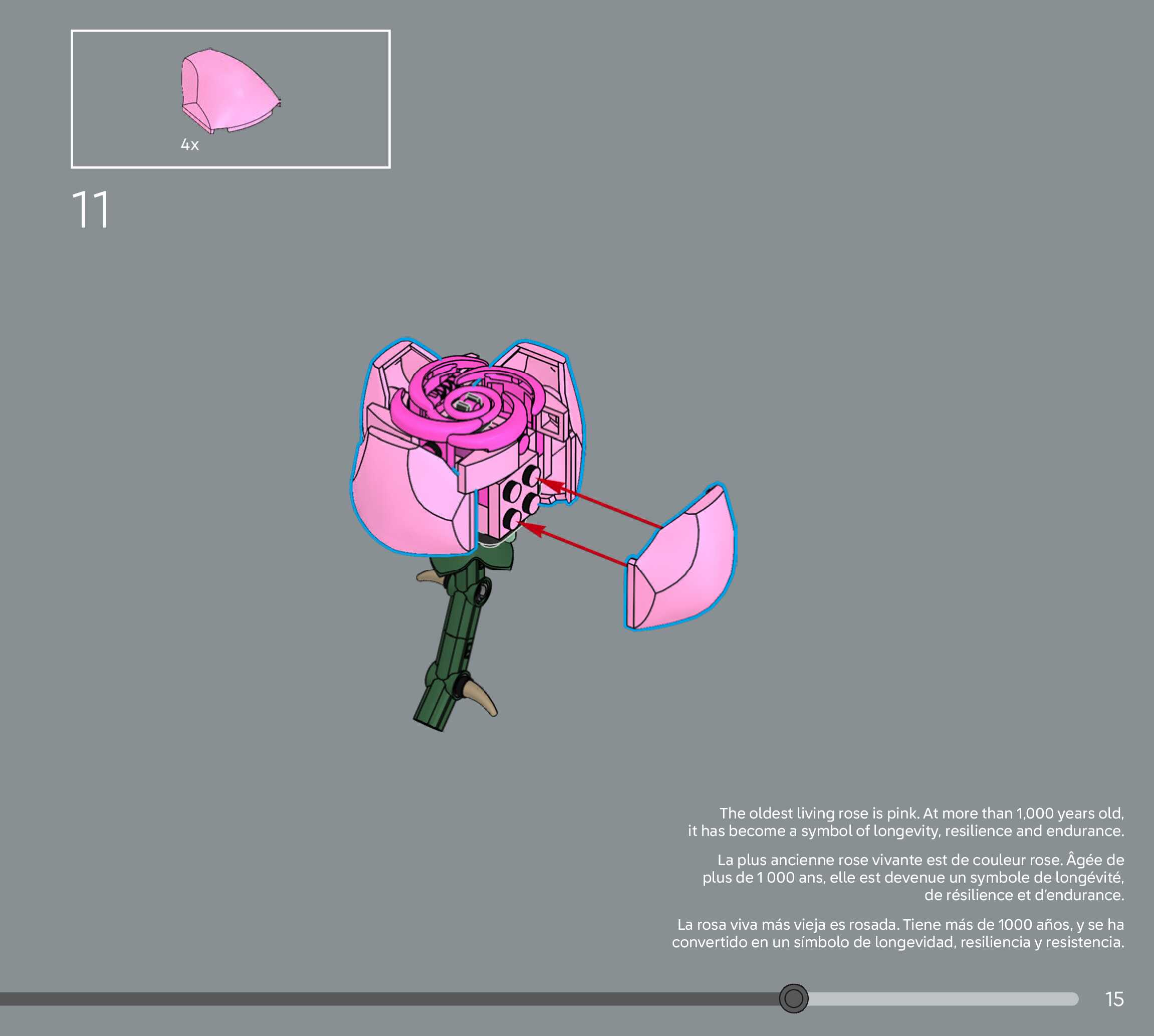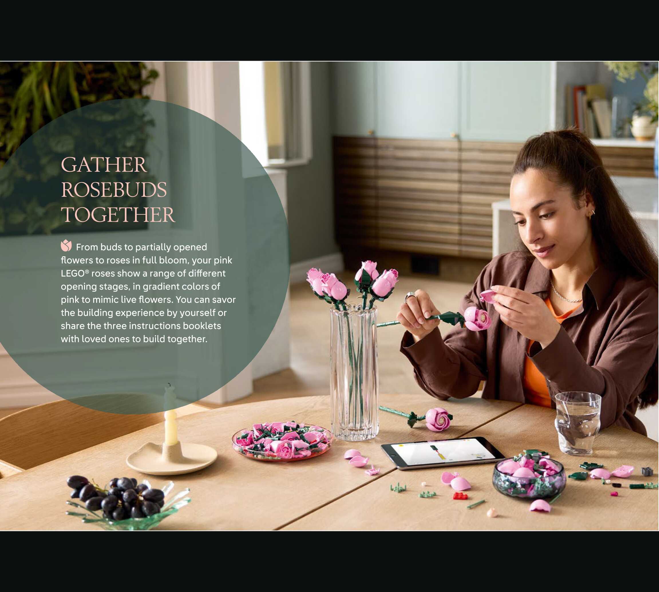 This page shares information about LEGO Bouquet of Pink Roses manual, LEGO 10374 PDF instructions, LEGO Bouquet of Pink Roses building guide online, How to build Bouquet of Pink Roses LEGO.