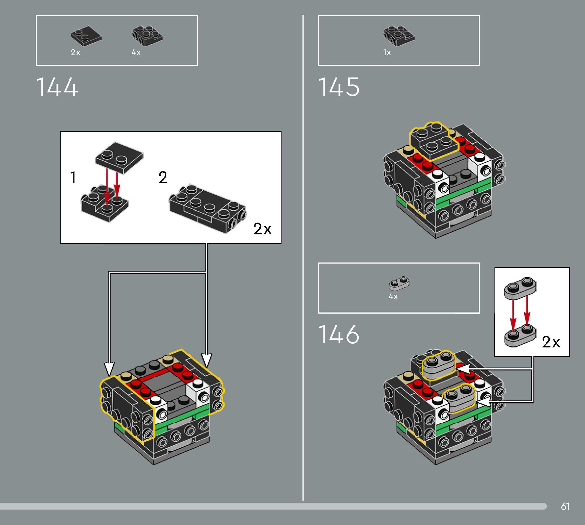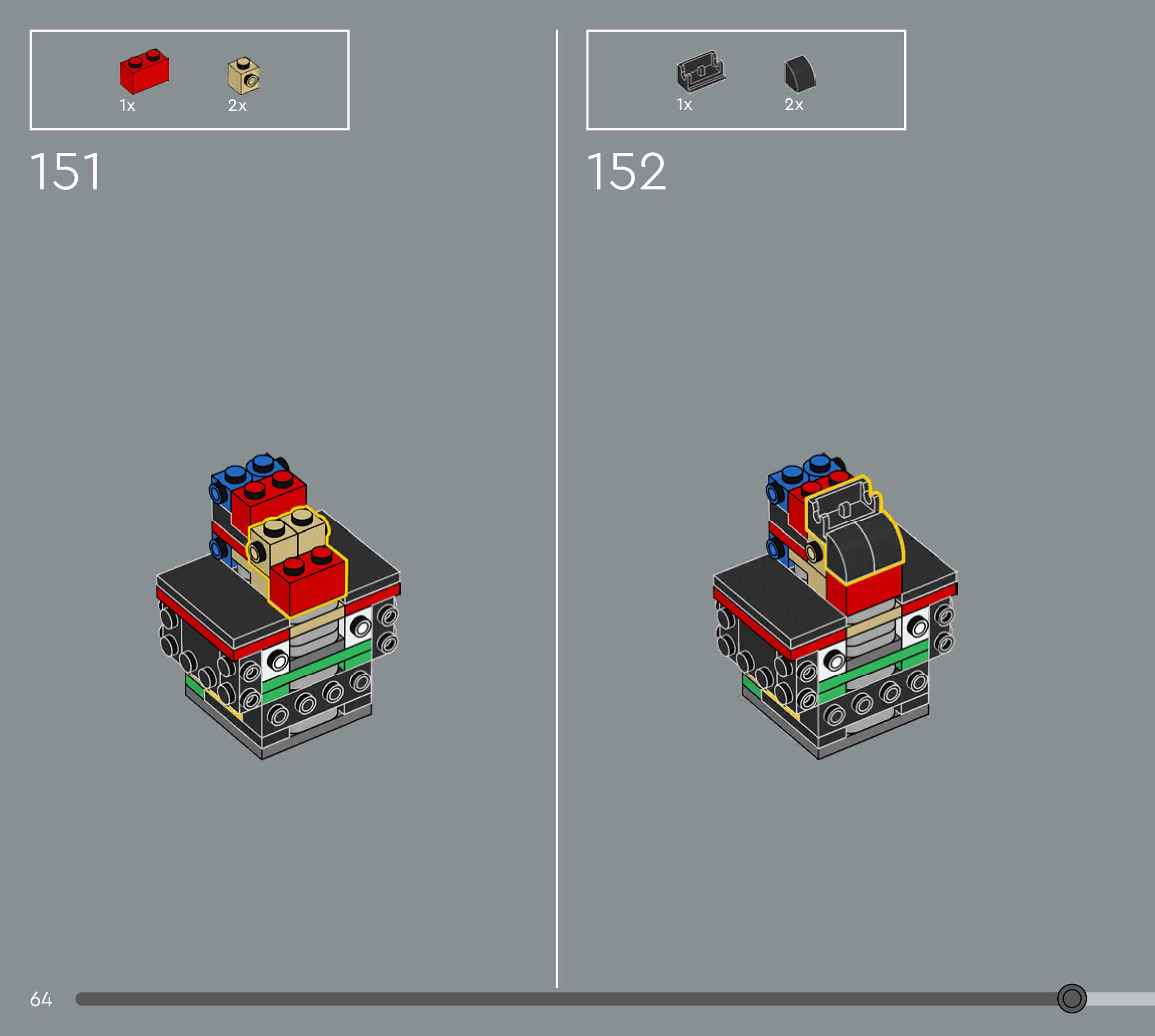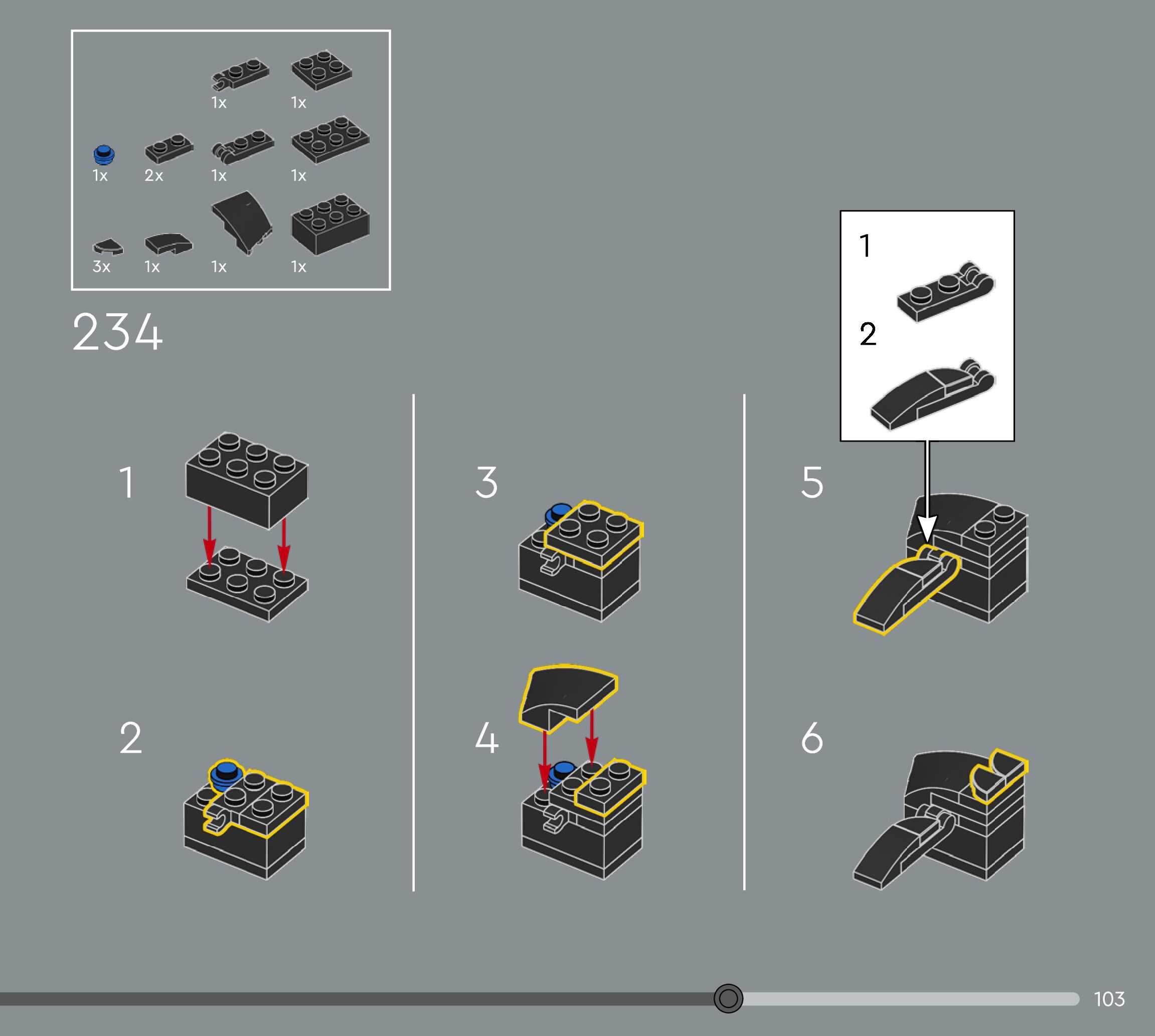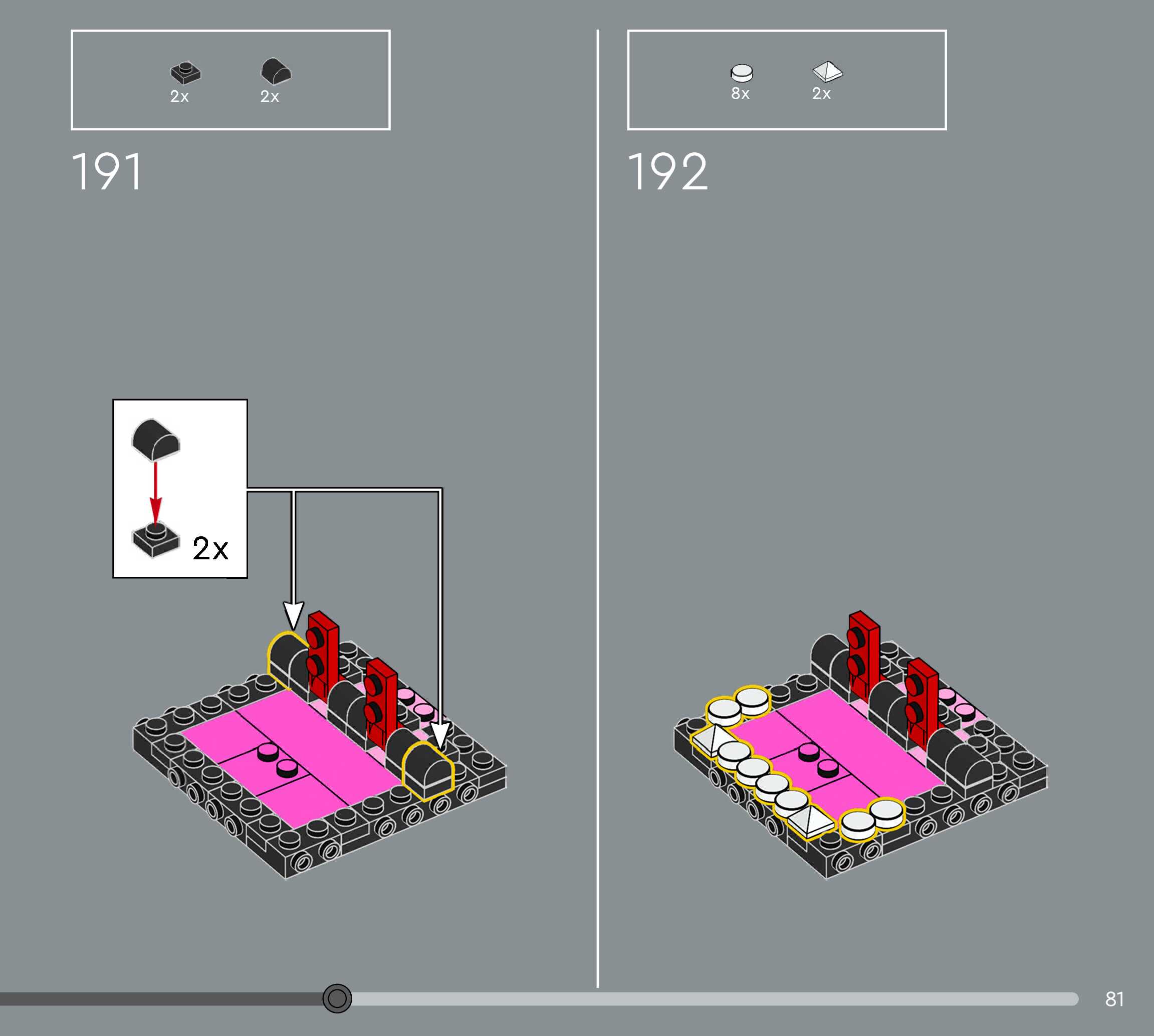 The assembly guide is prepared in a very understandable way for children and adult LEGO enthusiasts. A total of 128 picture galleries are shown, explaining the step-by-step construction stages for 1 different structures.