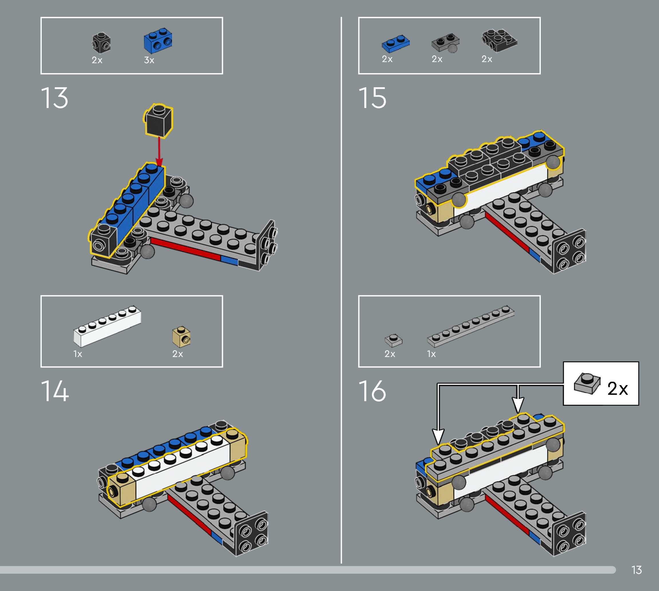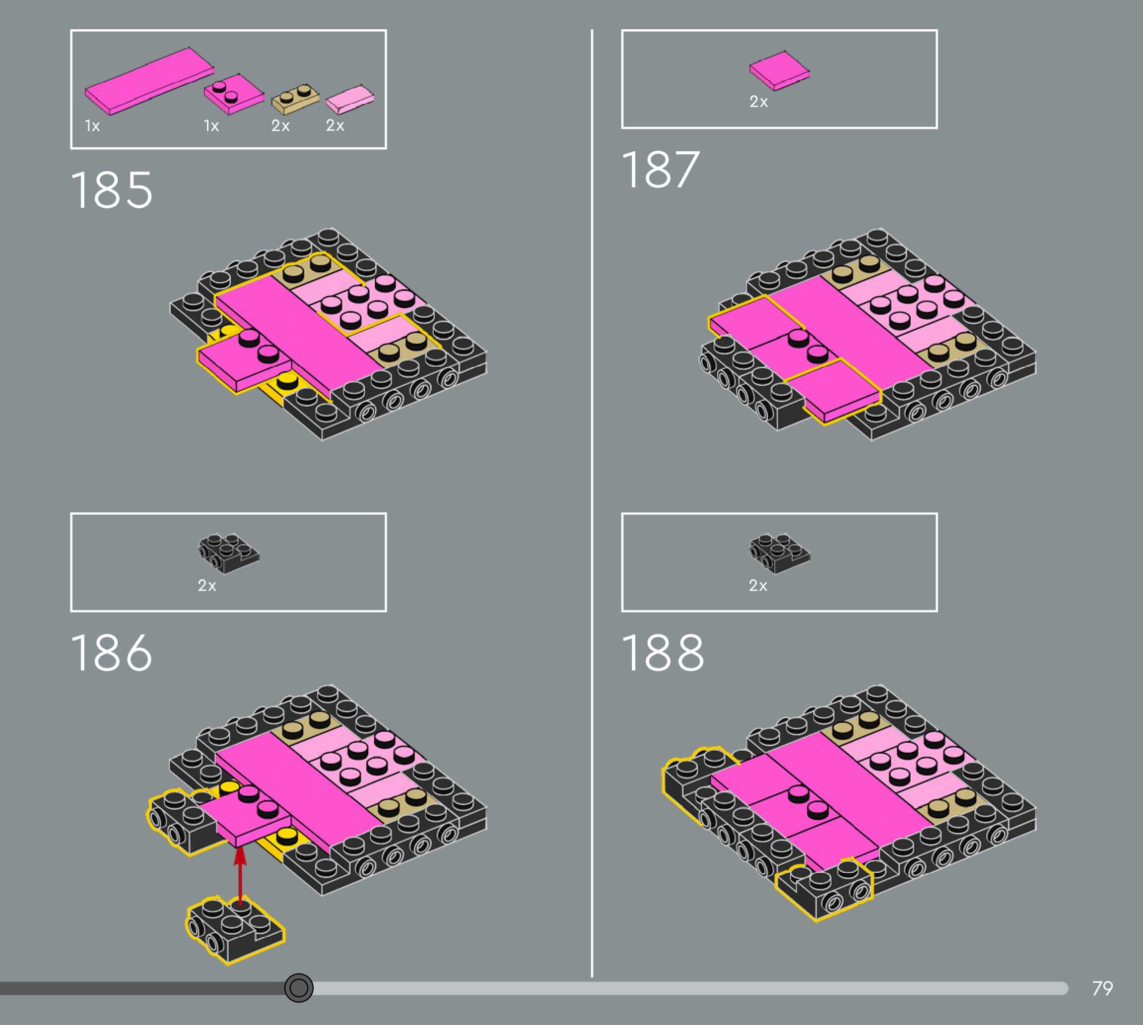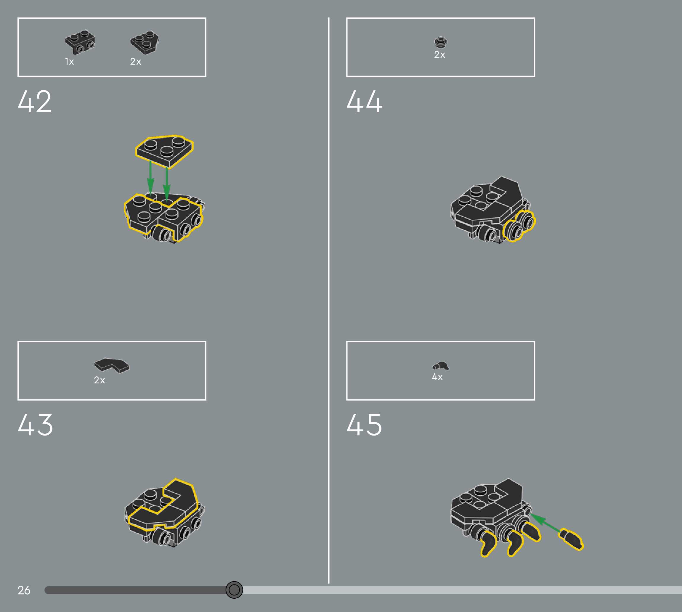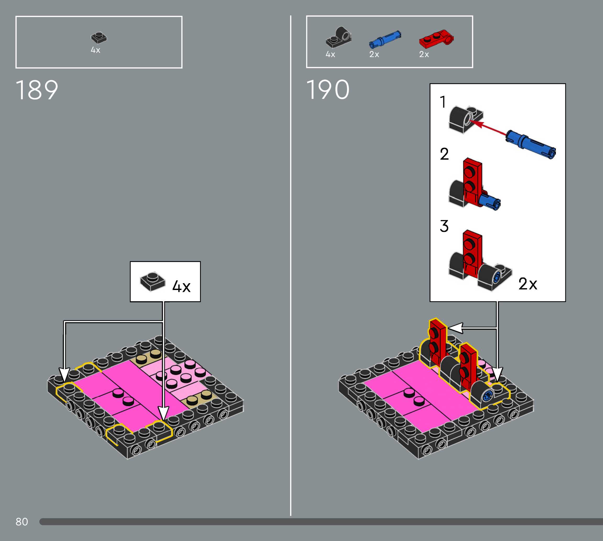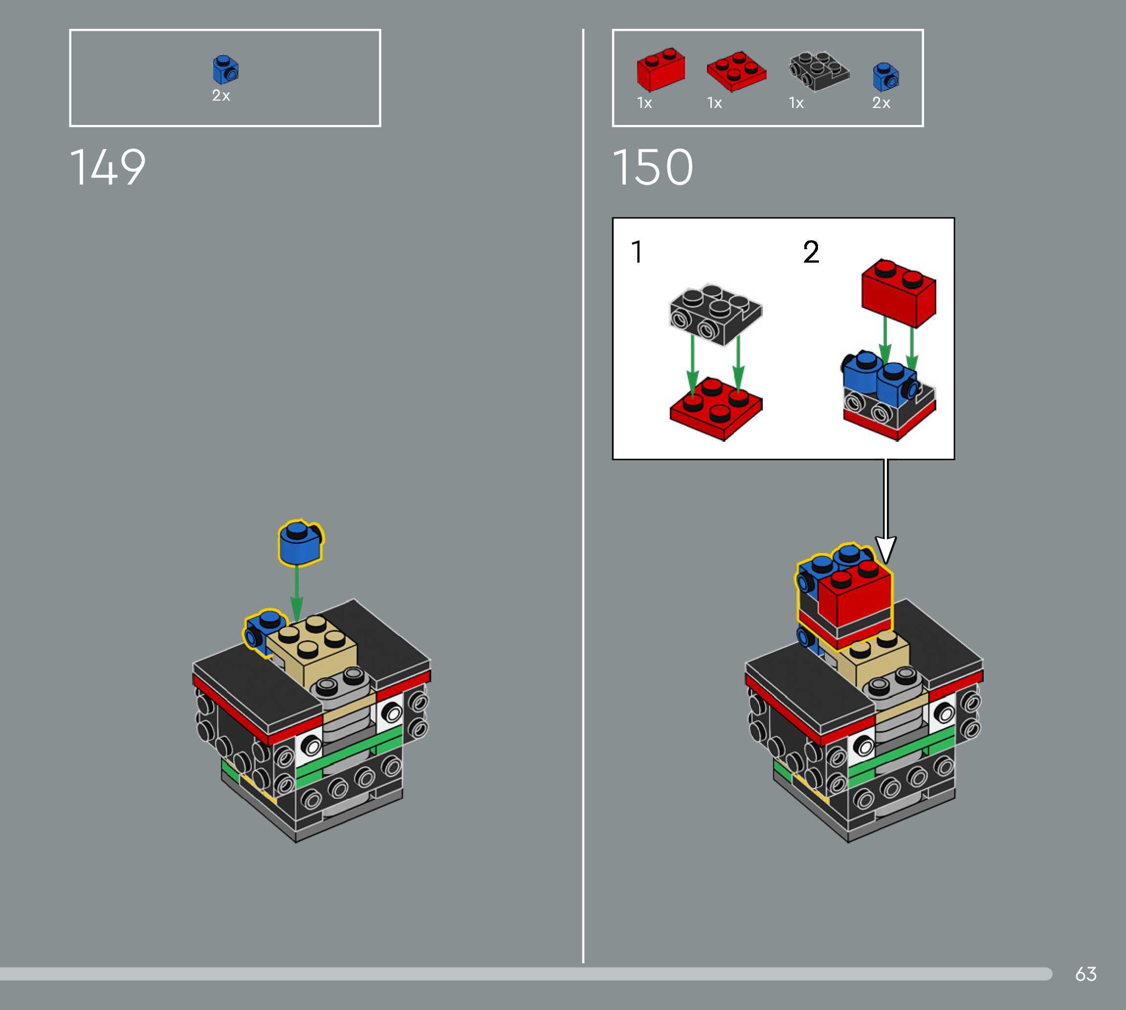 The assembly guide is prepared in a very understandable way for children and adult LEGO enthusiasts. A total of 128 picture galleries are shown, explaining the step-by-step construction stages for 1 different structures.
