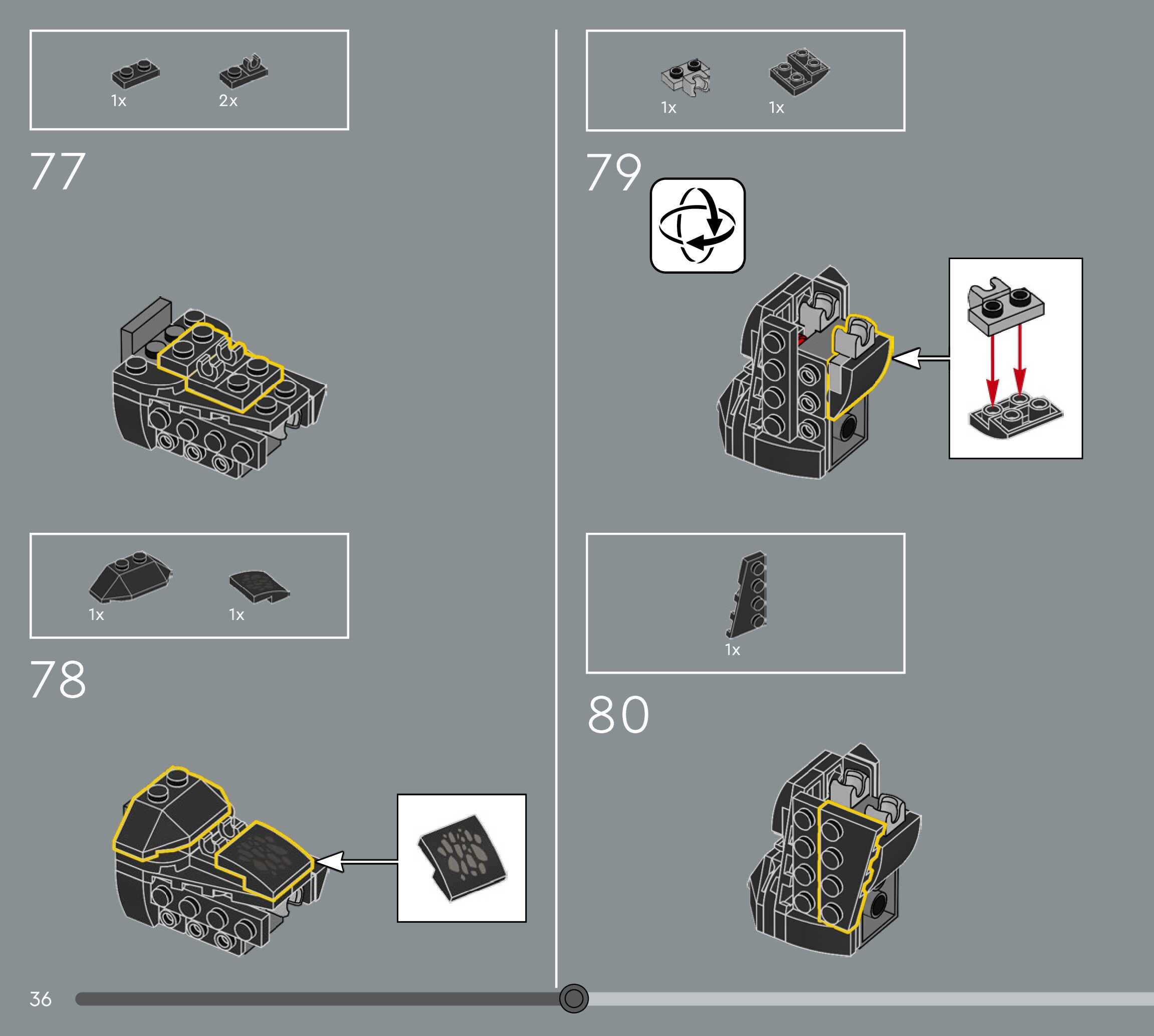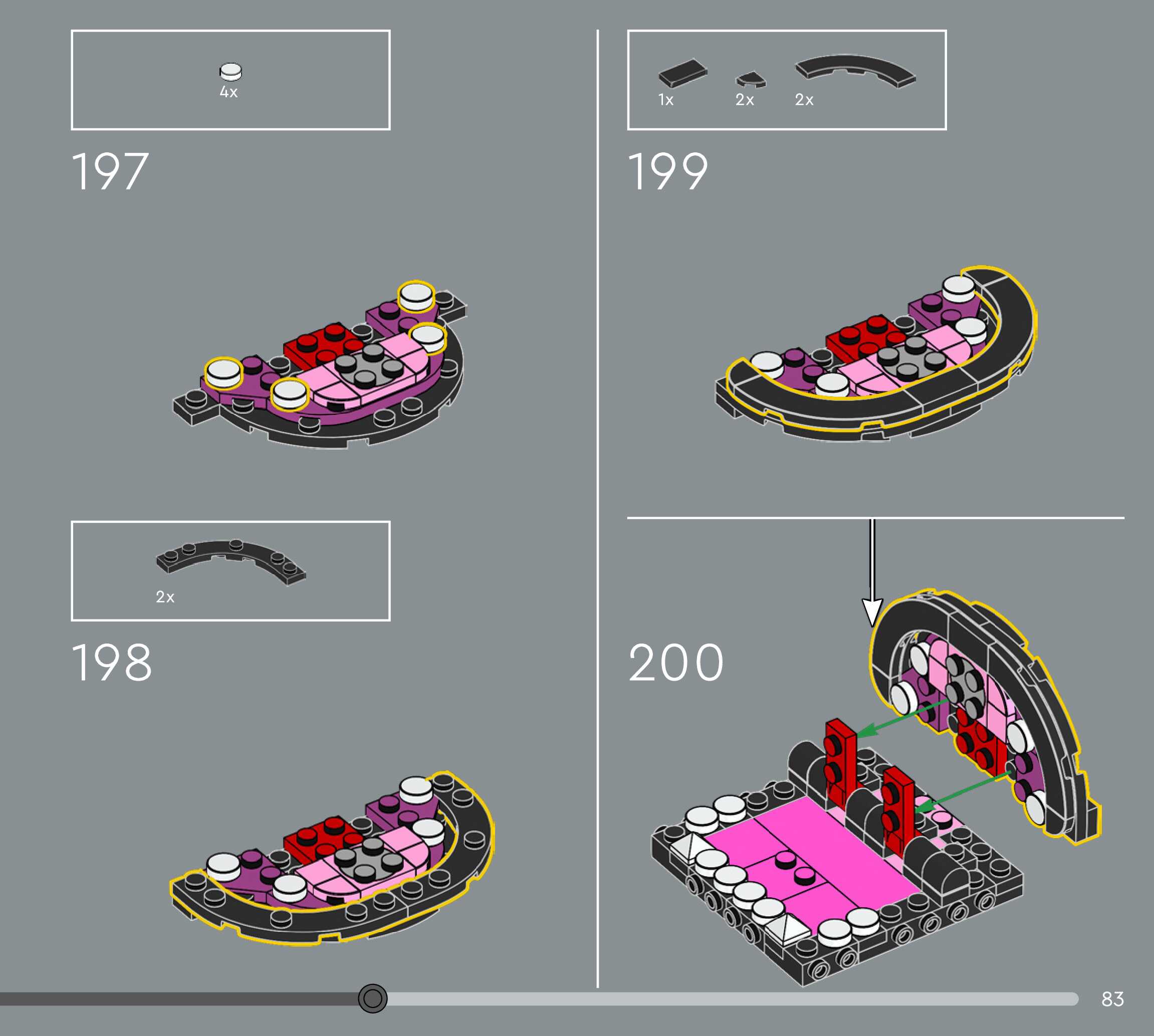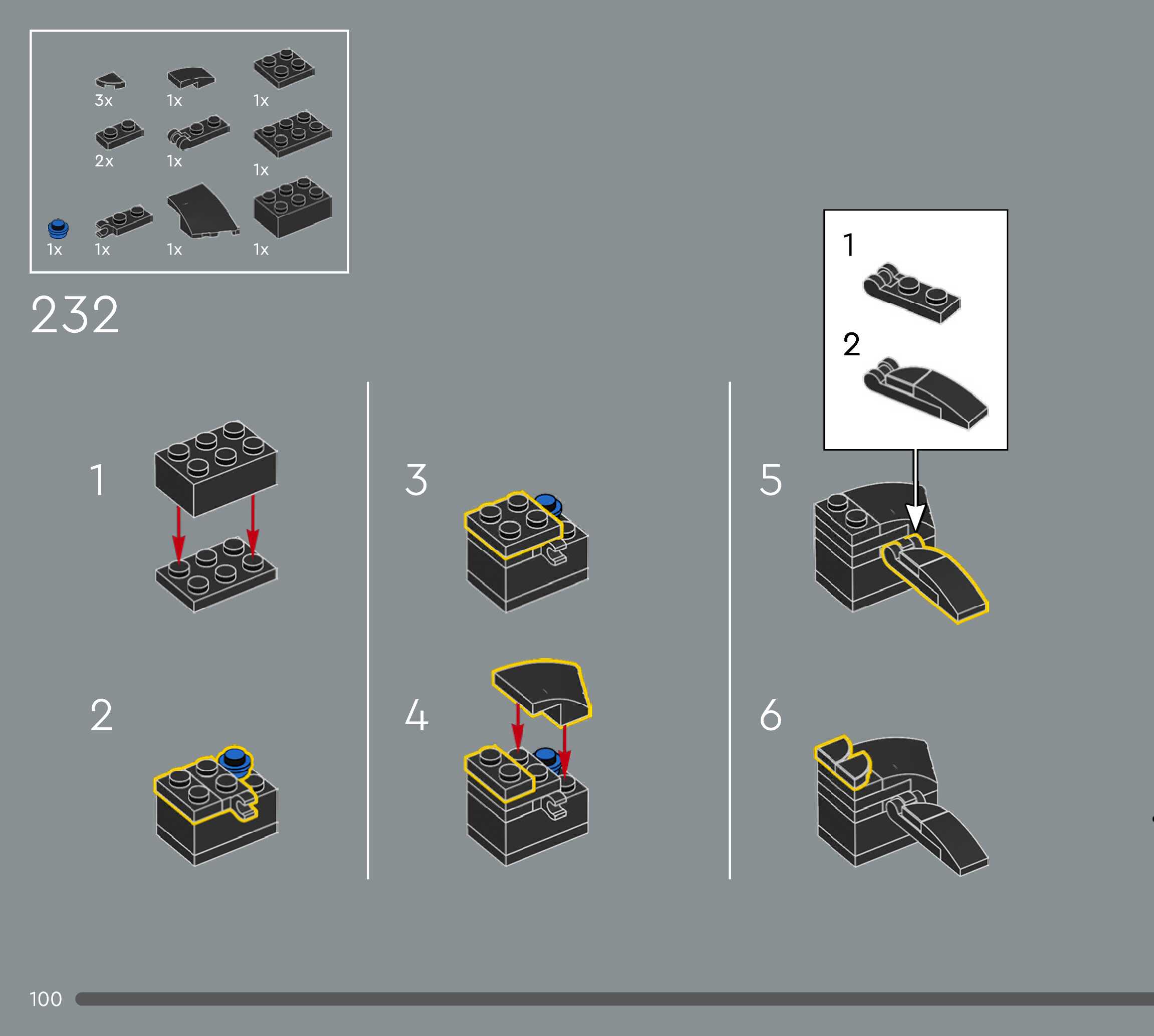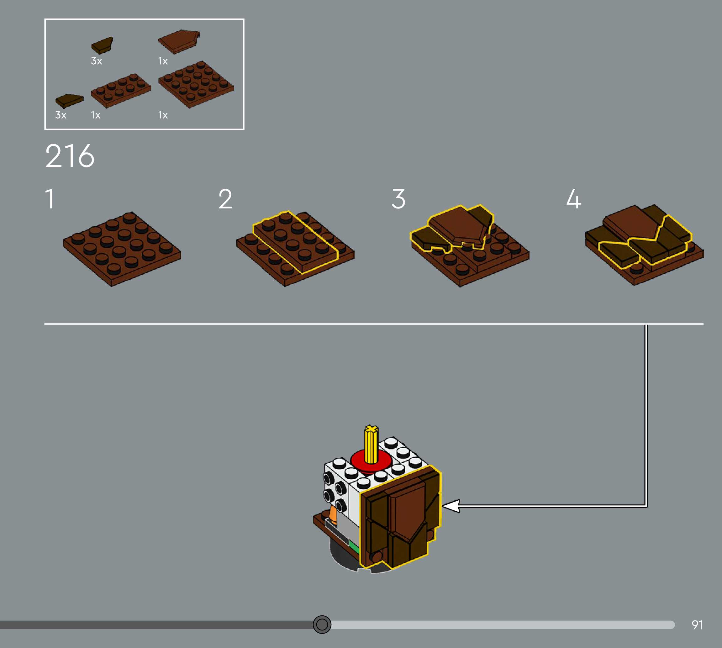 The assembly guide is prepared in a very understandable way for children and adult LEGO enthusiasts. A total of 128 picture galleries are shown, explaining the step-by-step construction stages for 1 different structures.