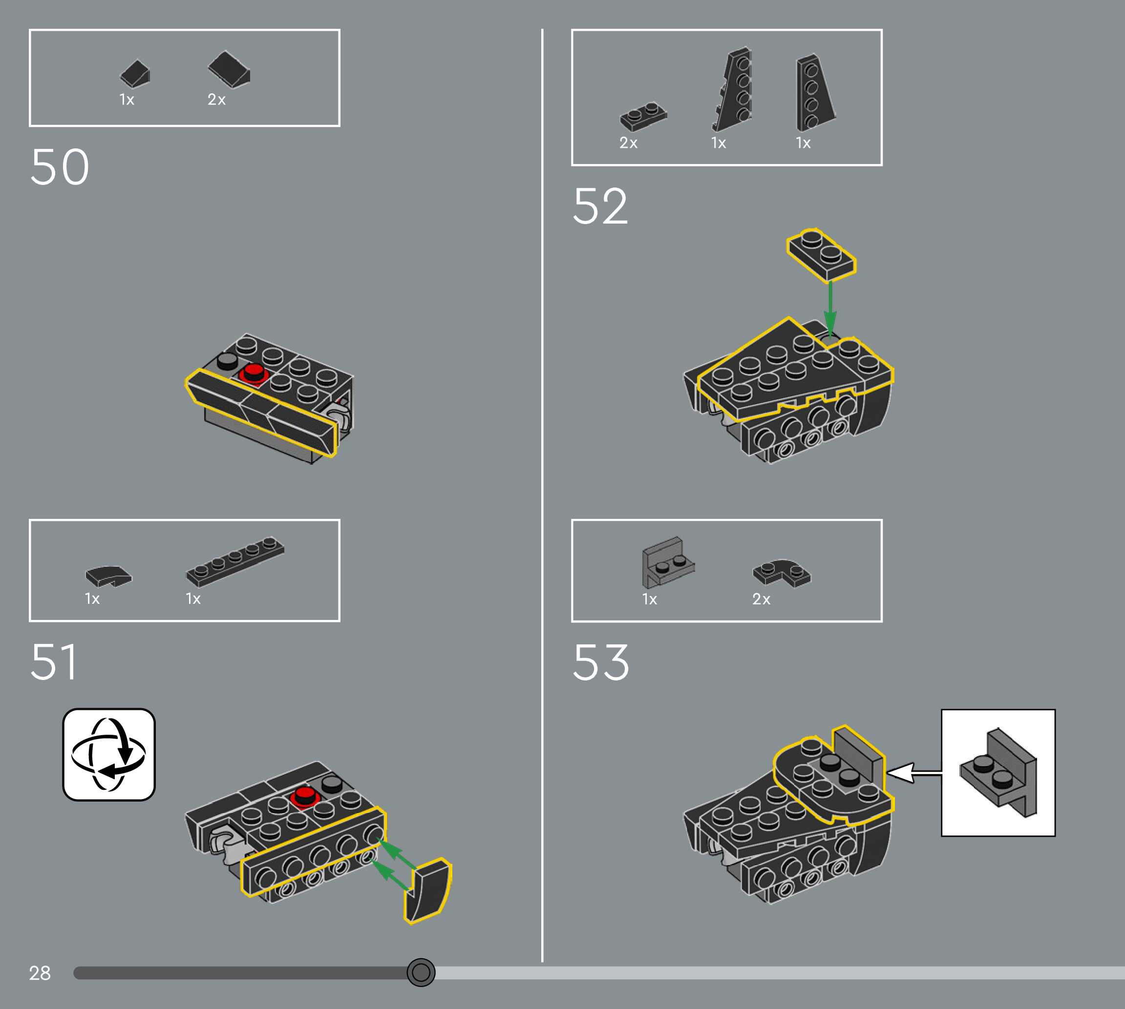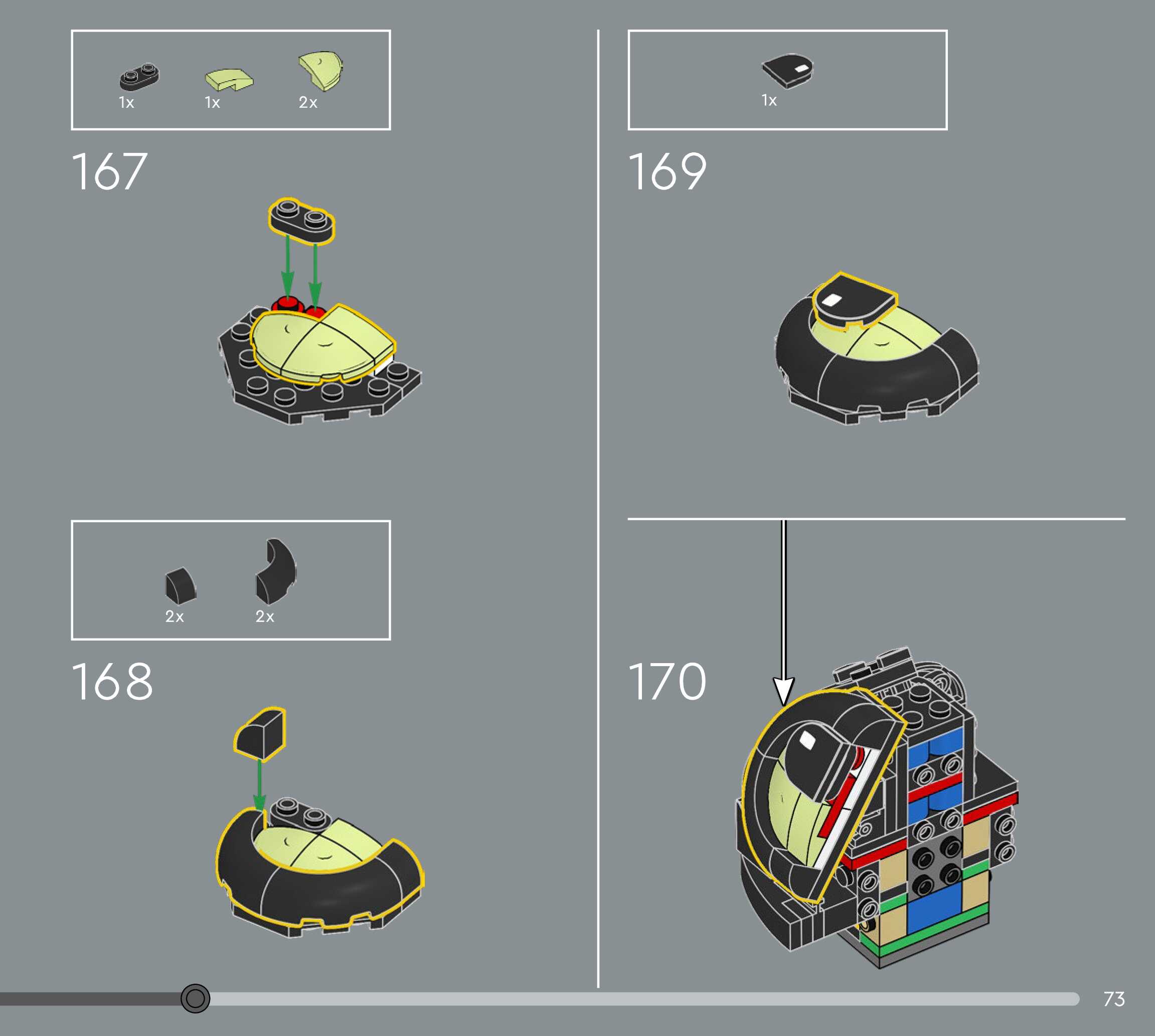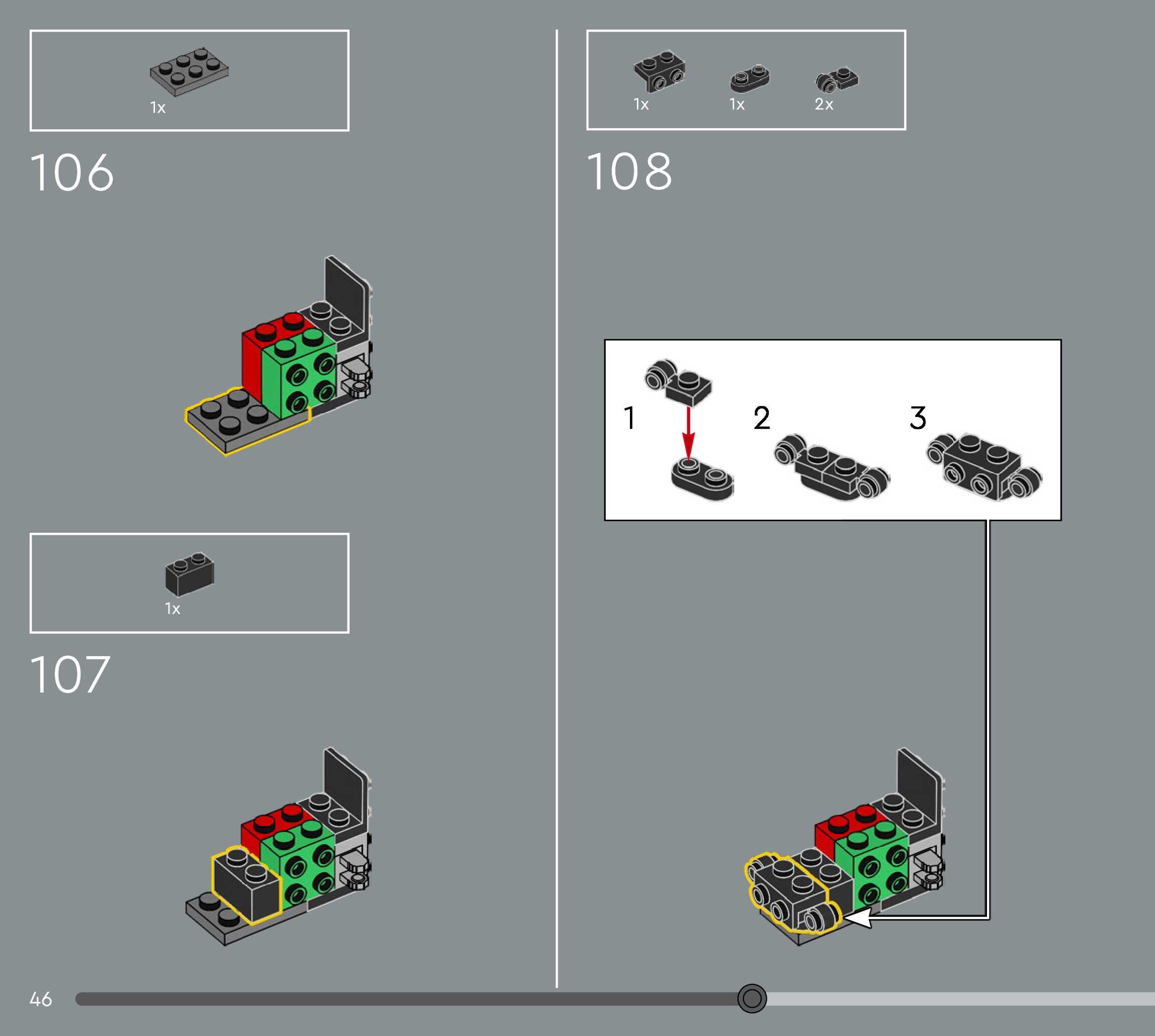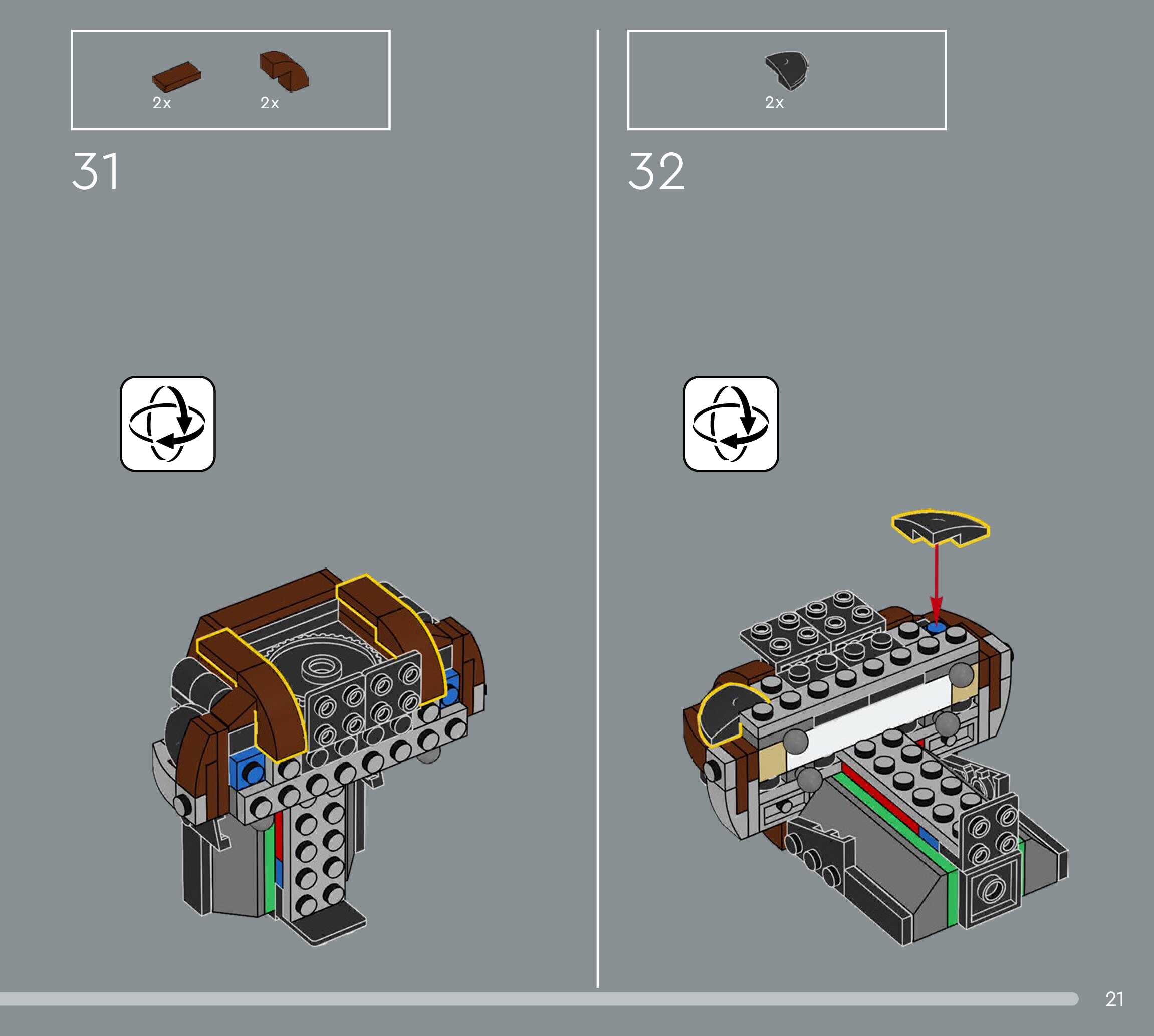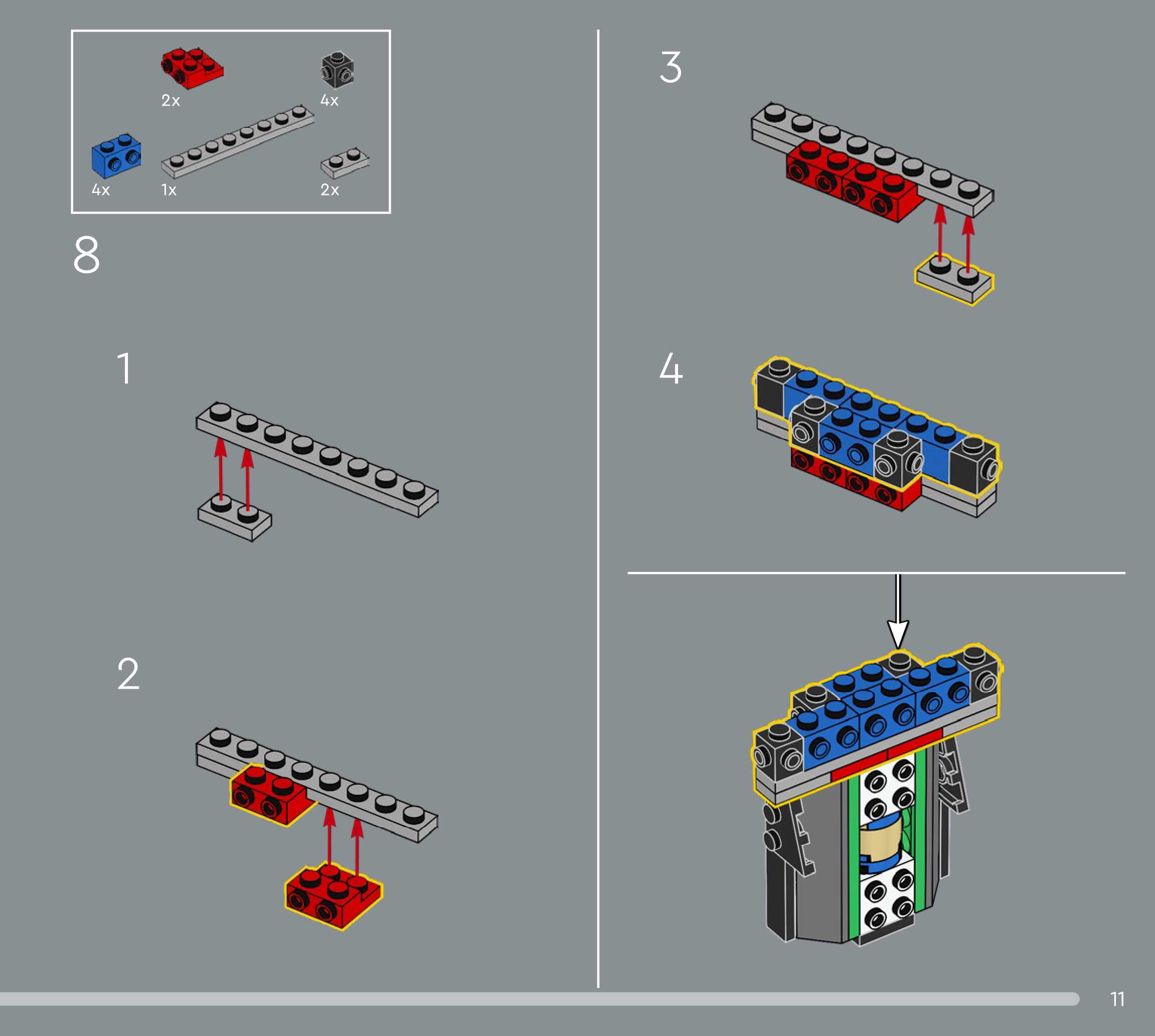 The assembly guide is prepared in a very understandable way for children and adult LEGO enthusiasts. A total of 128 picture galleries are shown, explaining the step-by-step construction stages for 1 different structures.
