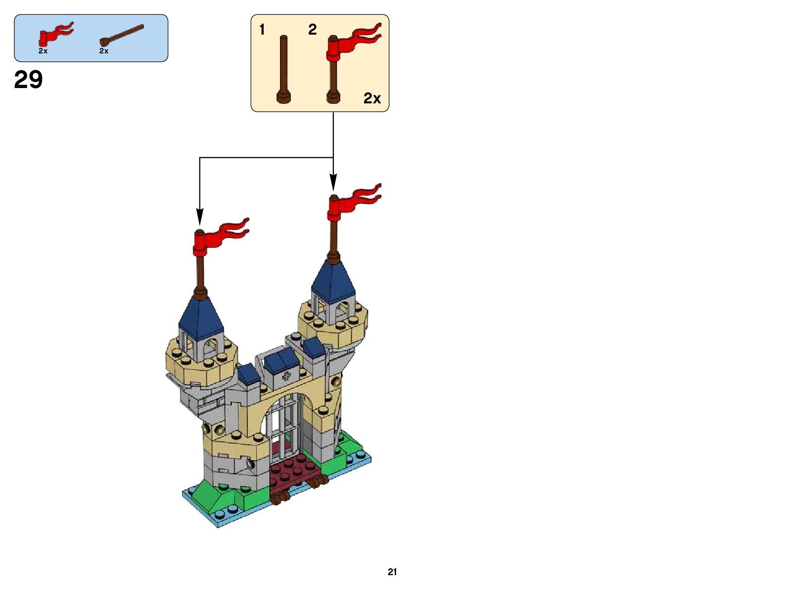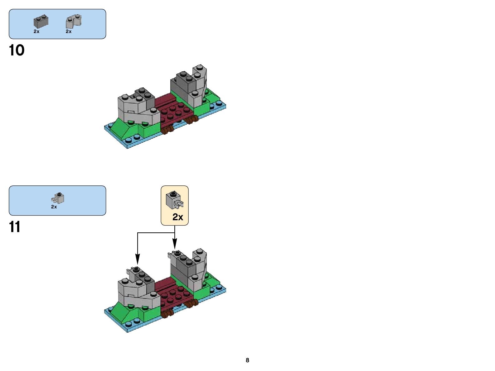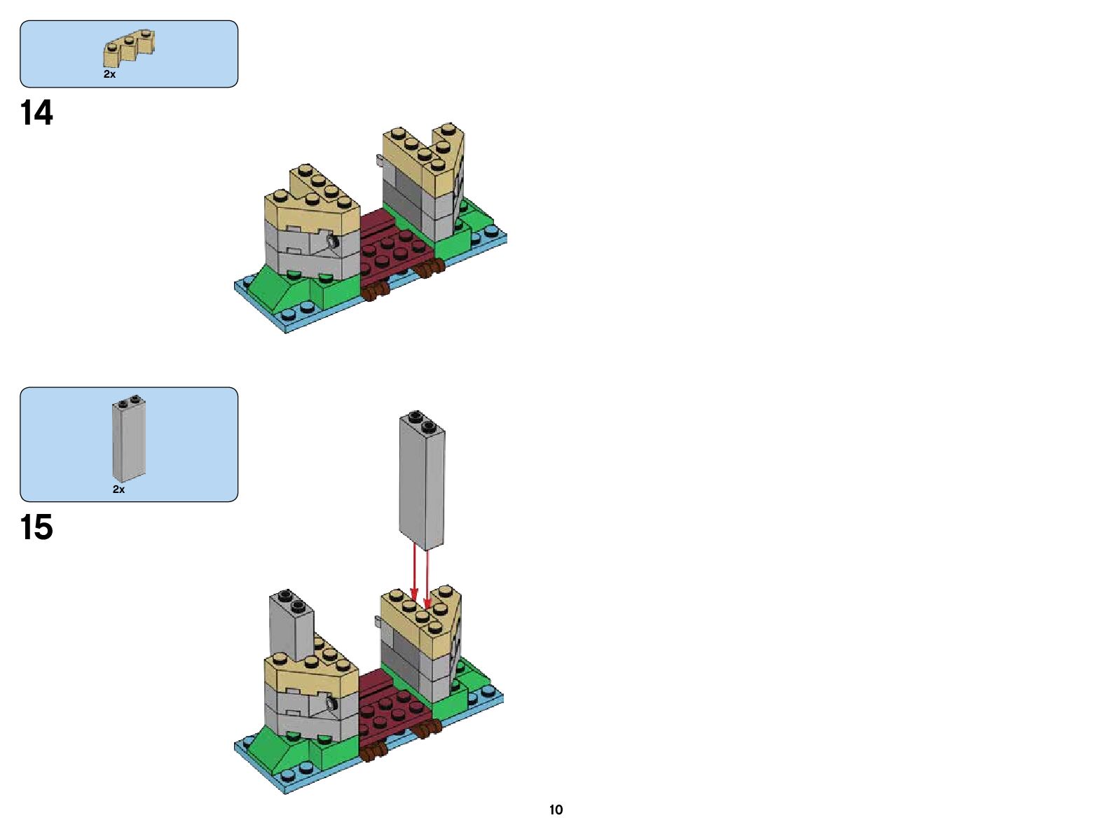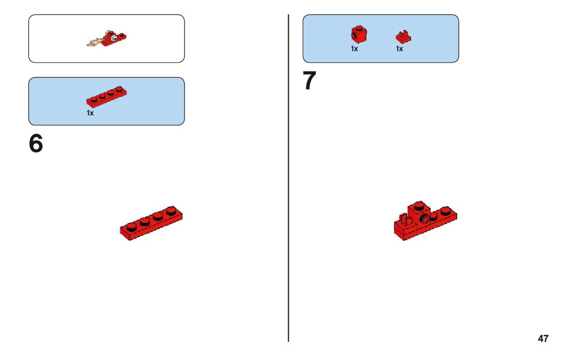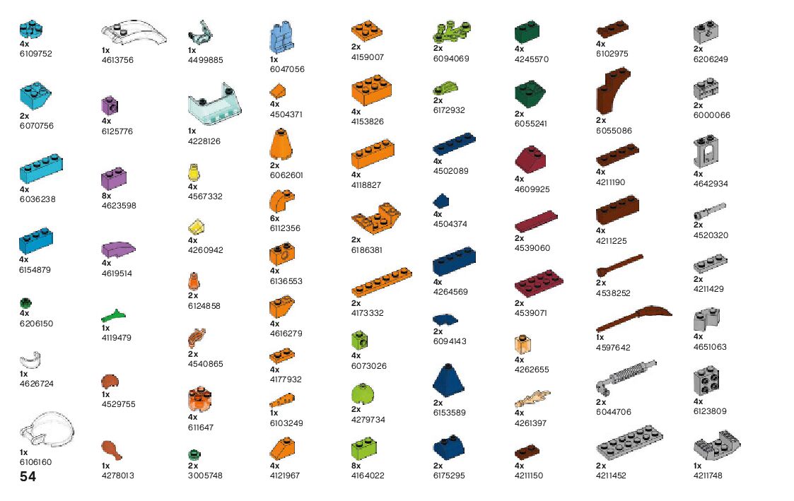 The assembly guide is prepared in a very understandable way for children and adult LEGO enthusiasts. A total of 96 picture galleries are shown, explaining the step-by-step construction stages for 3 different structures.