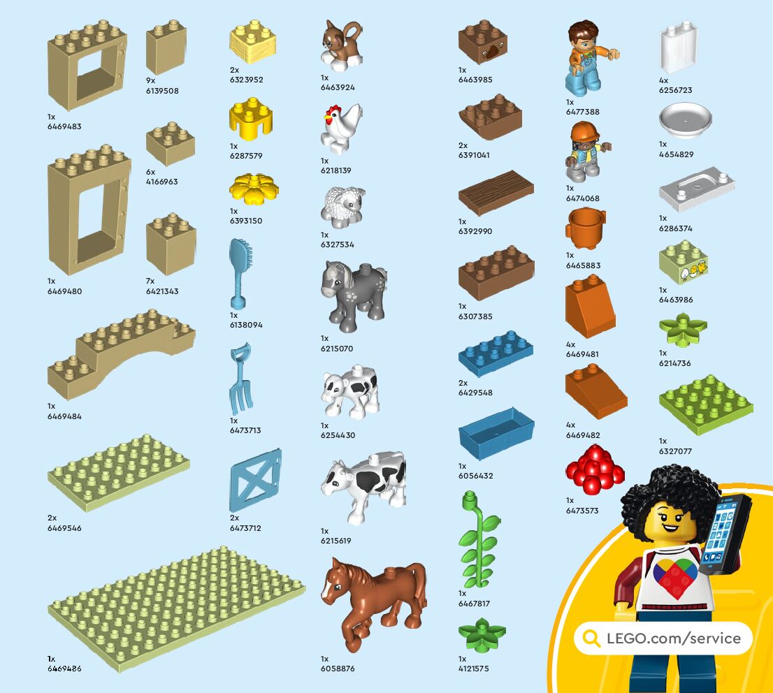 This page shares information about LEGO 10416 Caring for Animals at the Farm manual, LEGO 10416 PDF instructions, LEGO 10416 Caring for Animals at the Farm building guide online, How to build 10416 Caring for Animals at the Farm LEGO.